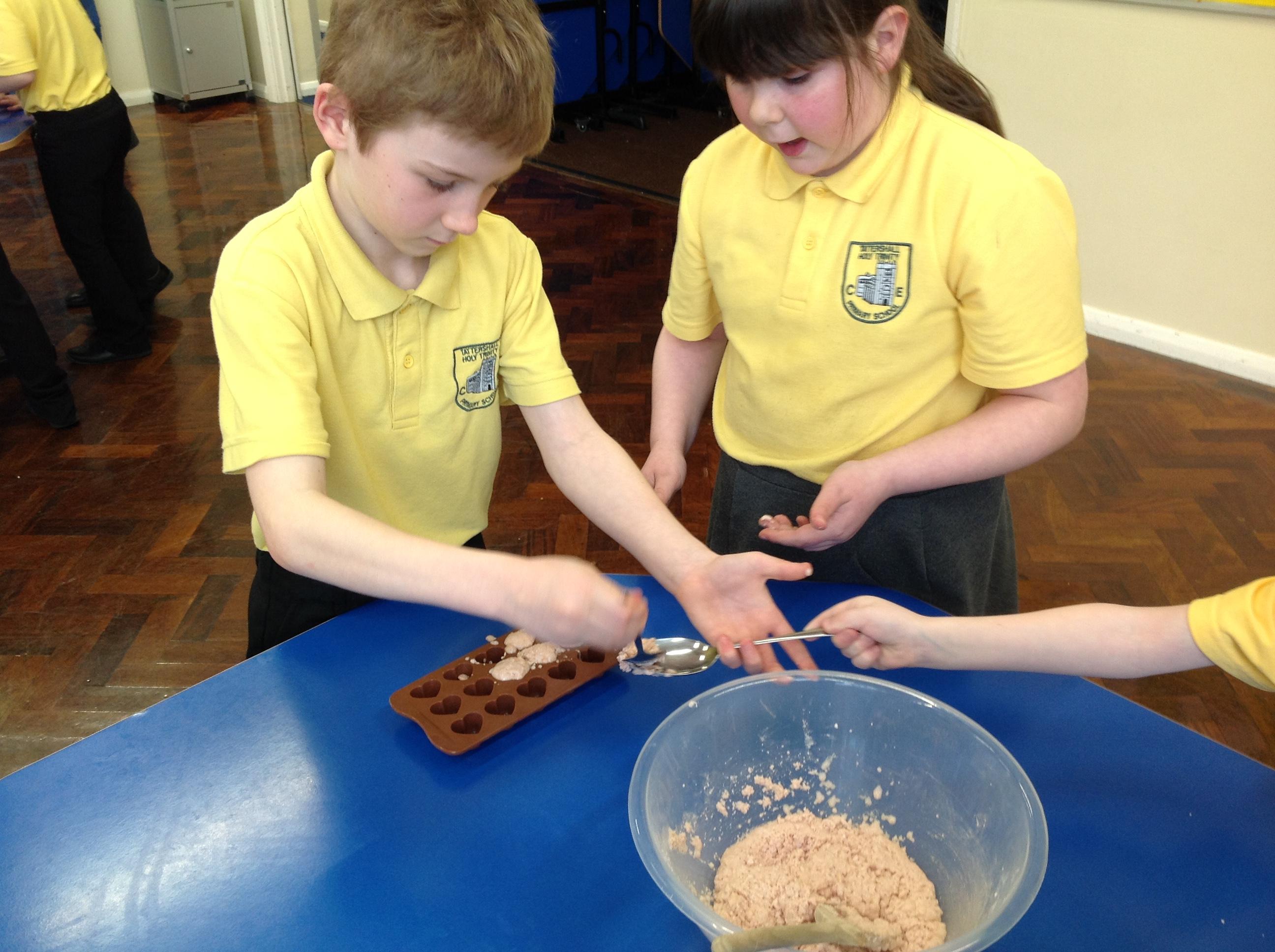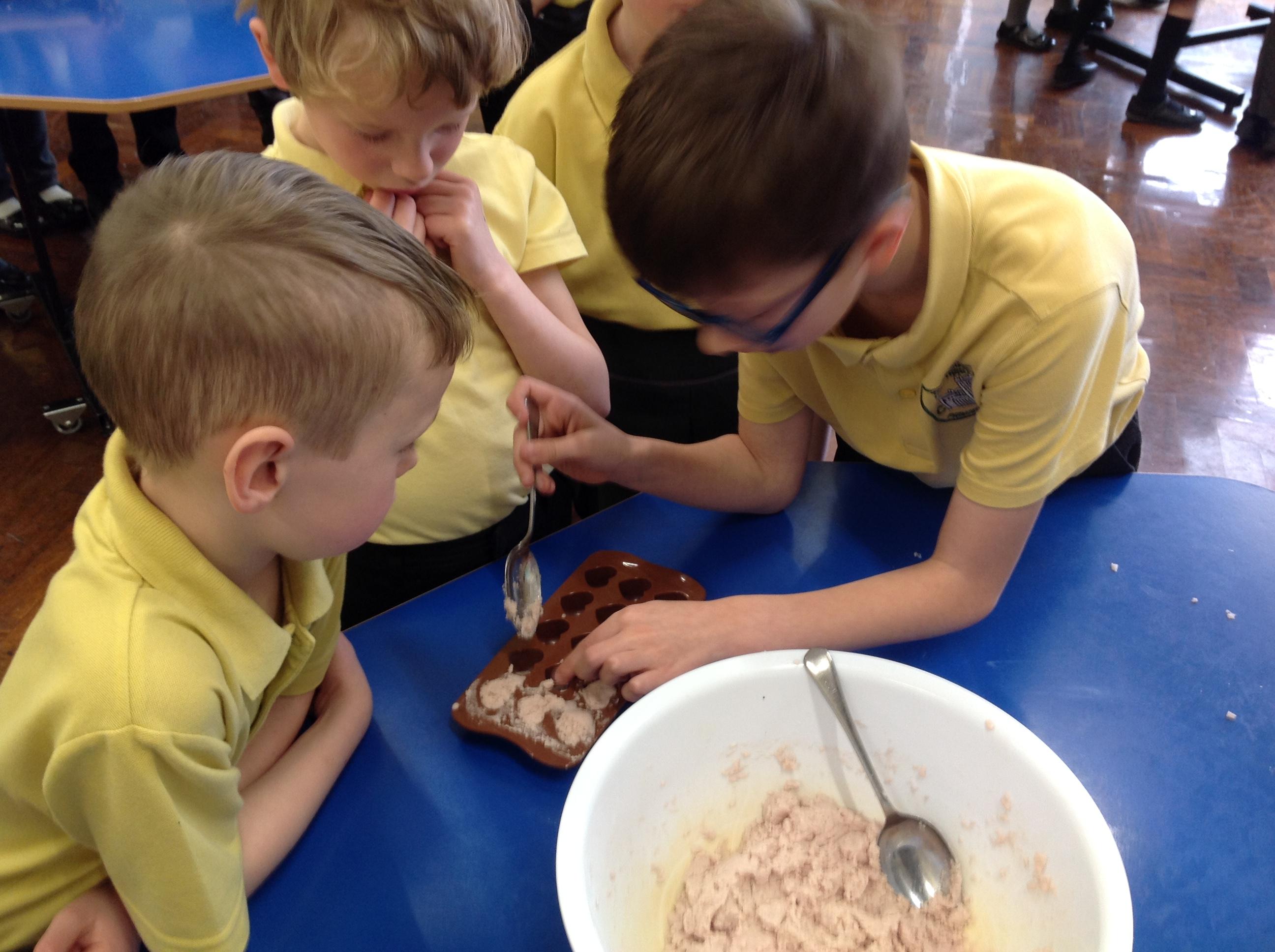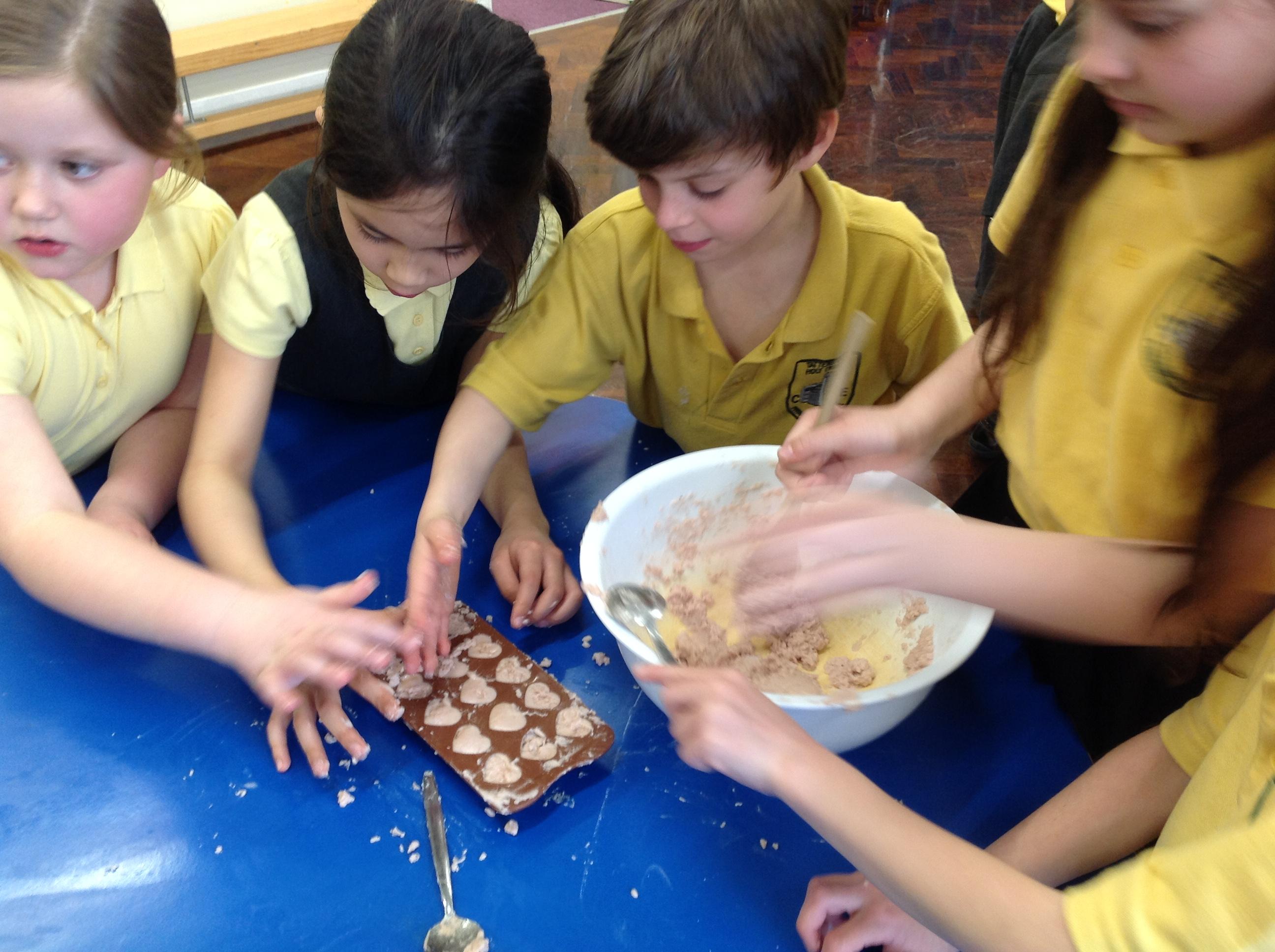 We had lots of fun with Oak Class making heart shaped bath bombs for our Mother's Day gift. We had to combine bicarbonate of soda with cream of tartar and a little bit of water. We flavoured them with violet or lavender and added some food colouring. We hope you liked them!