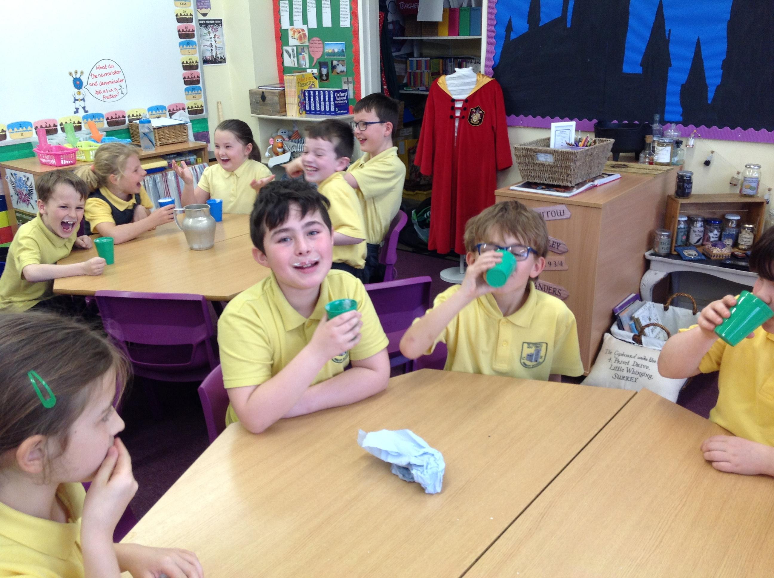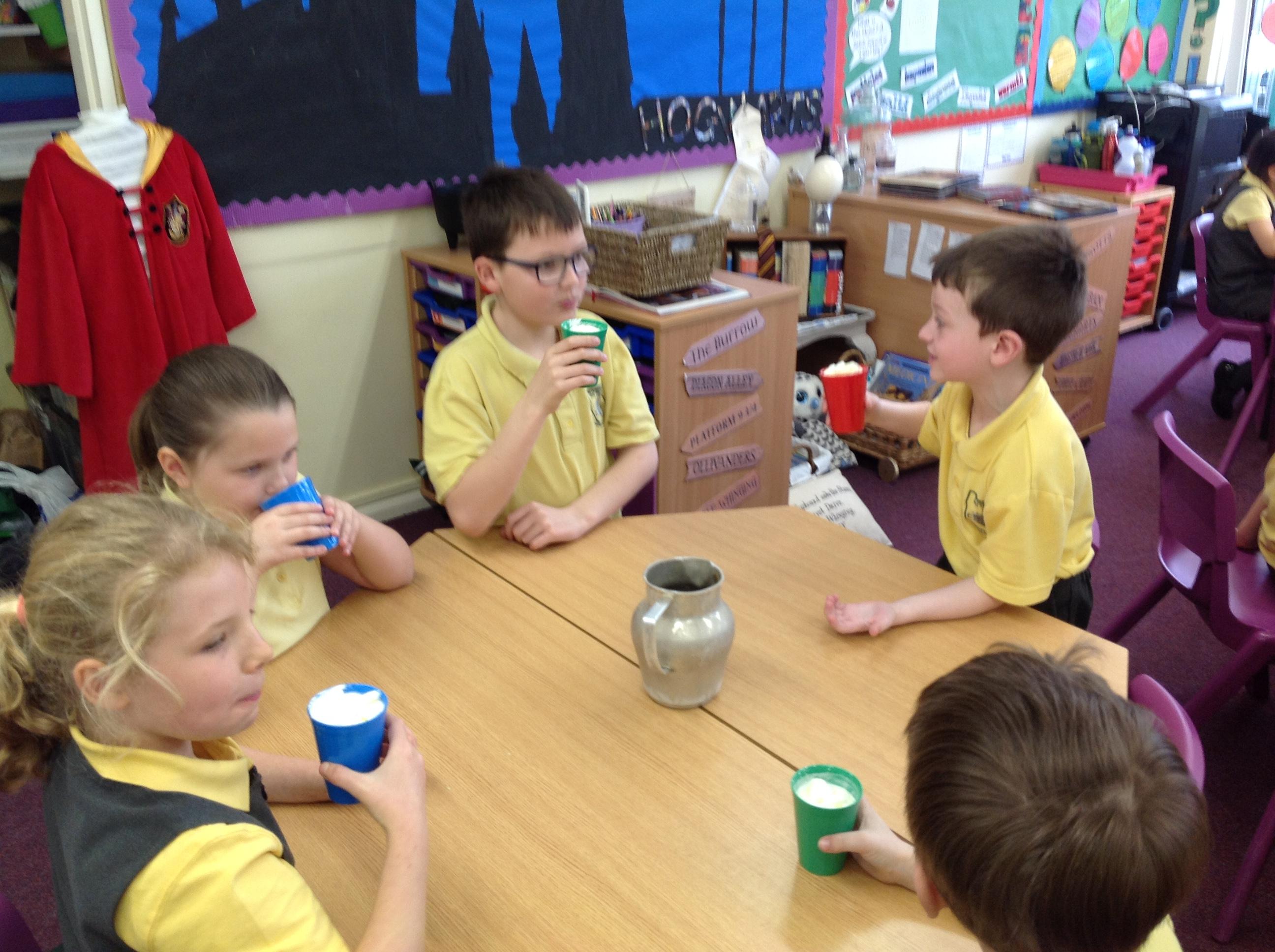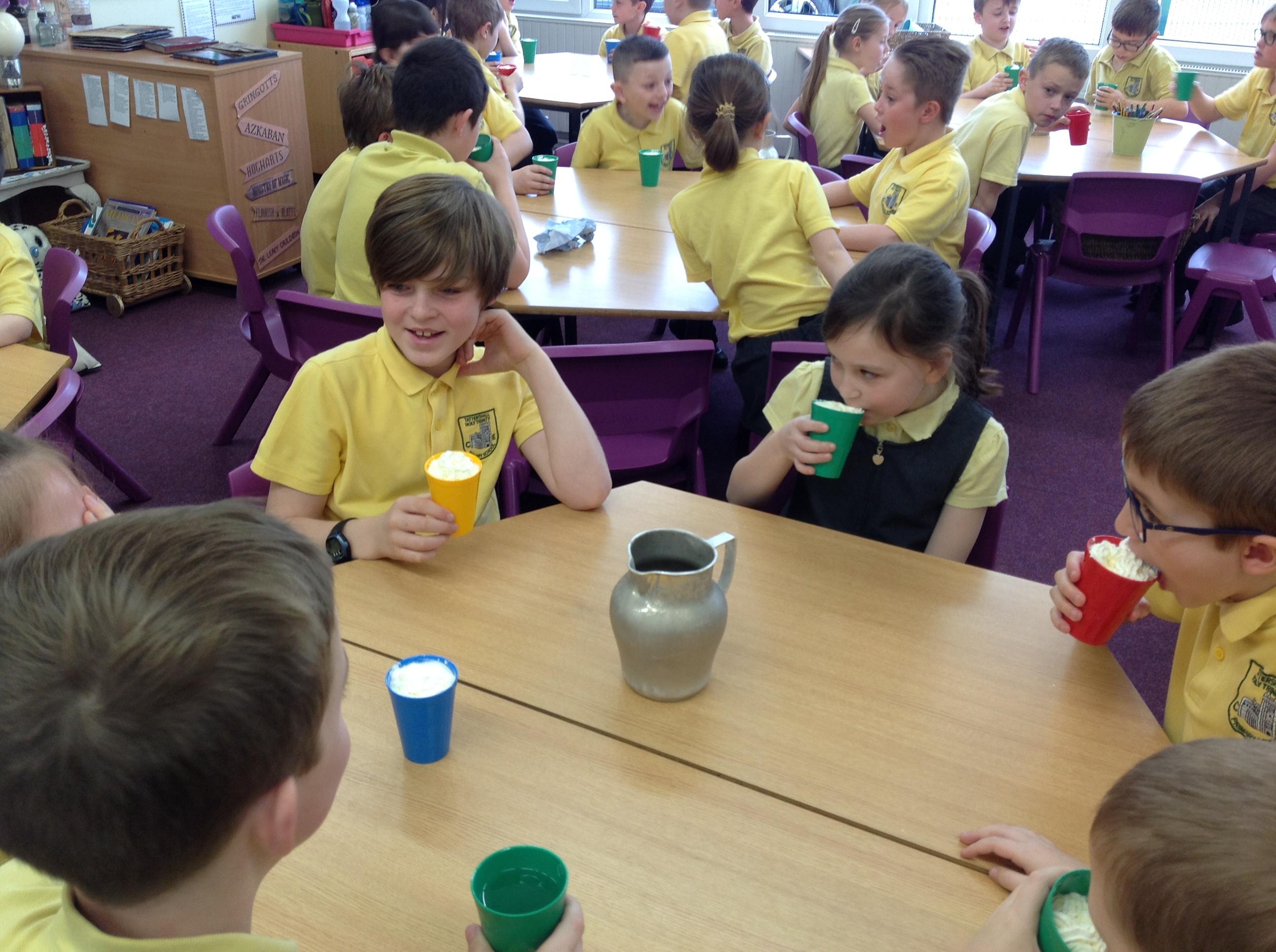 Today, we made our very own Butterbeer! We had to whisk the cream and mix the cream soda with butterscotch syrup. We all then got to try our creations! Stay tuned for our TV Adverts later in the week!