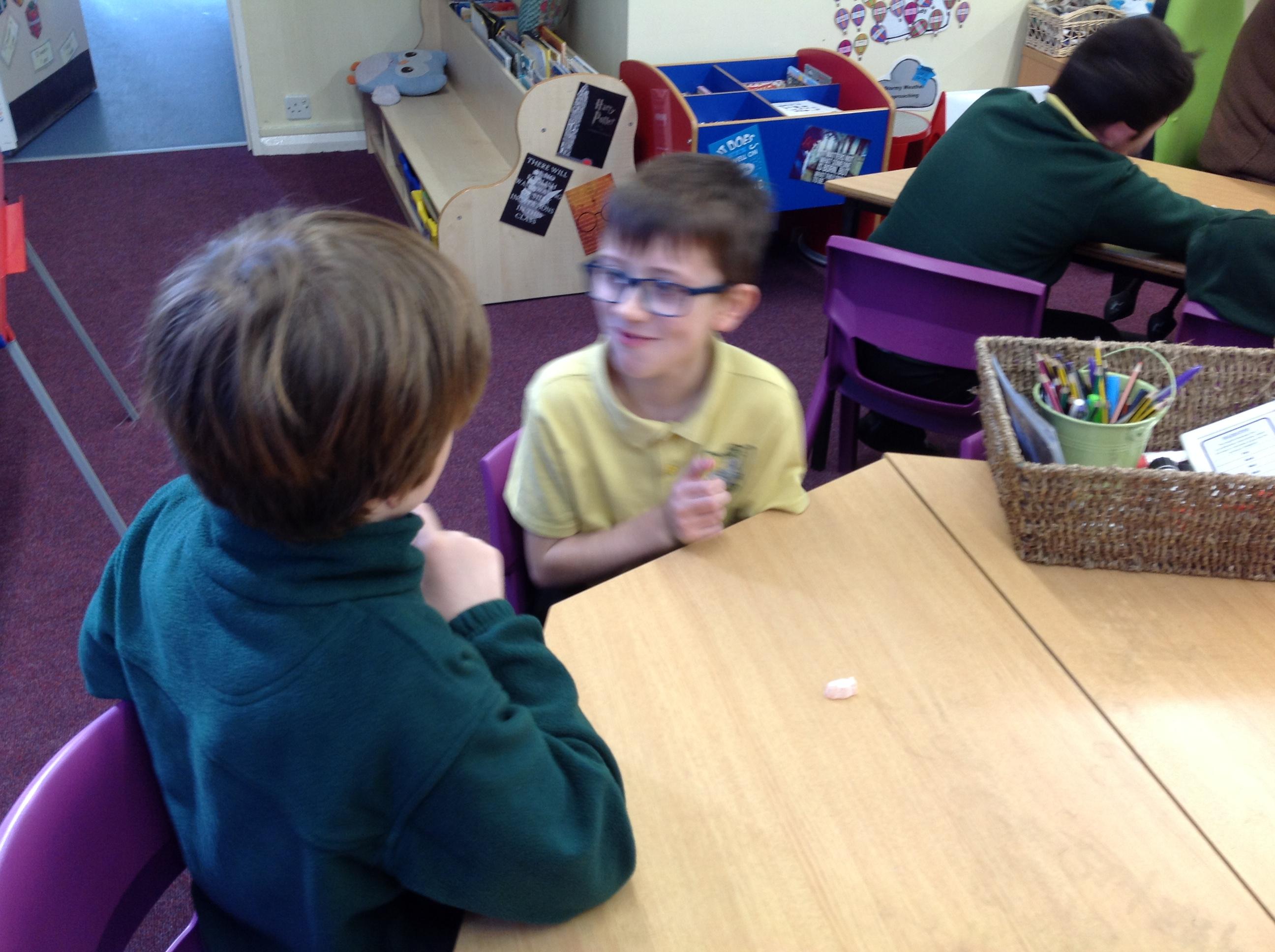 We were given a jelly baby today and had to persuade our partner to NOT eat it! We thought about what tactics we would use and how we could stop their temptations!
