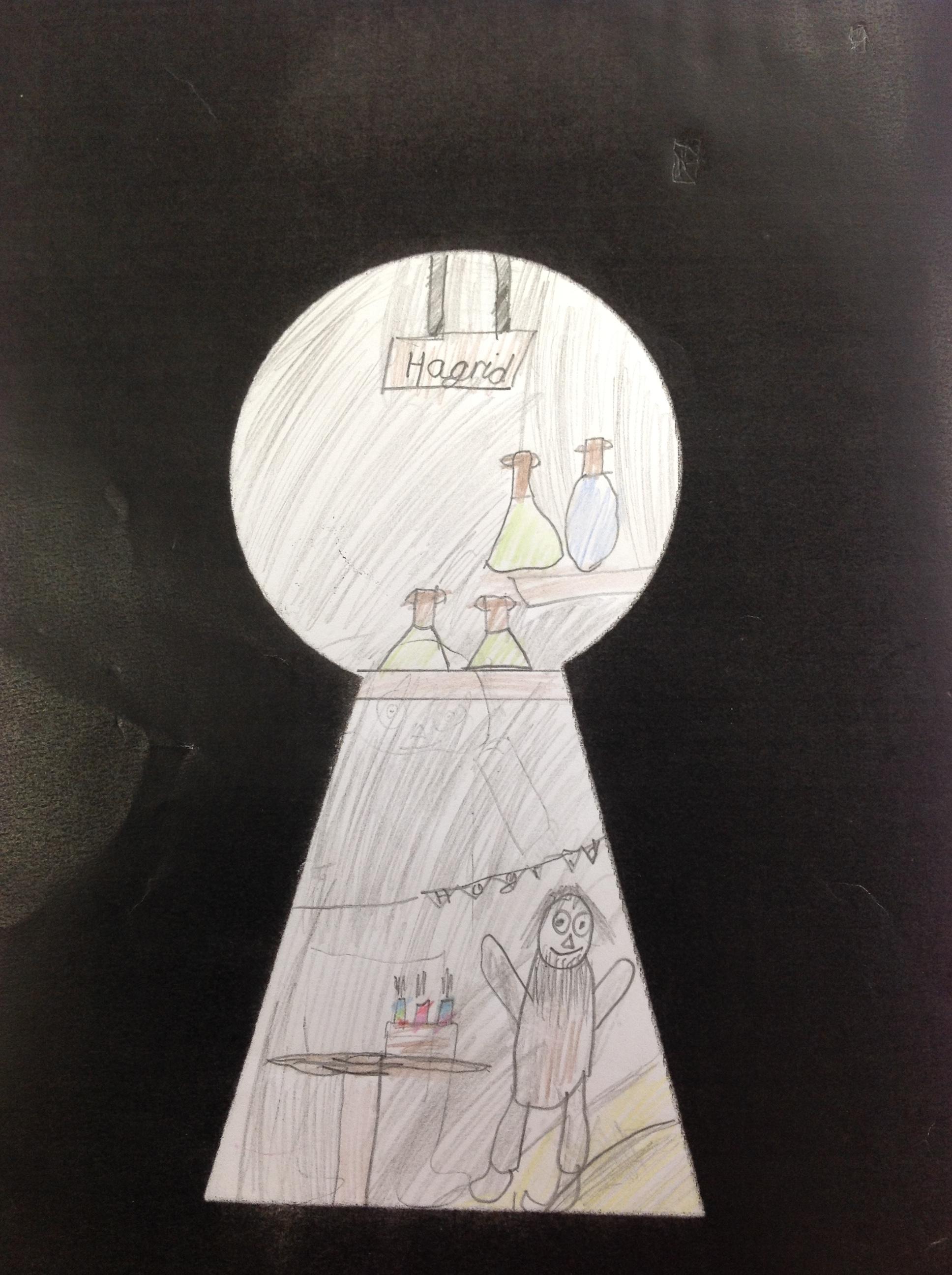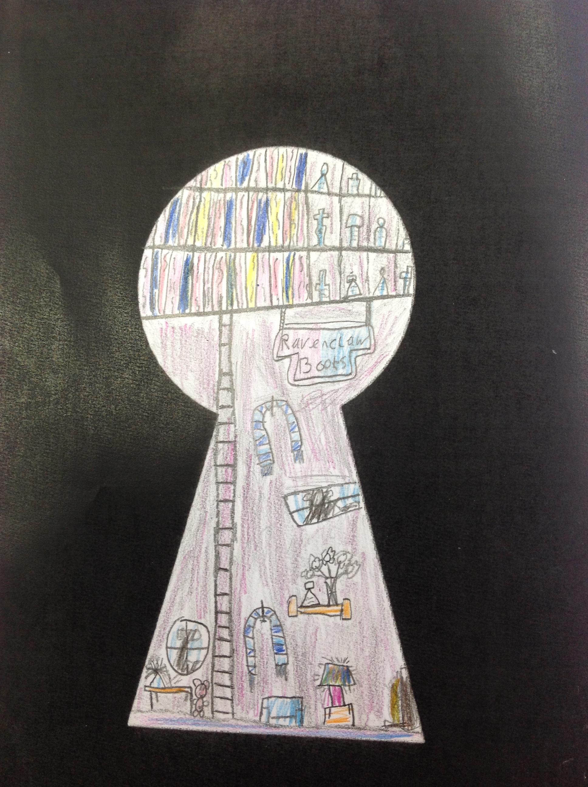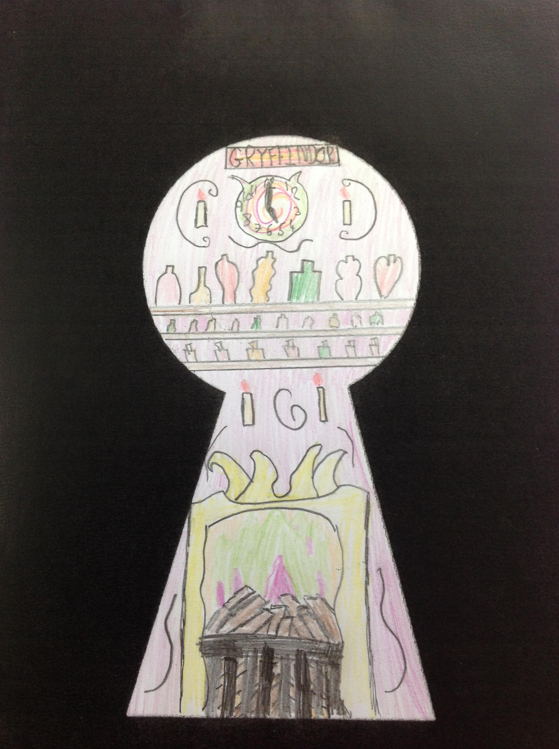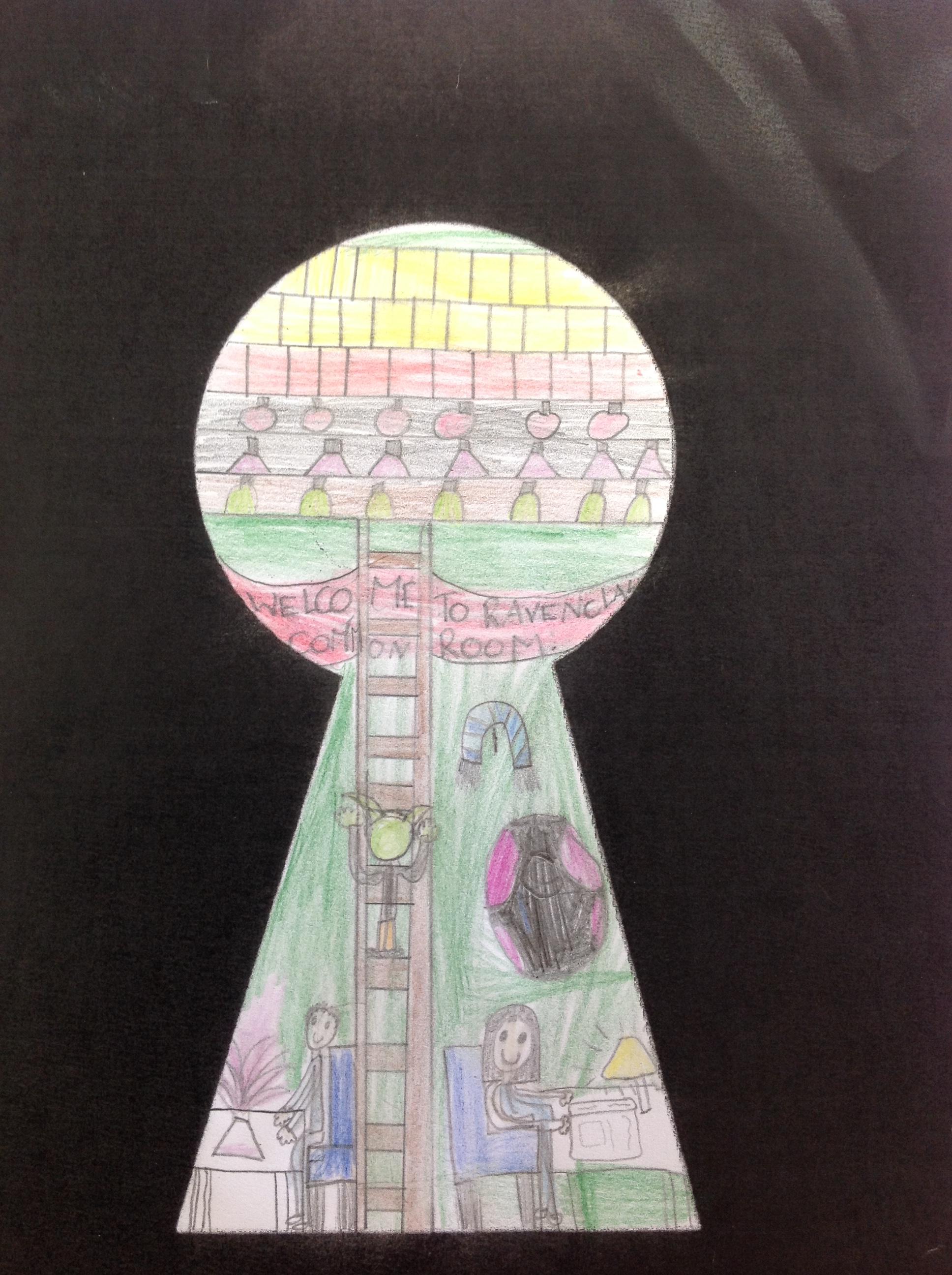 We've looked at the rooms of Hogwarts from a different perspectives today. We first looked at different rooms through a cut out keyhole and then we designed our own! We had to really think about what we would see through a keyhole! We really thought about lots of detail and colour.