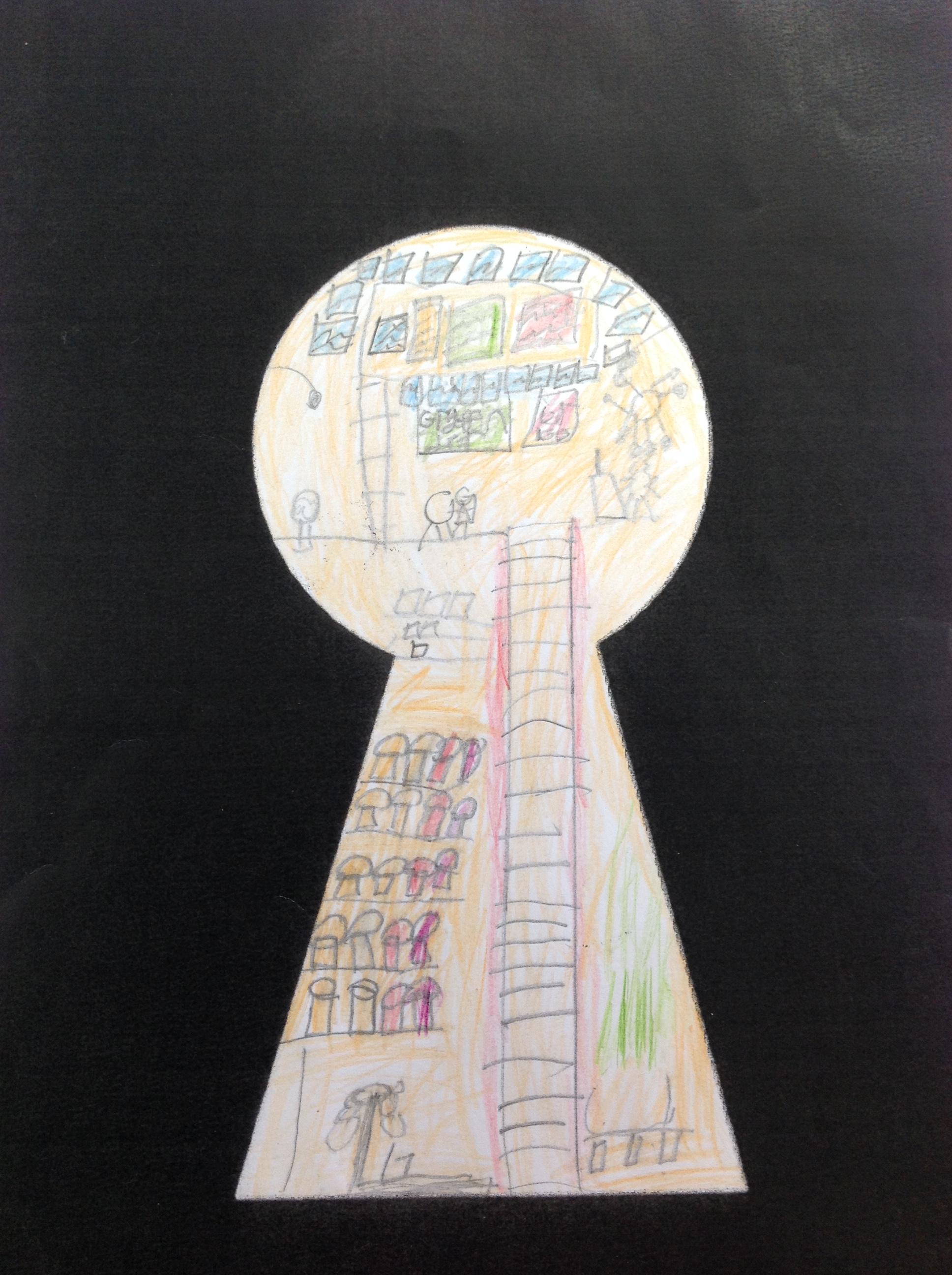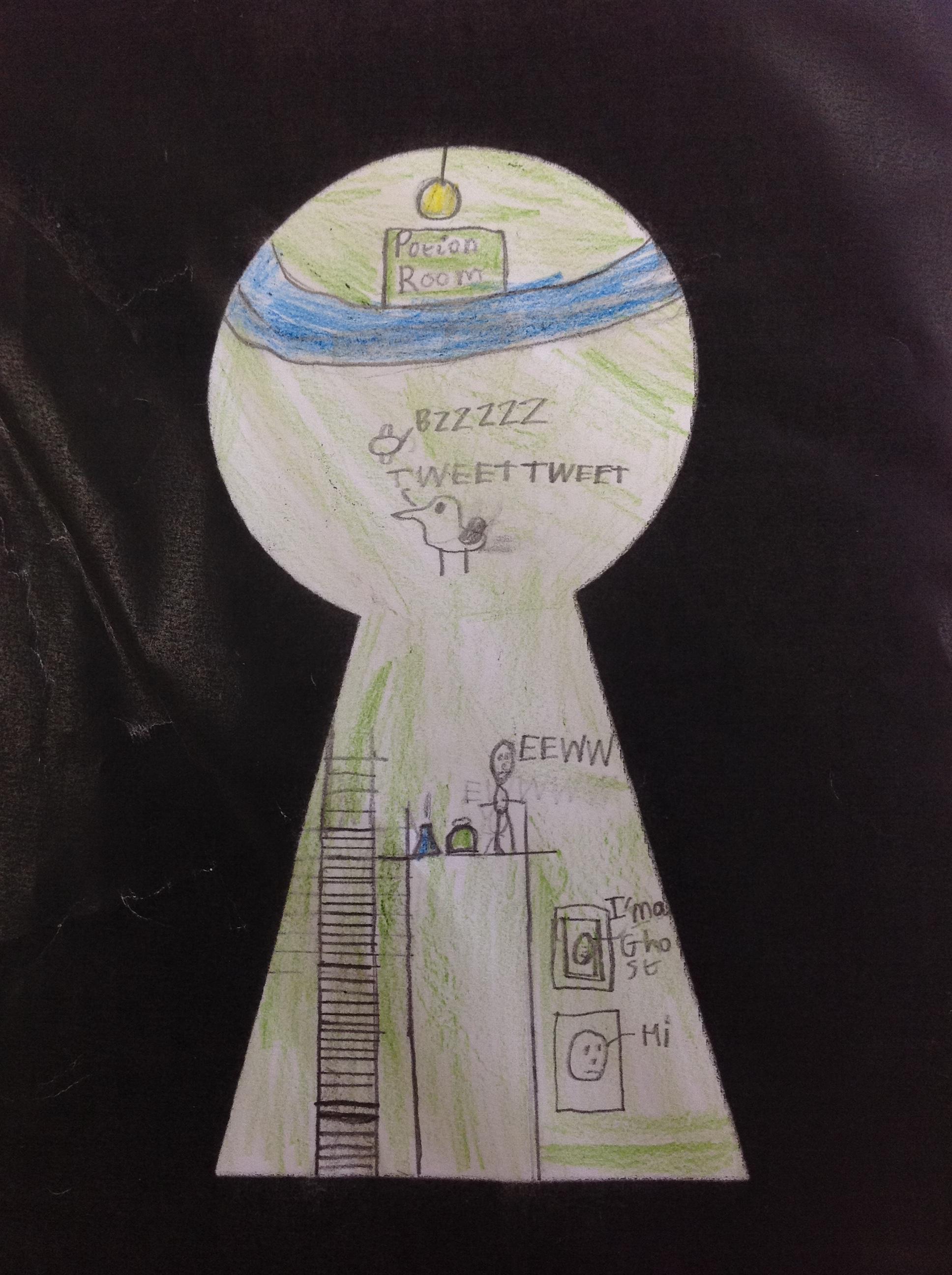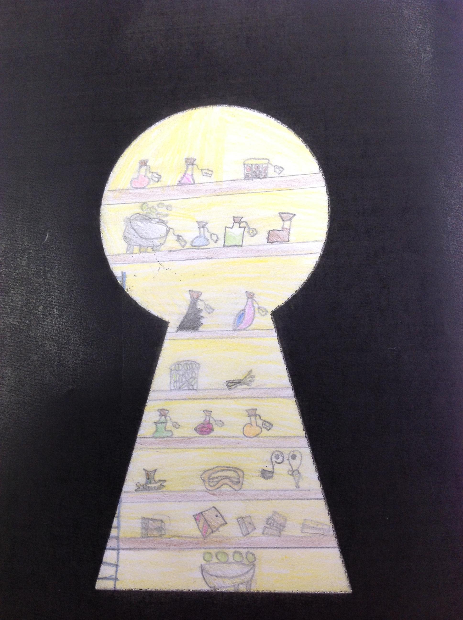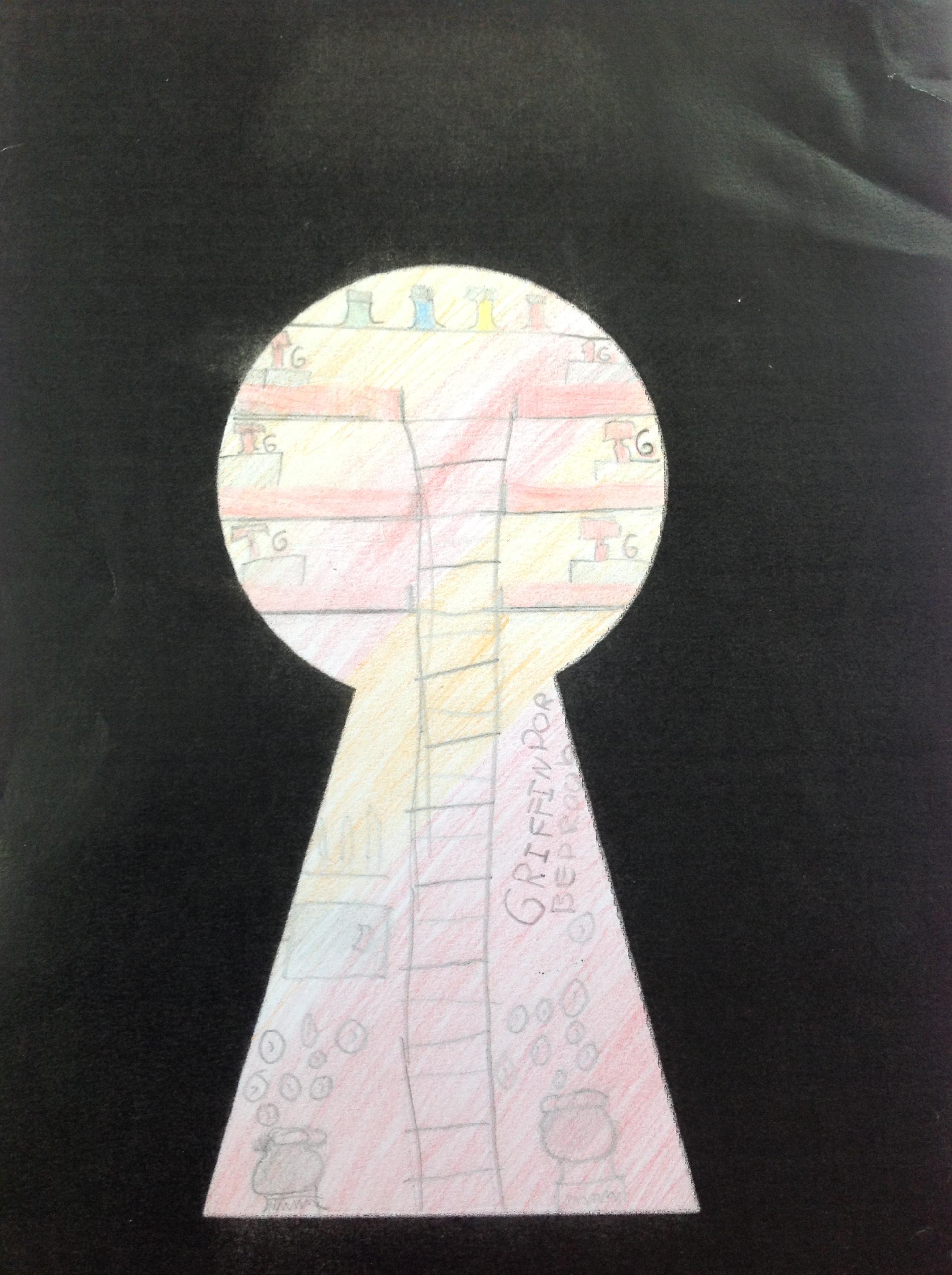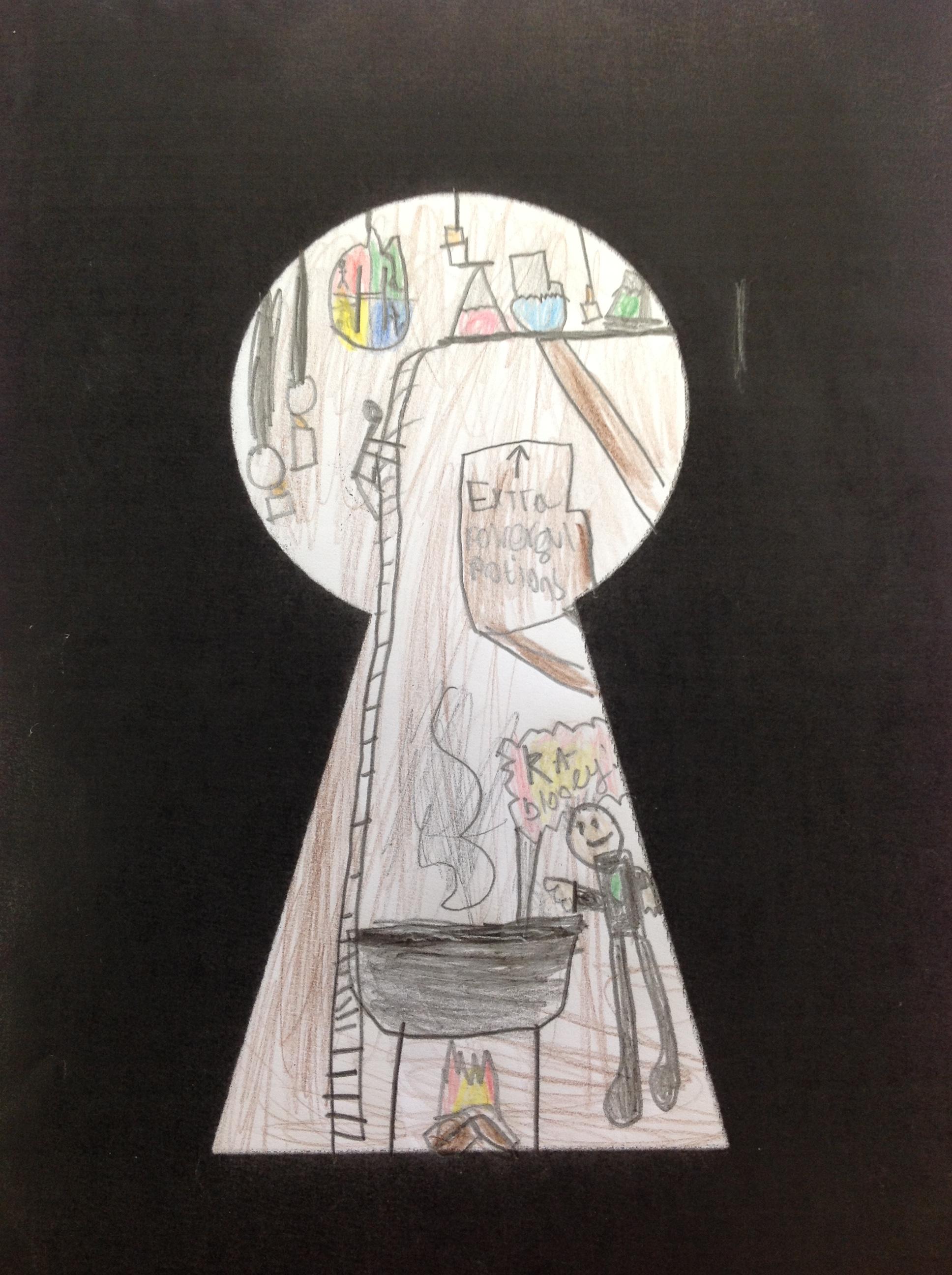 We've looked at the rooms of Hogwarts from a different perspectives today. We first looked at different rooms through a cut out keyhole and then we designed our own! We had to really think about what we would see through a keyhole! We really thought about lots of detail and colour.