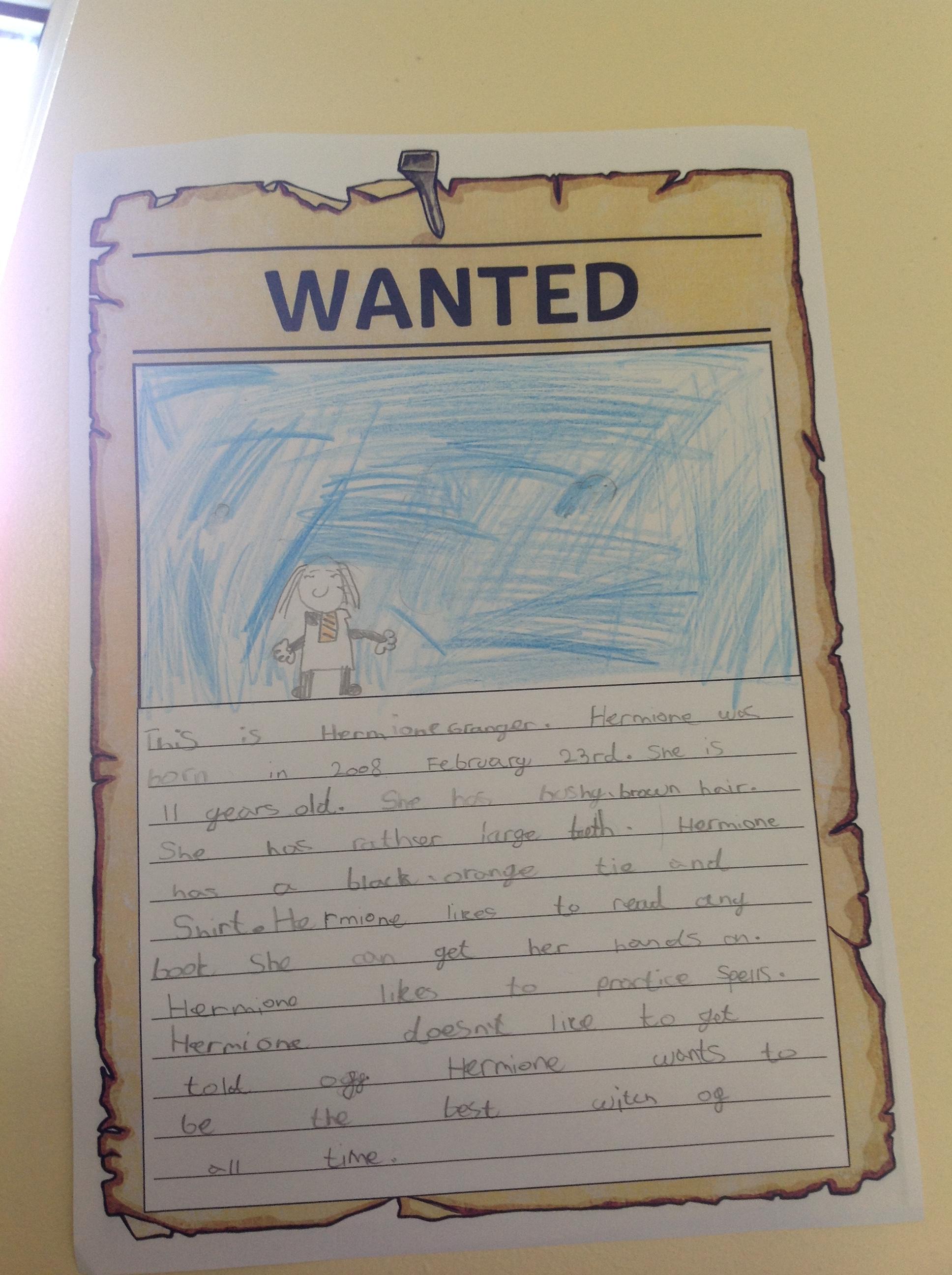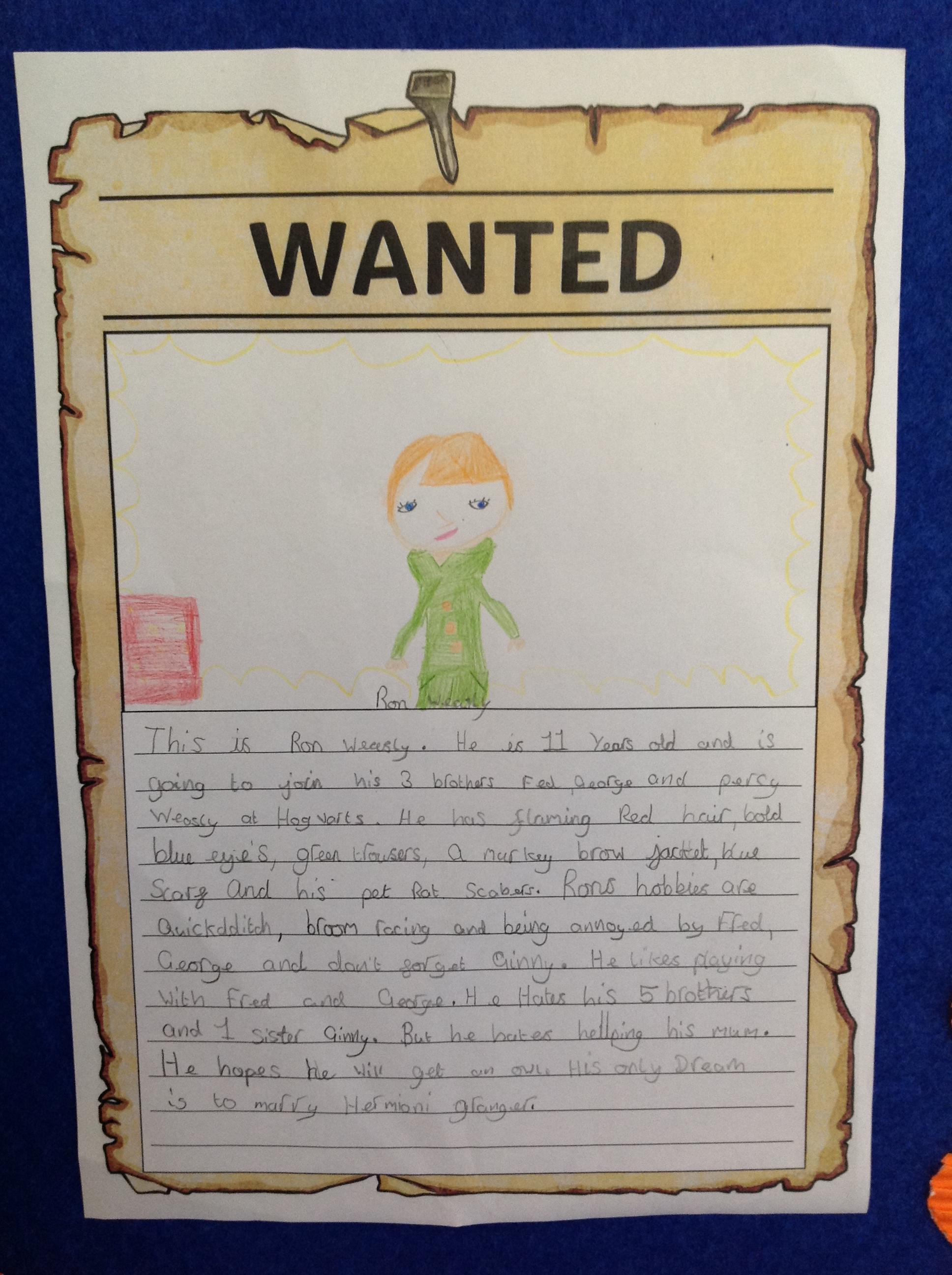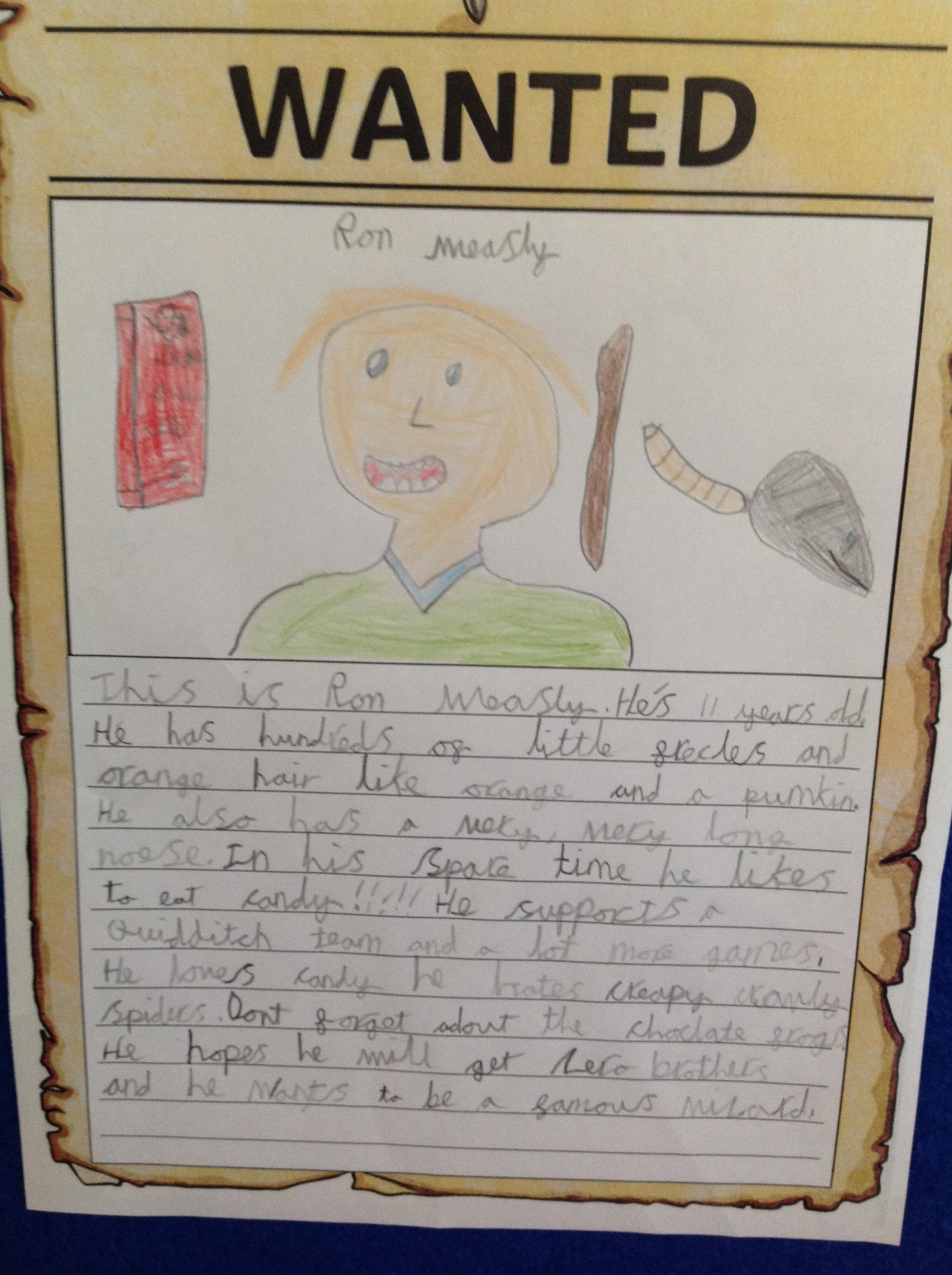 We've been creating our own character descriptions for the main characters of Harry Potter this week! We looked at JK Rowling's original text before having a go ourselves. We thought about using appearance and personality within our descriptions, as well as learning how to use embedded clauses! We hope you love our Wanted posters!