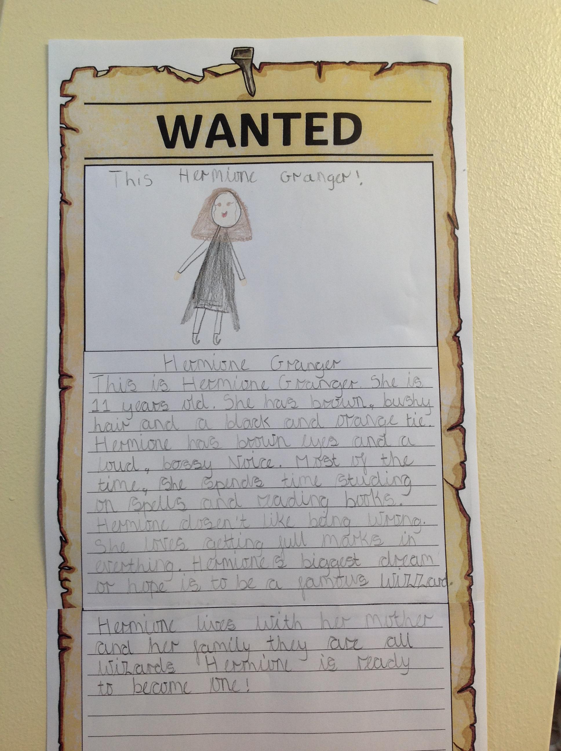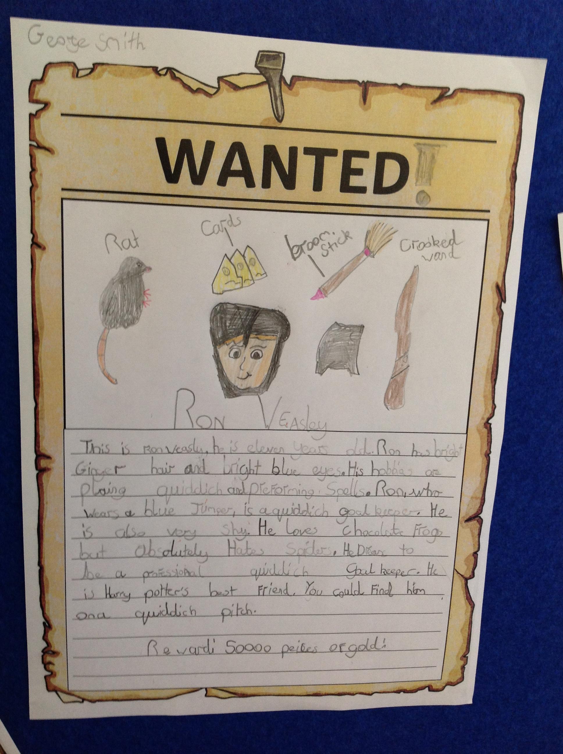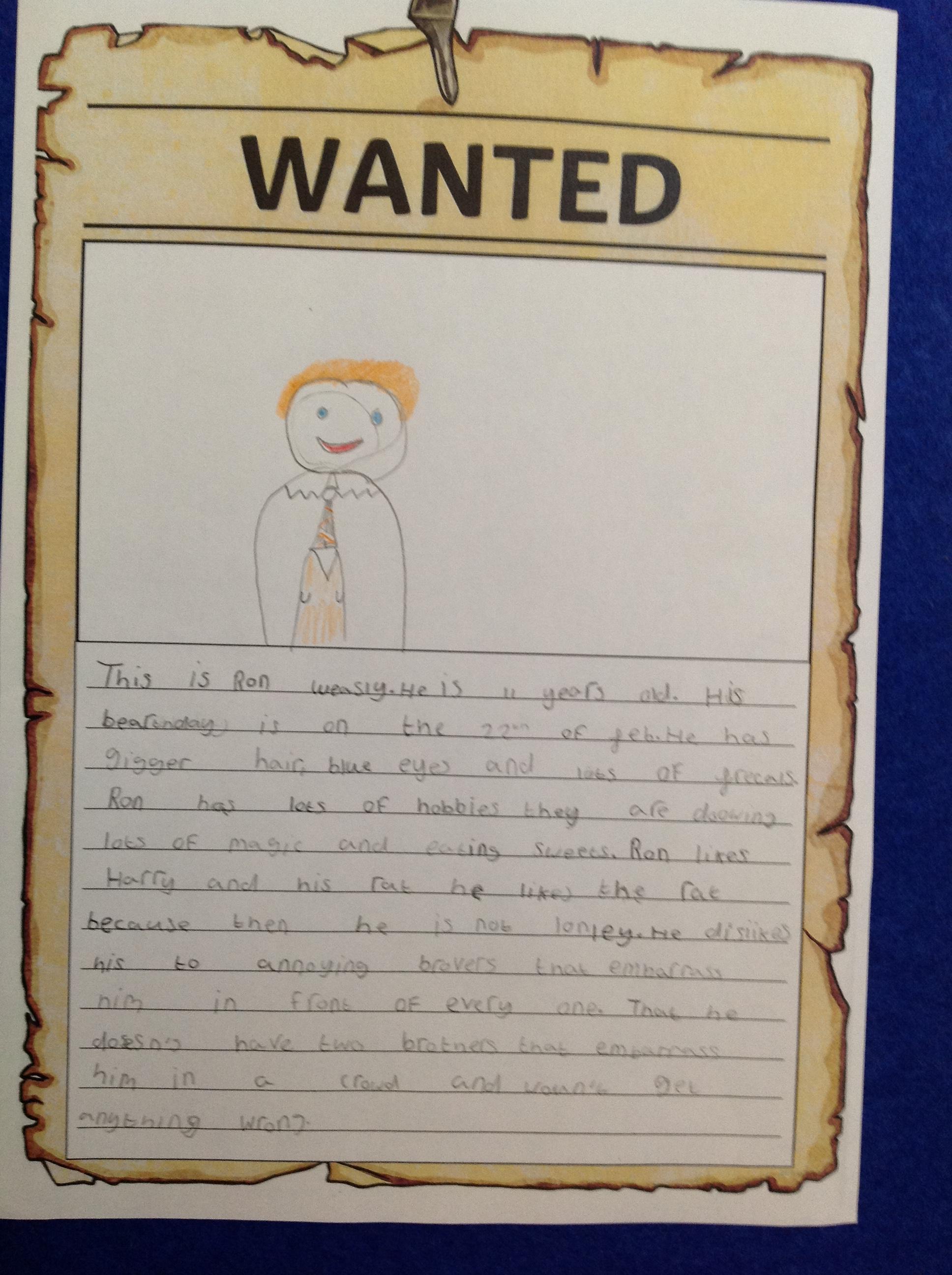 We've been creating our own character descriptions for the main characters of Harry Potter this week! We looked at JK Rowling's original text before having a go ourselves. We thought about using appearance and personality within our descriptions, as well as learning how to use embedded clauses! We hope you love our Wanted posters!