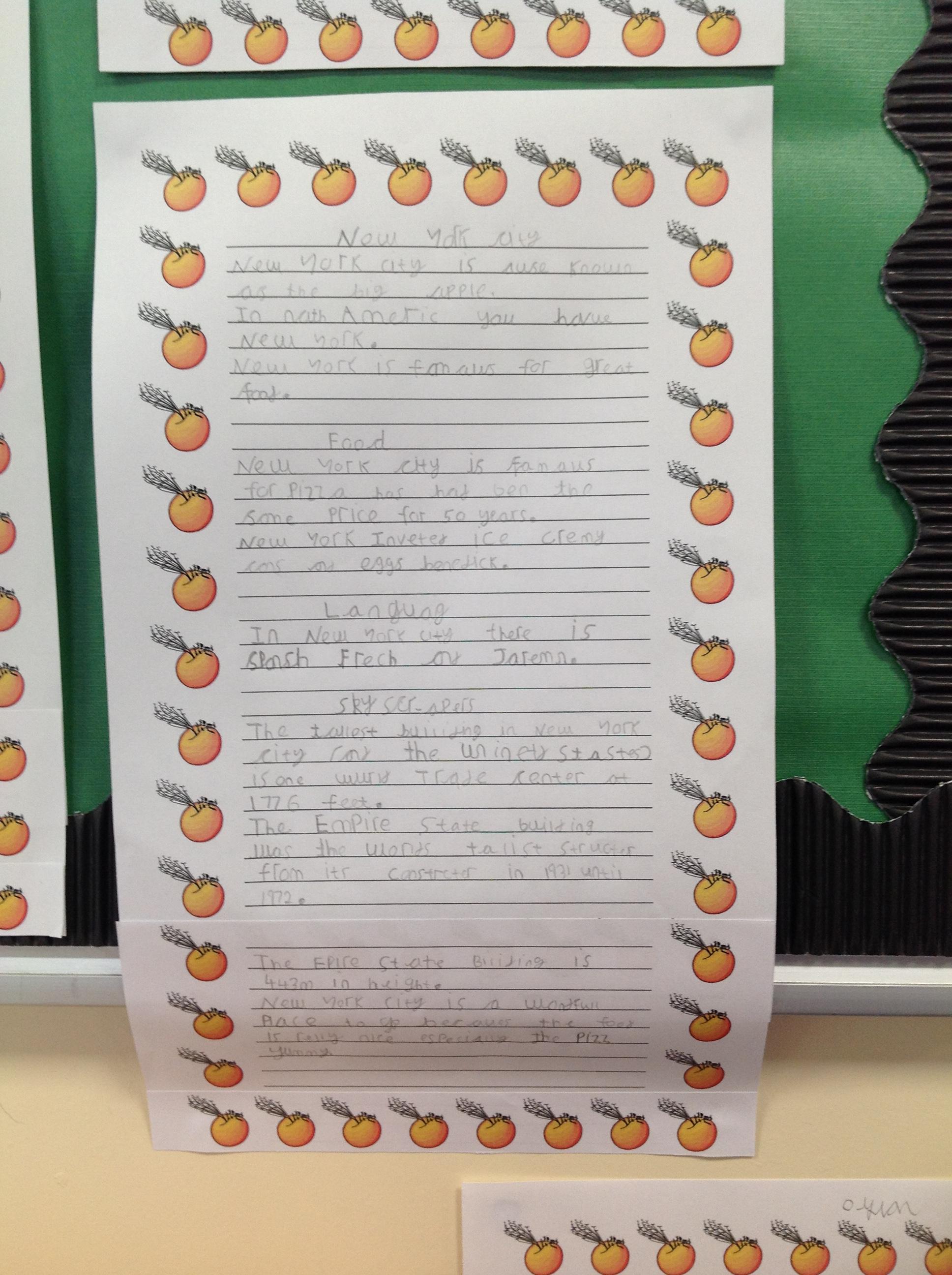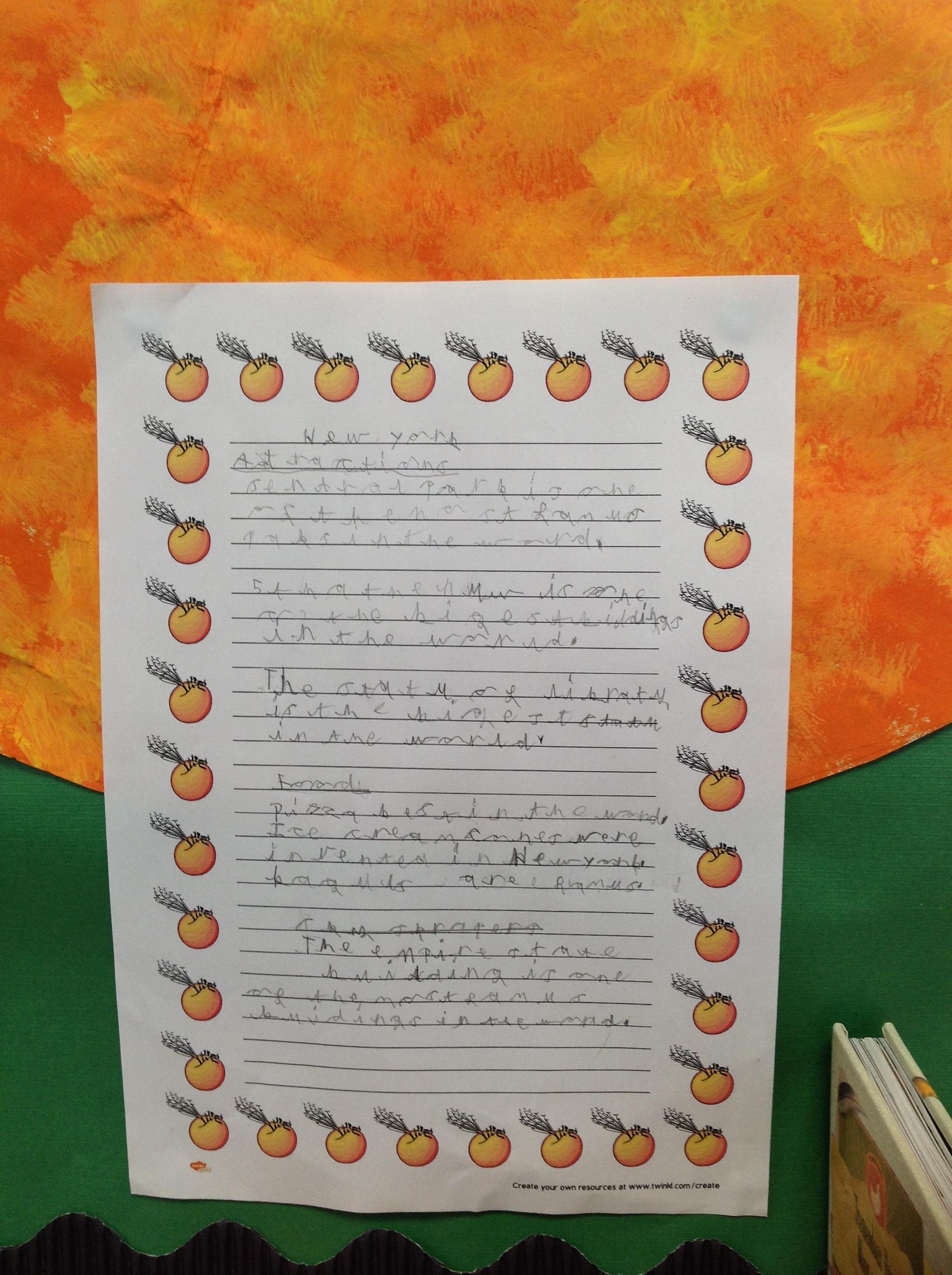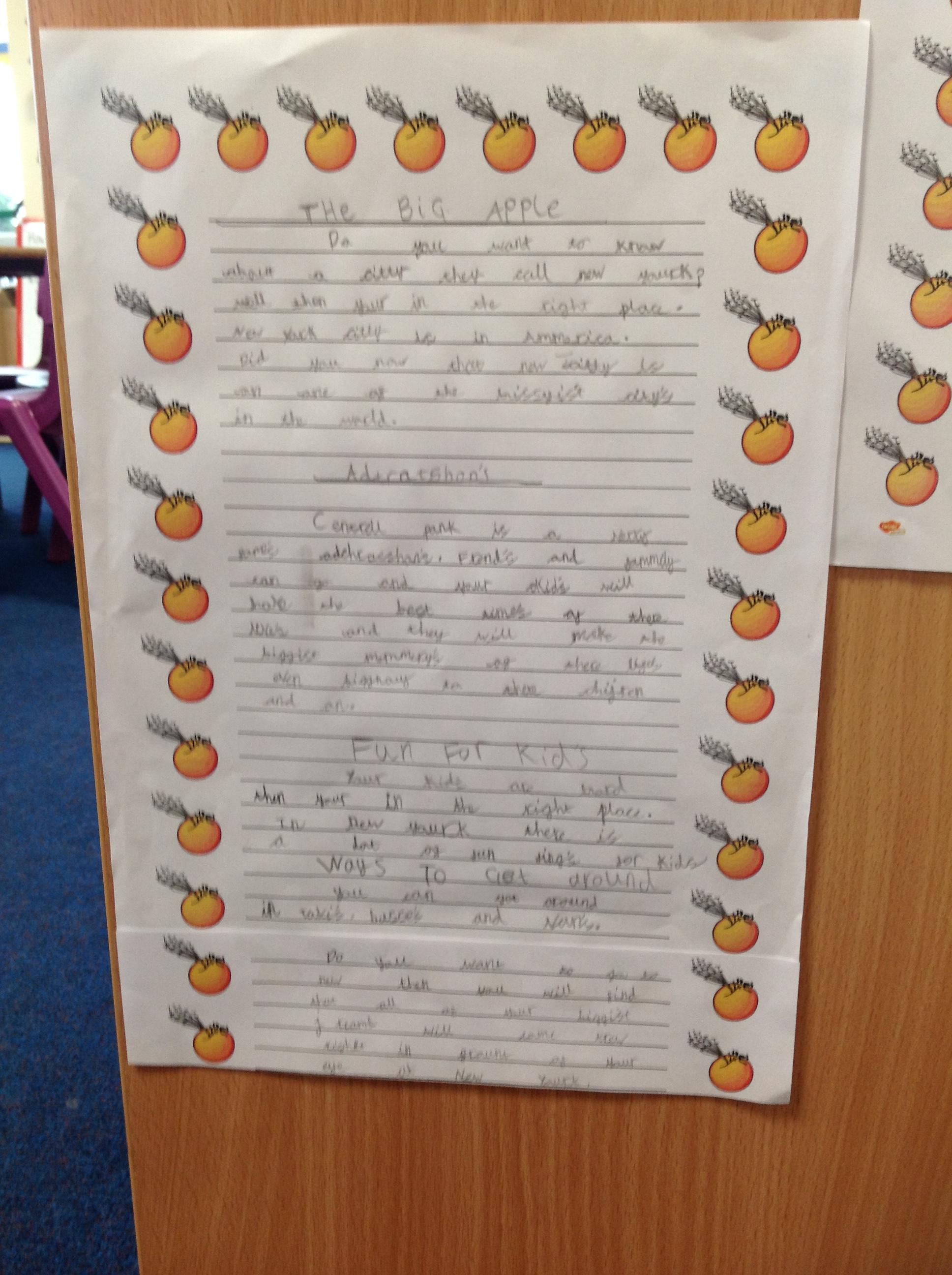 Today, we finished the story of James and the Giant Peach and found out that James made it all the way across the Atlantic Ocean to New York City! We are going to be writing some non-chronological reports all about the Big Apple, so we created some Know and Wonder grids to start off our learning!
