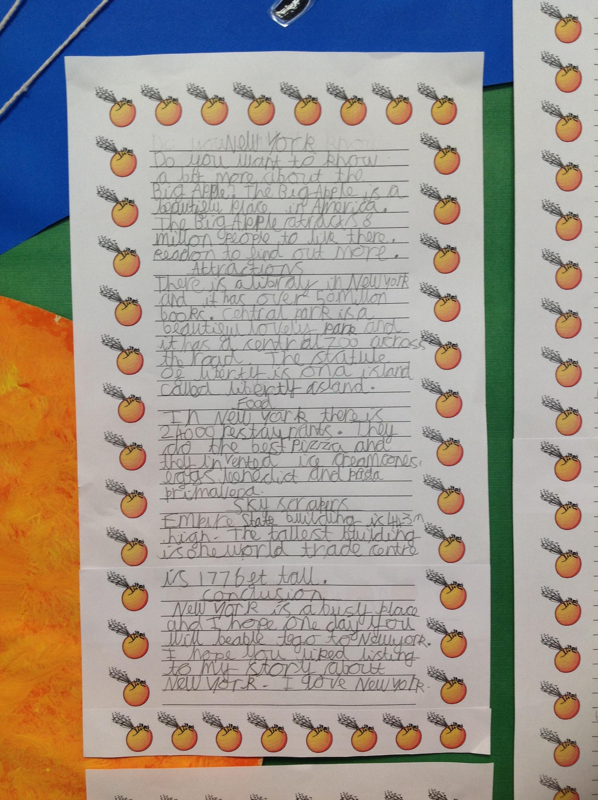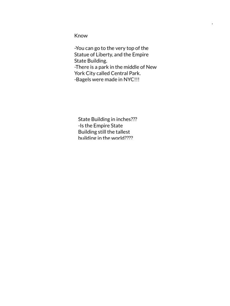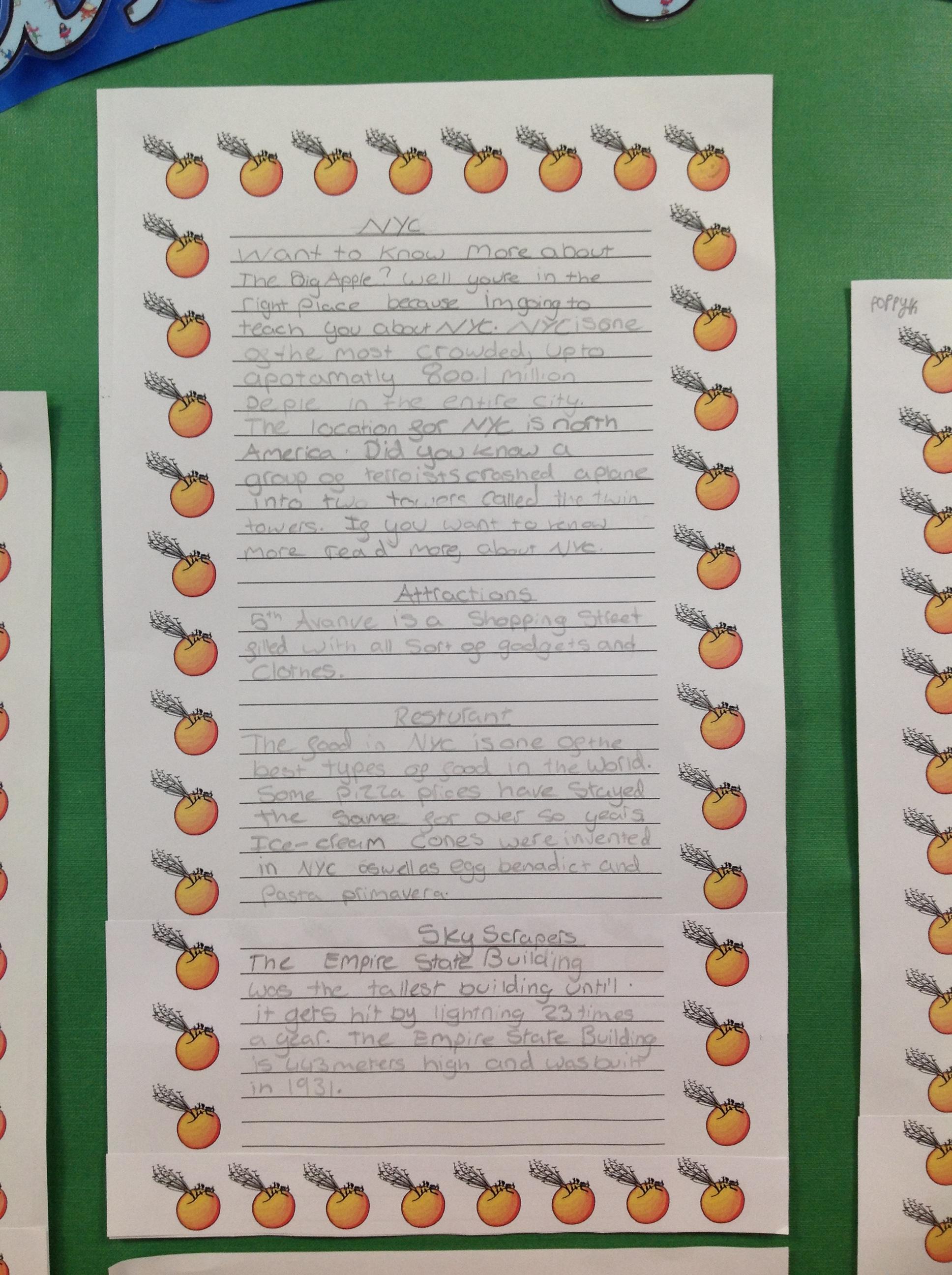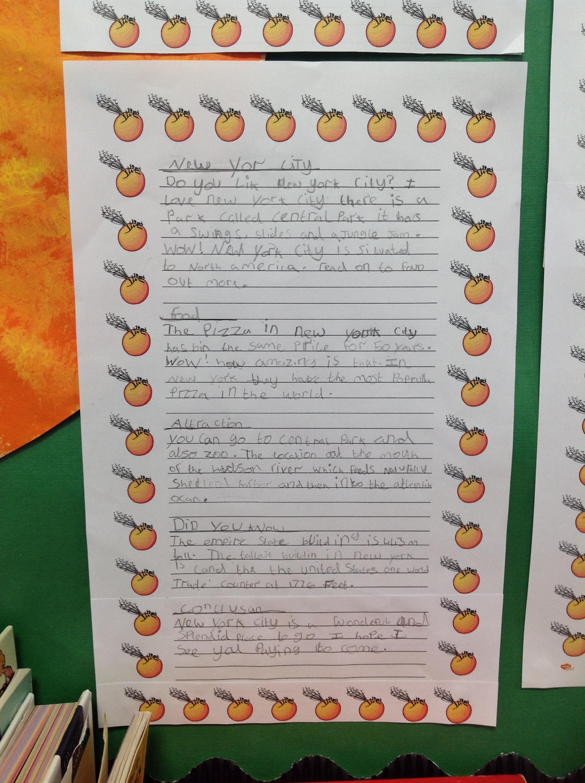 Today, we finished the story of James and the Giant Peach and found out that James made it all the way across the Atlantic Ocean to New York City! We are going to be writing some non-chronological reports all about the Big Apple, so we created some Know and Wonder grids to start off our learning!