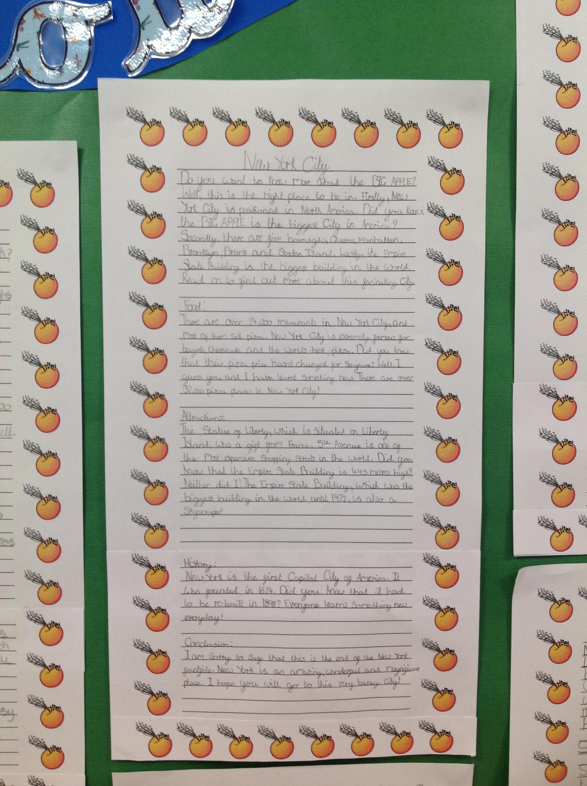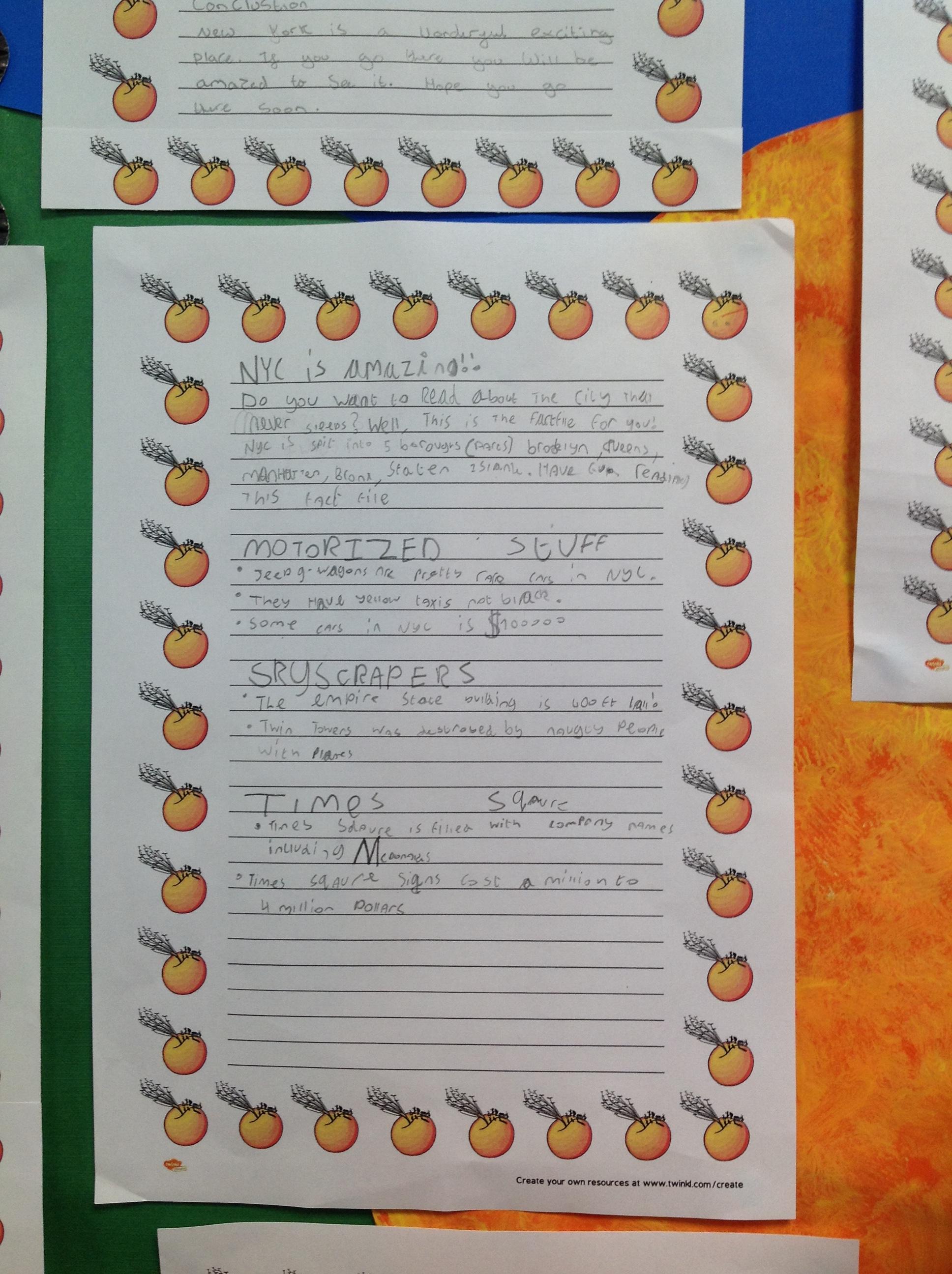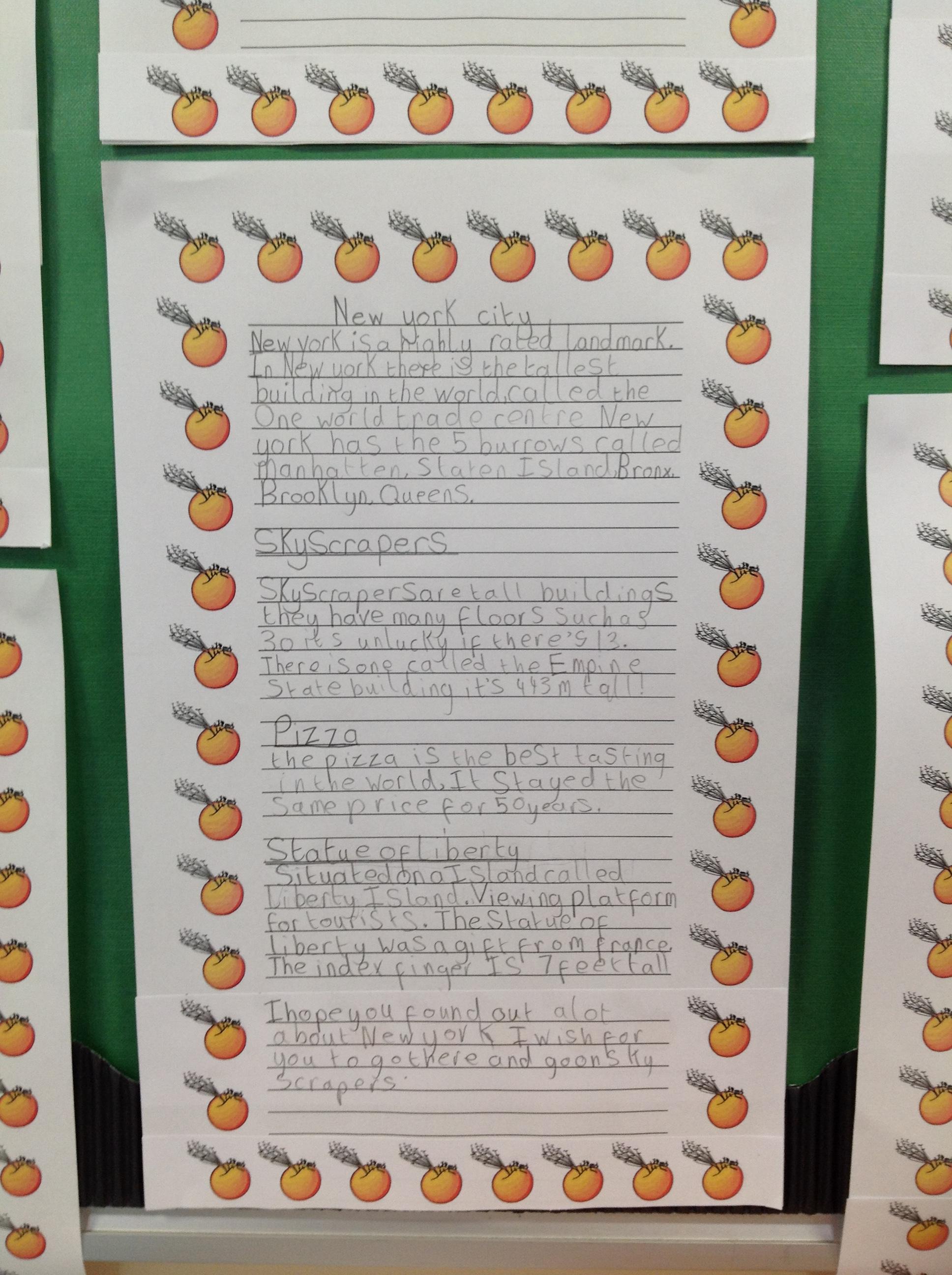 We are so proud of our writing this week...we've finished our factfiles for James Trotter all about New York! We thought about all the features of a non-chronological reports and shared all our wonderful knowledge on the Big Apple!
