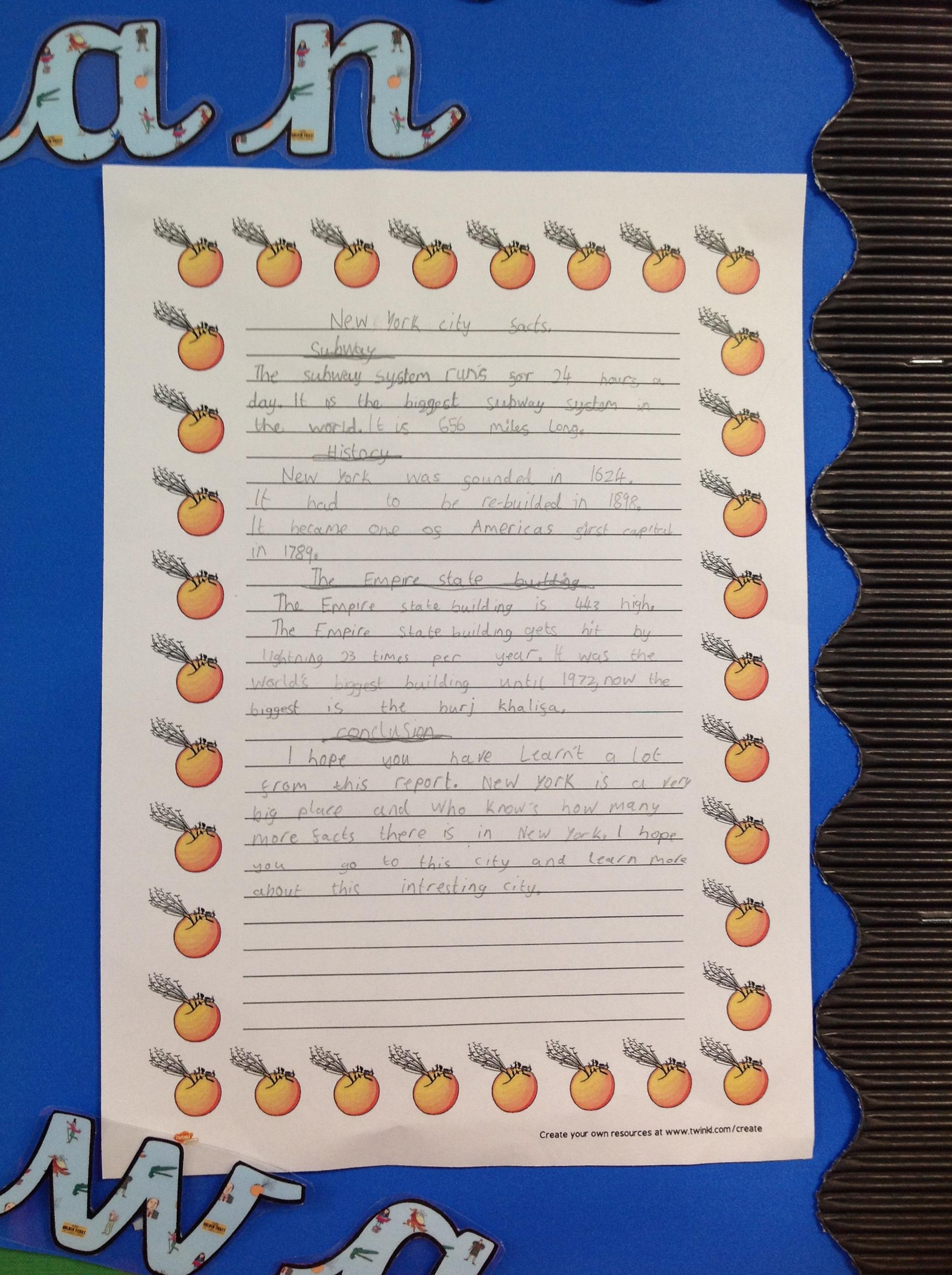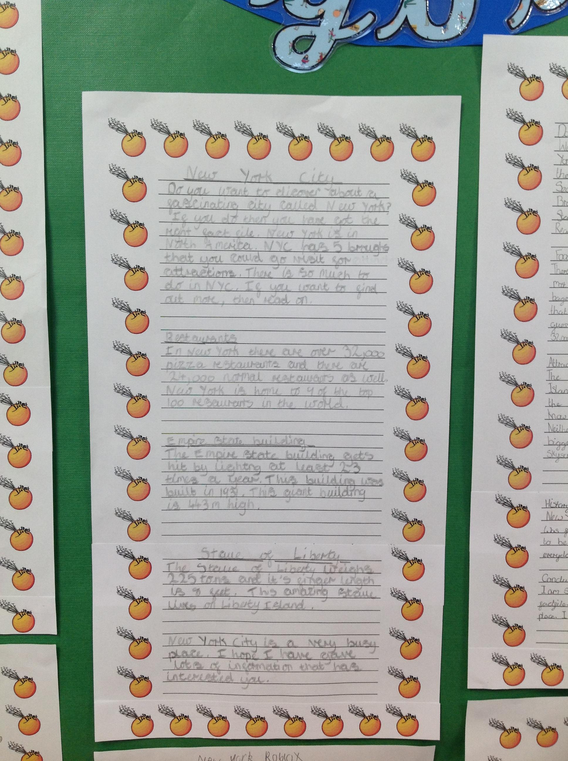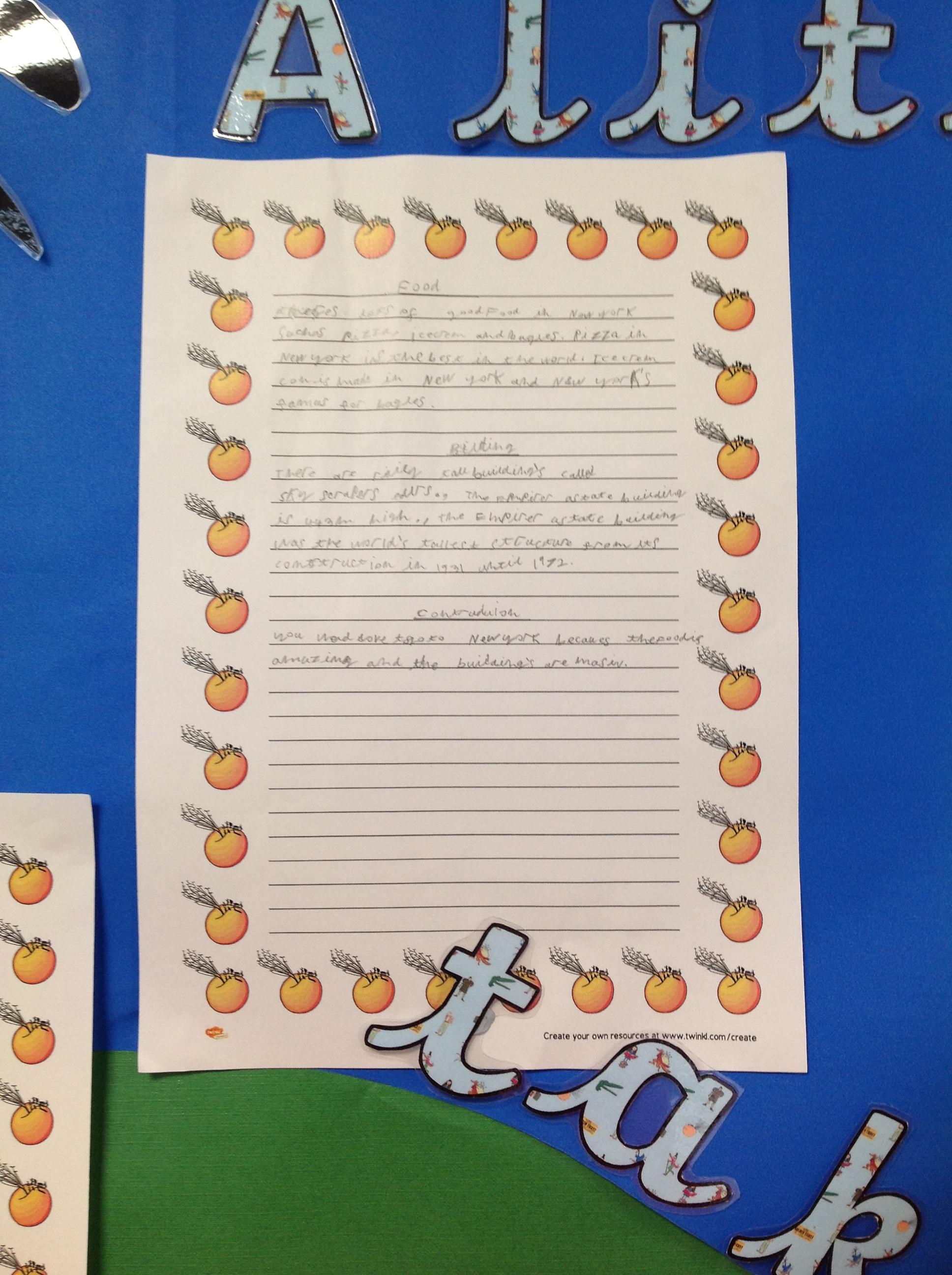 We are so proud of our writing this week...we've finished our factfiles for James Trotter all about New York! We thought about all the features of a non-chronological reports and shared all our wonderful knowledge on the Big Apple!