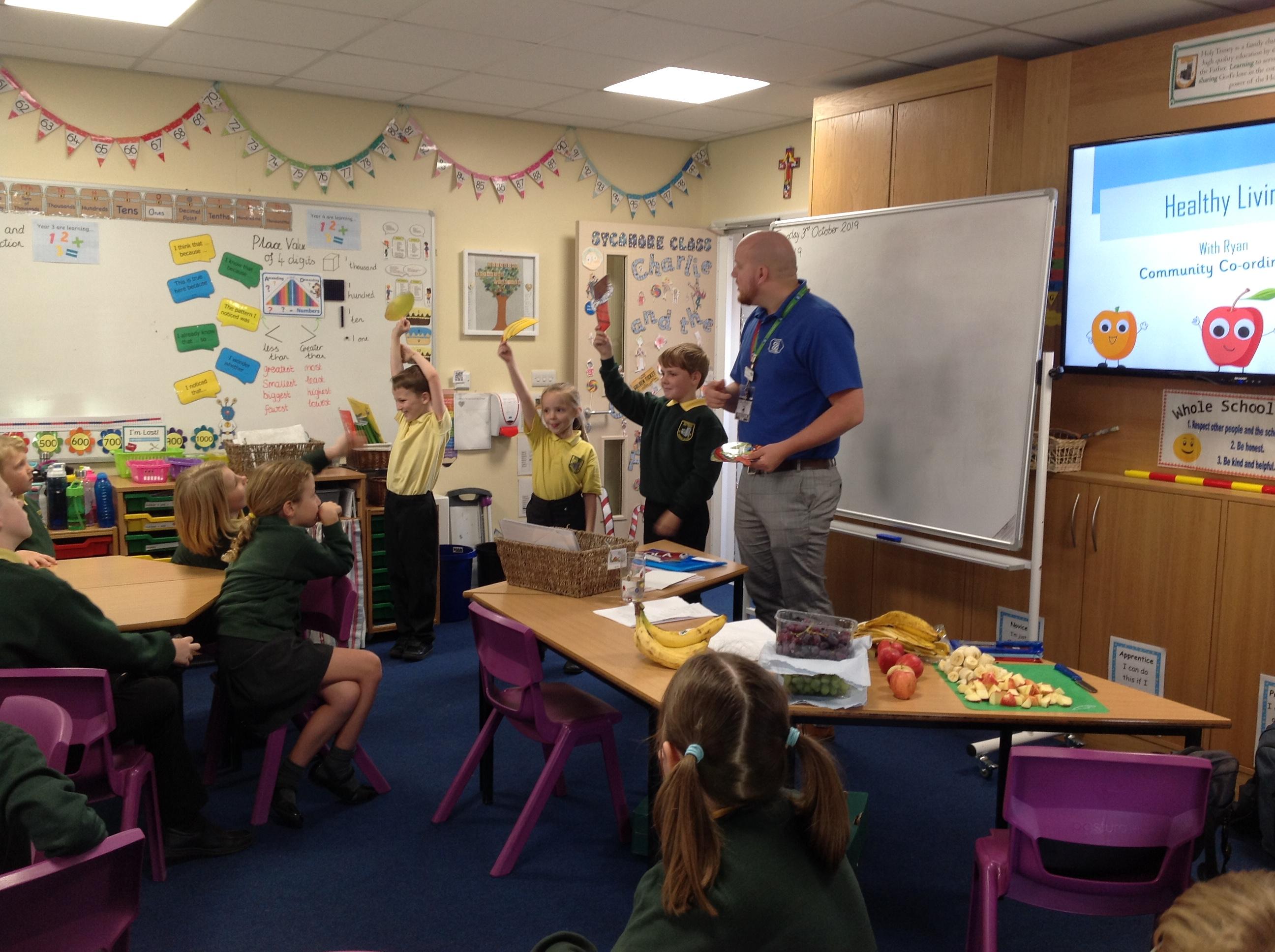 We had a wonderful morning with Ryan from Lincolnshire Coop to discuss Fairtrade and healthy eating. We looked at different products sold by the Coop and how to identified whether things are Fairtrade or not. We got to taste some of the fruit and chocolate too!