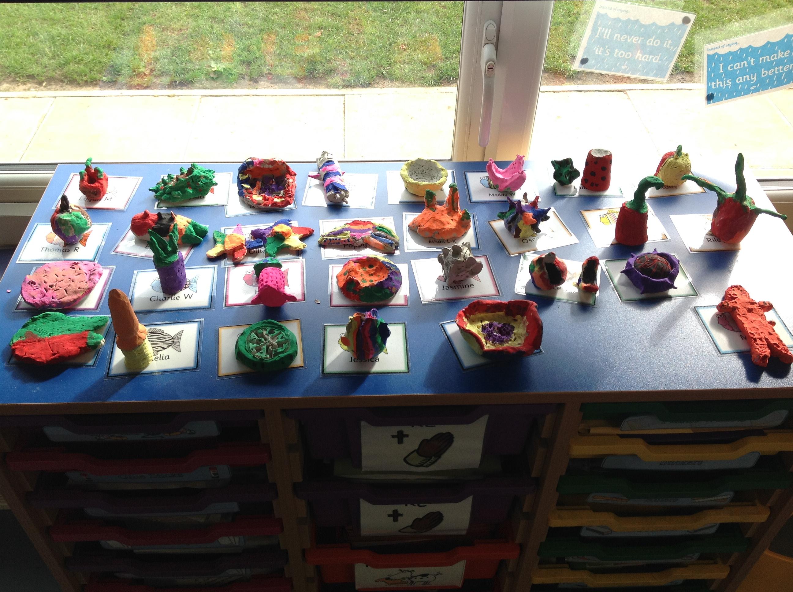 Today we started our art project of designing and creating our own new fruit or vegetables! We have been looking at lots of different pieces of fruit and vegetables and then thought about how we would create something new. We then adapted this to create it out of clay. Next week, we're going to paint these ready to design it's packaging in D&T!