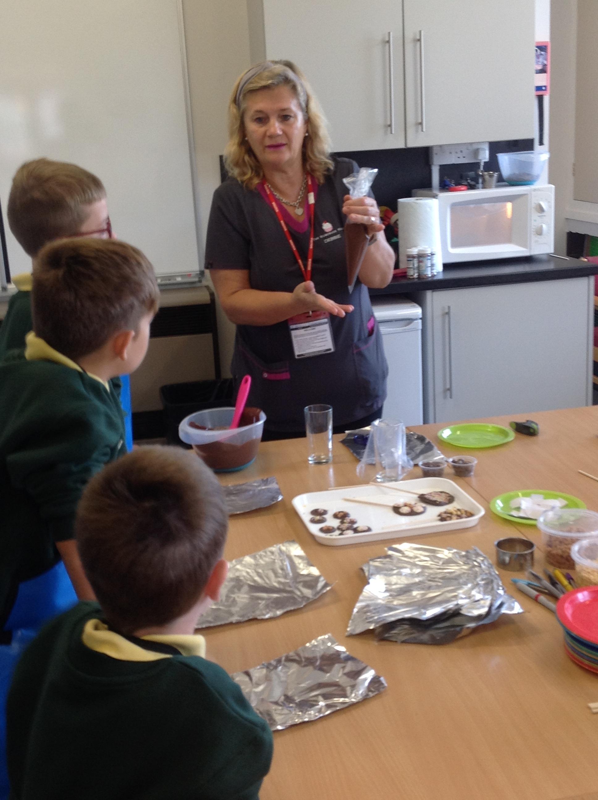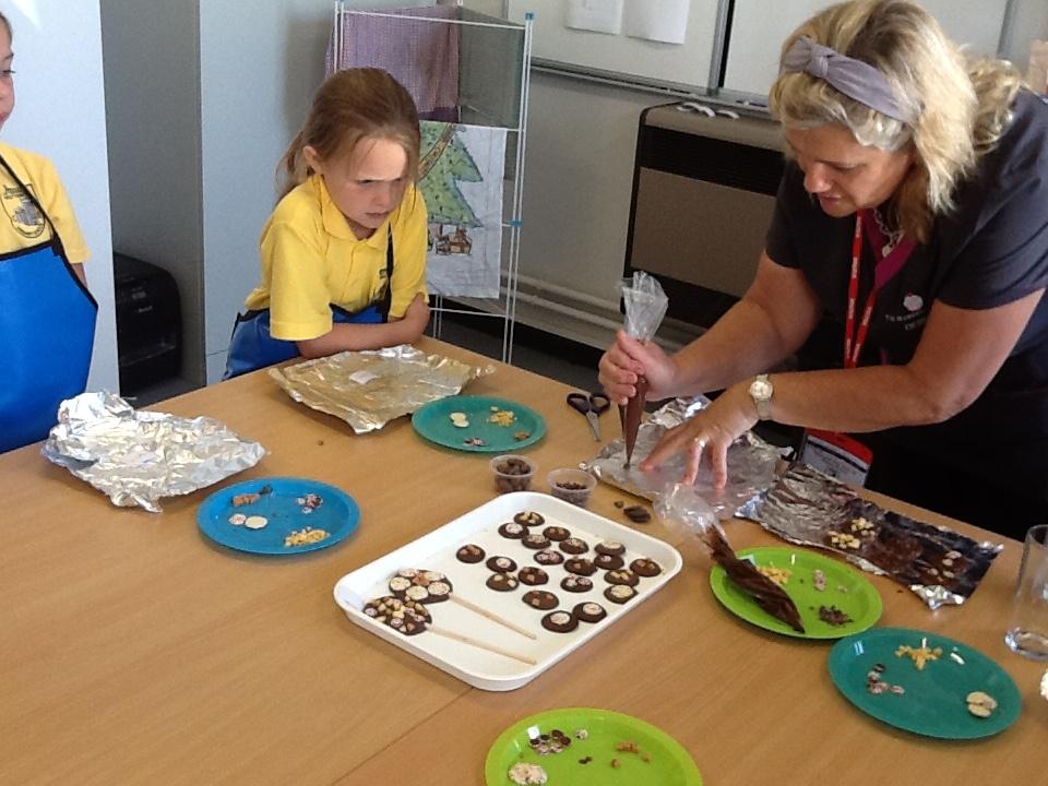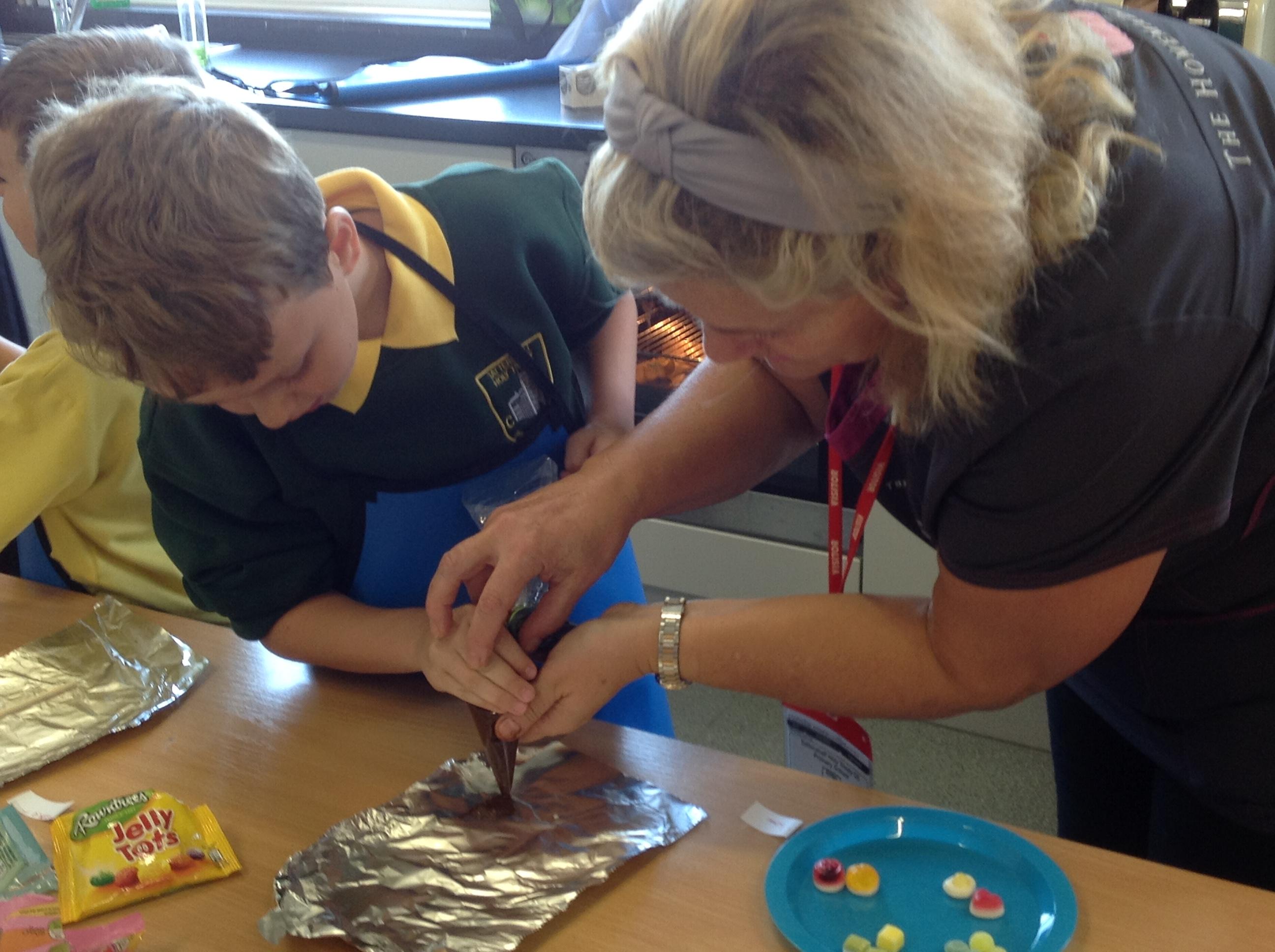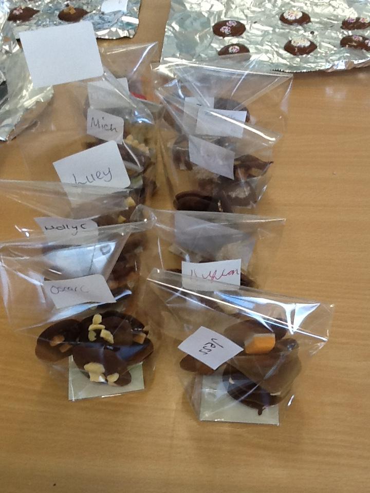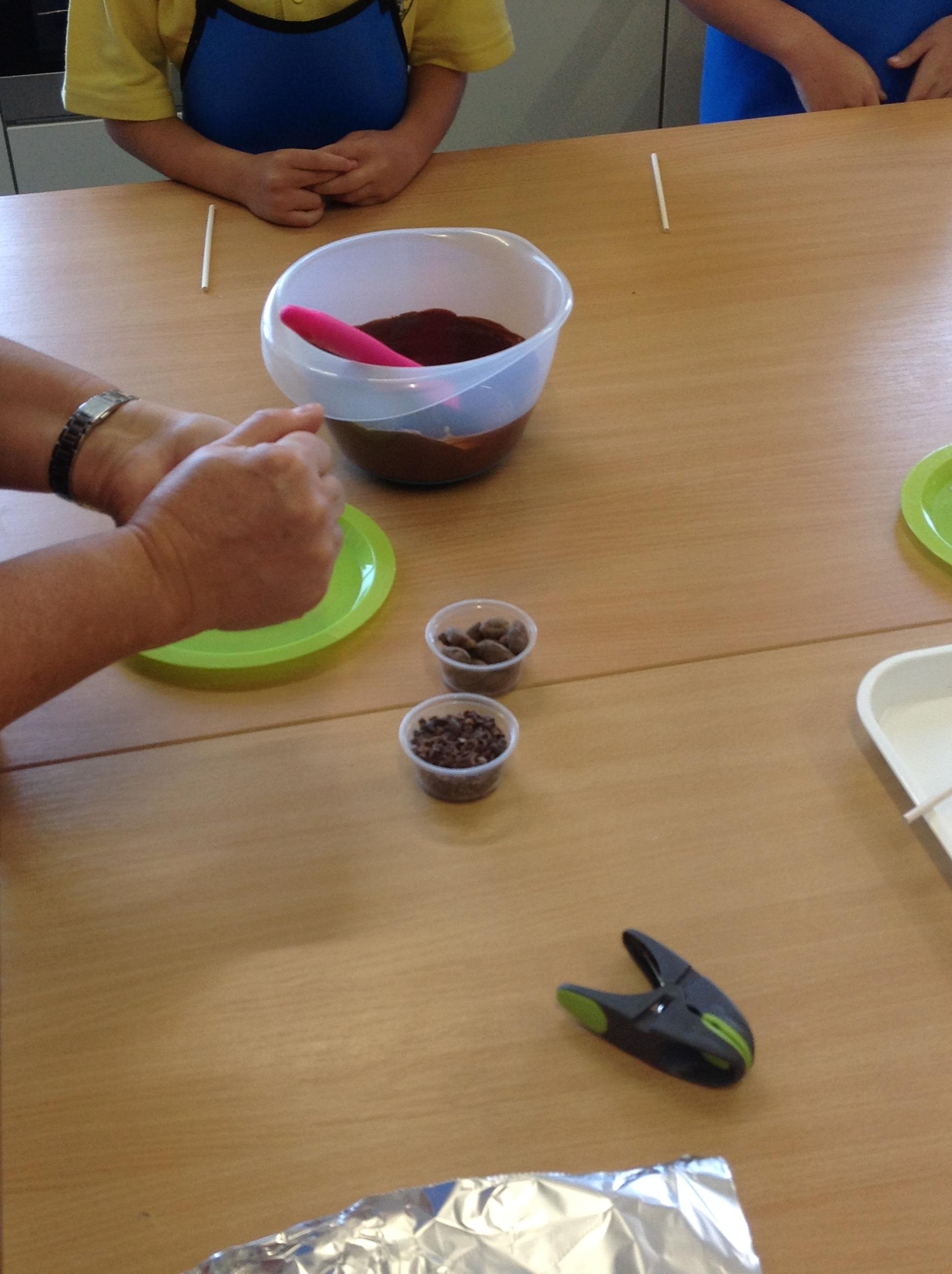 What a fantastic day we had yesterday! Debbie from The Homemade House came to visit us and shared her passion for chocolate! We learnt about where chocolate comes from and what the cocoa bean looks like. We got to try some Cocoa Nibs...which were very bitter and learnt that chocolate gets it's sweet taste from the sugar. We then practiced our D&T skills by piping melted chocolate into button shapes and decorating! They were delicious!