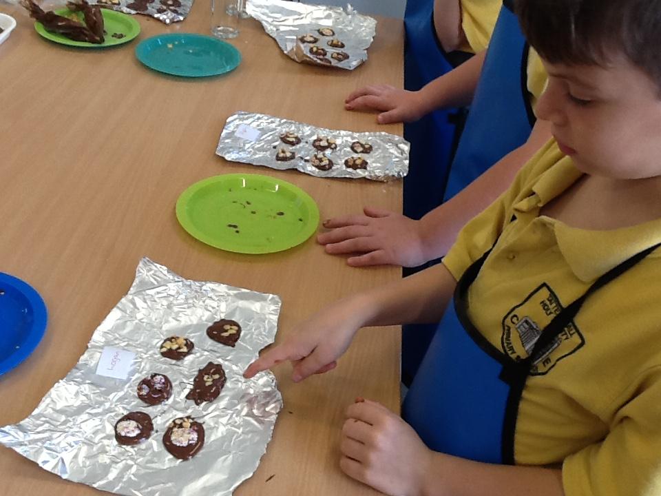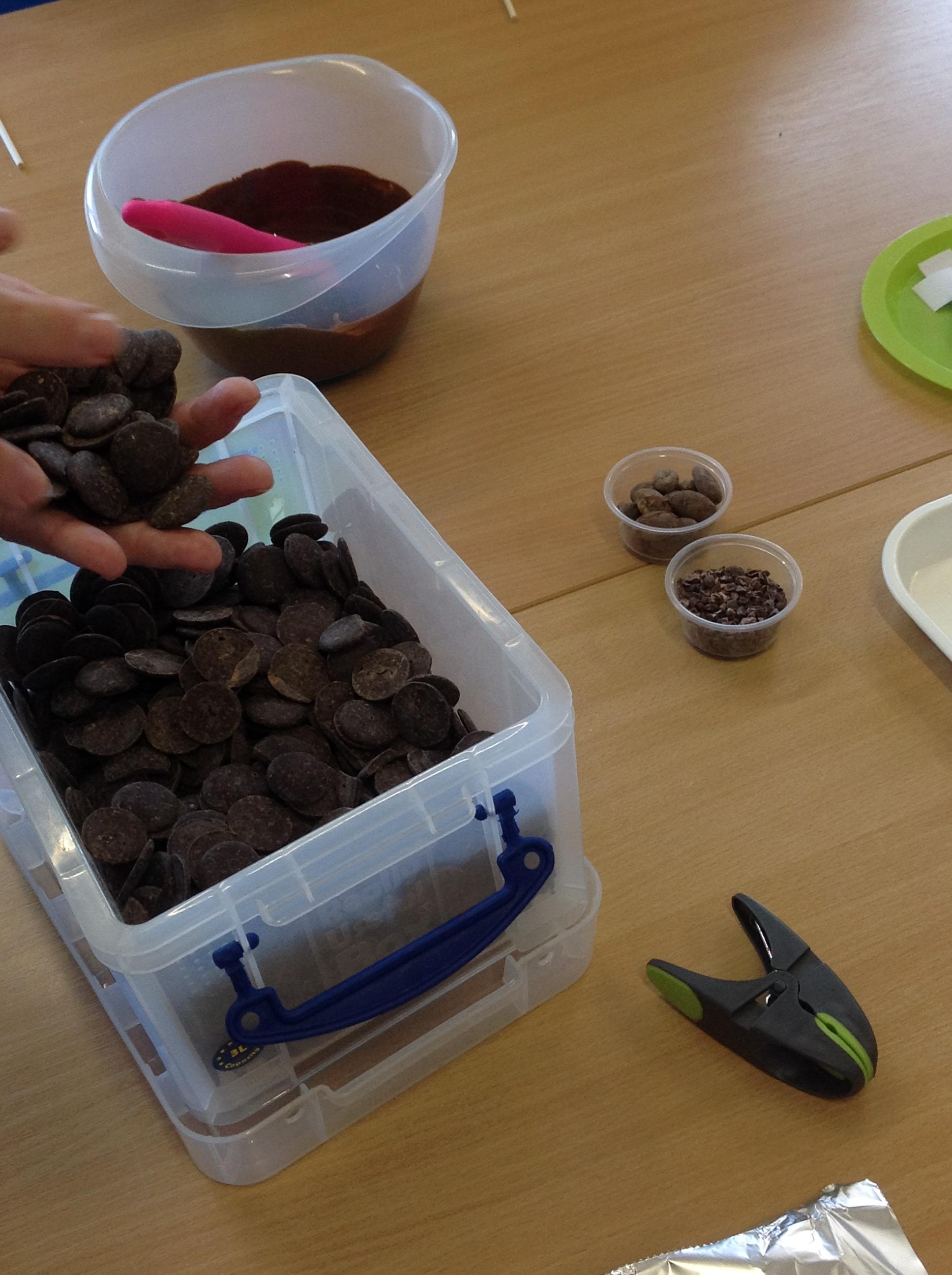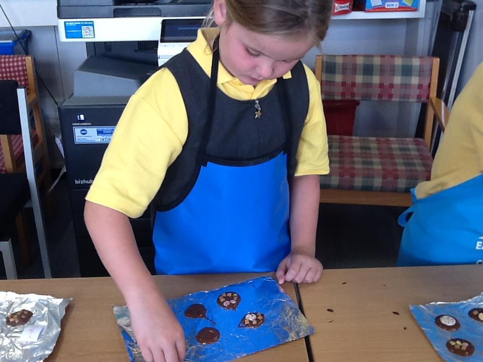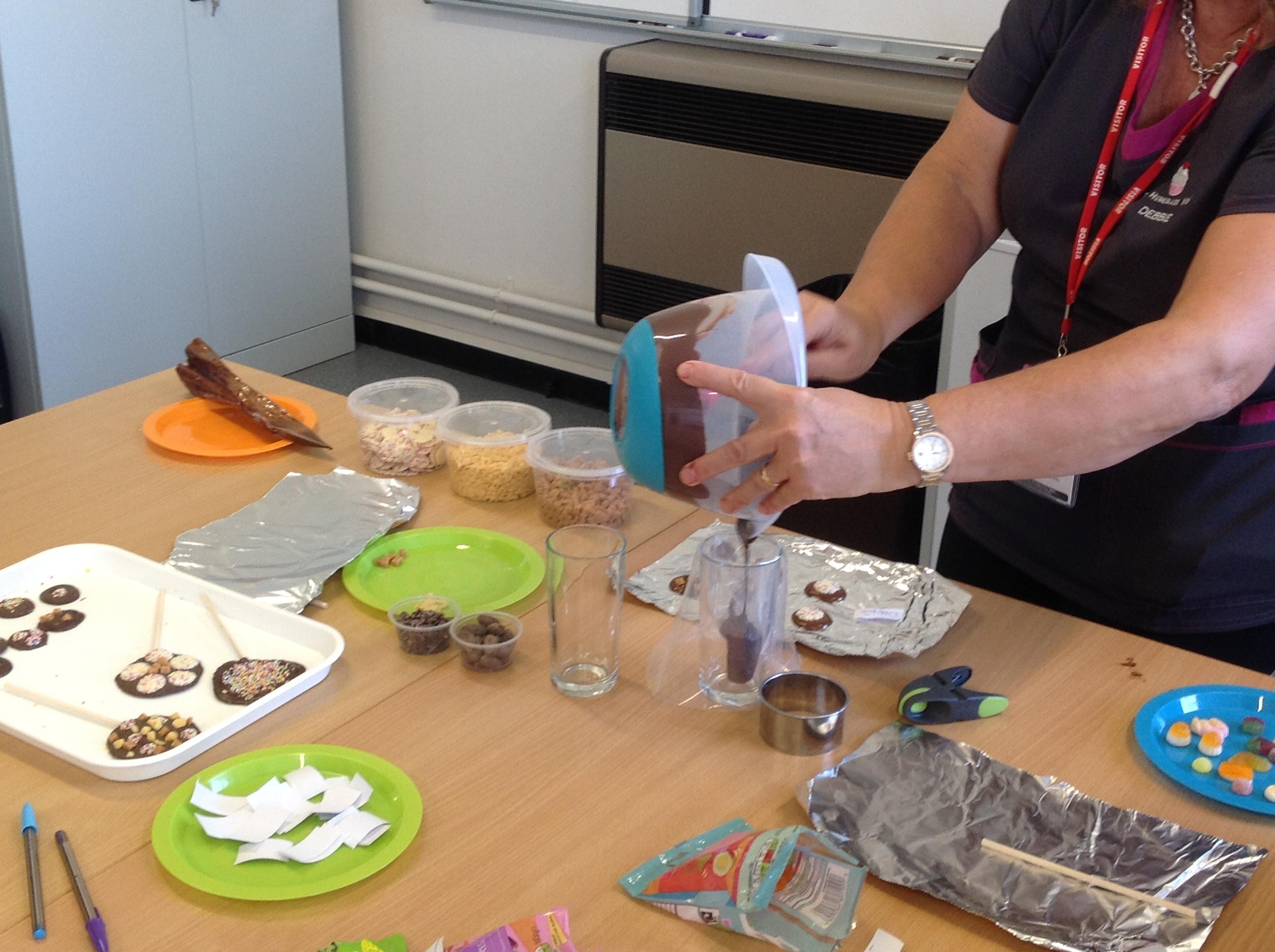 What a fantastic day we had yesterday! Debbie from The Homemade House came to visit us and shared her passion for chocolate! We learnt about where chocolate comes from and what the cocoa bean looks like. We got to try some Cocoa Nibs...which were very bitter and learnt that chocolate gets it's sweet taste from the sugar. We then practiced our D&T skills by piping melted chocolate into button shapes and decorating! They were delicious!