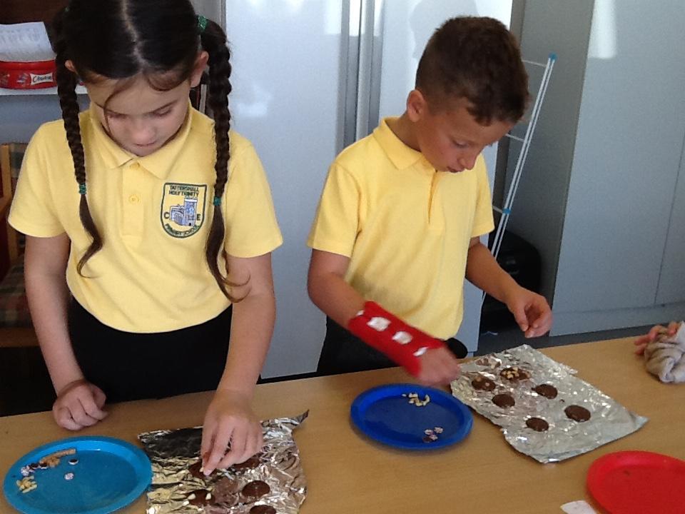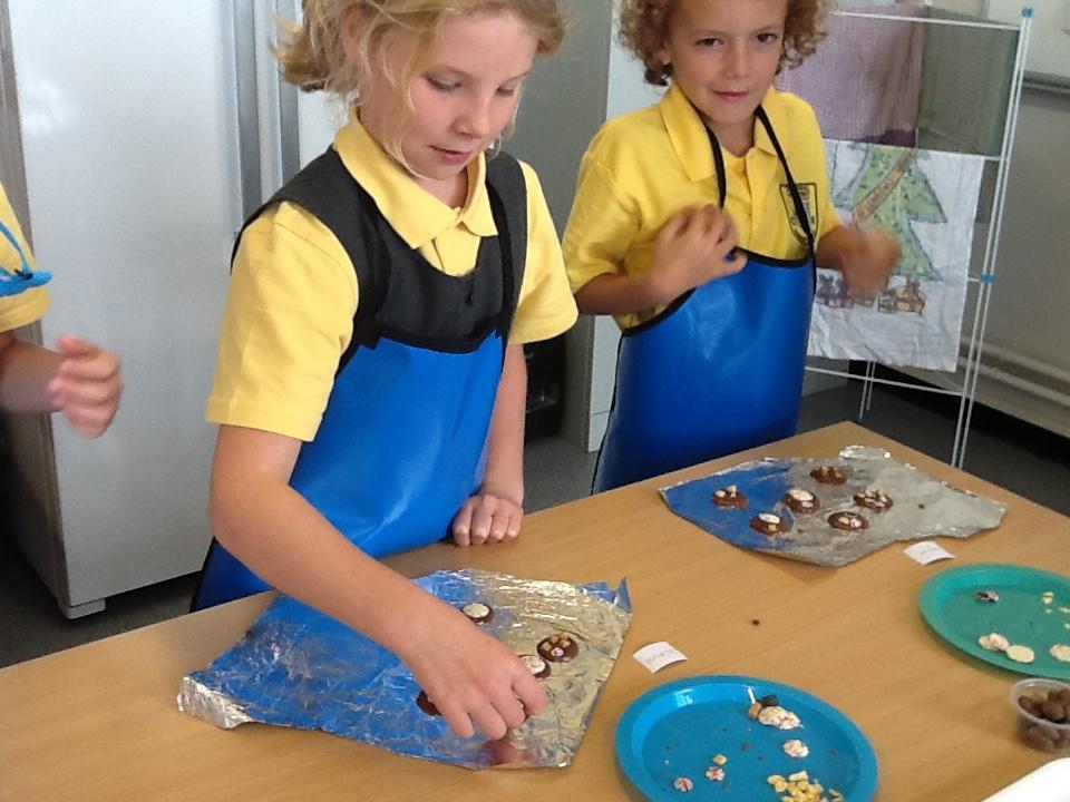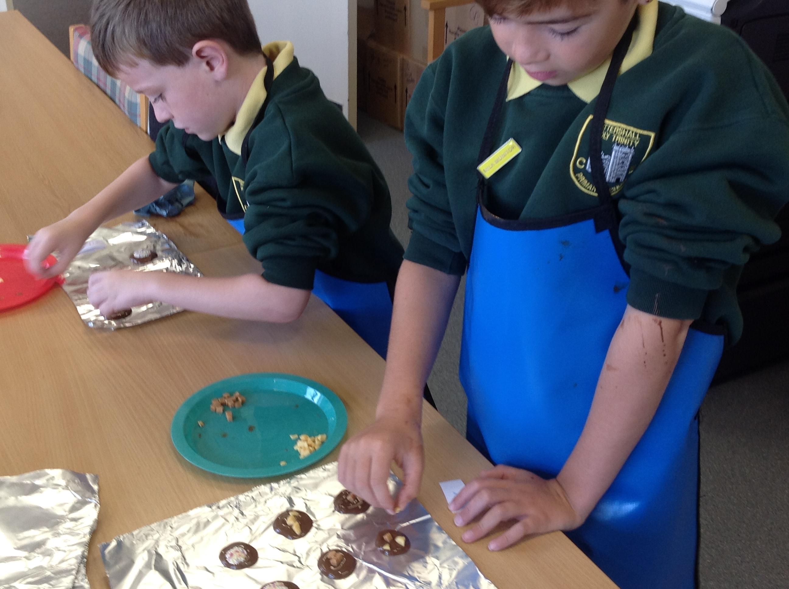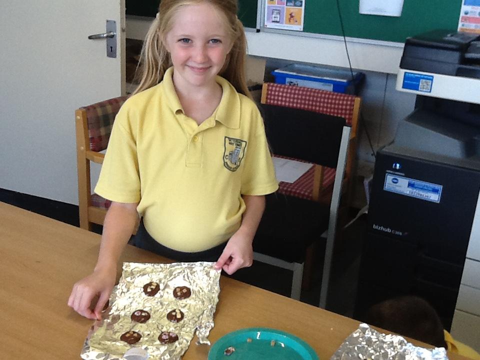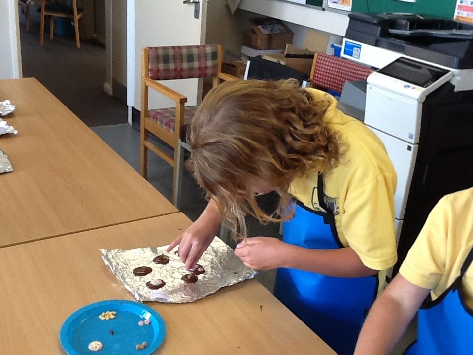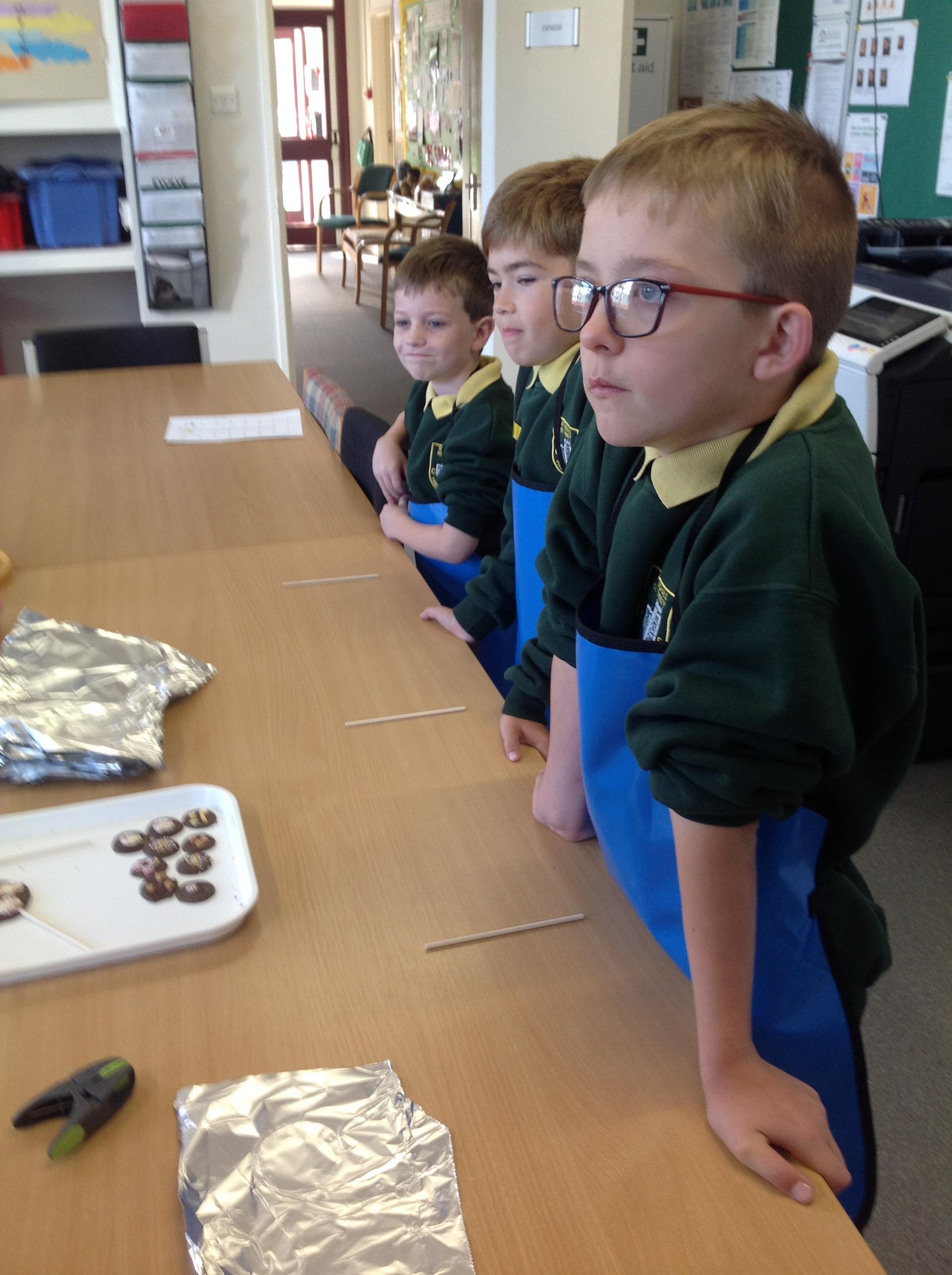 What a fantastic day we had yesterday! Debbie from The Homemade House came to visit us and shared her passion for chocolate! We learnt about where chocolate comes from and what the cocoa bean looks like. We got to try some Cocoa Nibs...which were very bitter and learnt that chocolate gets it's sweet taste from the sugar. We then practiced our D&T skills by piping melted chocolate into button shapes and decorating! They were delicious!