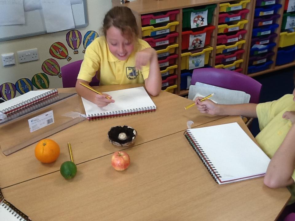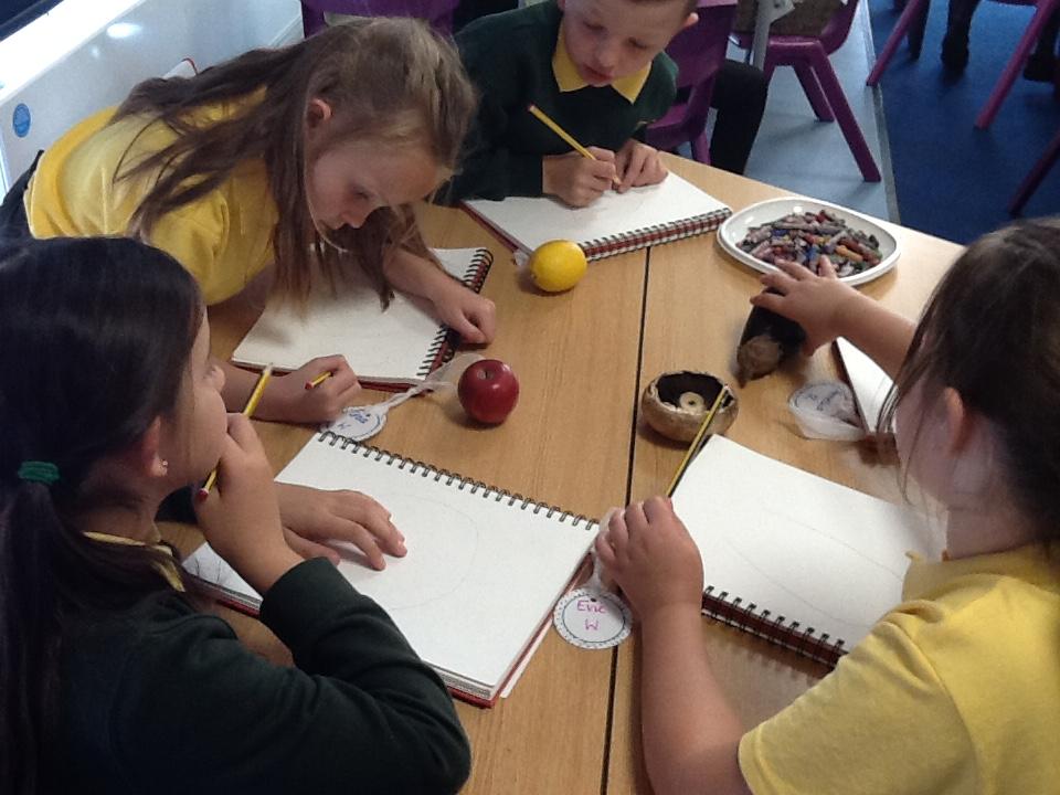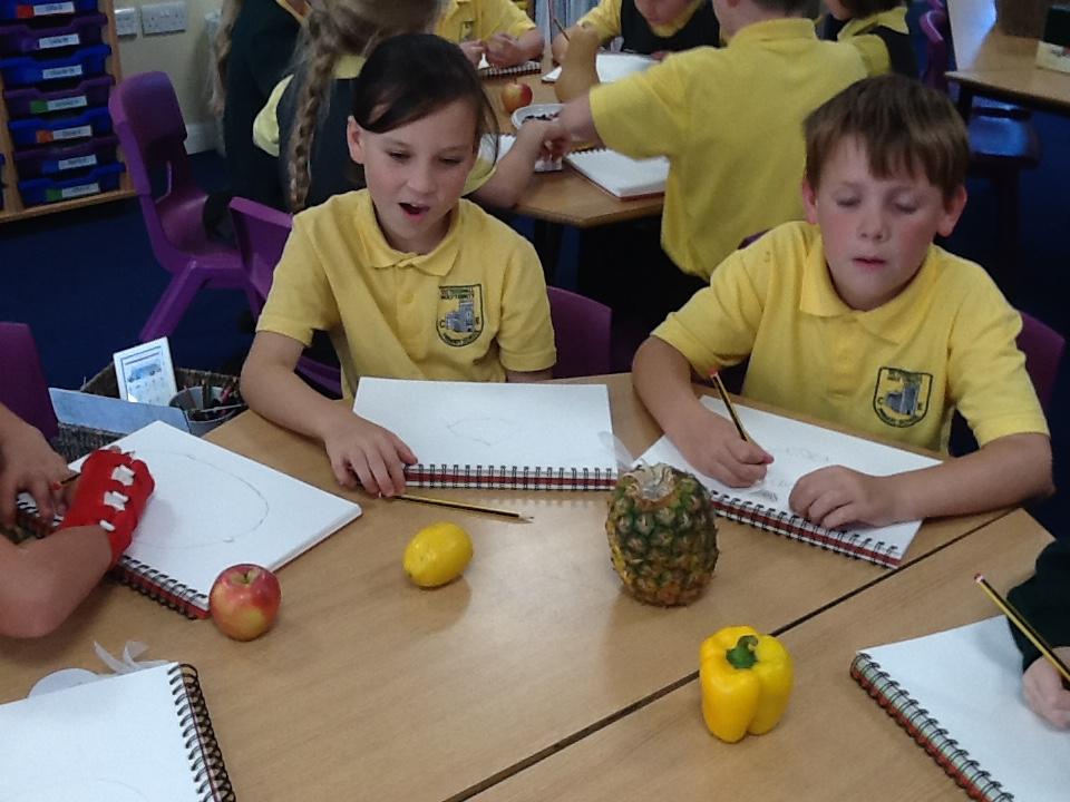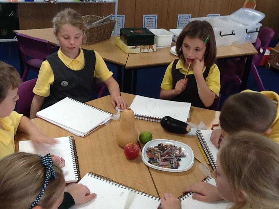 We have had a lovely Friday afternoon sketching different types of fruit and vegetables. We then used oil pastels to shade, give colour and add detail. We can't wait to display these in the classroom!