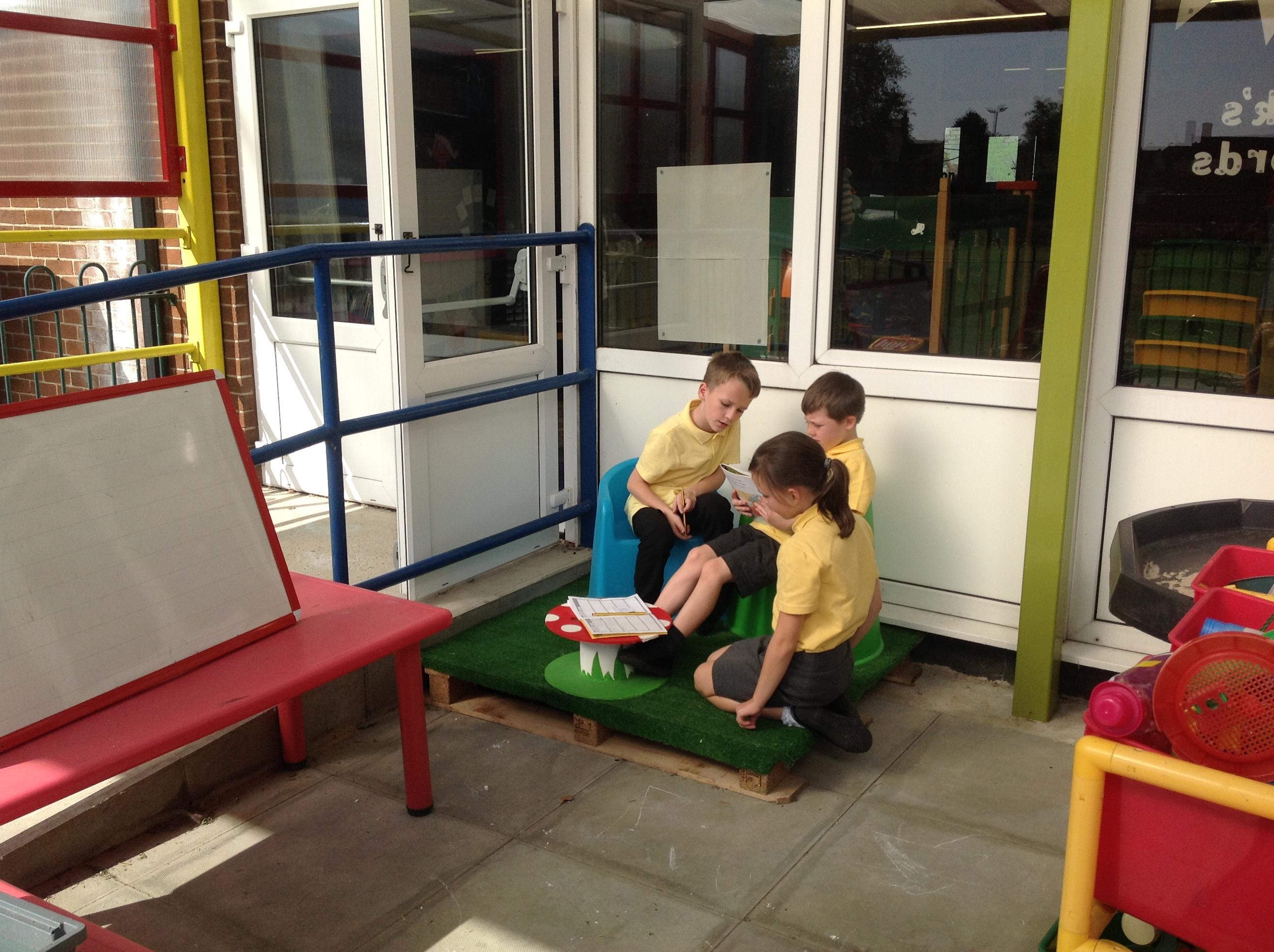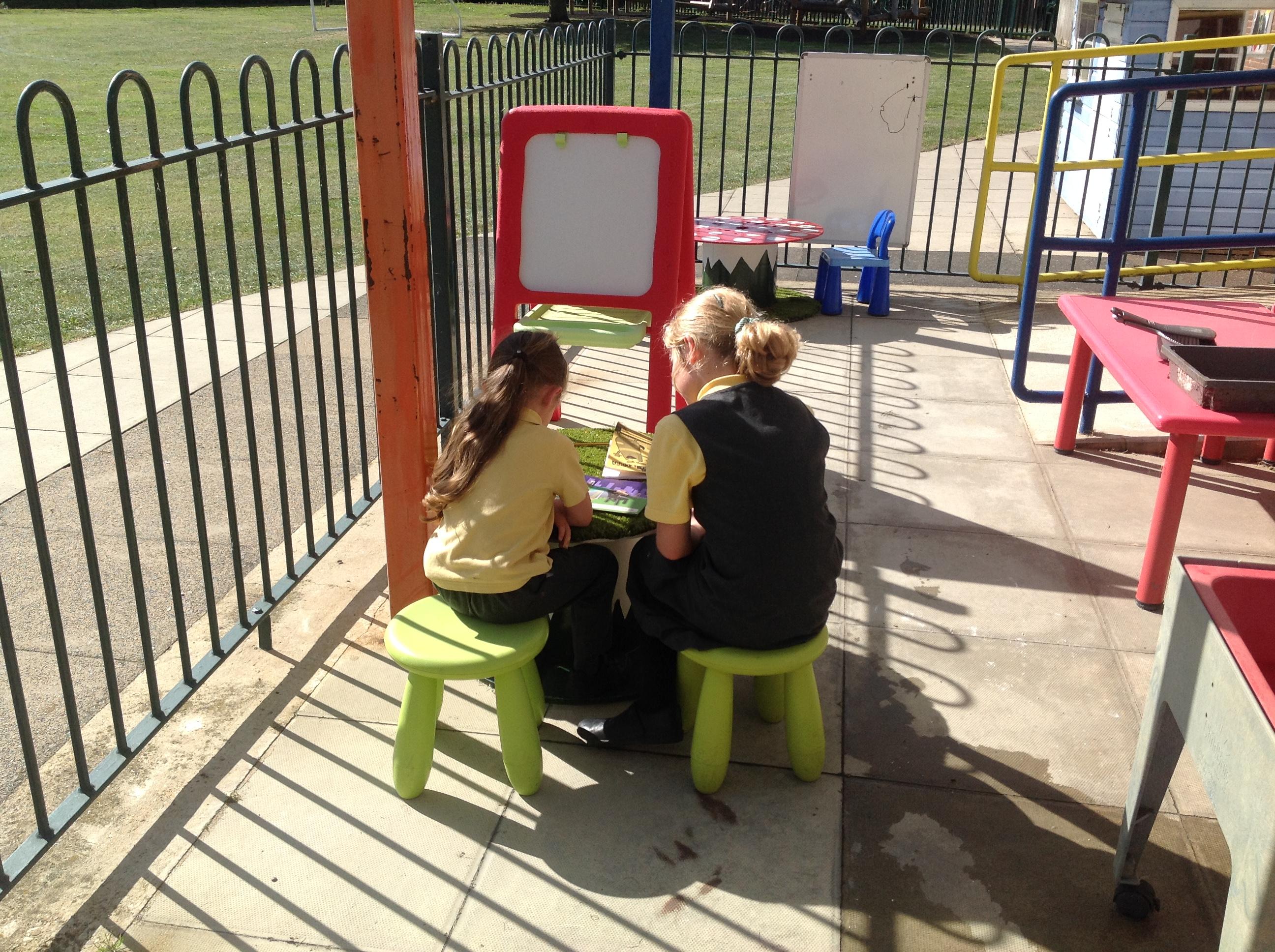 We finished off a long week with a lovely shared reading session with Willow Class. We heard Willow children read their reading books in the sunshine and then got to write in their Reading Records! We loved listening and helping them with our own knowledge!