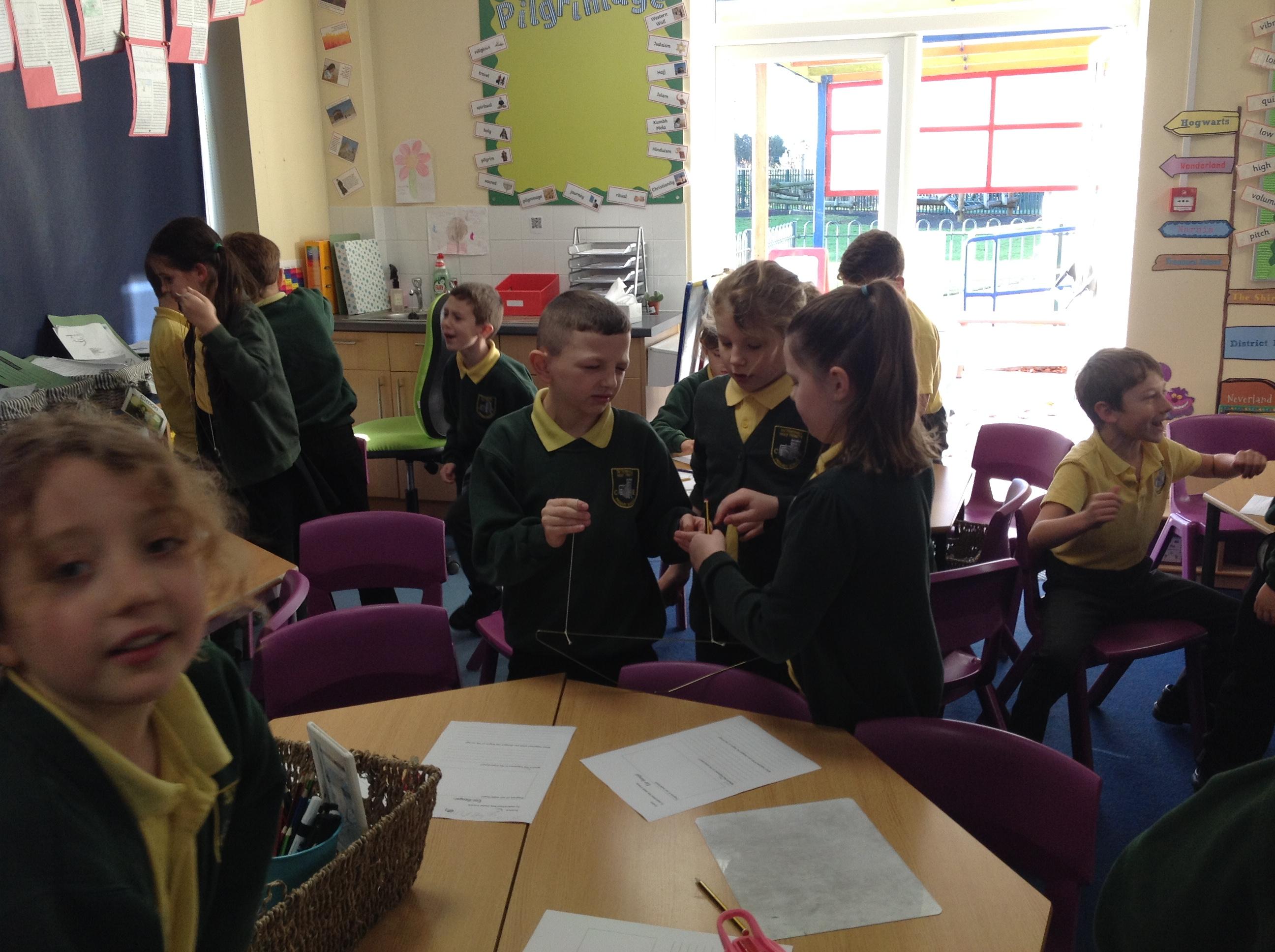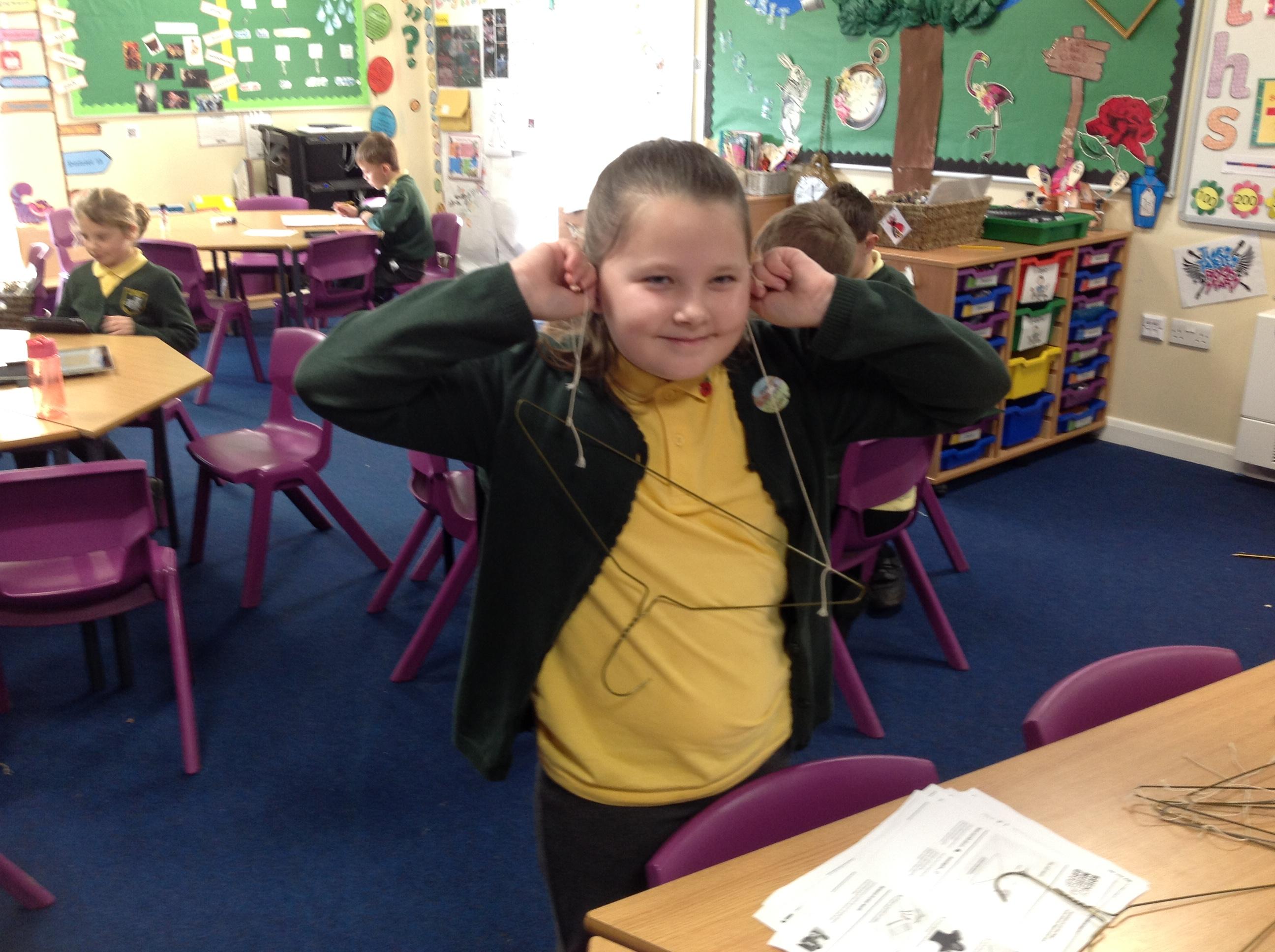 Today, we made ear gongs! We were given the instructions to follow and had to describe what happened when we put our fingers in our ears! We loved the mystery of what might happen, and then we adjusted the length of the string to see what changed!