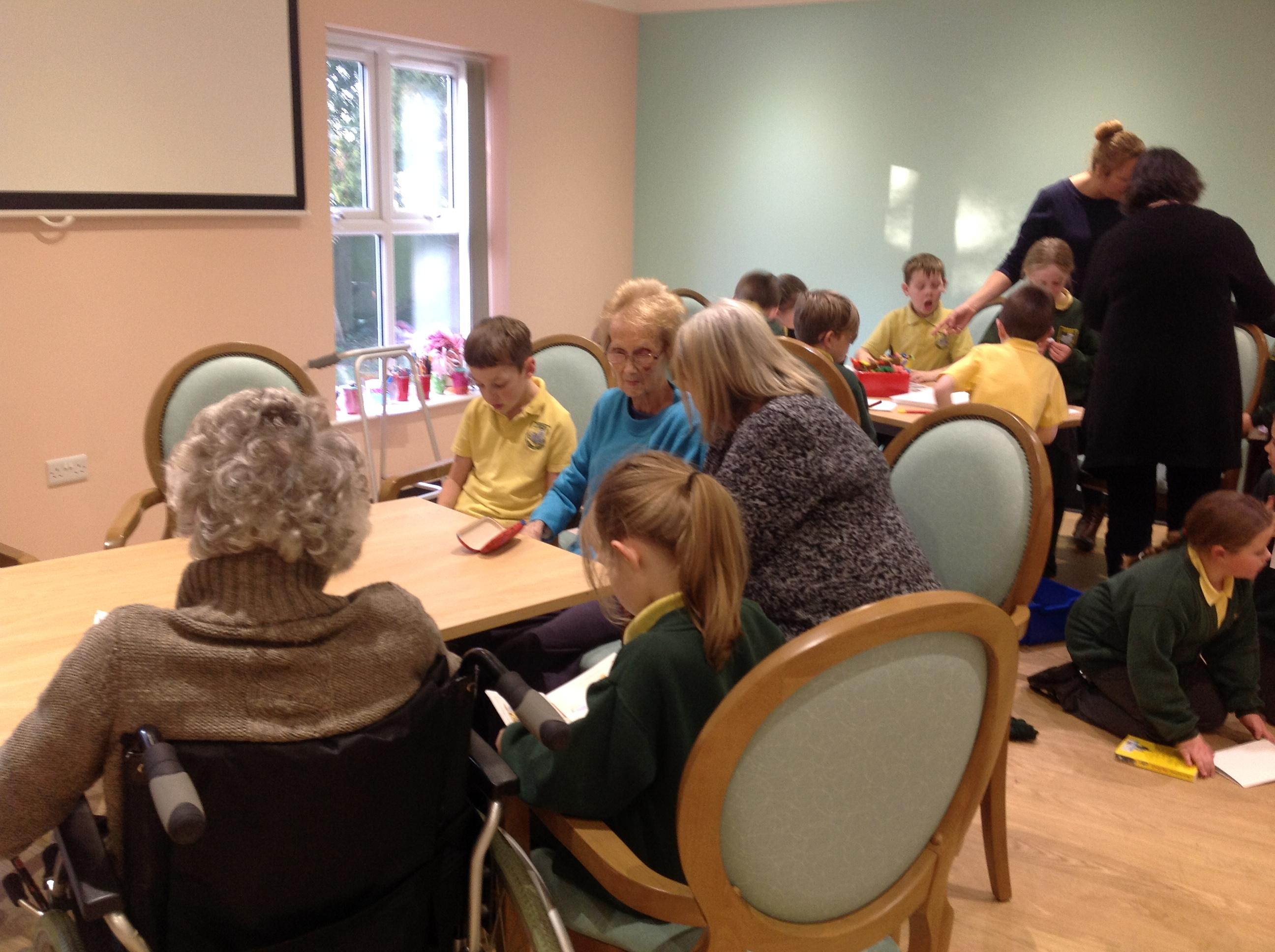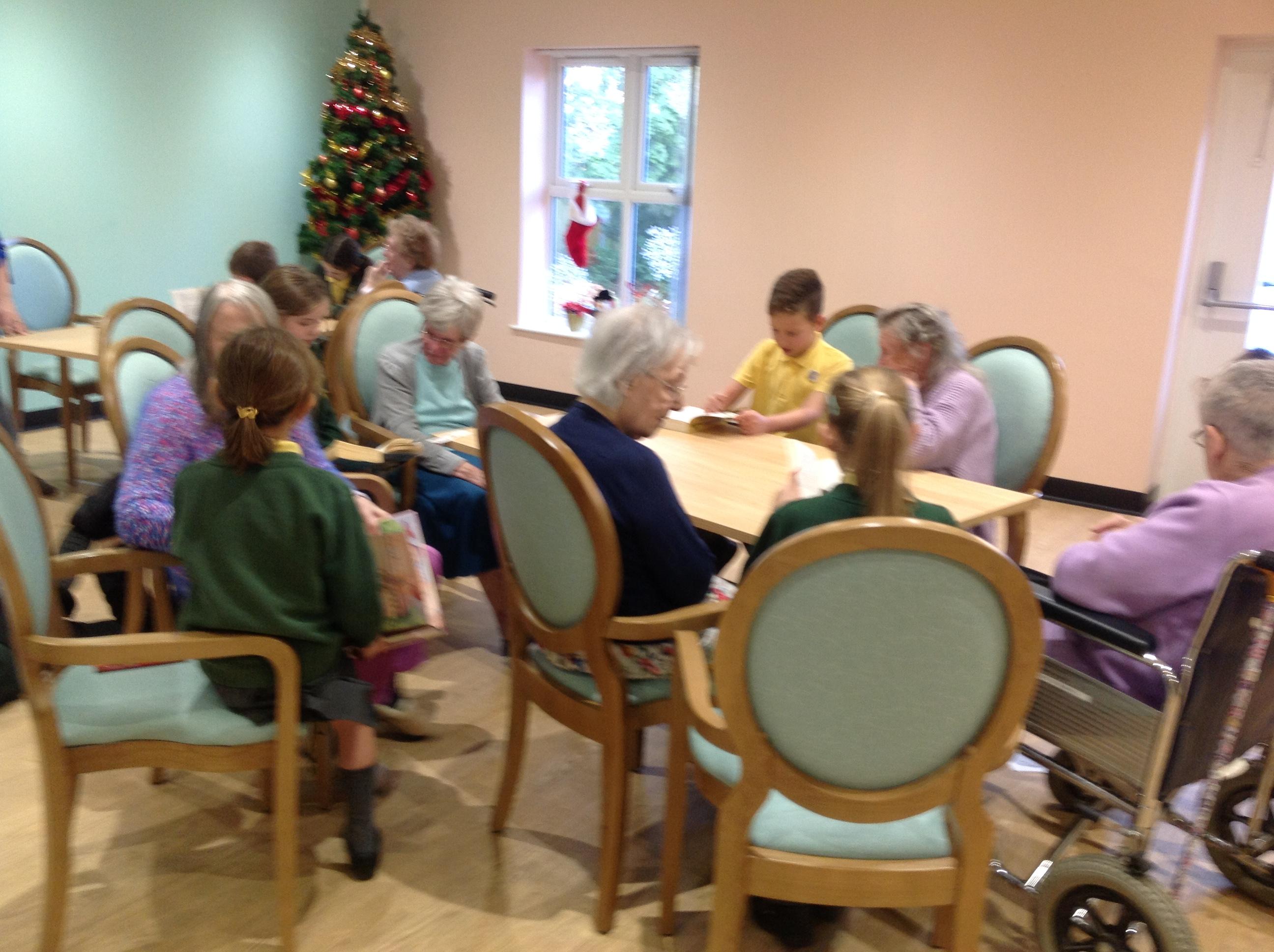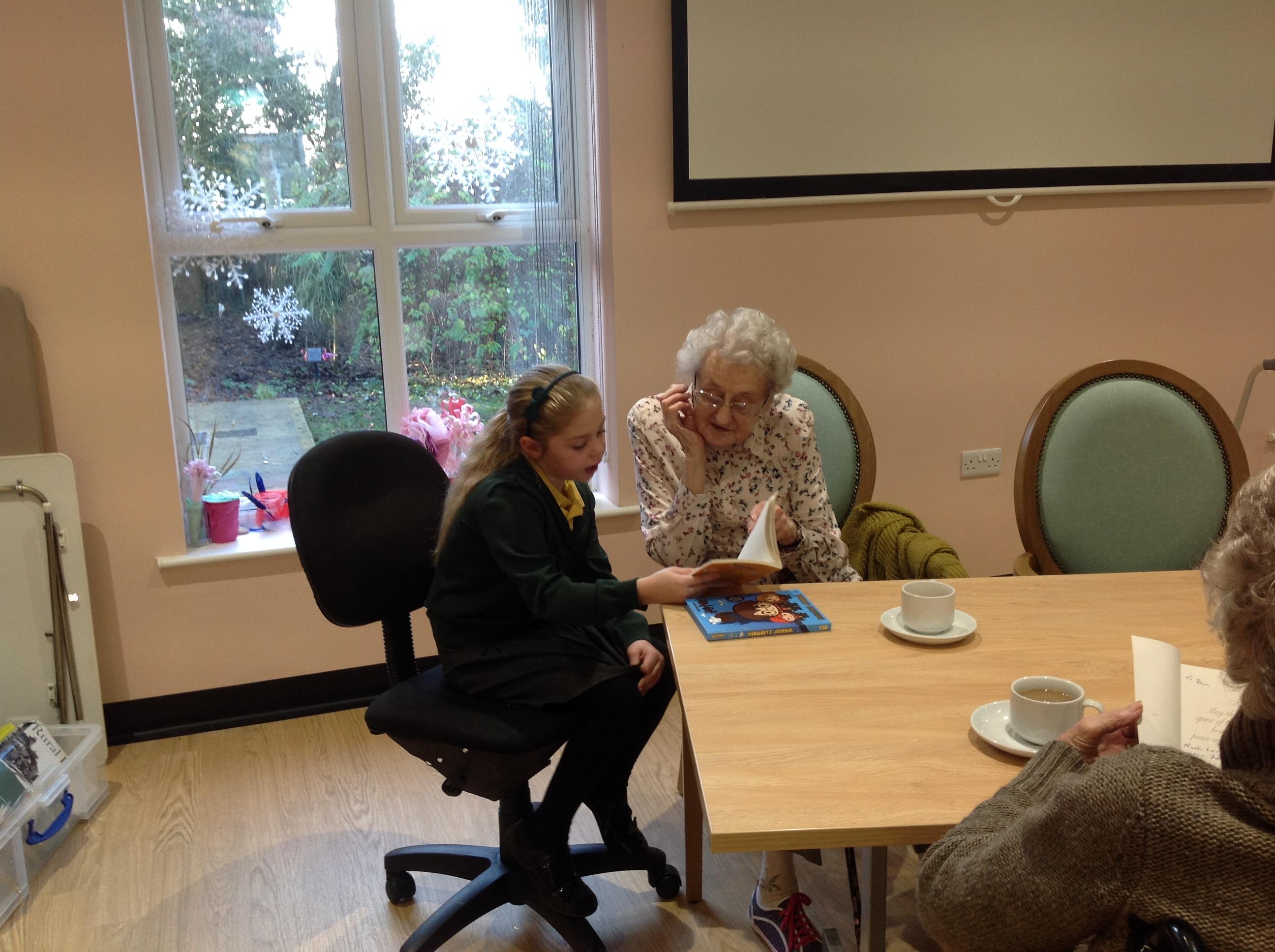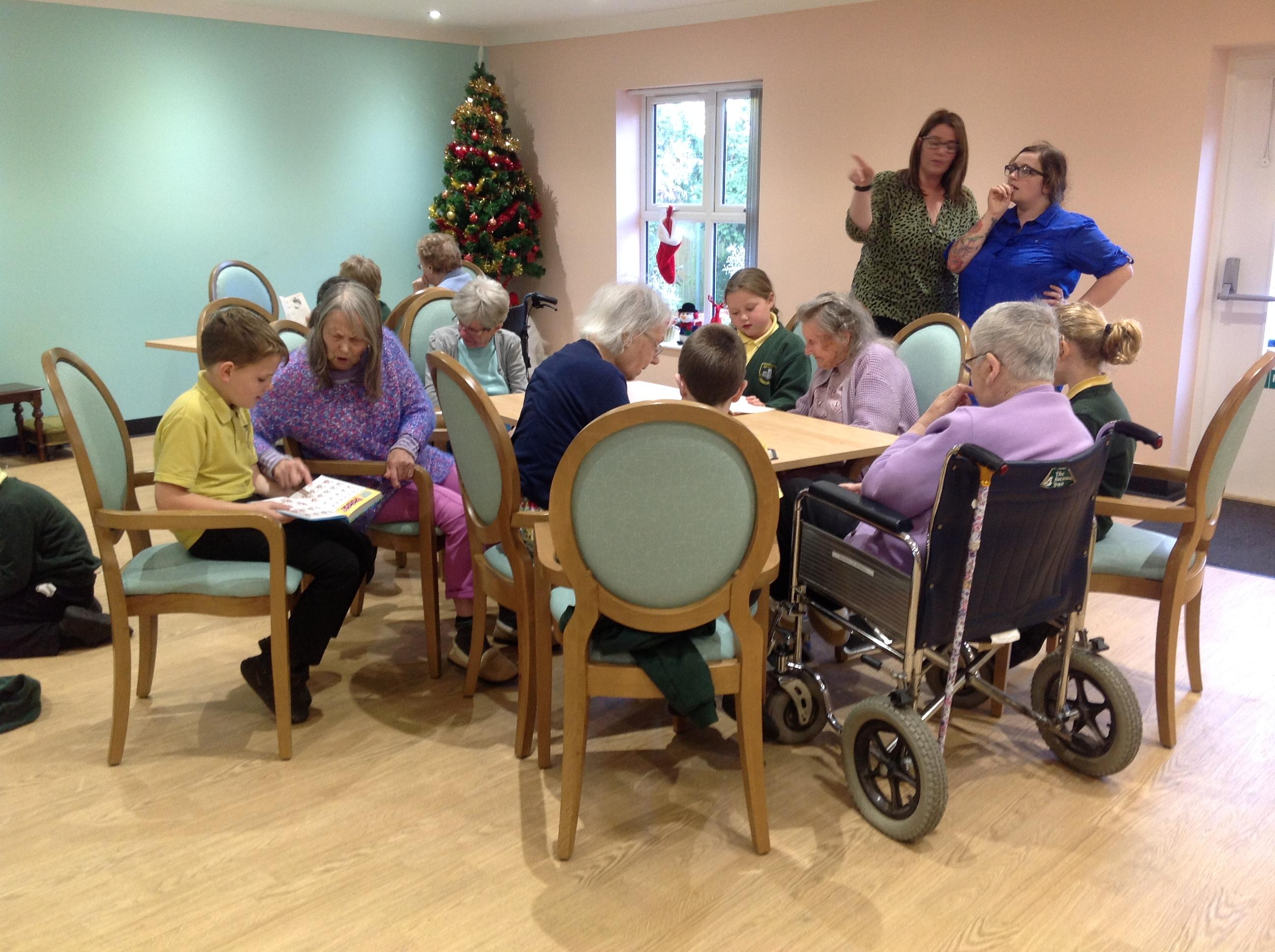 What a lovely afternoon we had visiting the residents of Bramhall Hall! We took our Reading Books and our favourite book to share with the residents. We also made our Christmas cards with them!