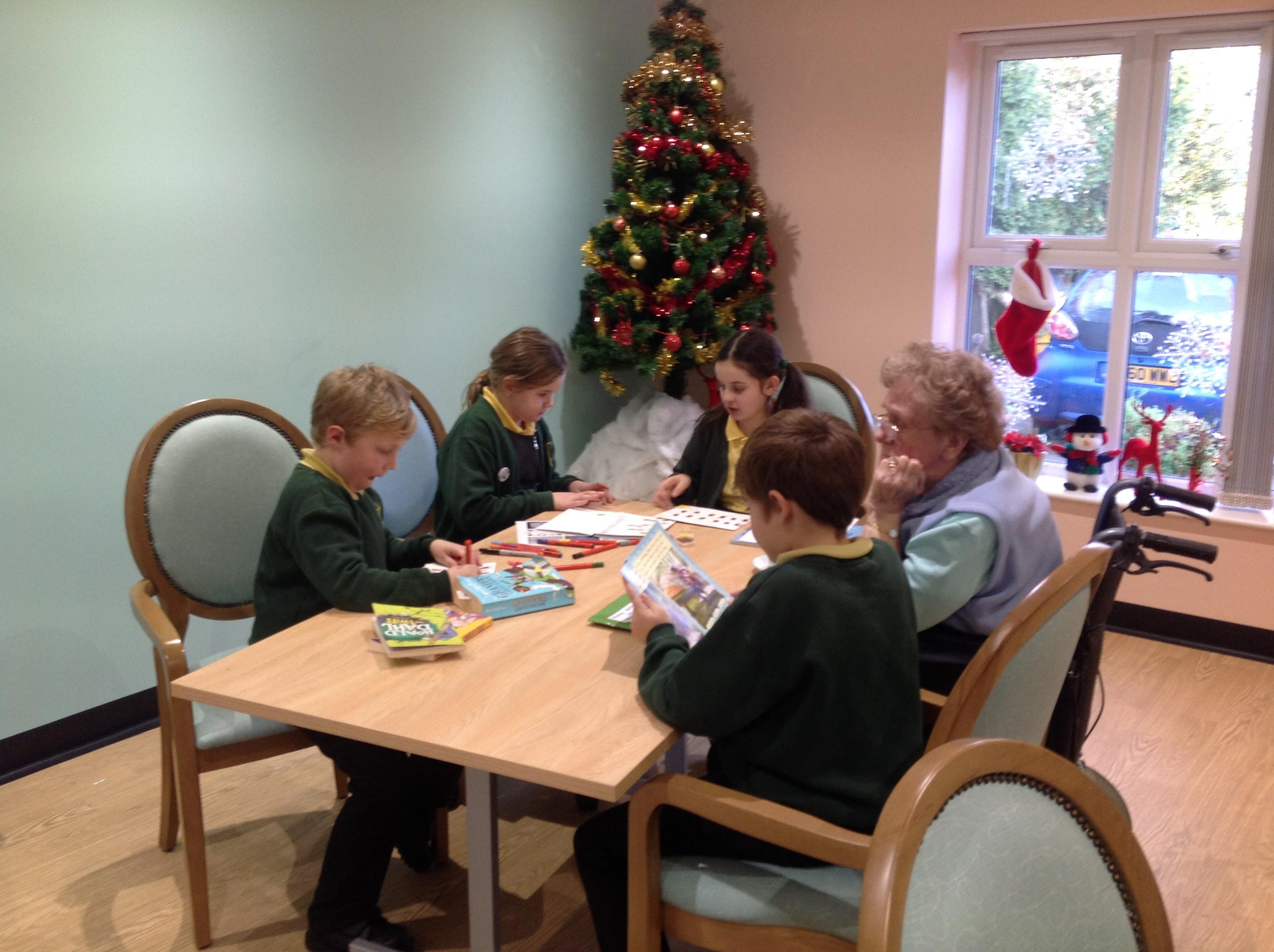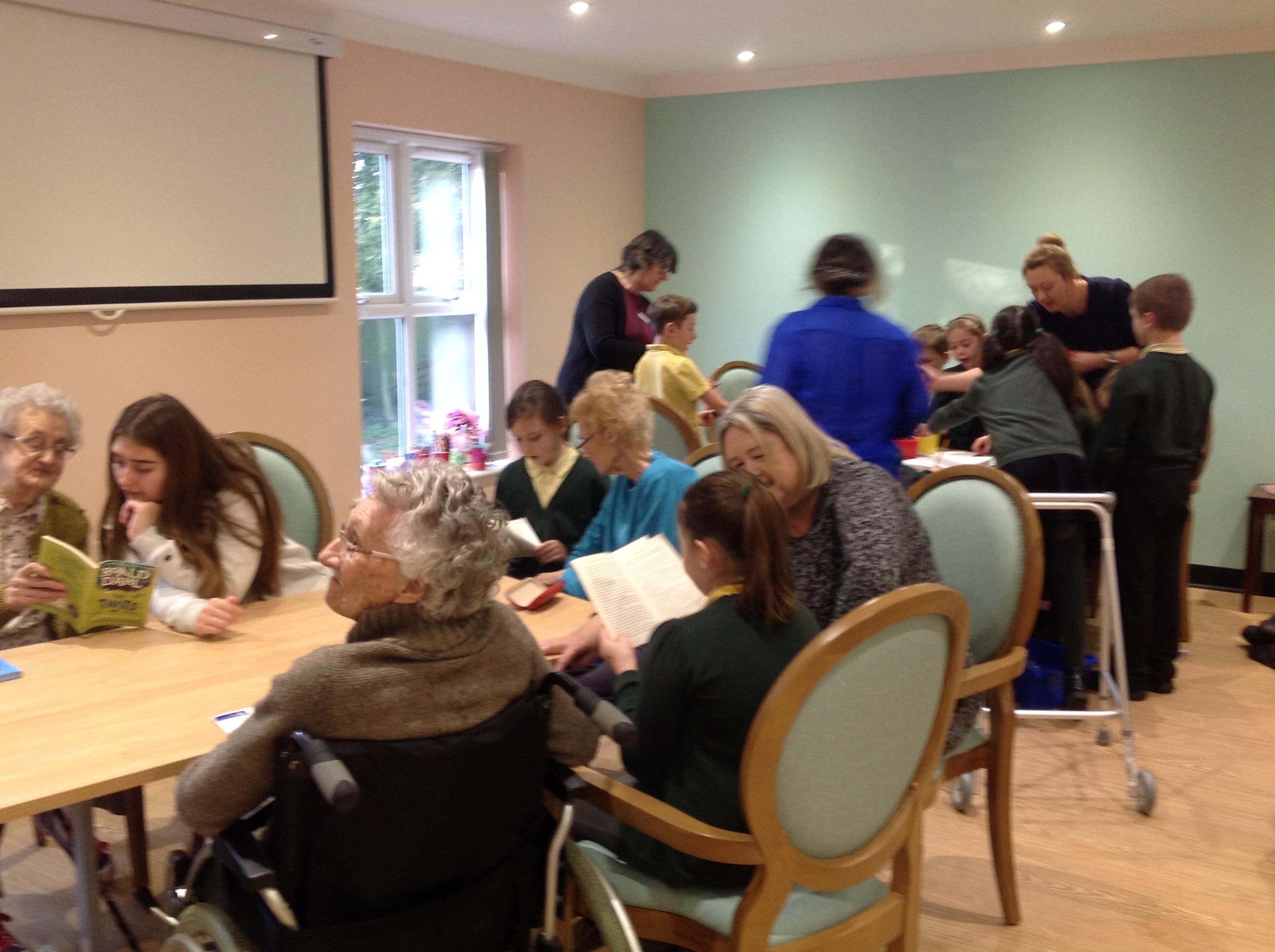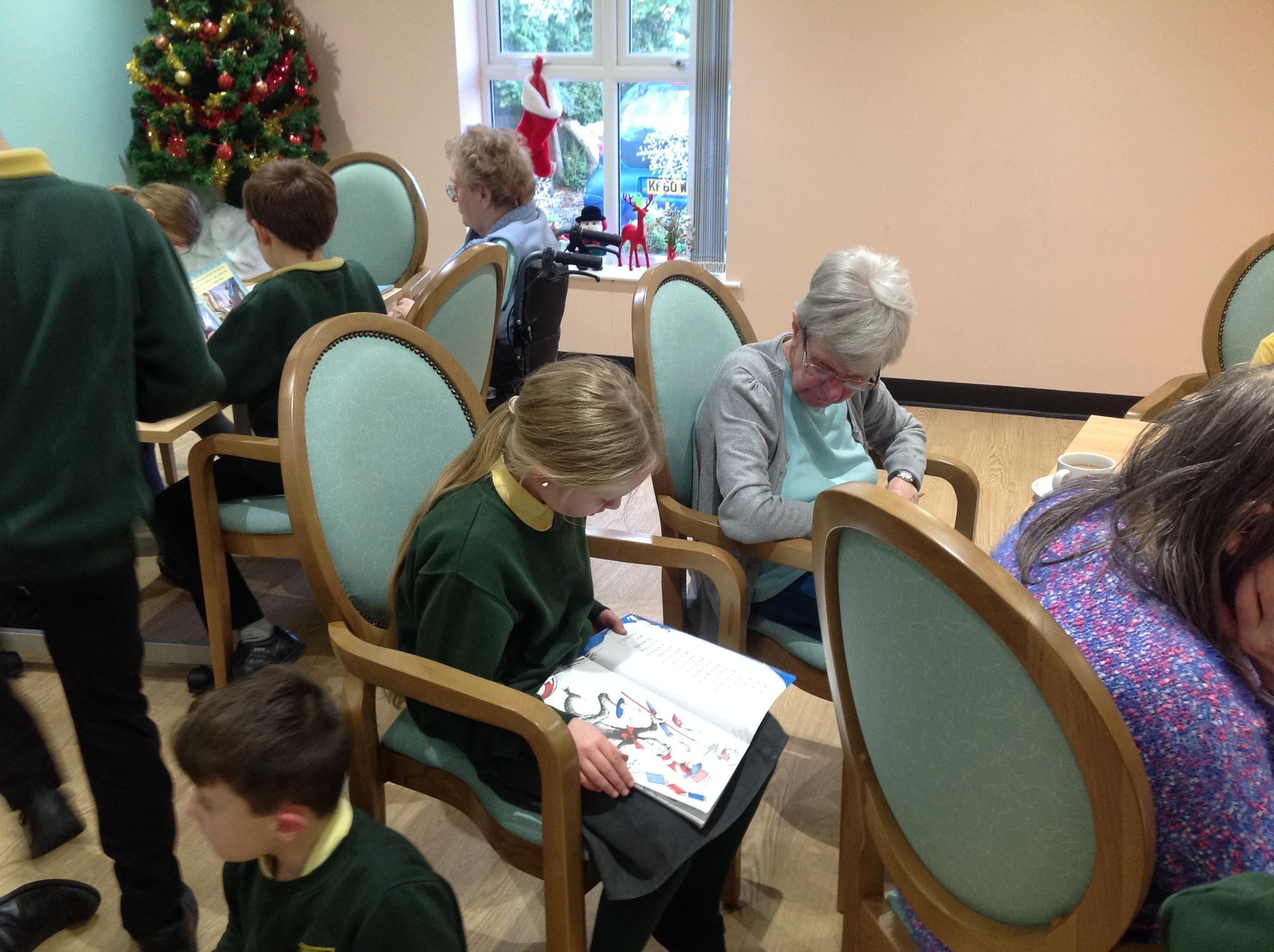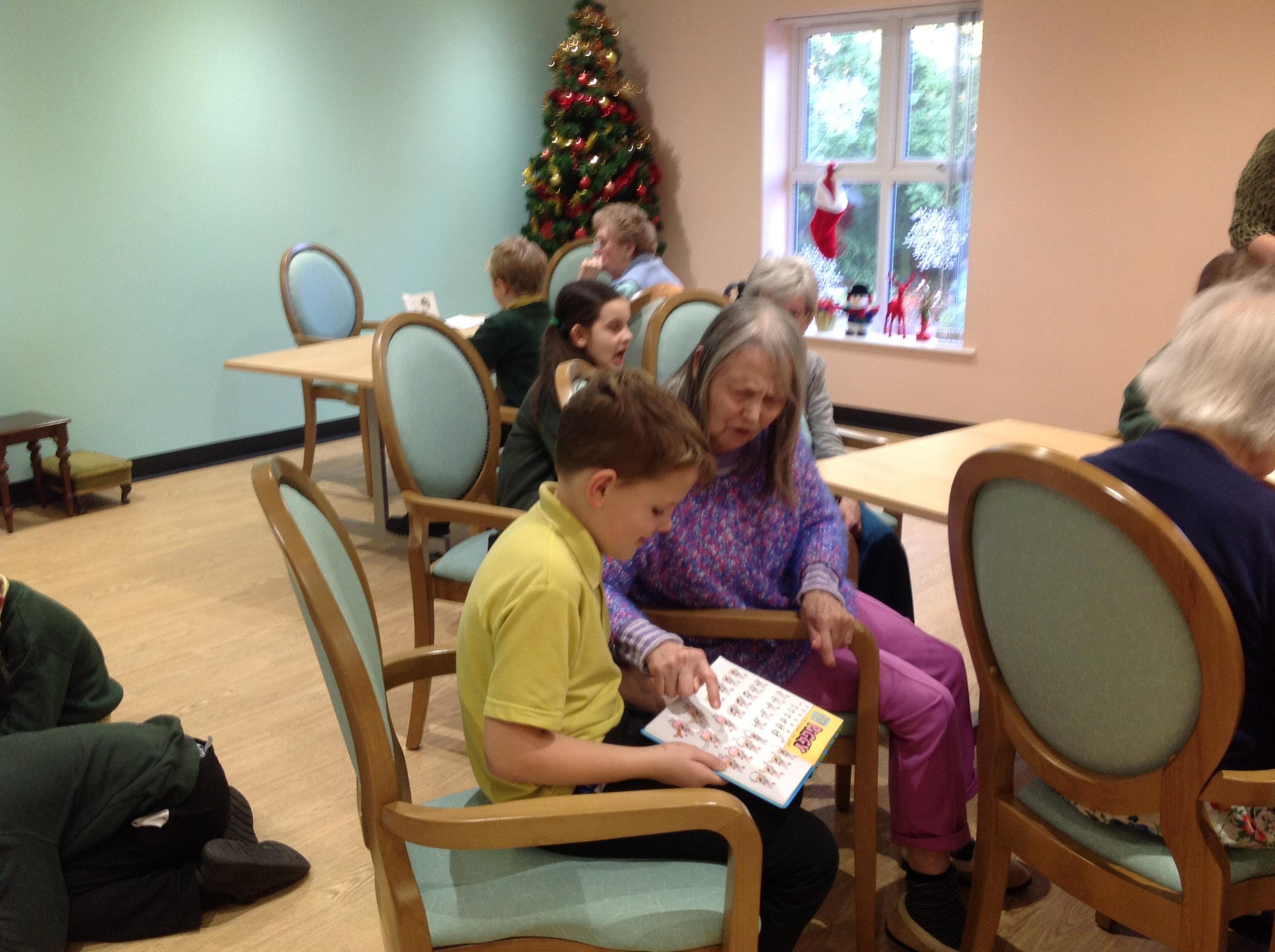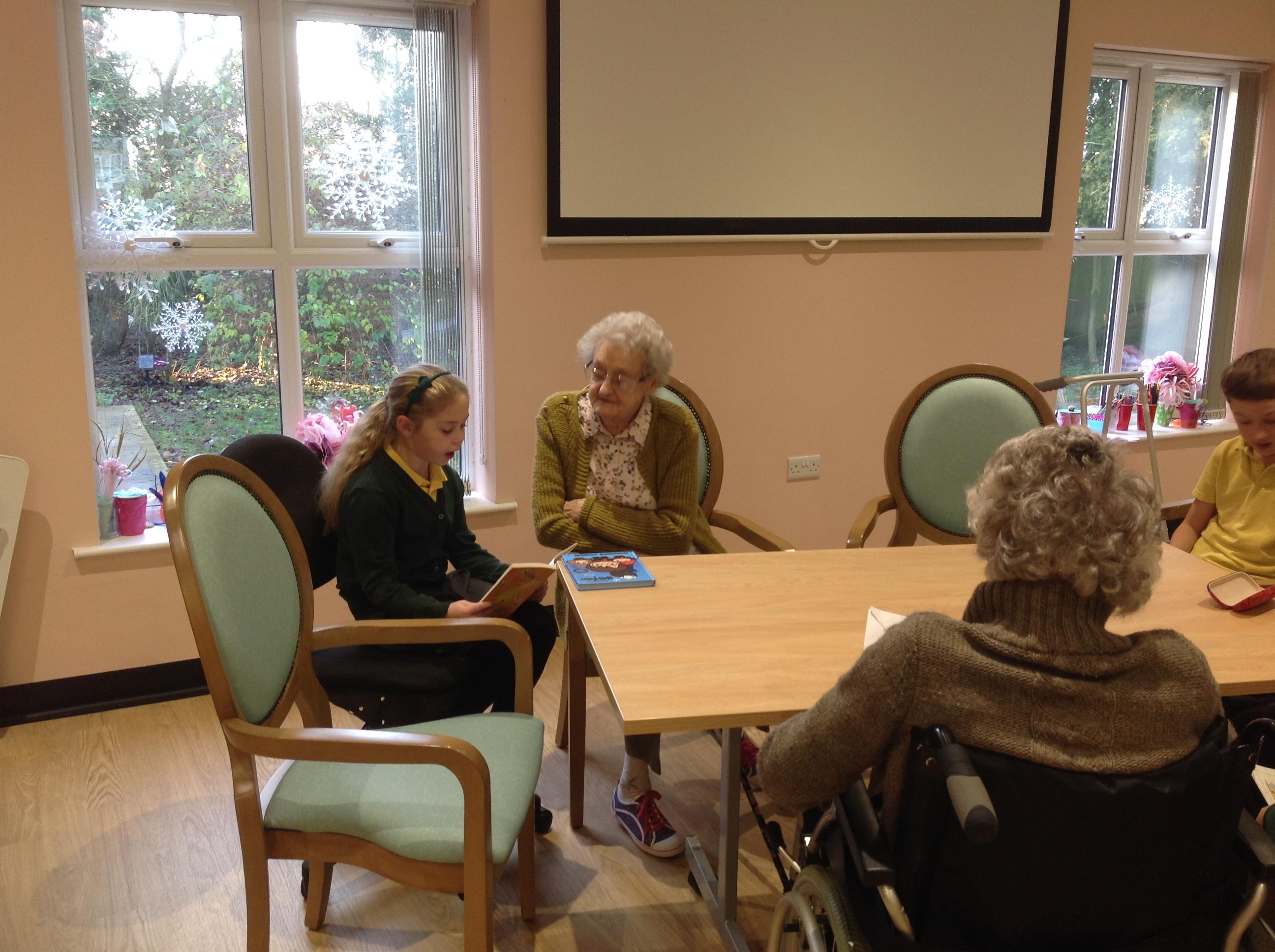 What a lovely afternoon we had visiting the residents of Bramhall Hall! We took our Reading Books and our favourite book to share with the residents. We also made our Christmas cards with them!