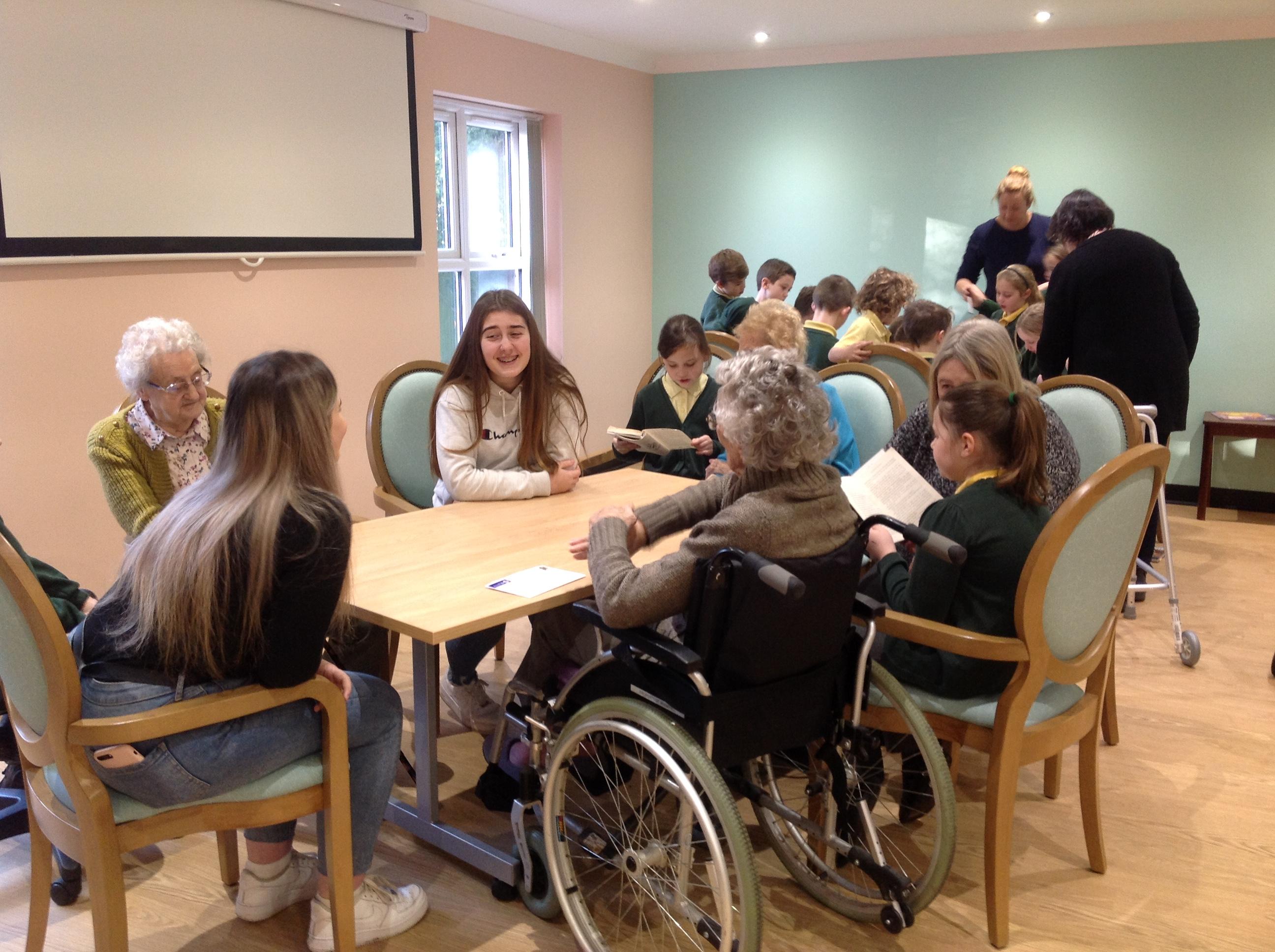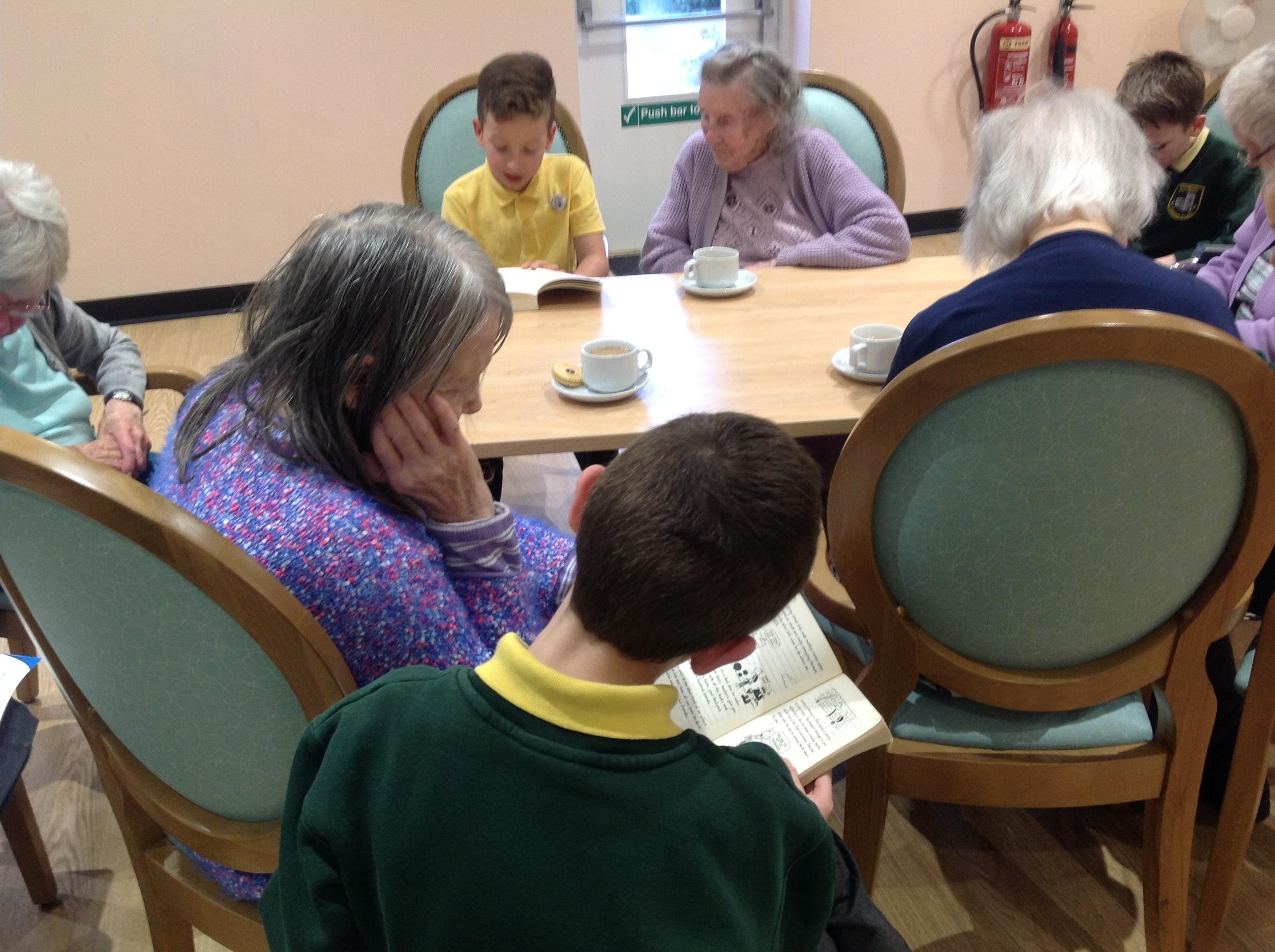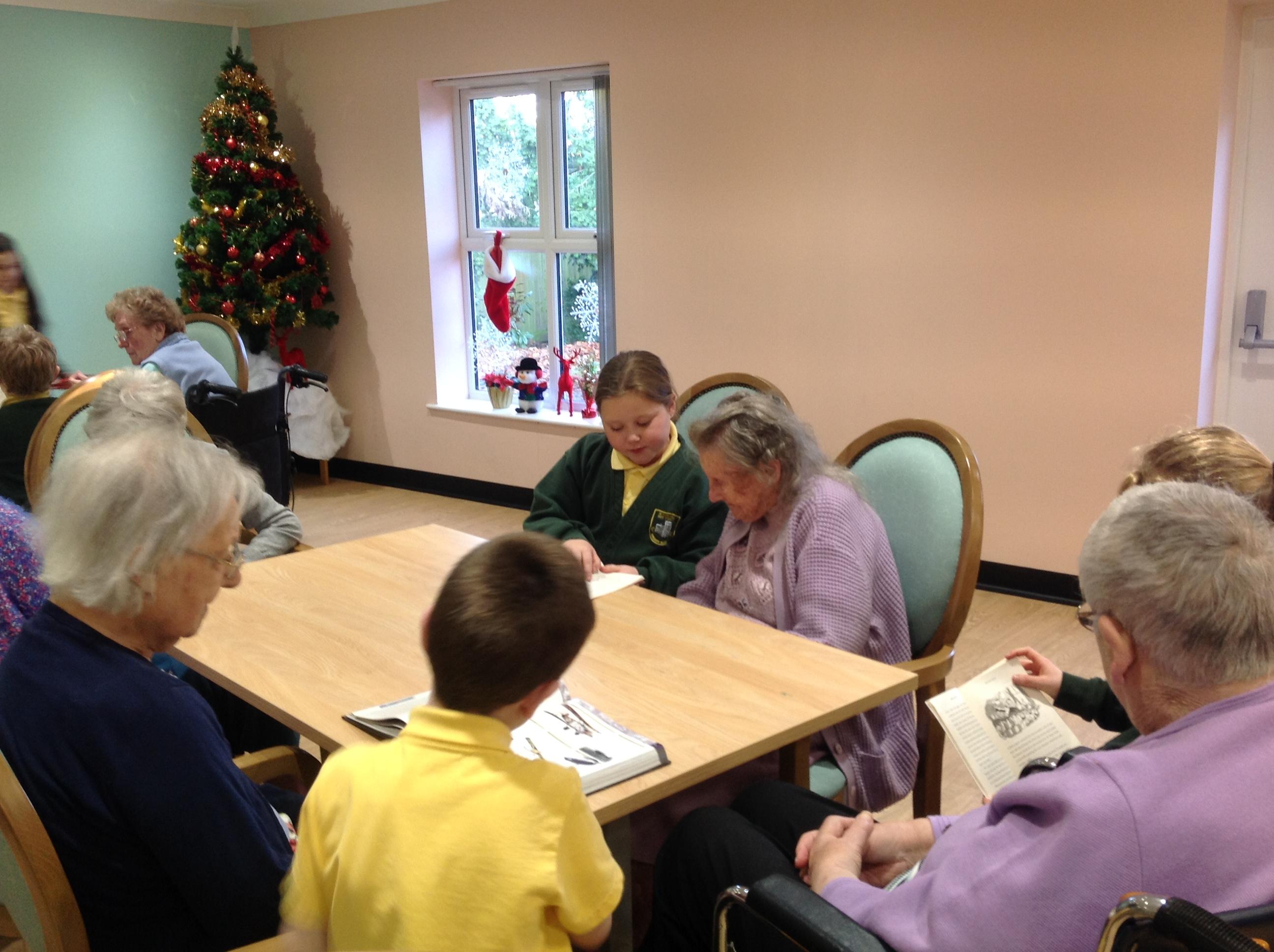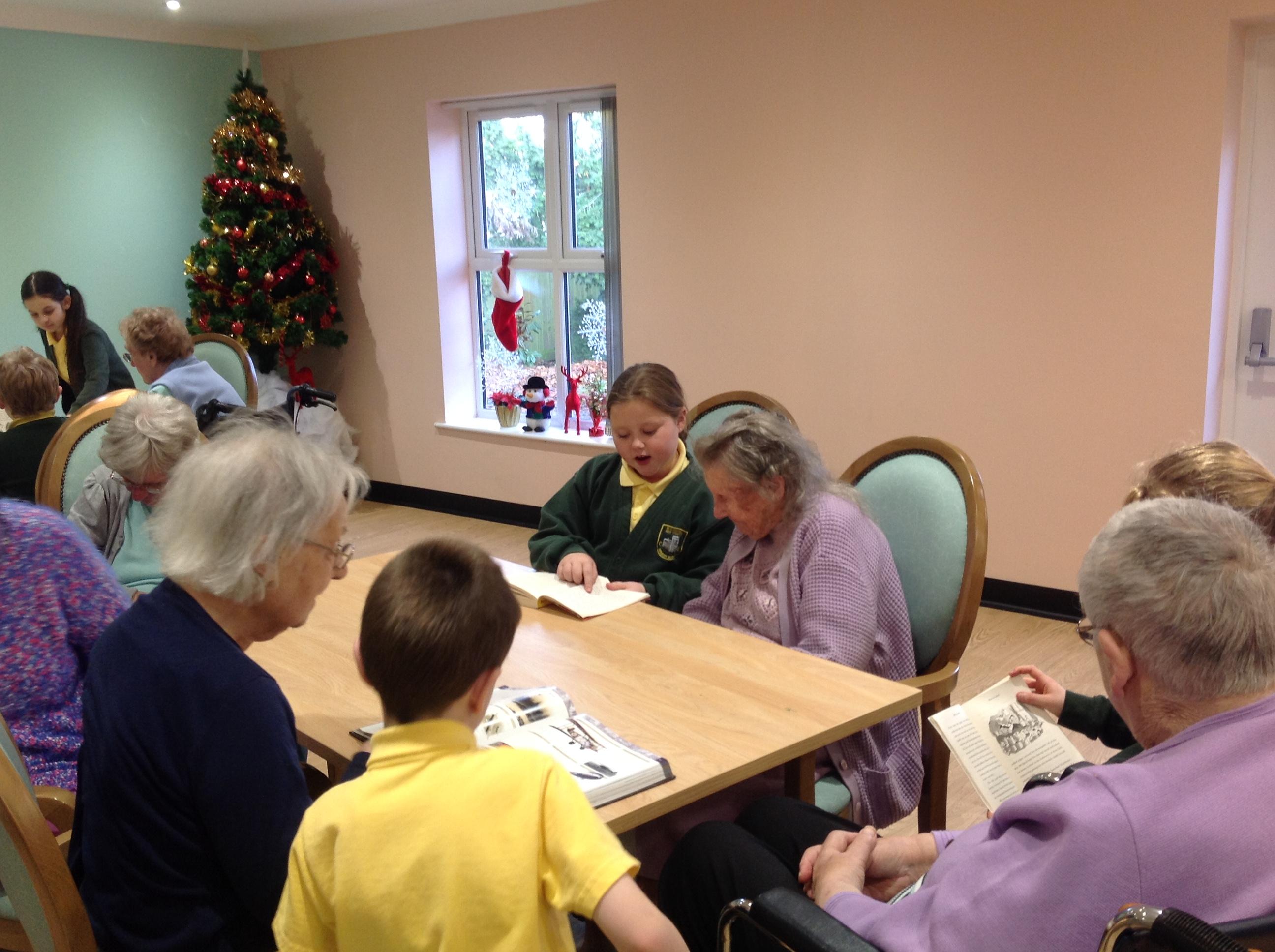 What a lovely afternoon we had visiting the residents of Bramhall Hall! We took our Reading Books and our favourite book to share with the residents. We also made our Christmas cards with them!