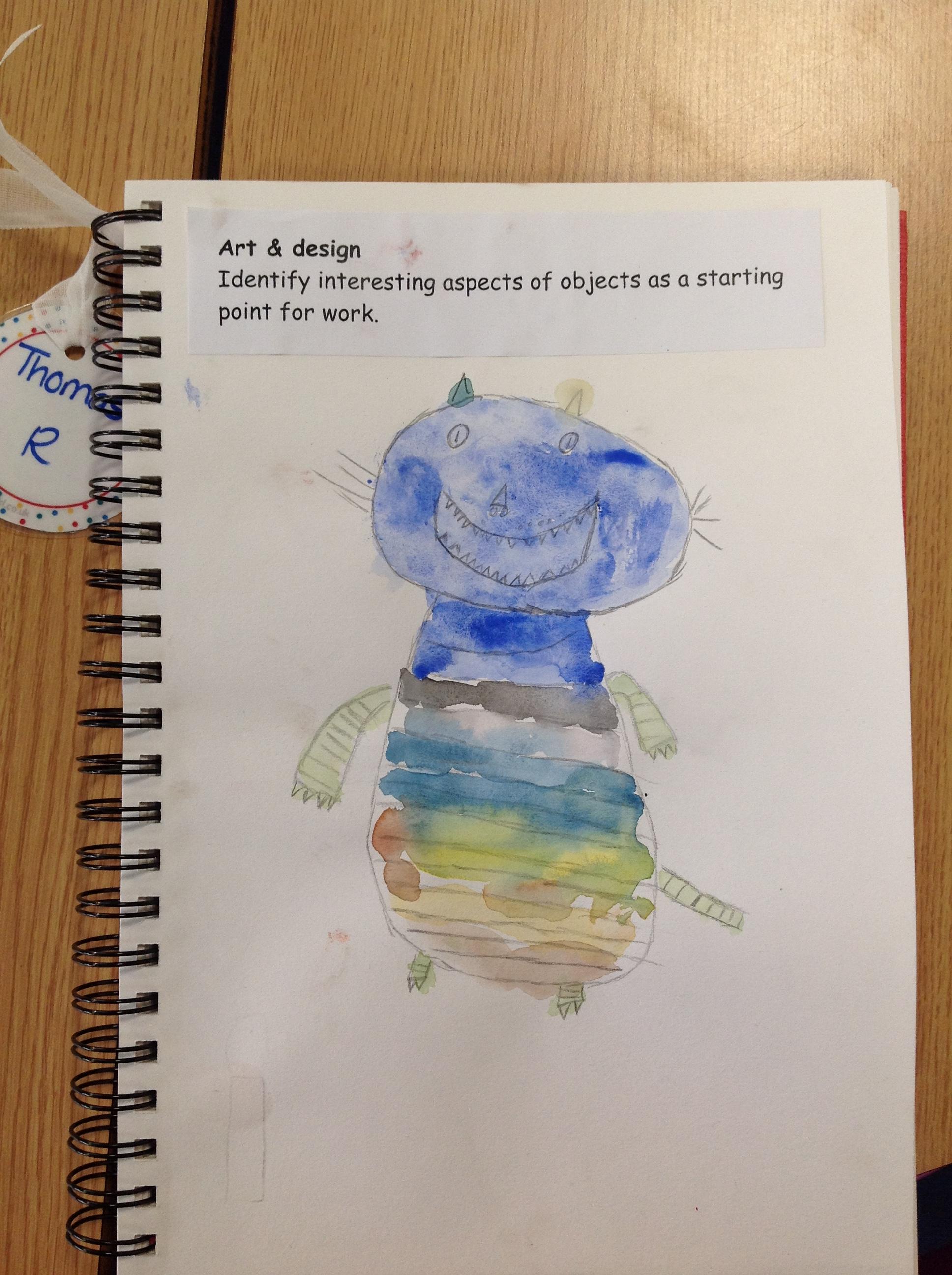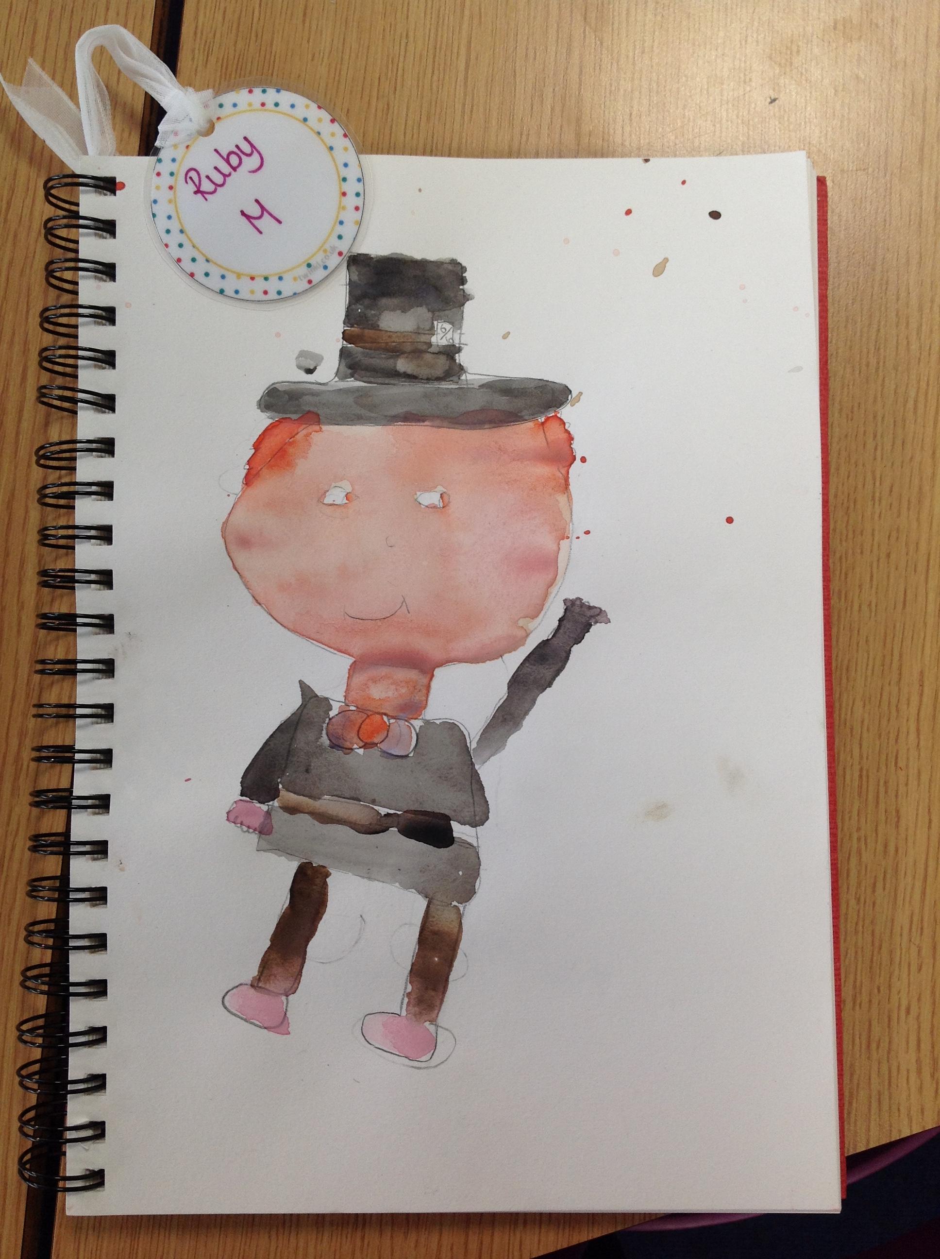 We became illustrators this week as we built up to a final piece of artwork. We began by looking at some different images created by illustrators of different characters and looked at the similarities and differences. We then completed little sketches of different parts of a given character. We then designed our own character and used watercolours to add colour and texture.
