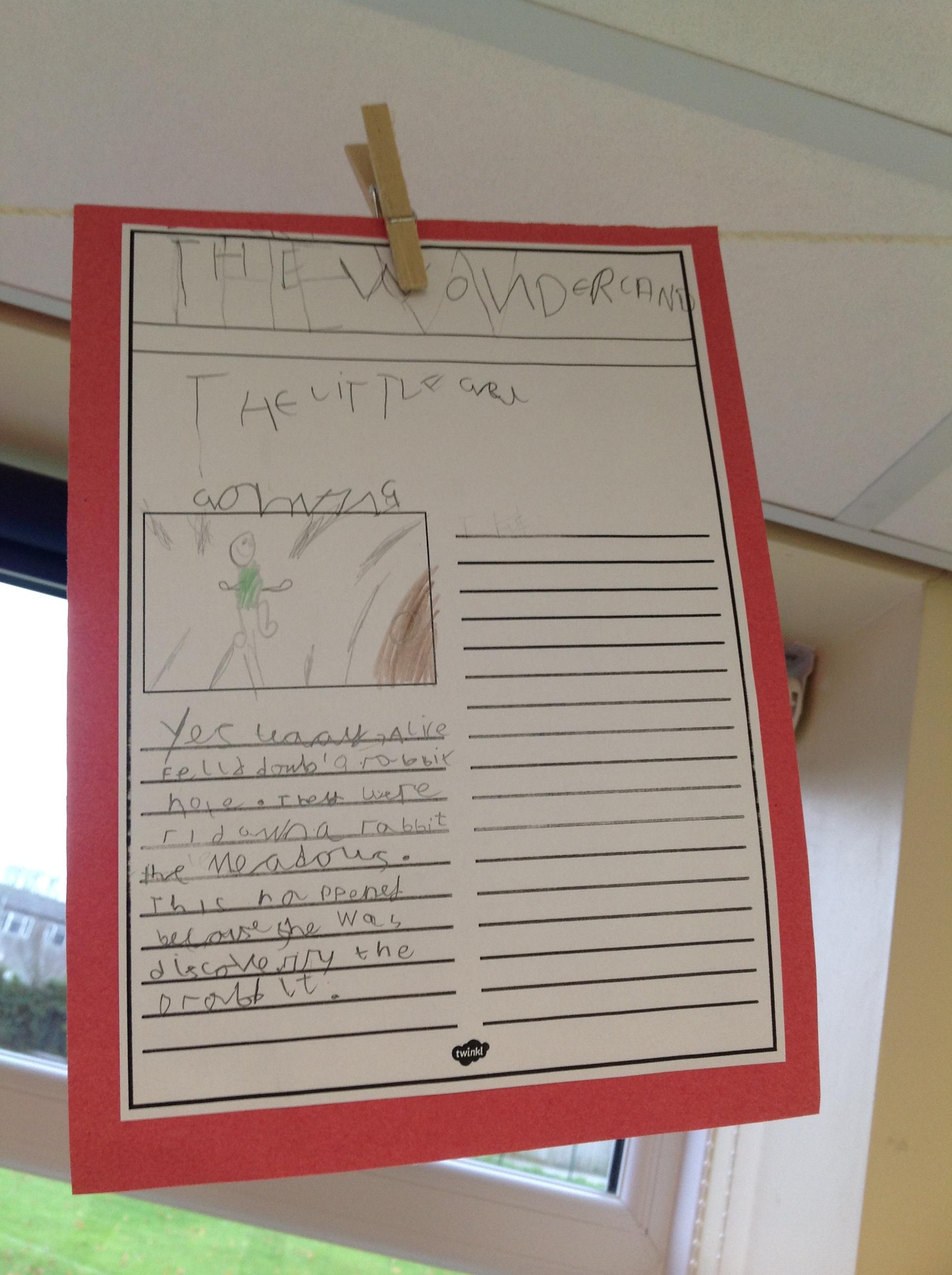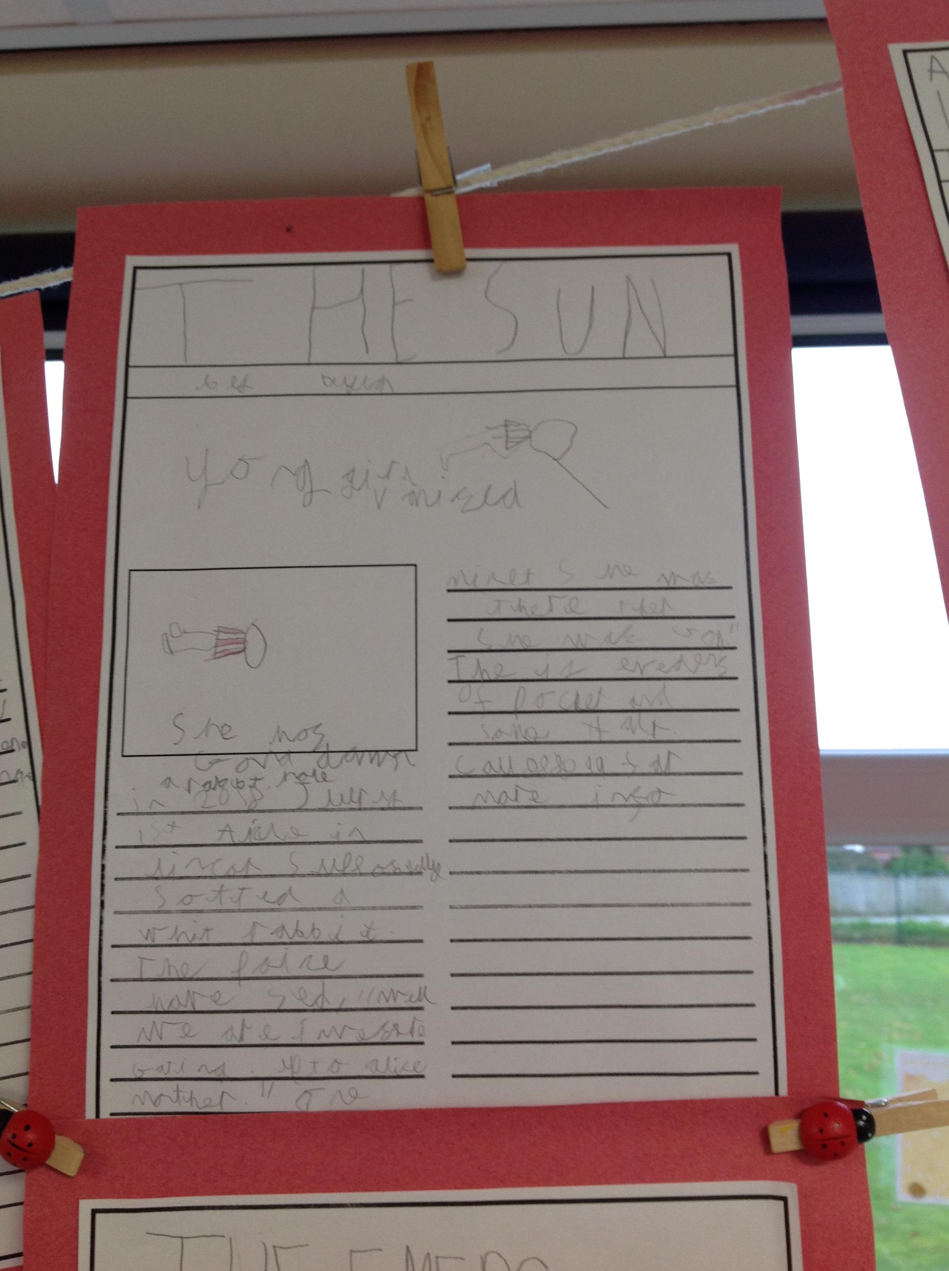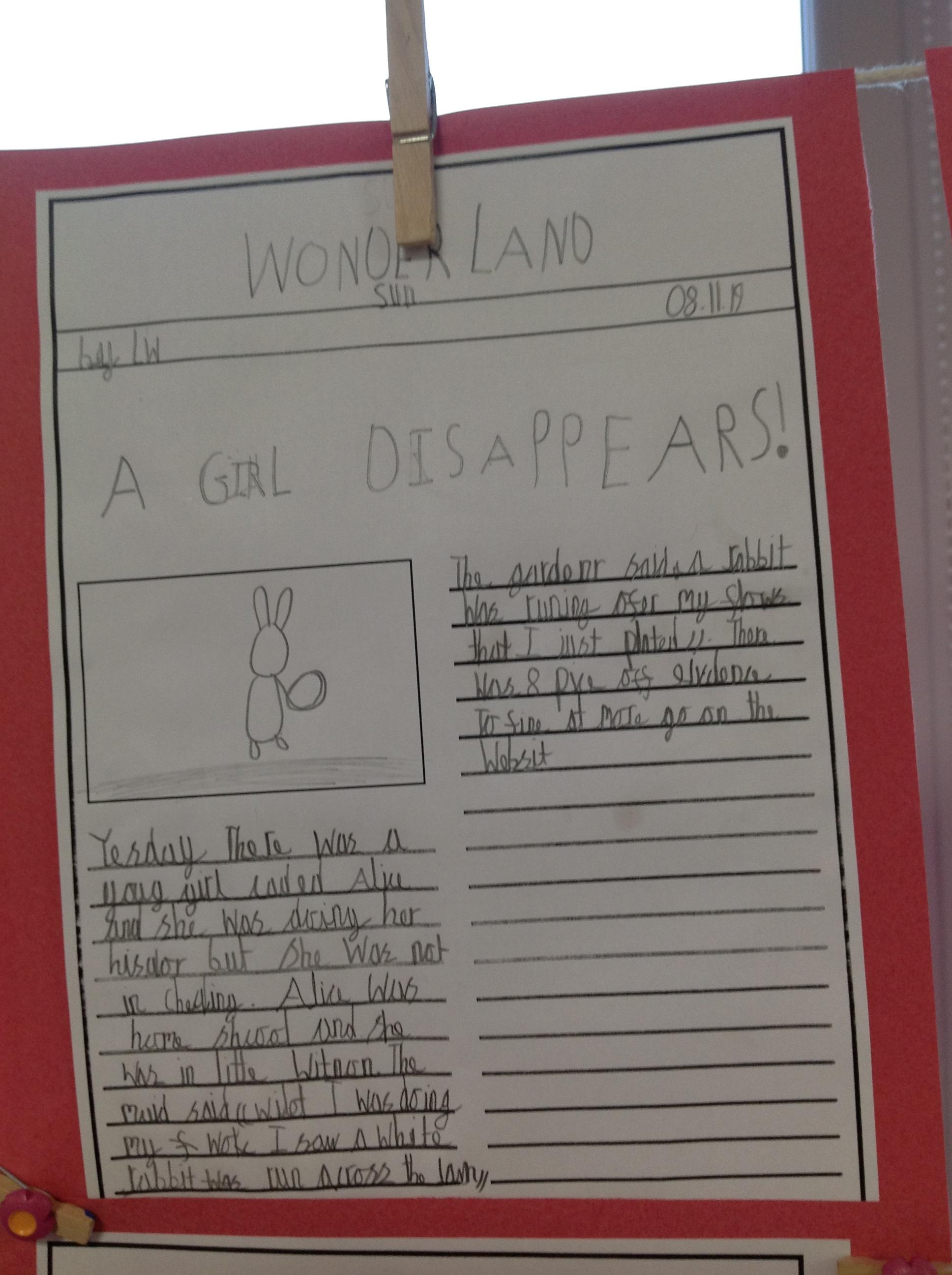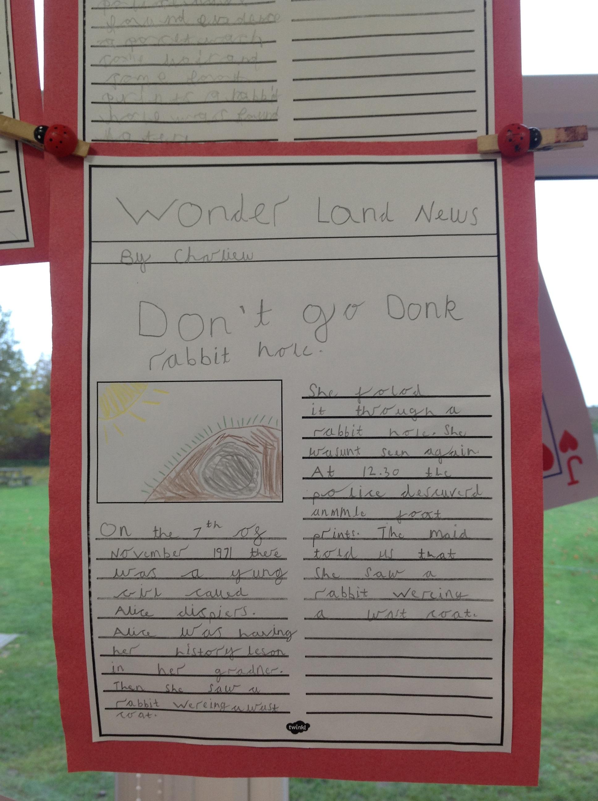 We've been learning all about Newspaper Reports this week and we've been building up to write our own based on Alice's mysterious disappearance down a rabbit hole! We had to examine the evidence and use some reporter sentence starters to help to keep us in the style of a Newspaper Journalist!
