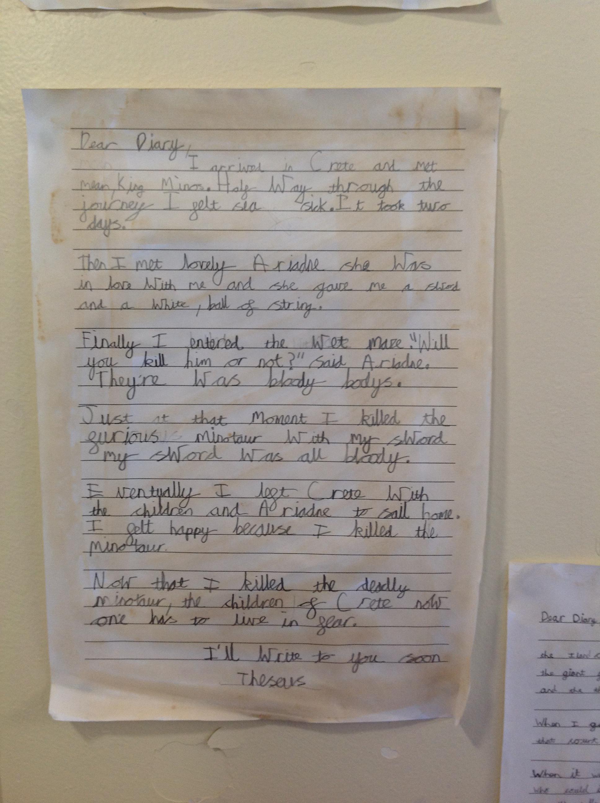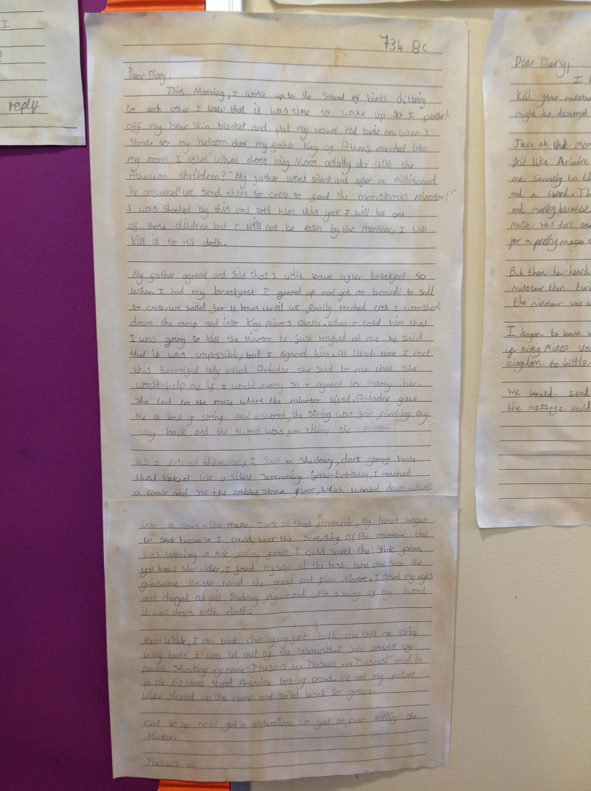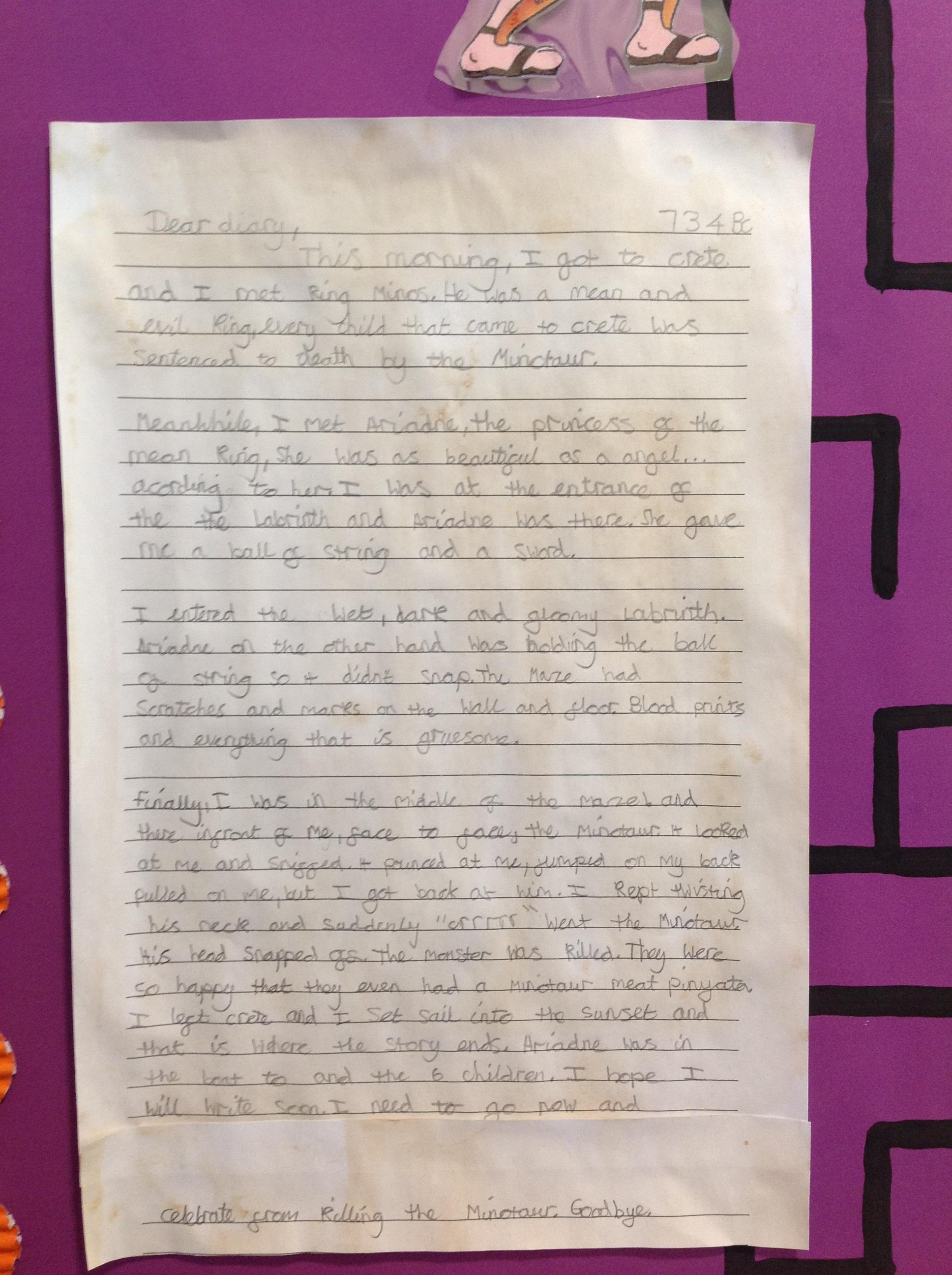 We've had a brilliant writing topic learning all about the Greek myth of Theseus and the Minotaur! We have written a diary entry as Theseus on the day he entered the maze. We have loved learning about this story and worked really hard on making sure that our diary entries had all the key features!