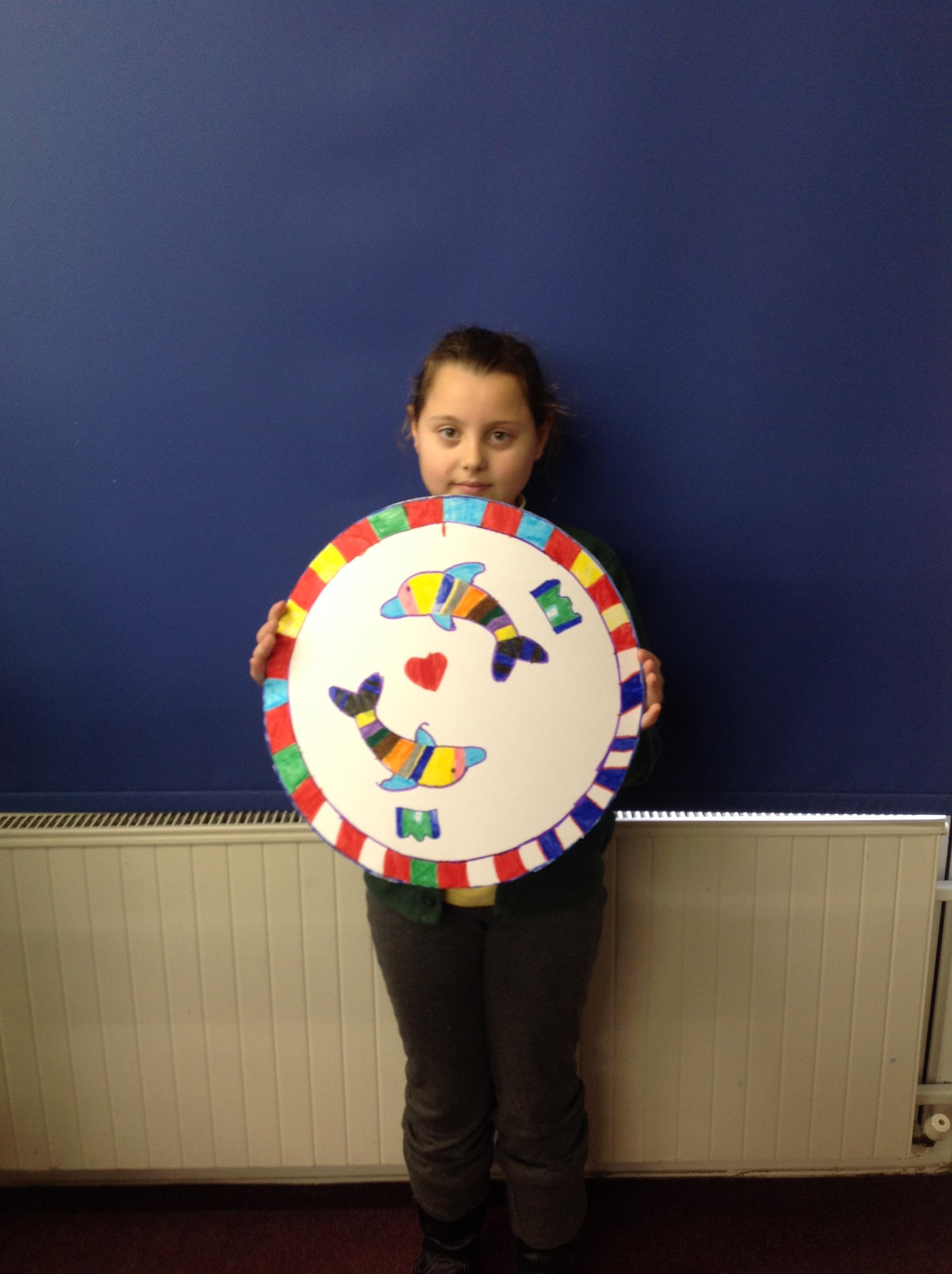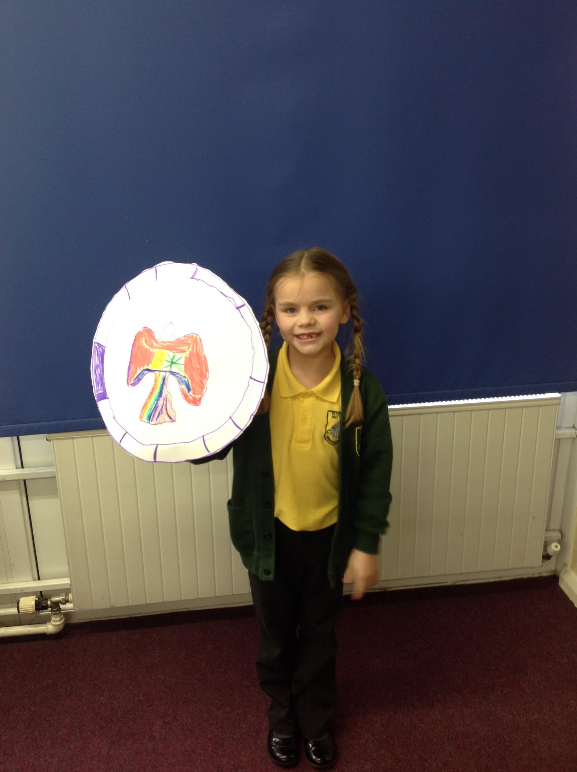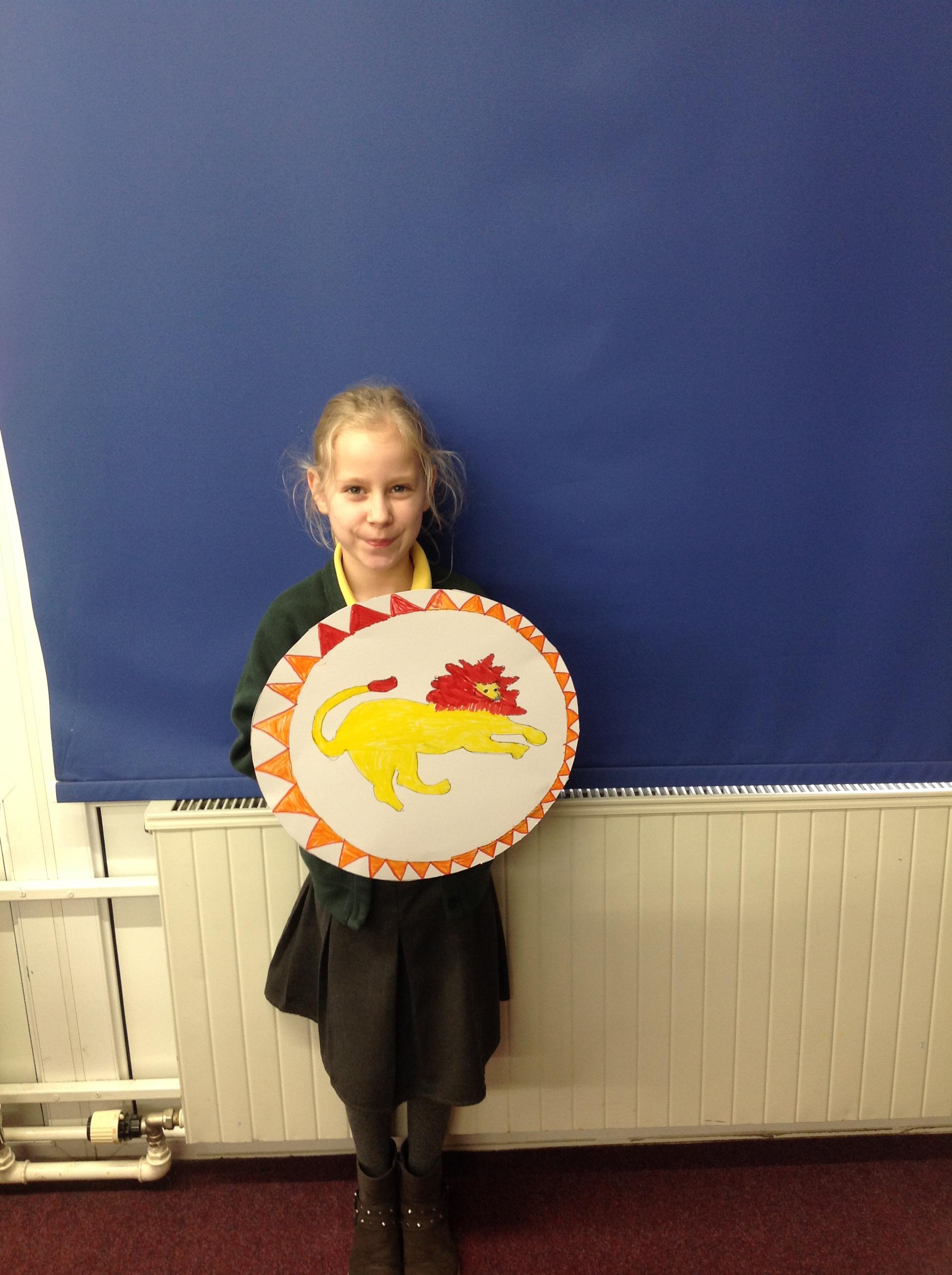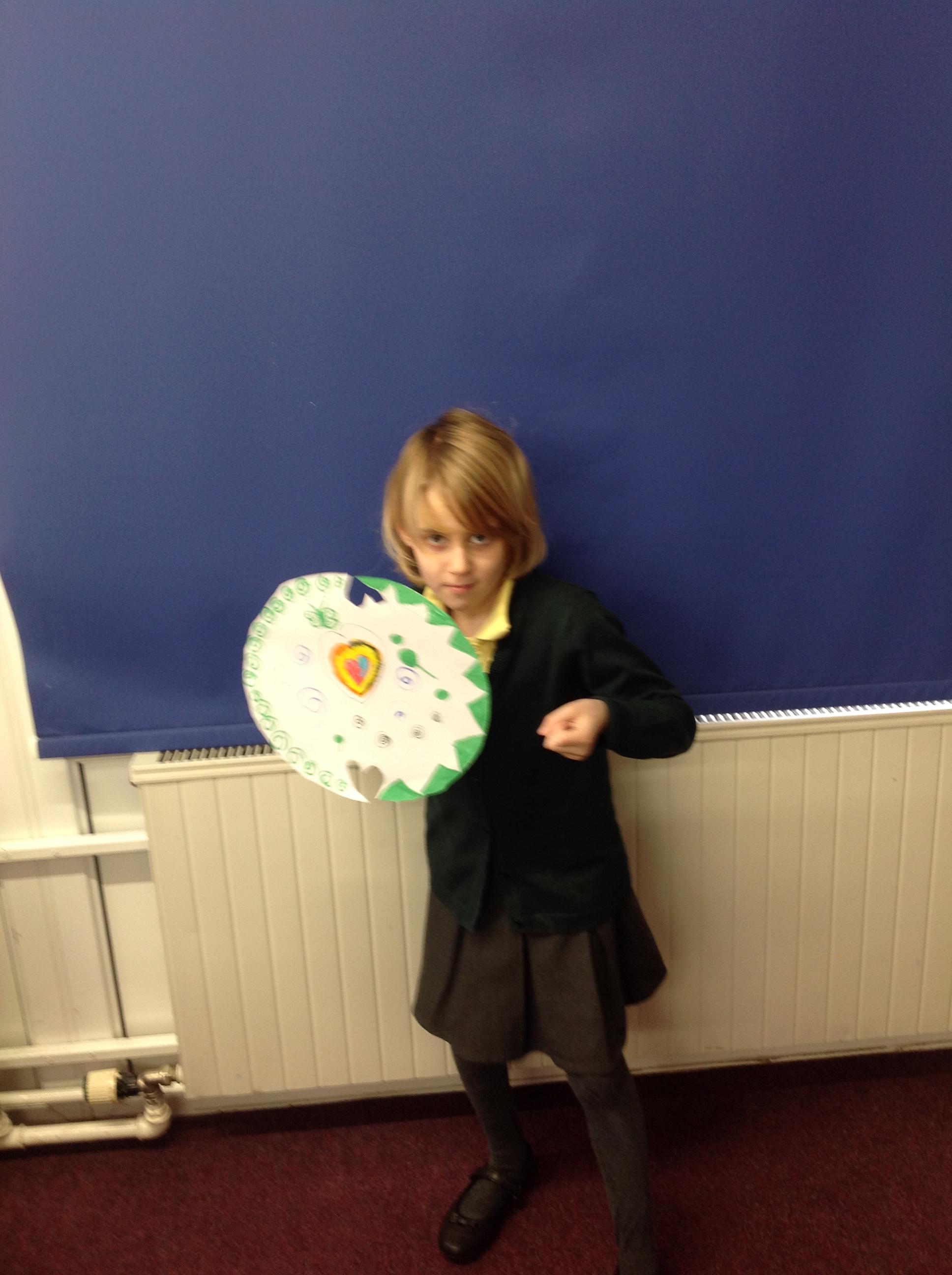 We started our Greek shields at the Collection and finished them off this week. We completed our patterns and central design. Then we attached our arm holders to the back. We look very warrior like!