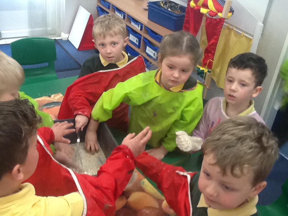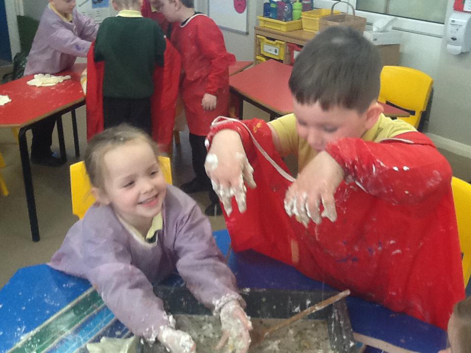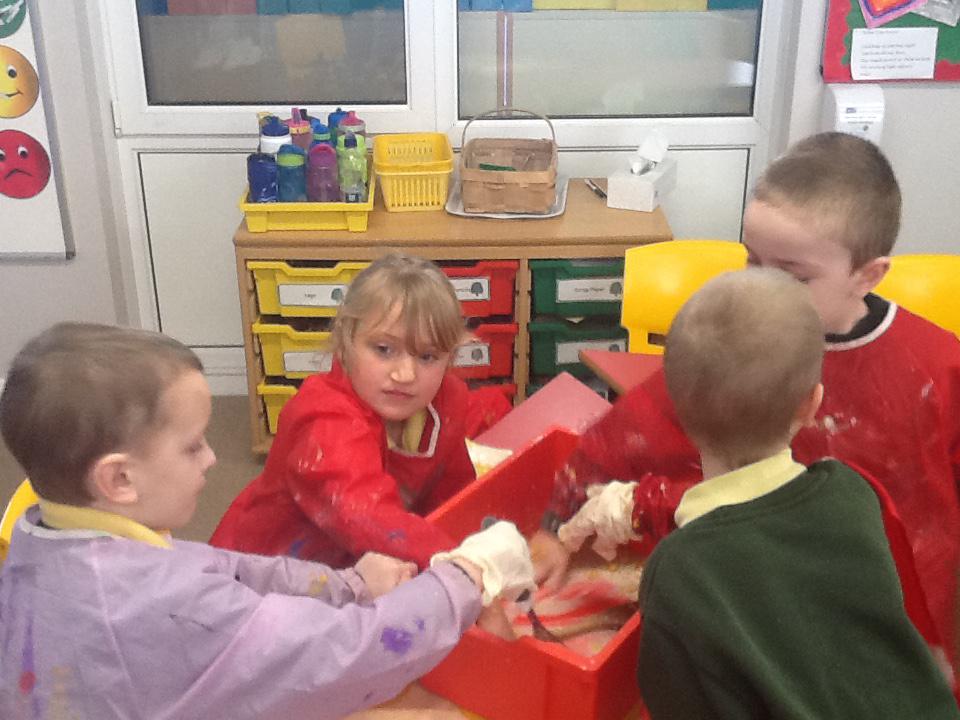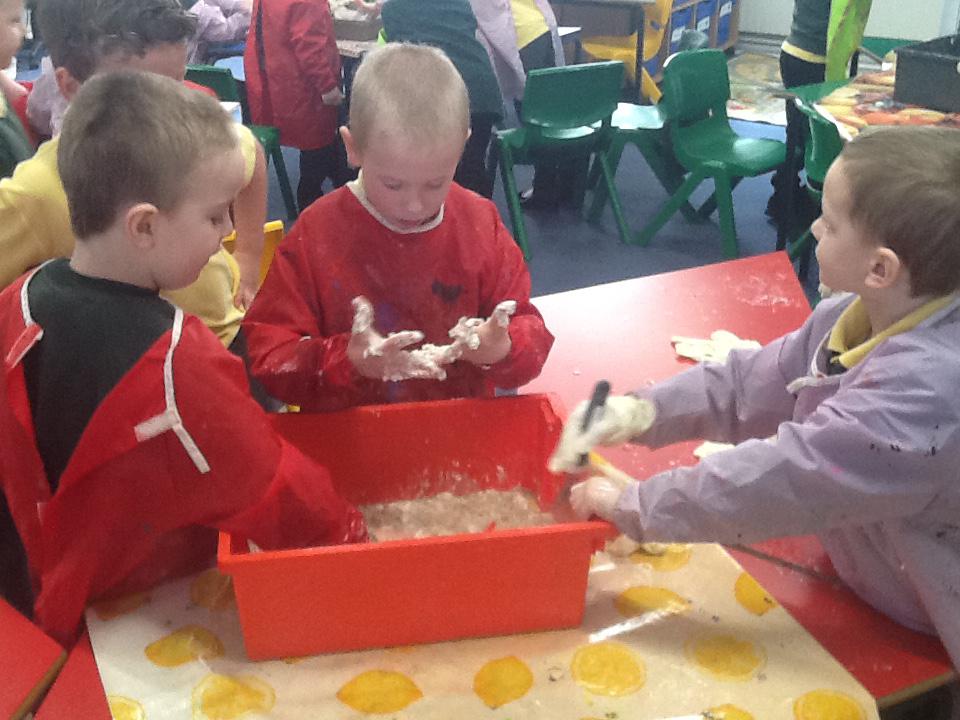 We got stuck into our new topic this week with our messy mixtures morning! We got to know how different ingredients mix together and why. Oats, shaving foam, lemonade, cornflakes, moisturiser, soap and jelly are just a few of the ingredients that we mushed together with our hands and spoons.