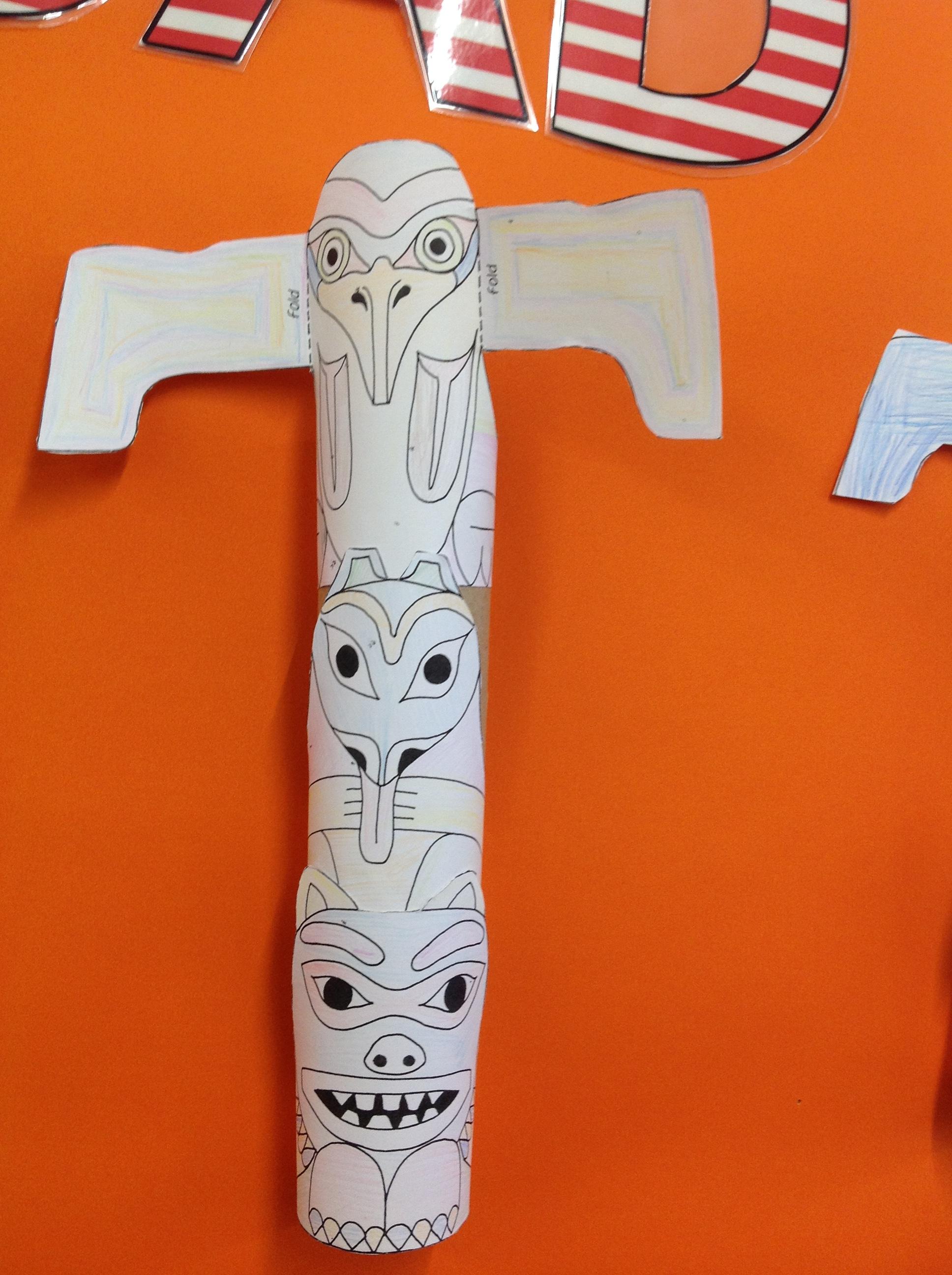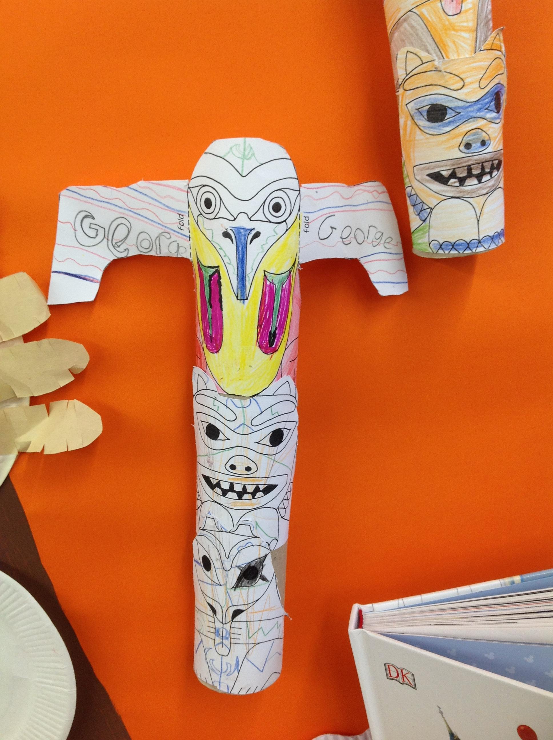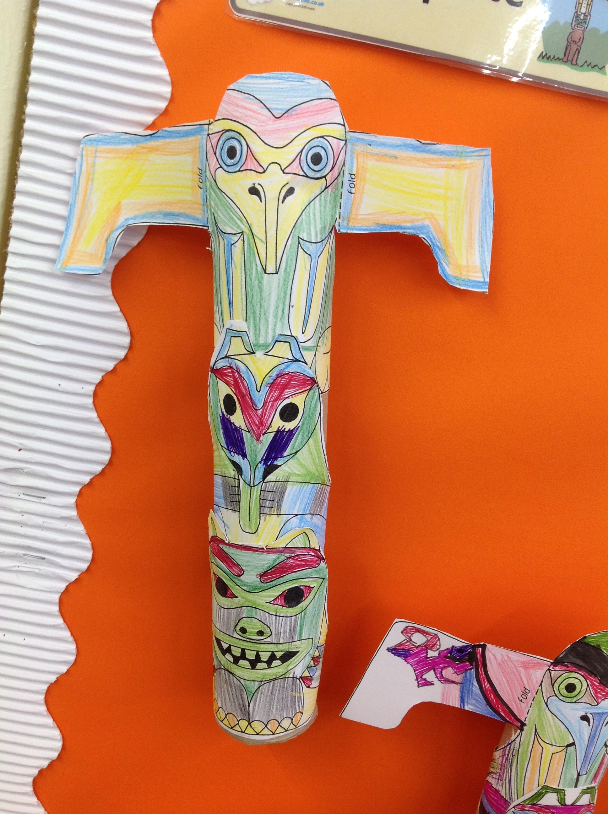 We made our own Totem Poles today. We learnt all about how important they were to Native American culture and how they told stories of the tribe's legends.