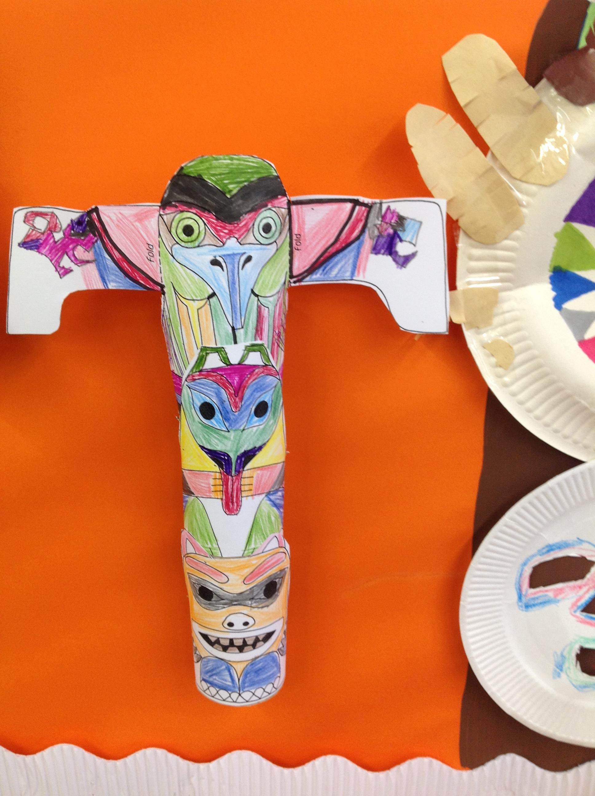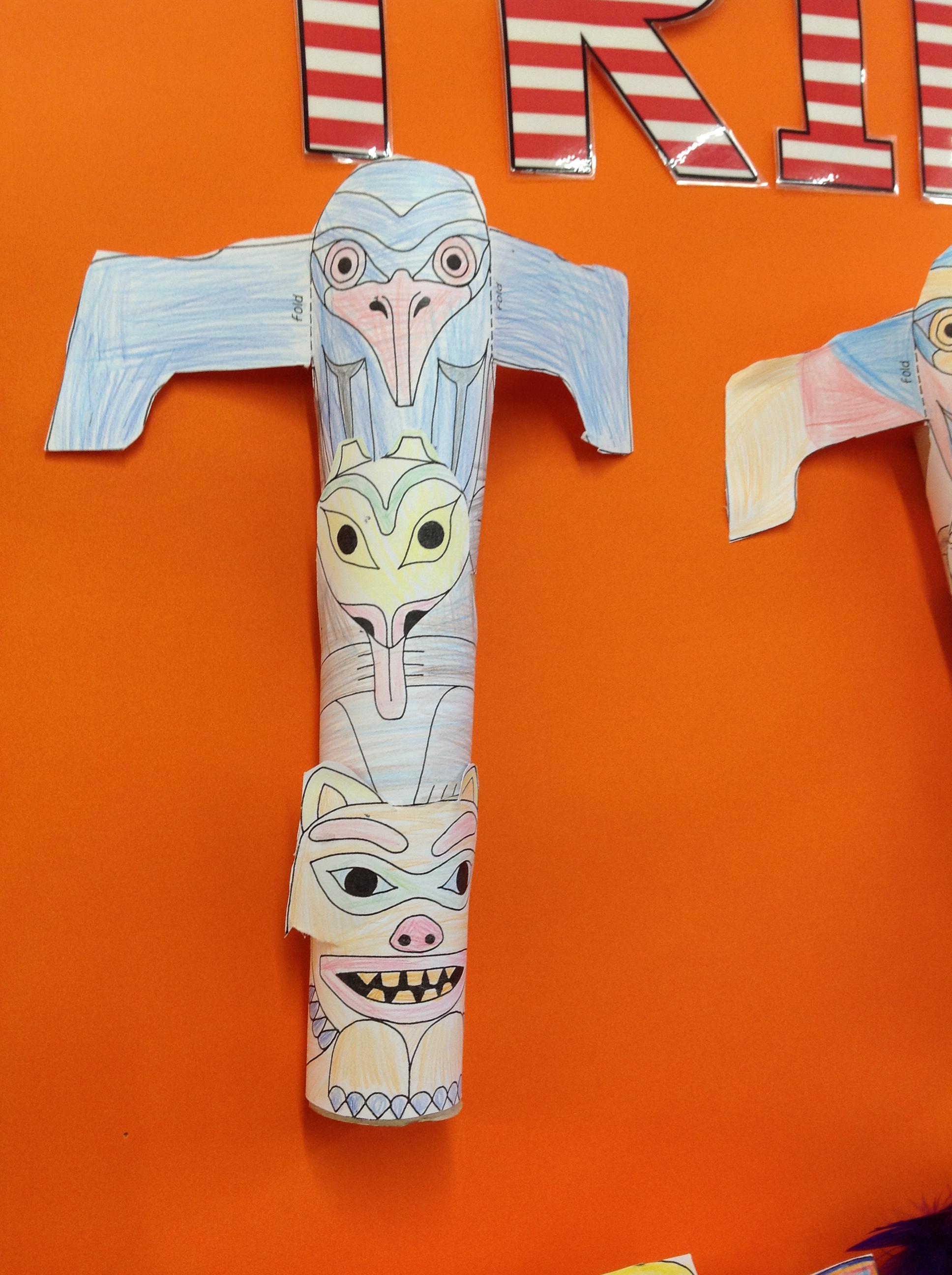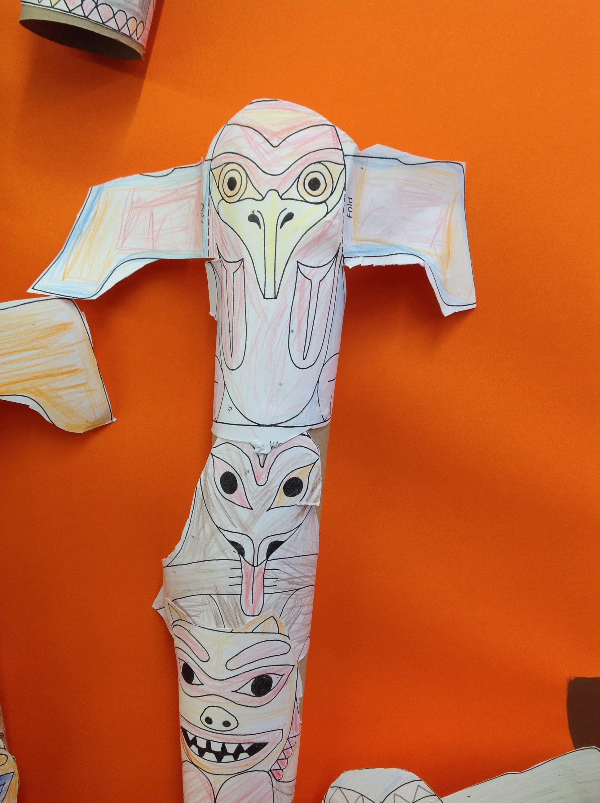 We made our own Totem Poles today. We learnt all about how important they were to Native American culture and how they told stories of the tribe's legends.