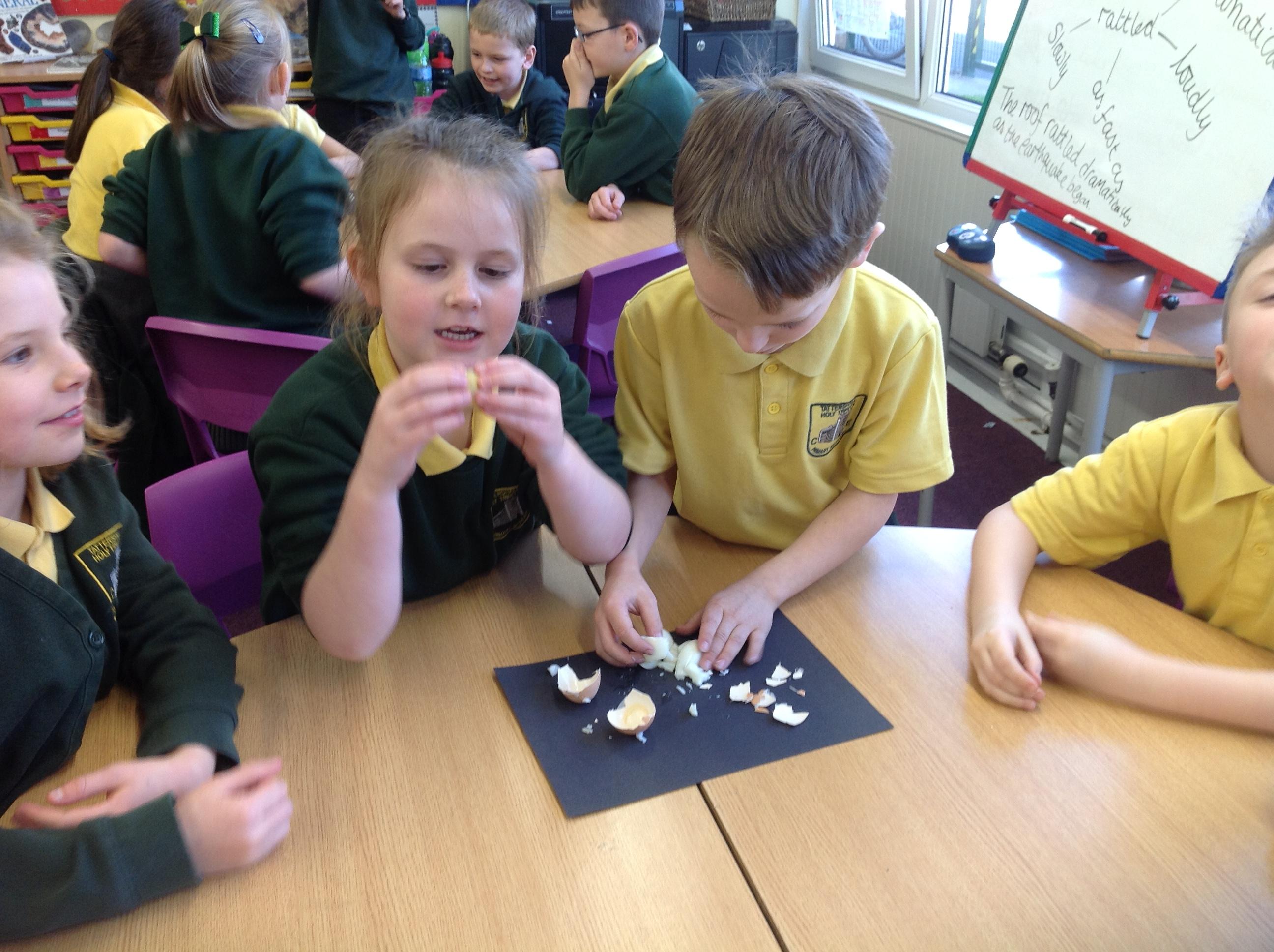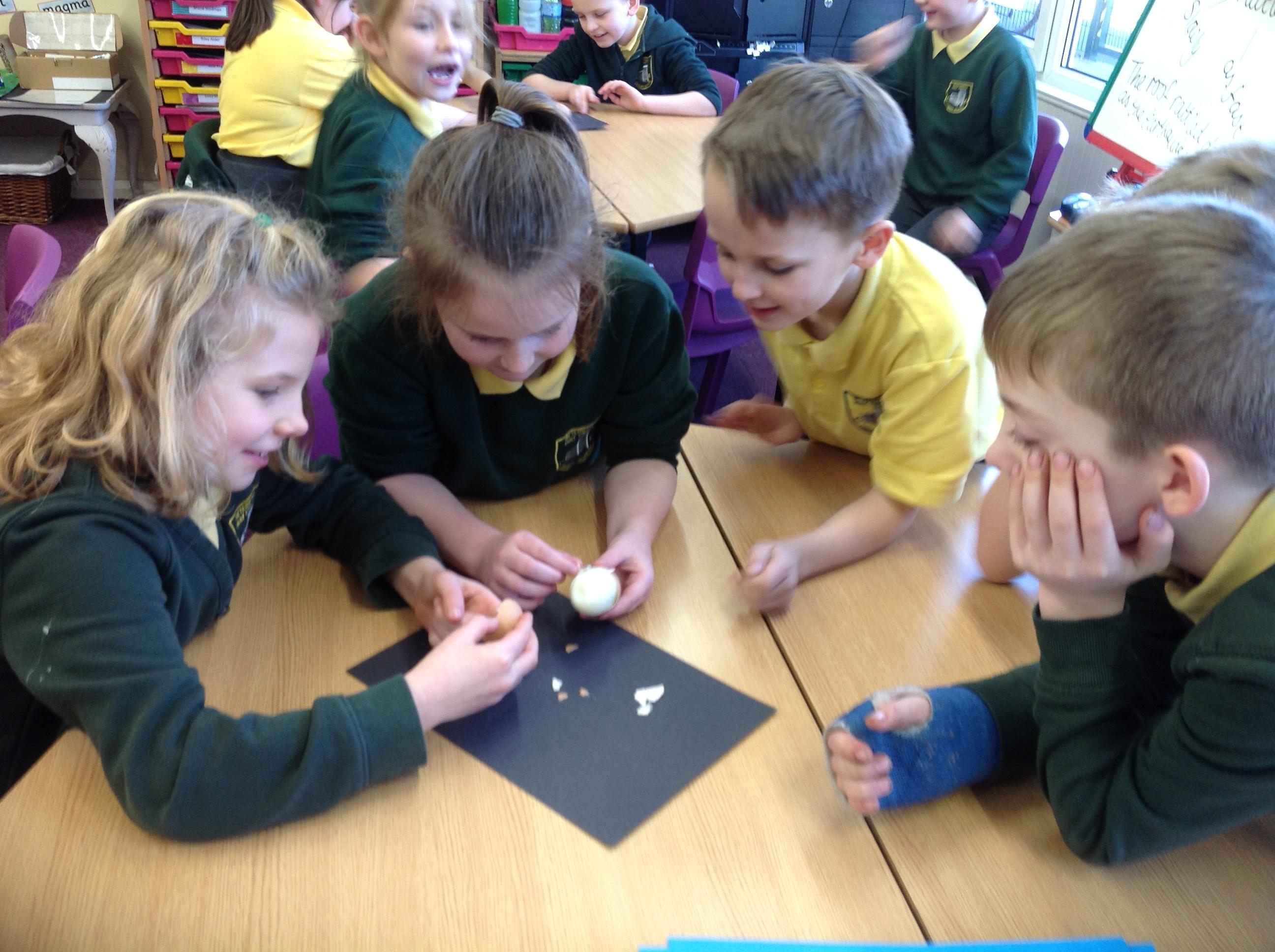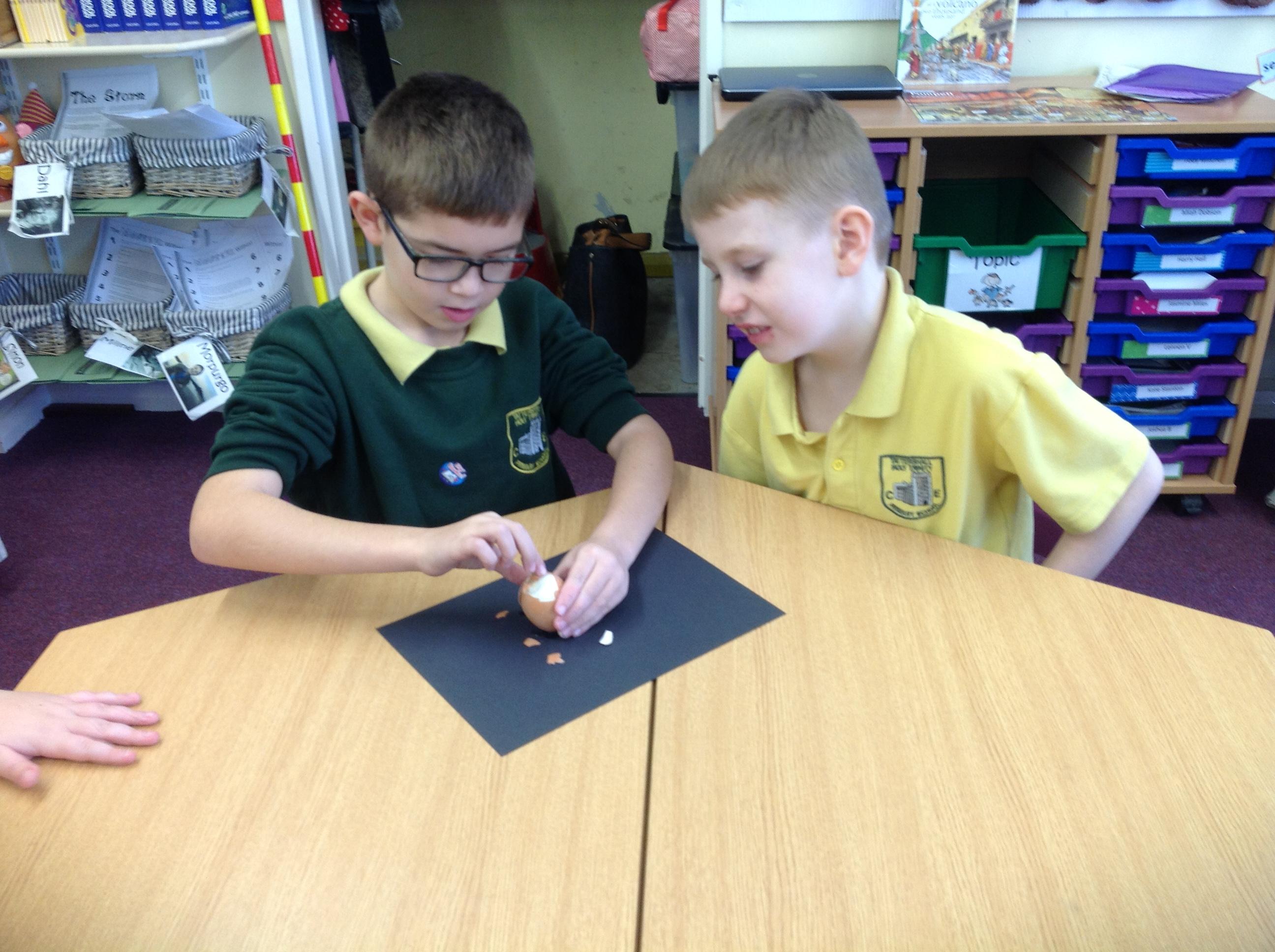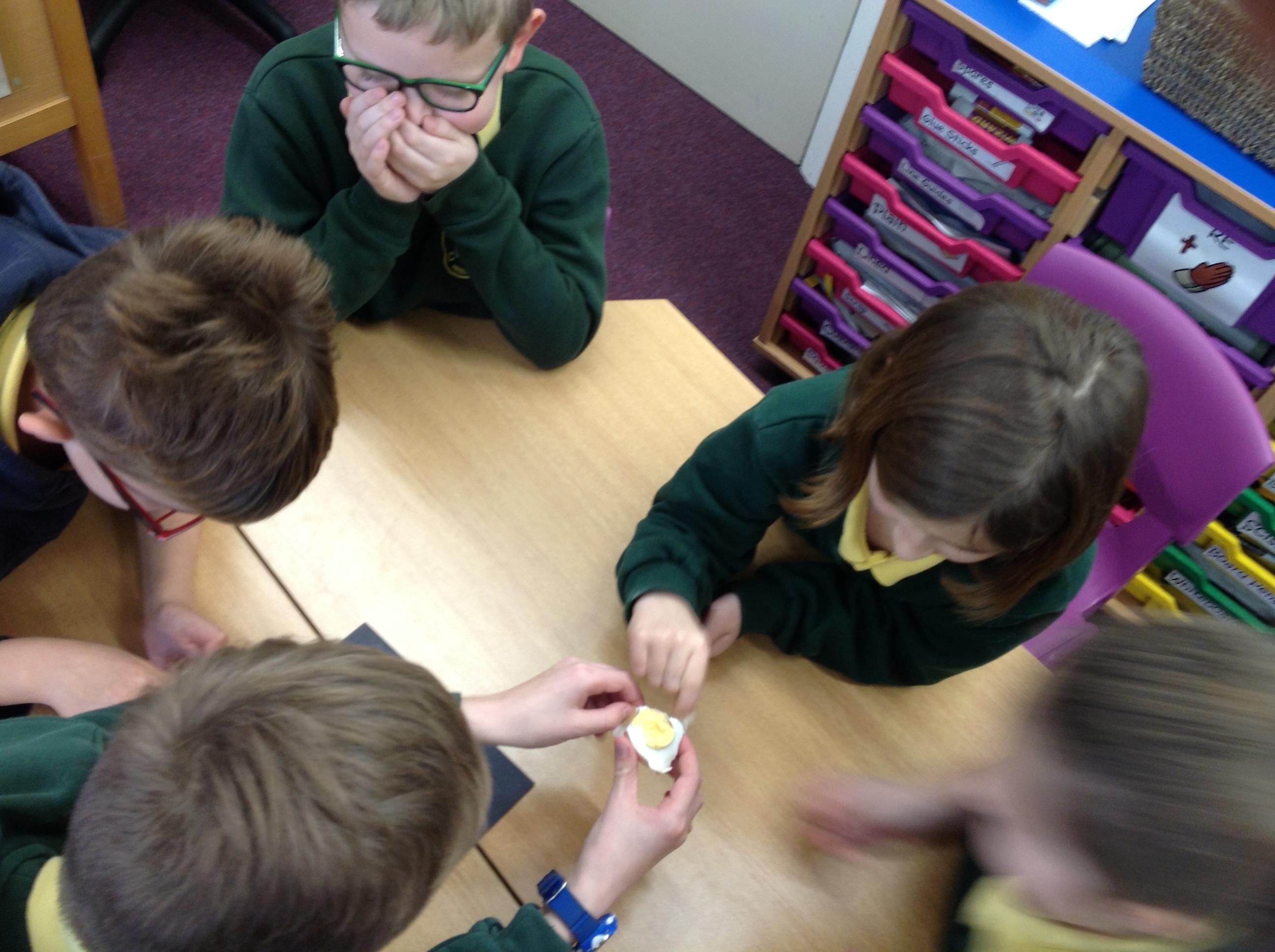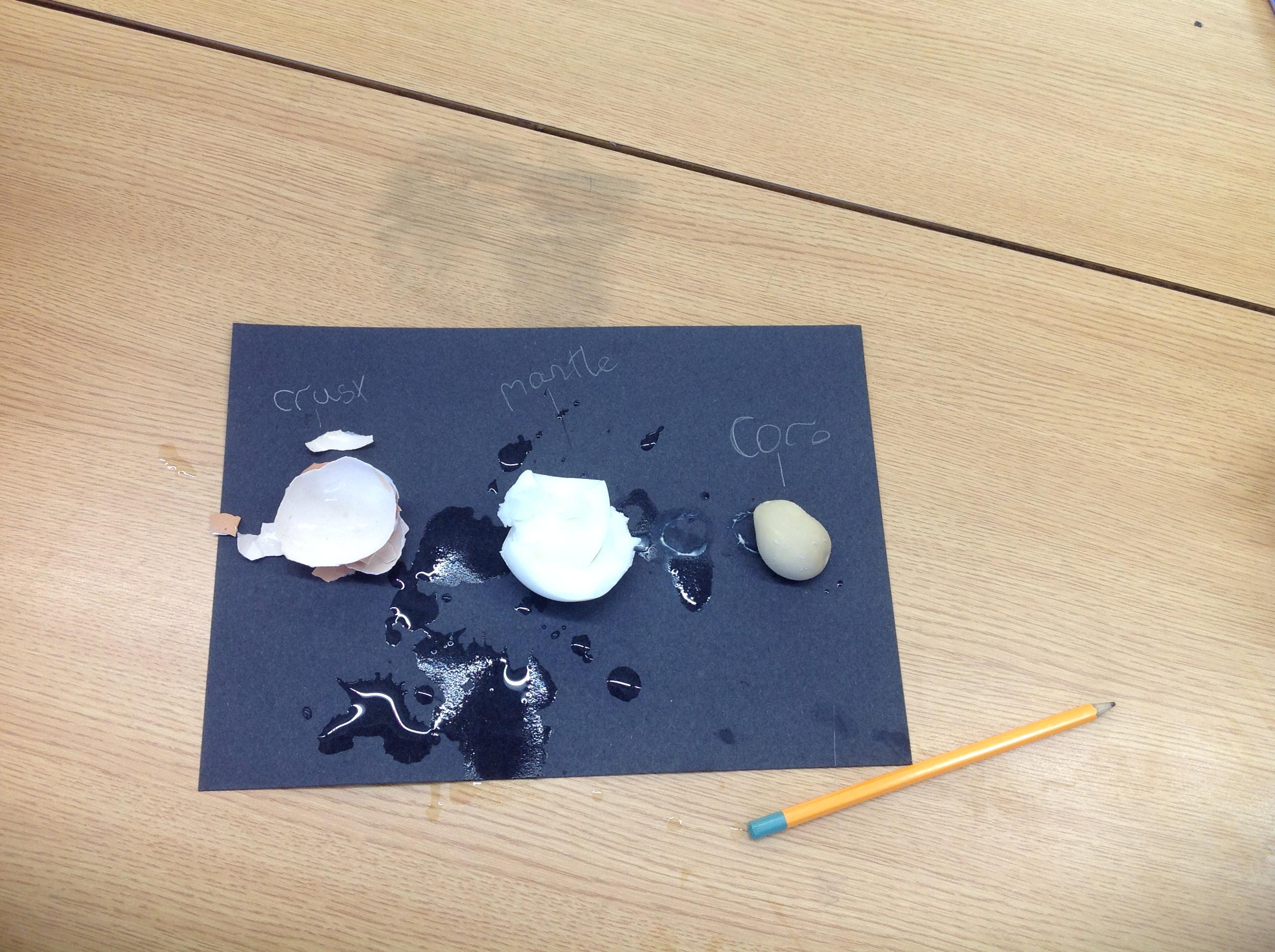 We learnt about the structure of the earth today using a hard boiled egg! We took the egg apart and discussed the shell being like the earth's crust, the white being like the mantle and the yolk to represent the core!