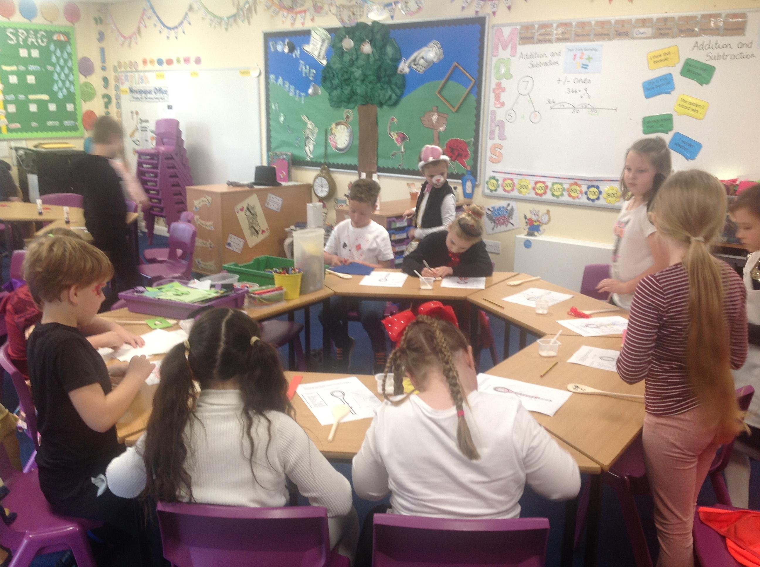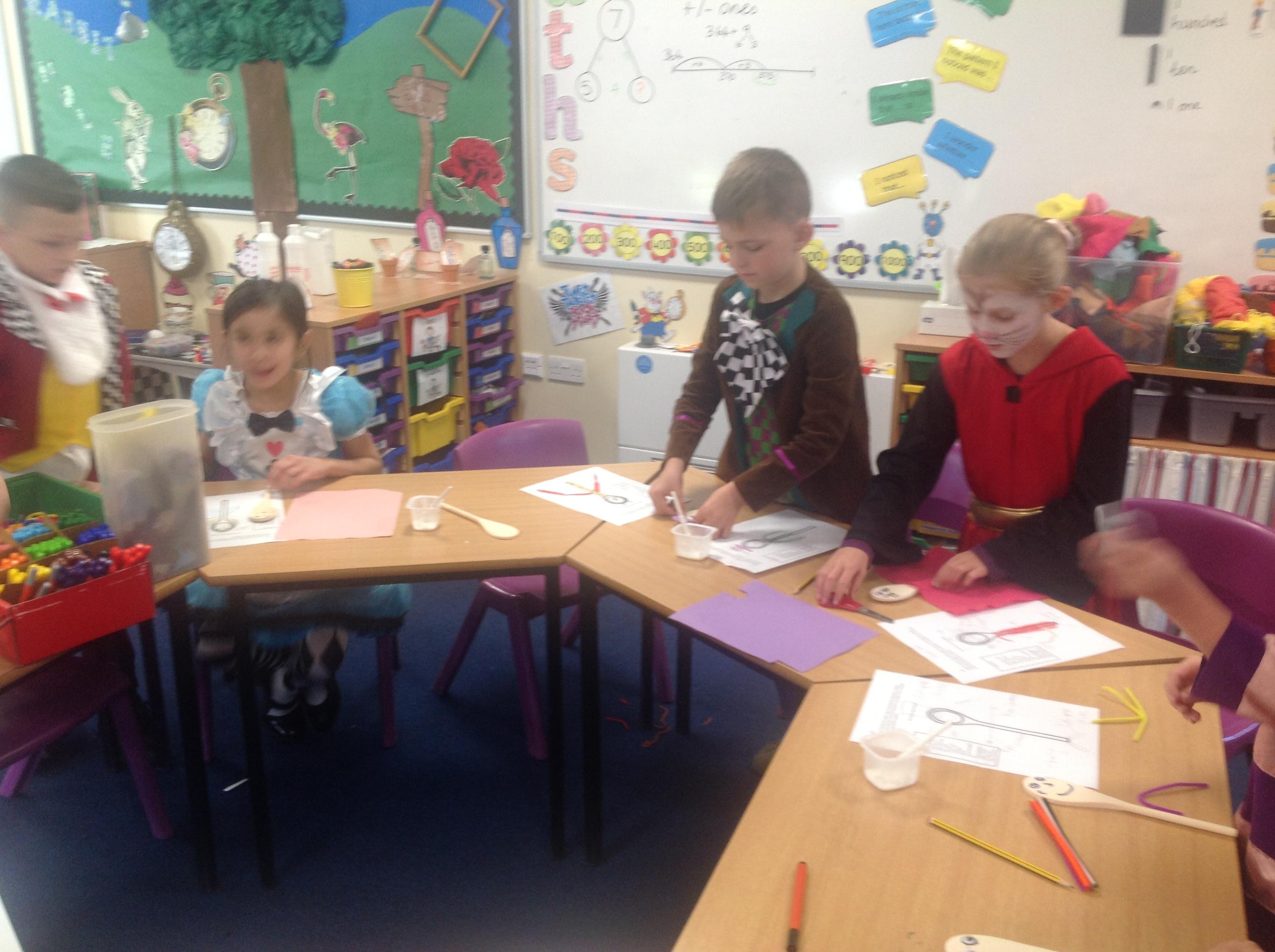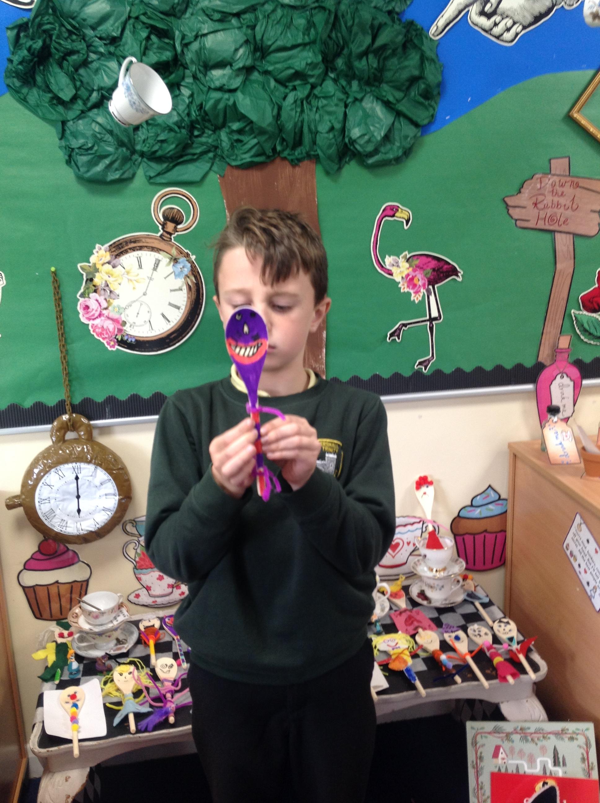 We have had a brilliant start to our term today! We all came to school suitably dressed for a Mad Hatter's Tea Party! We started the day learning about some of Absolem's Riddles! We then had a go at writing some of our own! We also designed our very own Wonderland Wooden Spoon Character Puppet, thinking about all the materials and equipment we might use for different parts of our puppet.