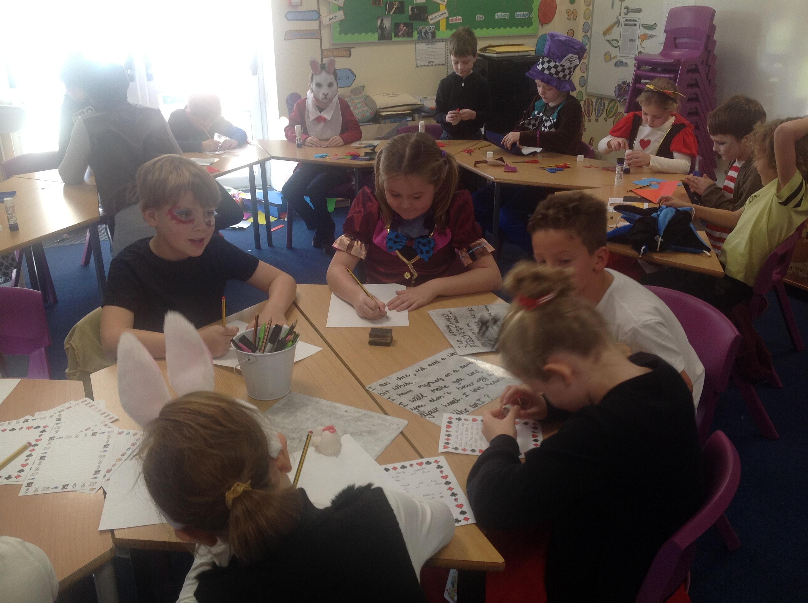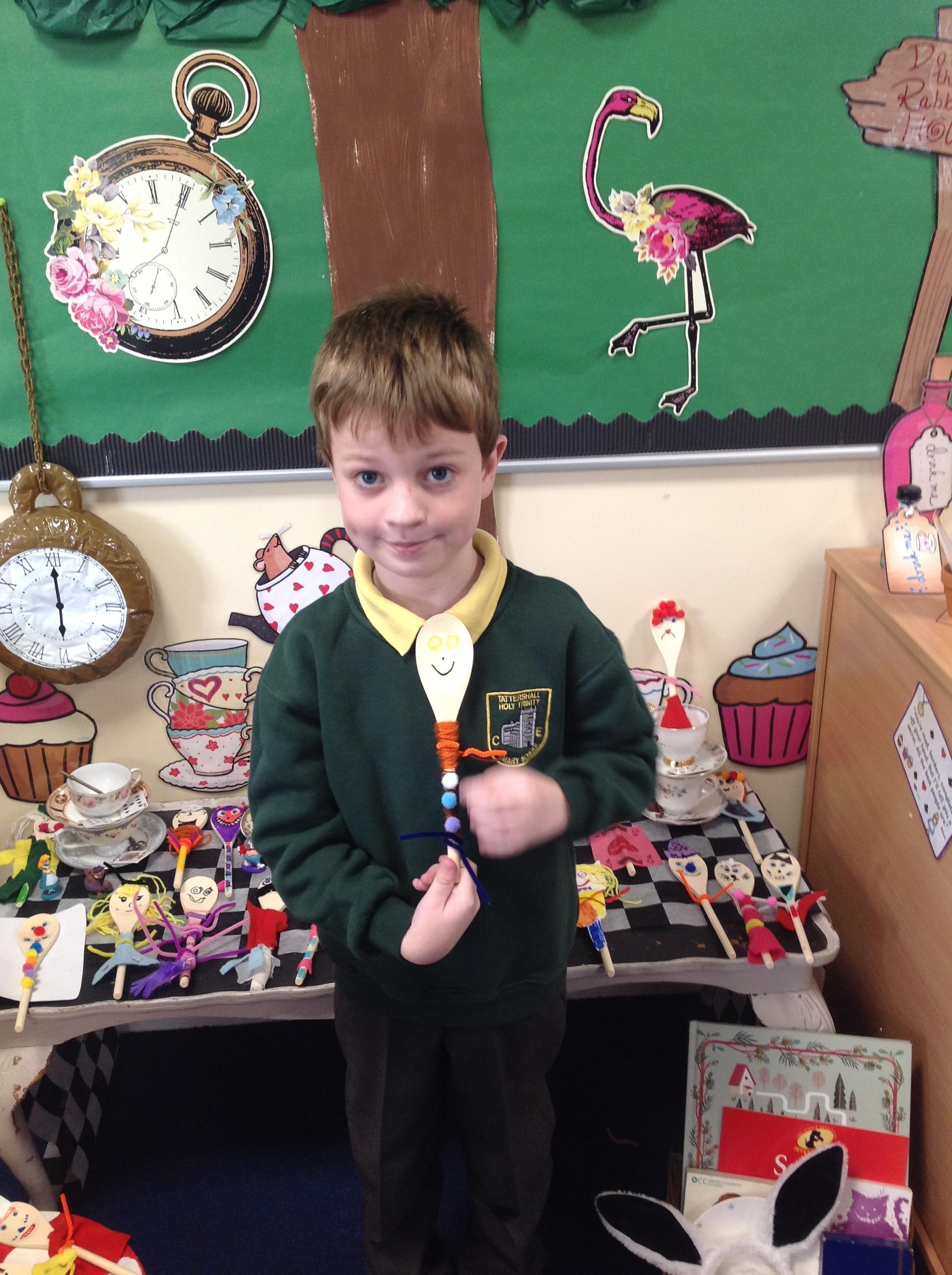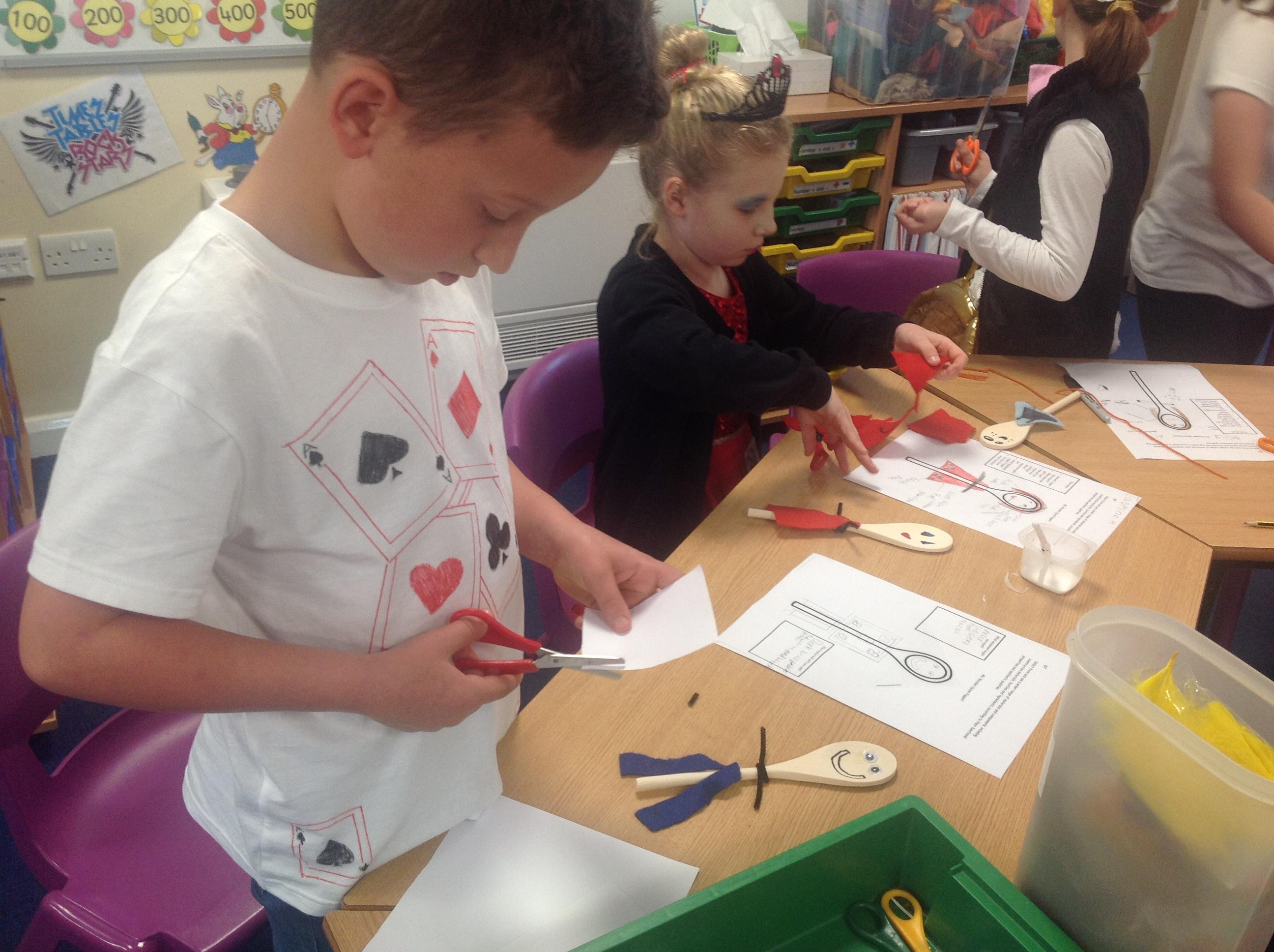 We have had a brilliant start to our term today! We all came to school suitably dressed for a Mad Hatter's Tea Party! We started the day learning about some of Absolem's Riddles! We then had a go at writing some of our own! We also designed our very own Wonderland Wooden Spoon Character Puppet, thinking about all the materials and equipment we might use for different parts of our puppet.