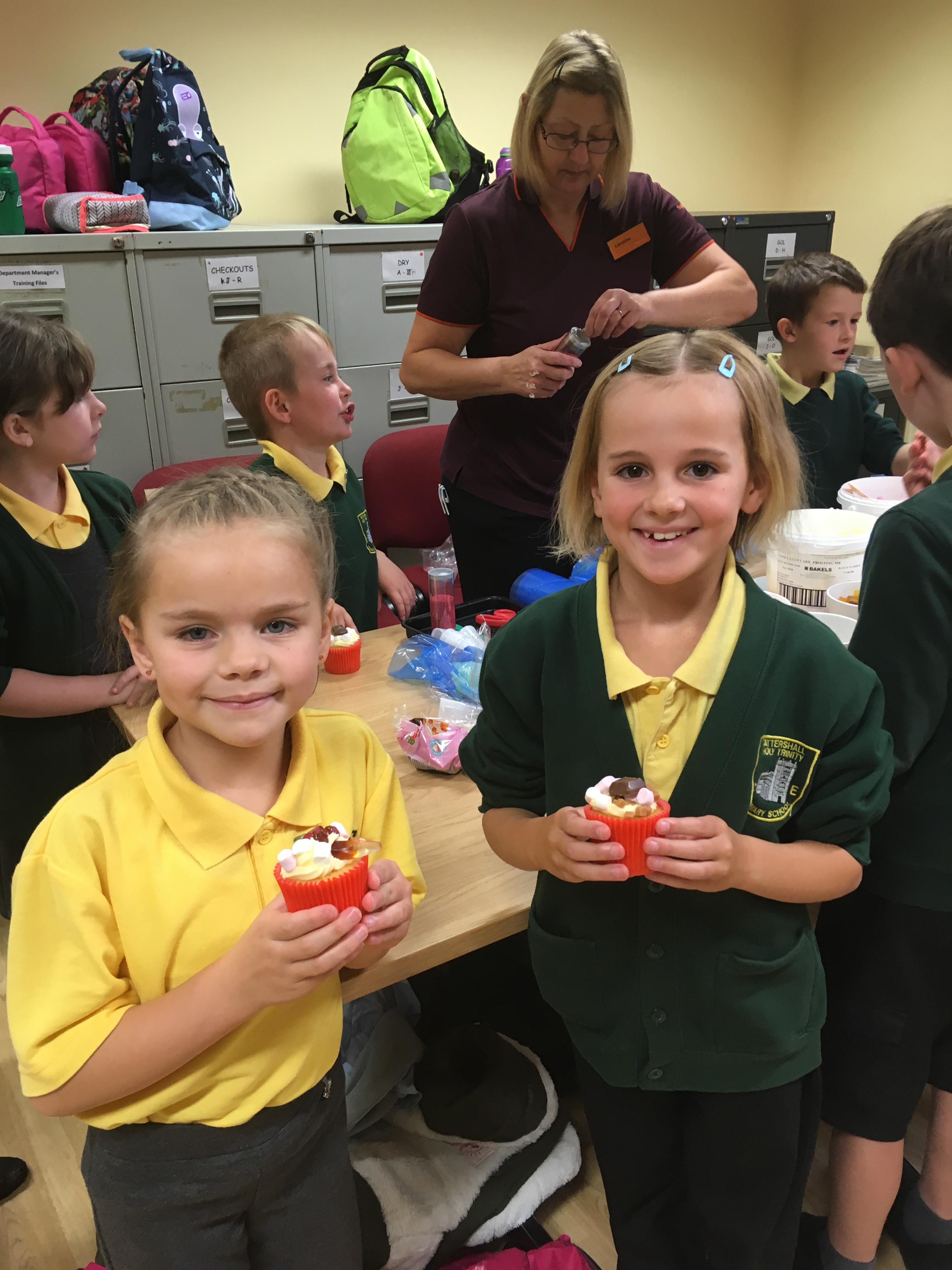 We had a wonderful time visiting the Lincoln branch of Sainsbury's this week! We had a tour of the store, practised icing cupcakes and had some checkout till training! We learnt lots about how the the store started and that they were the first seller of fair-trade goods!