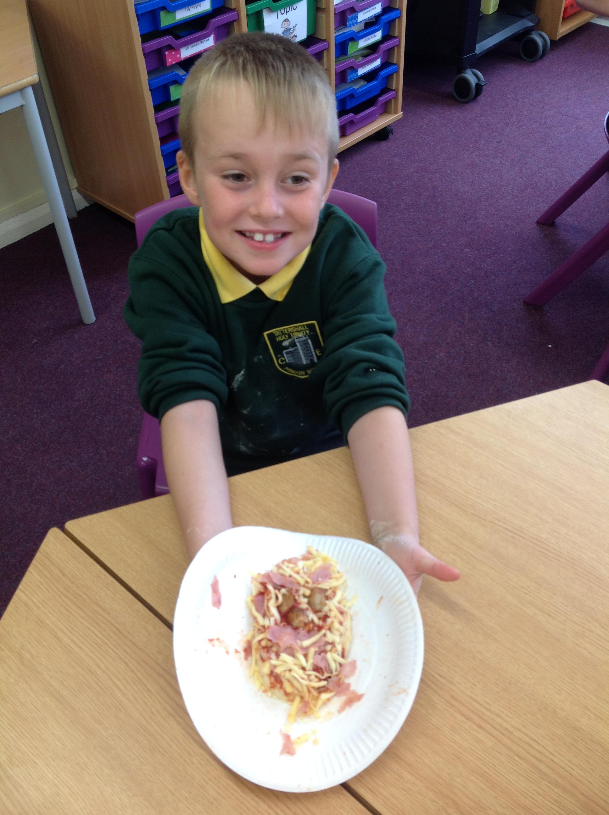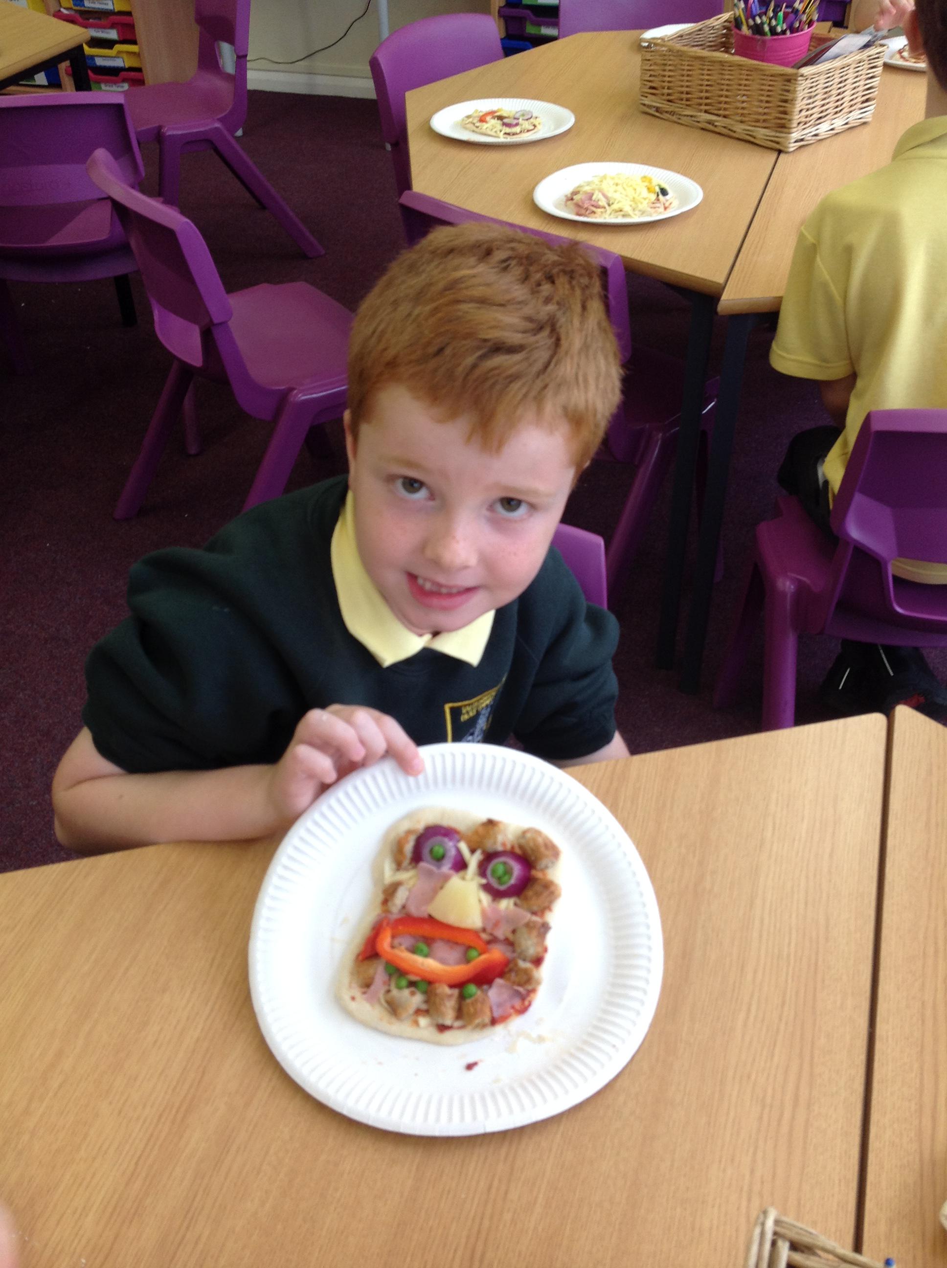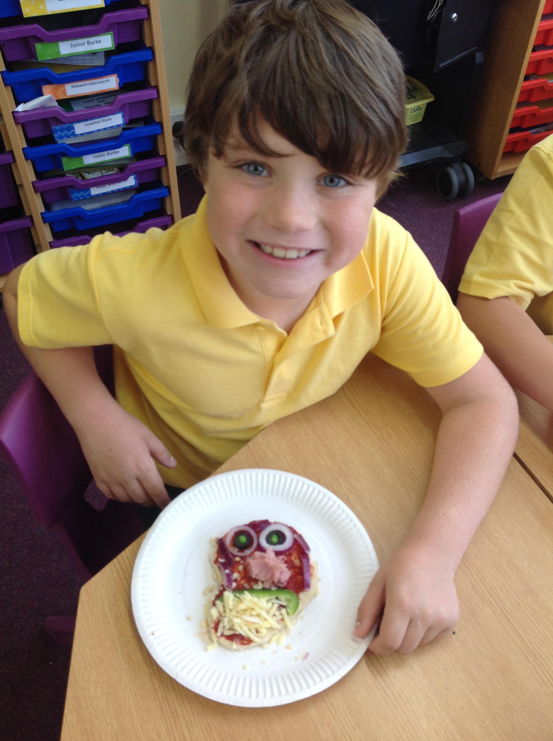 We had a fantastic time making our Mr Twit Beard pizzas today and don't they look amazing! We designed our faces using specific ingredients and then put this into practise today! We made our own pizza dough and then decorated it with mushrooms, cheese, peppers and many more! We really hope they are as delicious as they look!