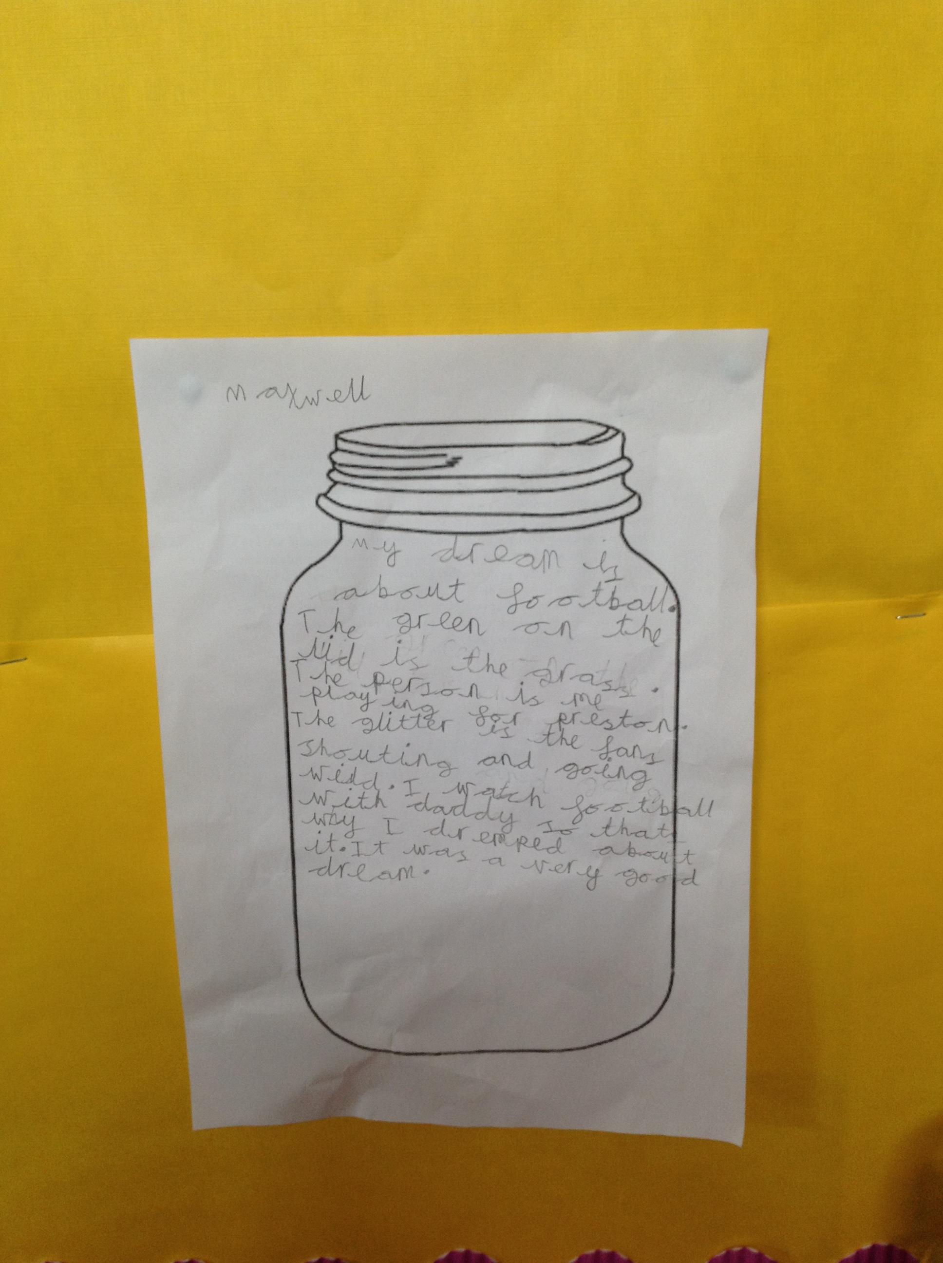 Thank you to all the children who brought in a Dream Jar this week! They look fantastic on our BFG Dream Cave display! We have had a lovely time reading each other's dreams and looking at the amazing creative ideas everyone has had!