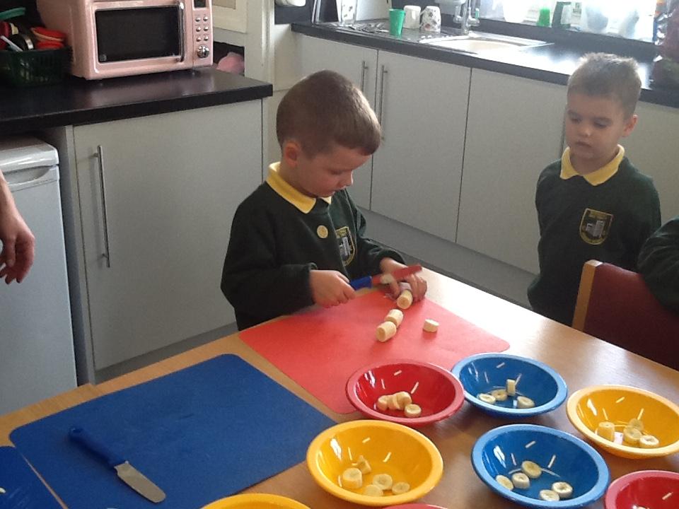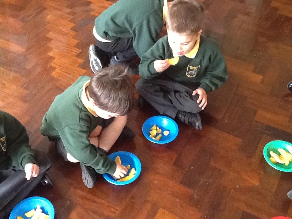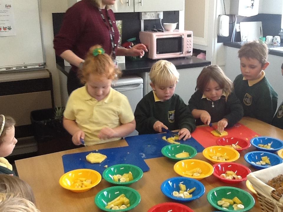 The children looked at the story Handas Surprise. The children had to write a shopping list and at the end of the week taste all the delicious fruit.