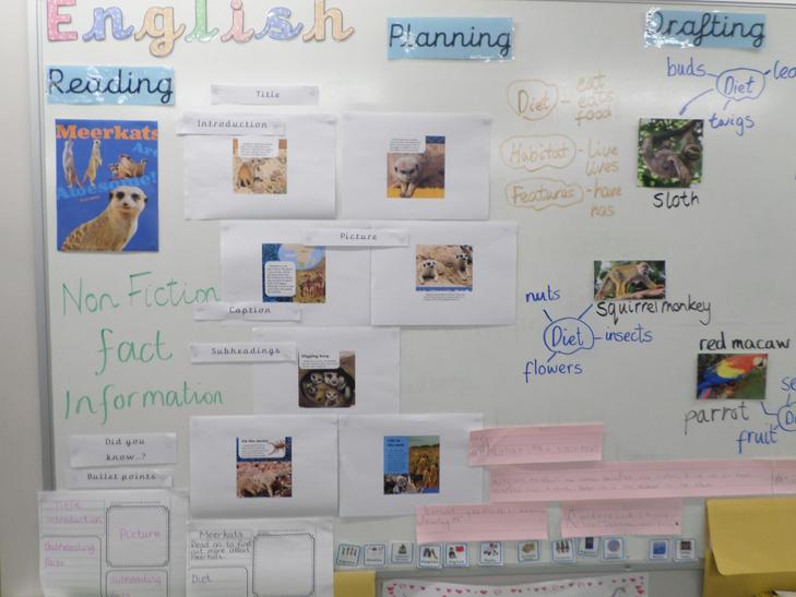 Willow Class have been learning about non-chronological report writing in their English lessons. First they studied different examples, including one on Meerkats. Then they have really enjoyed researching facts about exciting rainforest animals such as: squirrel monkeys, sloths, poison tree frogs, jaguars and tree boas. Having learned that this type of text has subheadings to organise the information, they wrote facts about their chosen animals: diet, features and habitat. They also wrote an introduction sentence at the start and a question to the reader at the end.