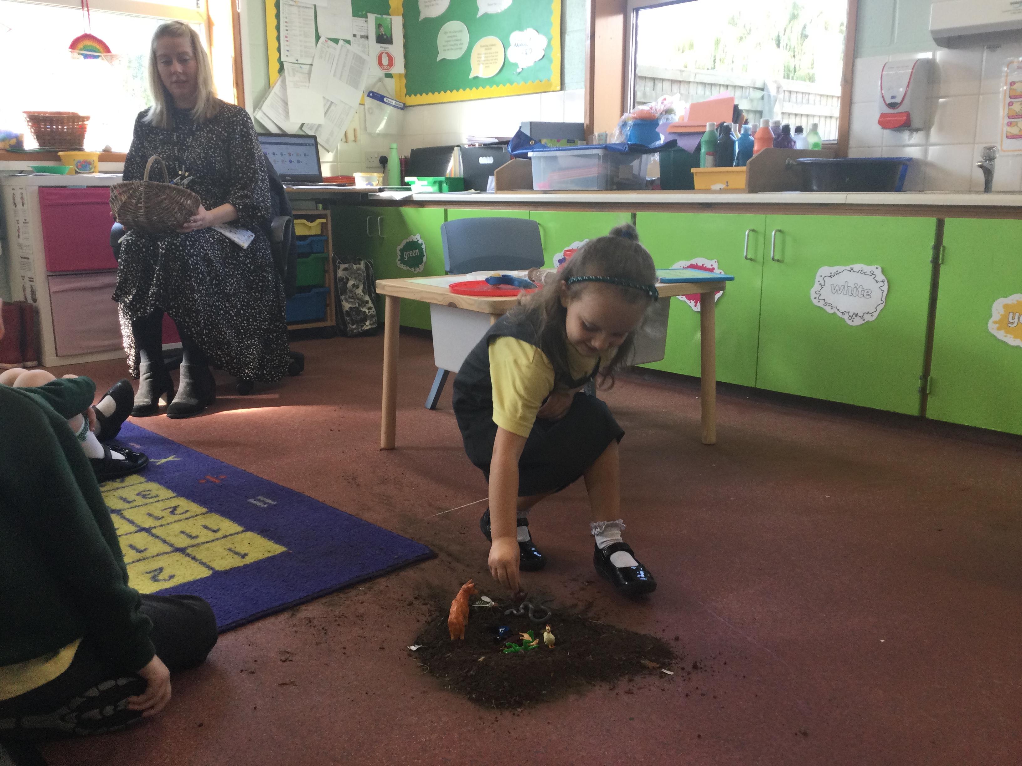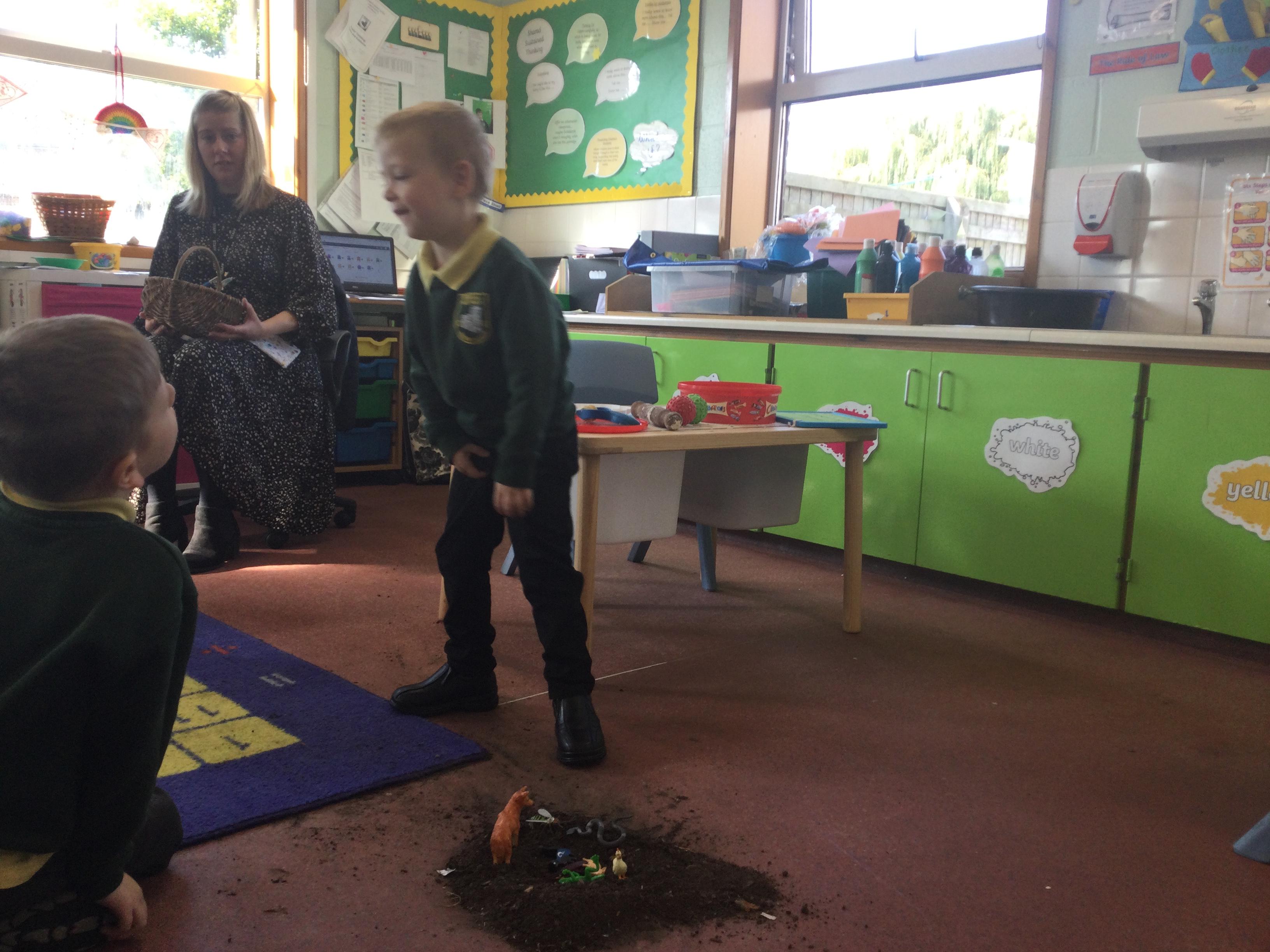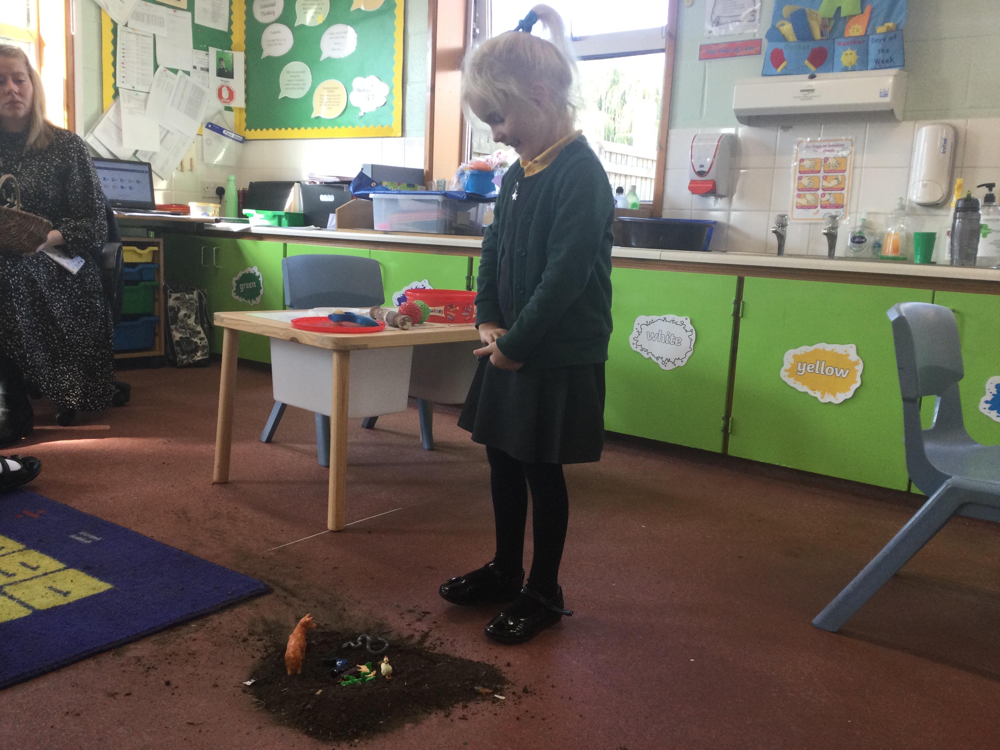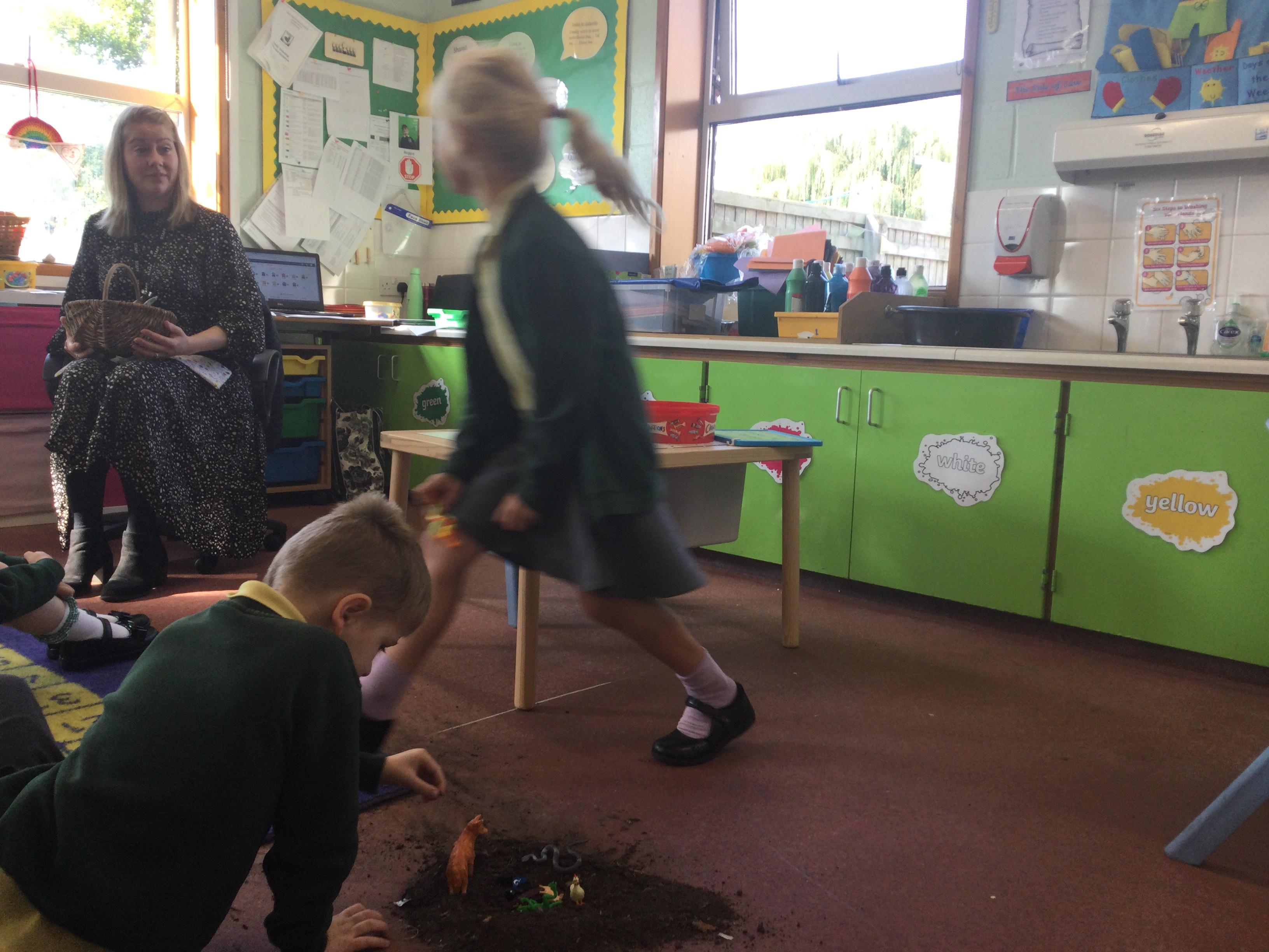 For this lesson the children sat around the hole and thought about what animal could be down their and if it would be safe. The children then picked an animal and put it down the hole.