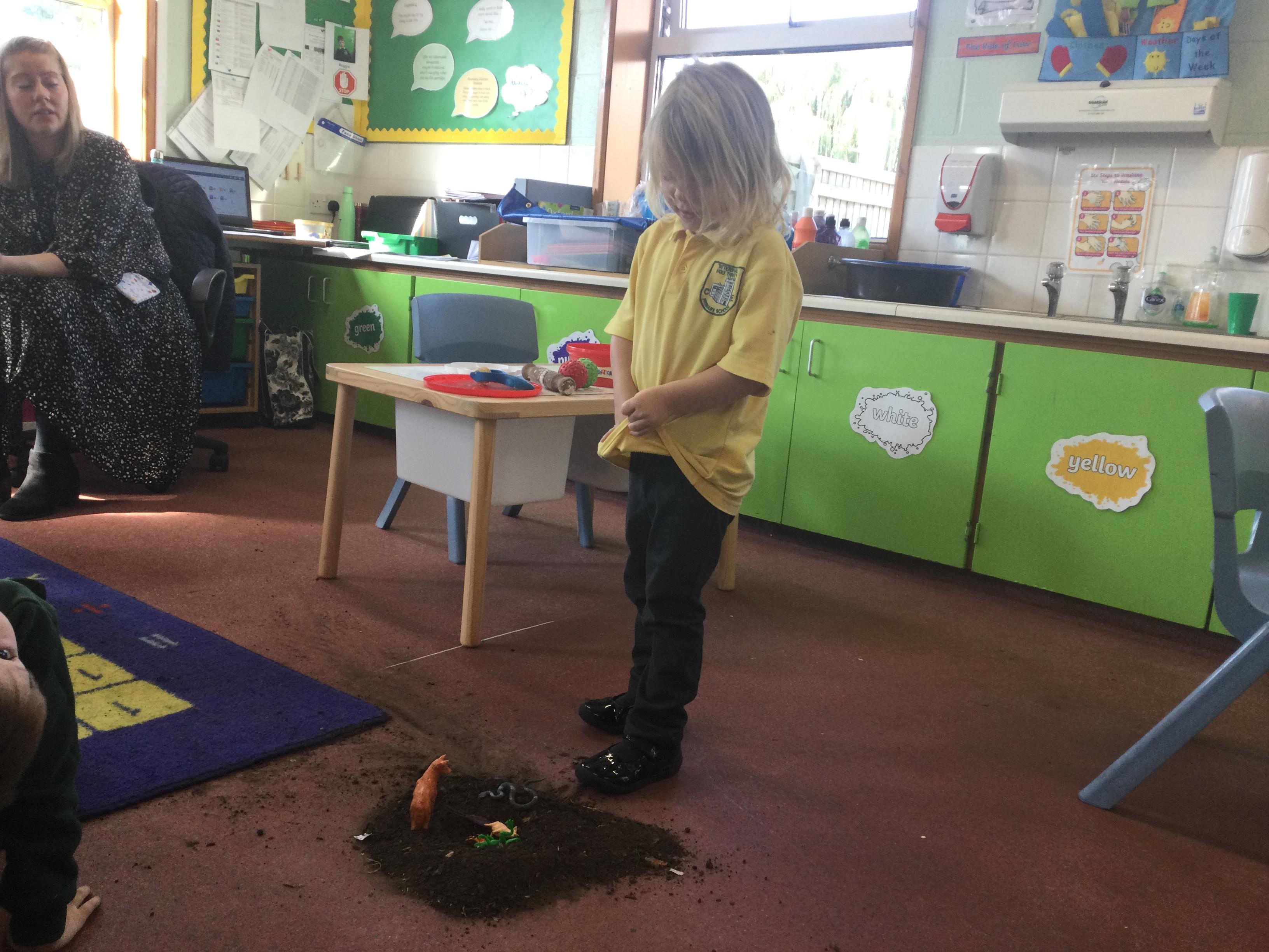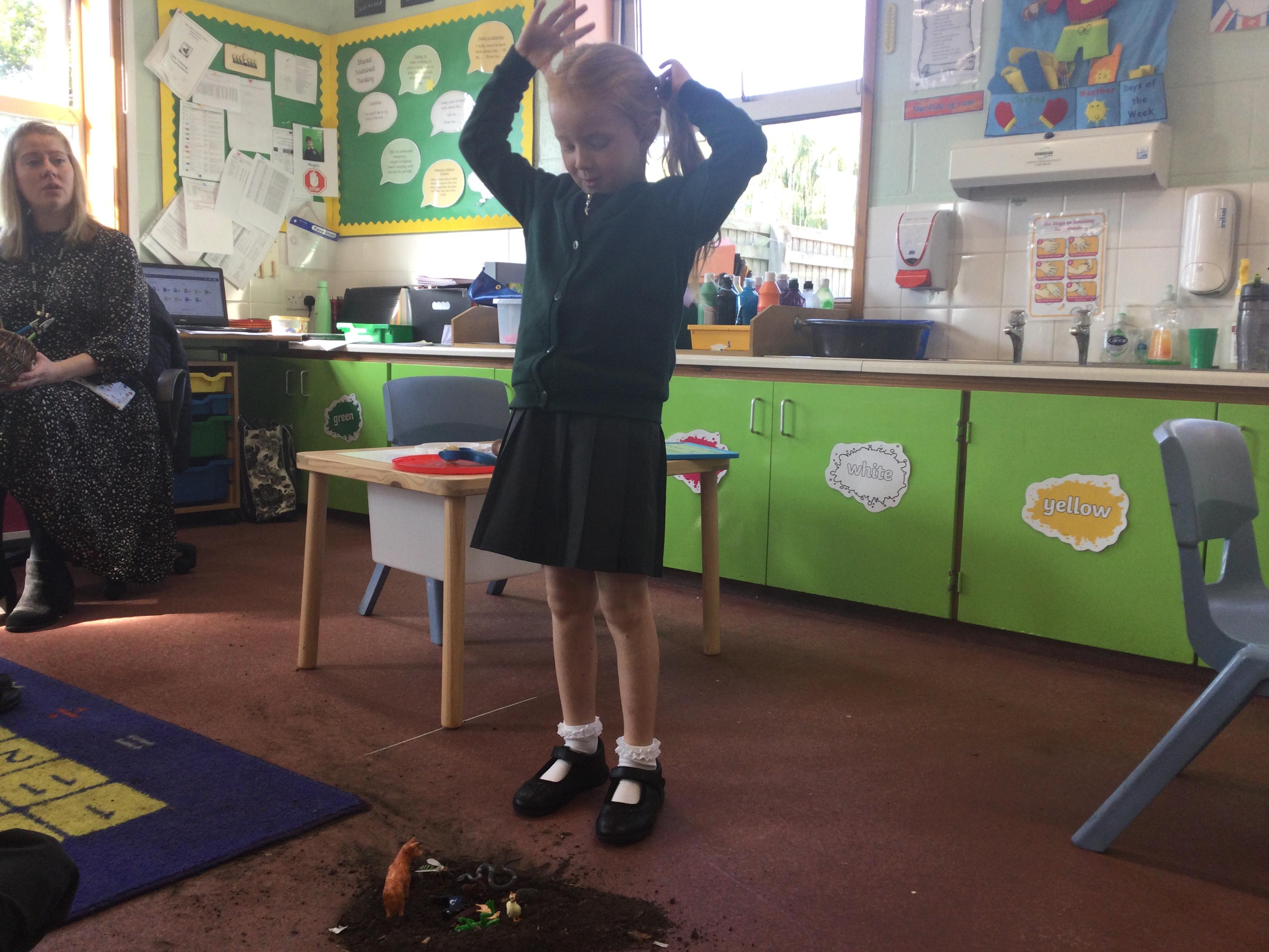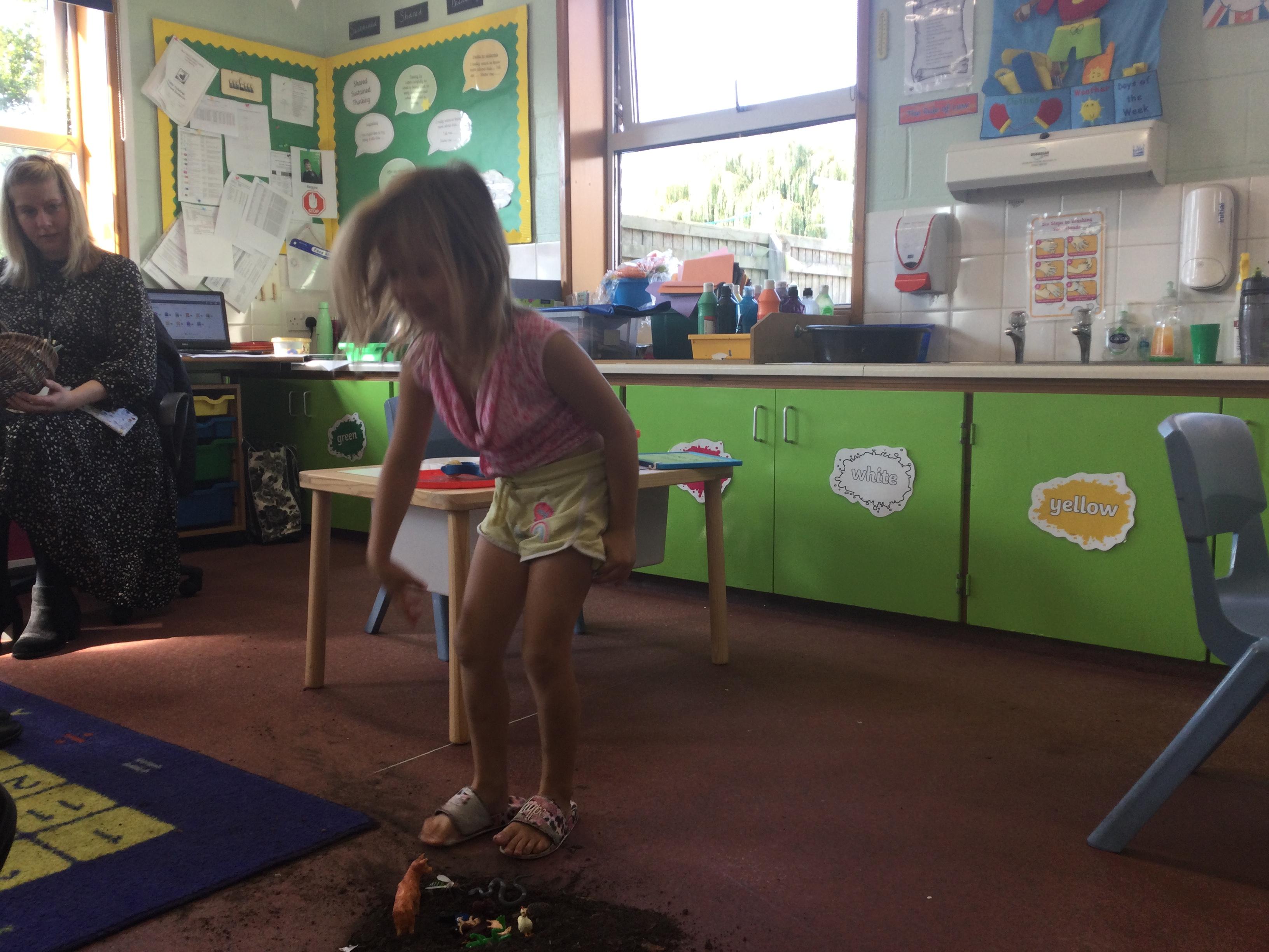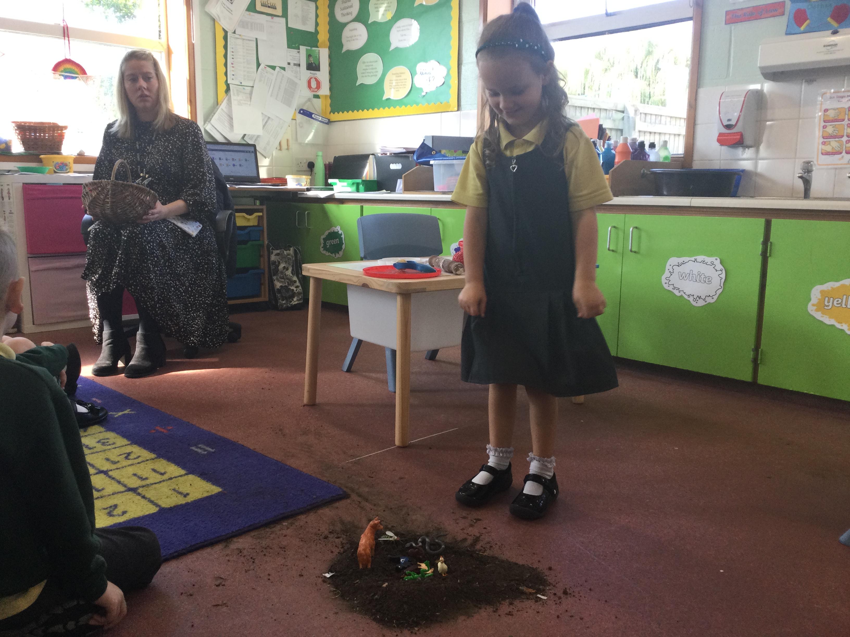 For this lesson the children sat around the hole and thought about what animal could be down their and if it would be safe. The children then picked an animal and put it down the hole.