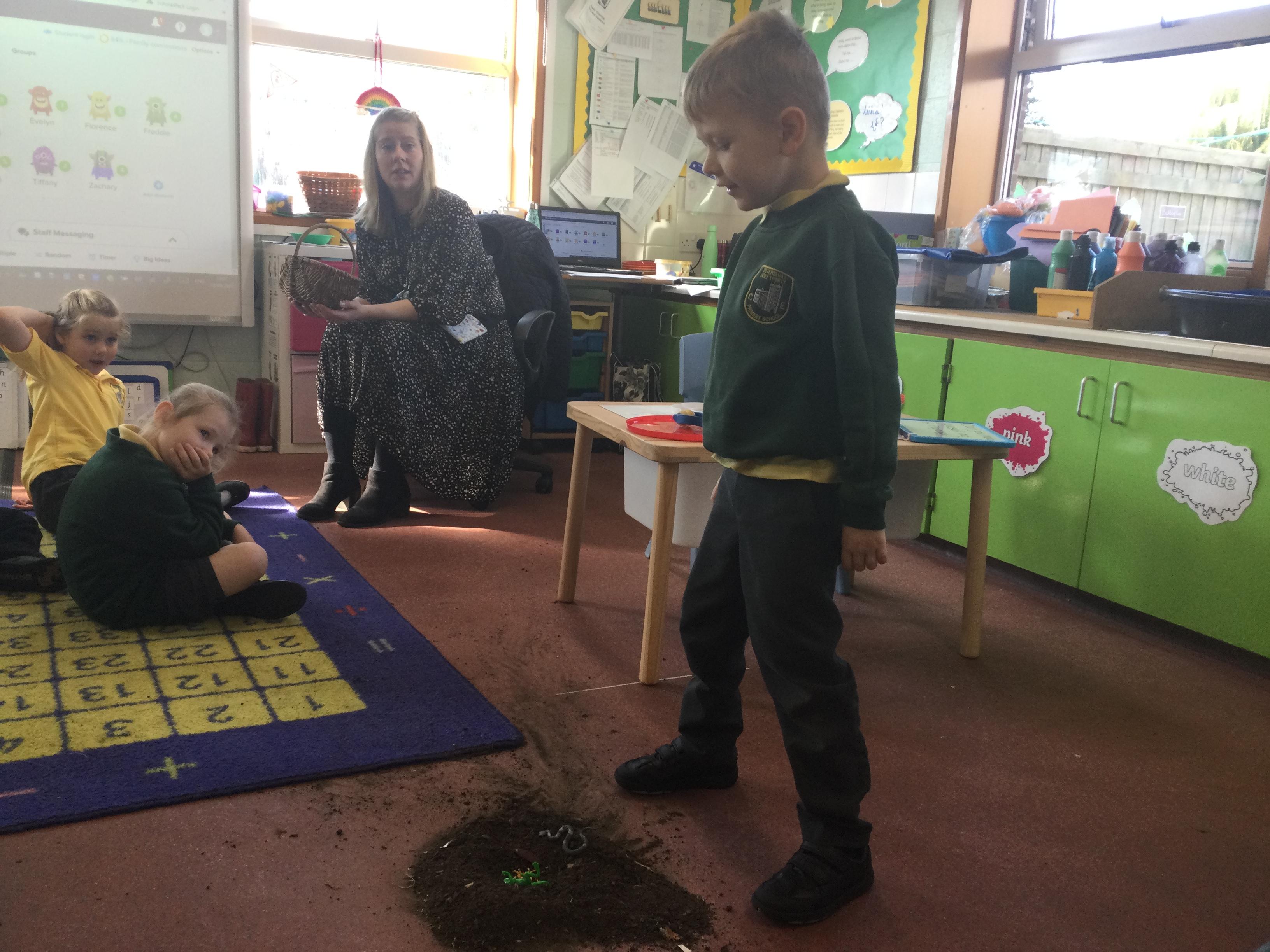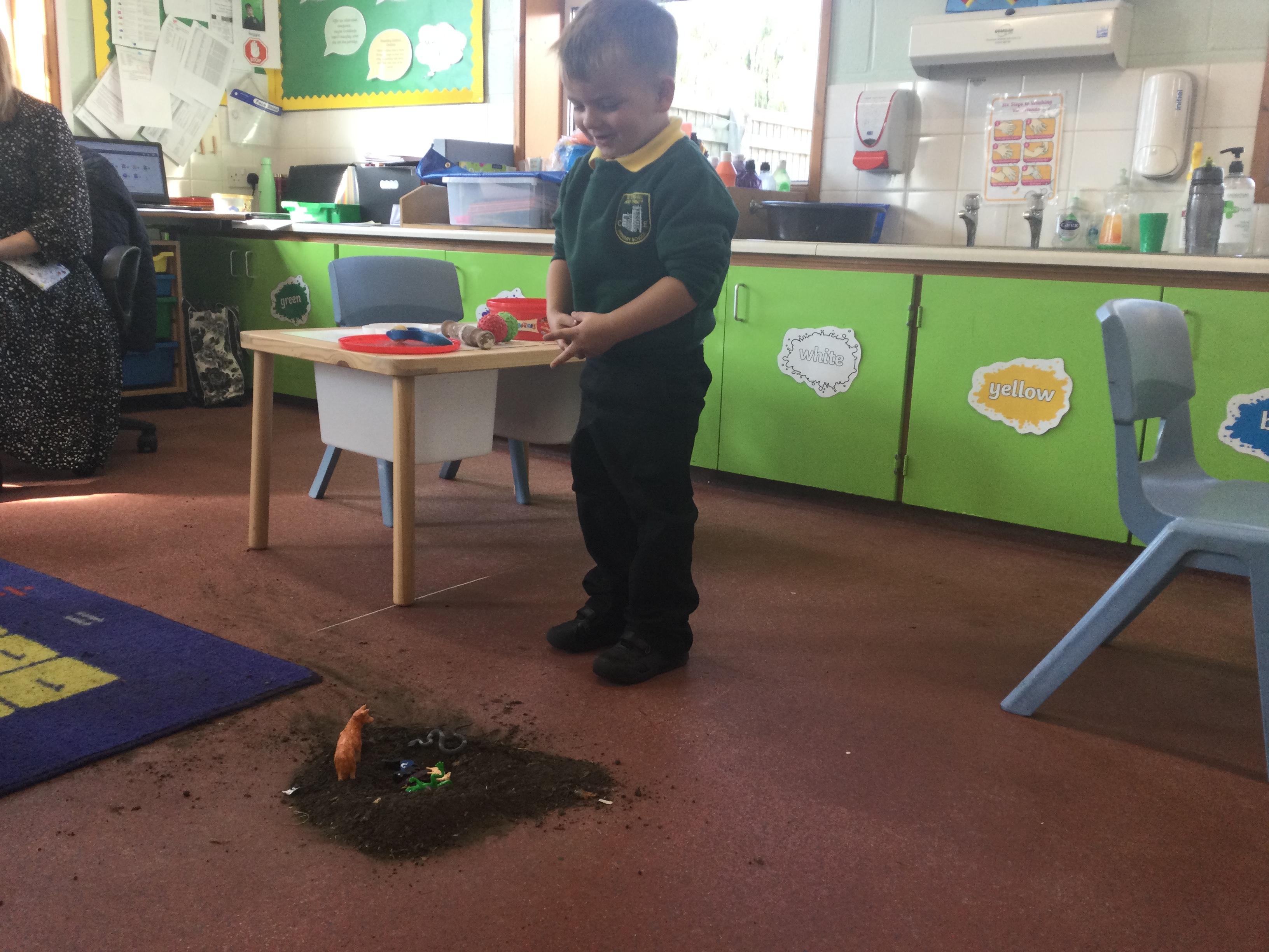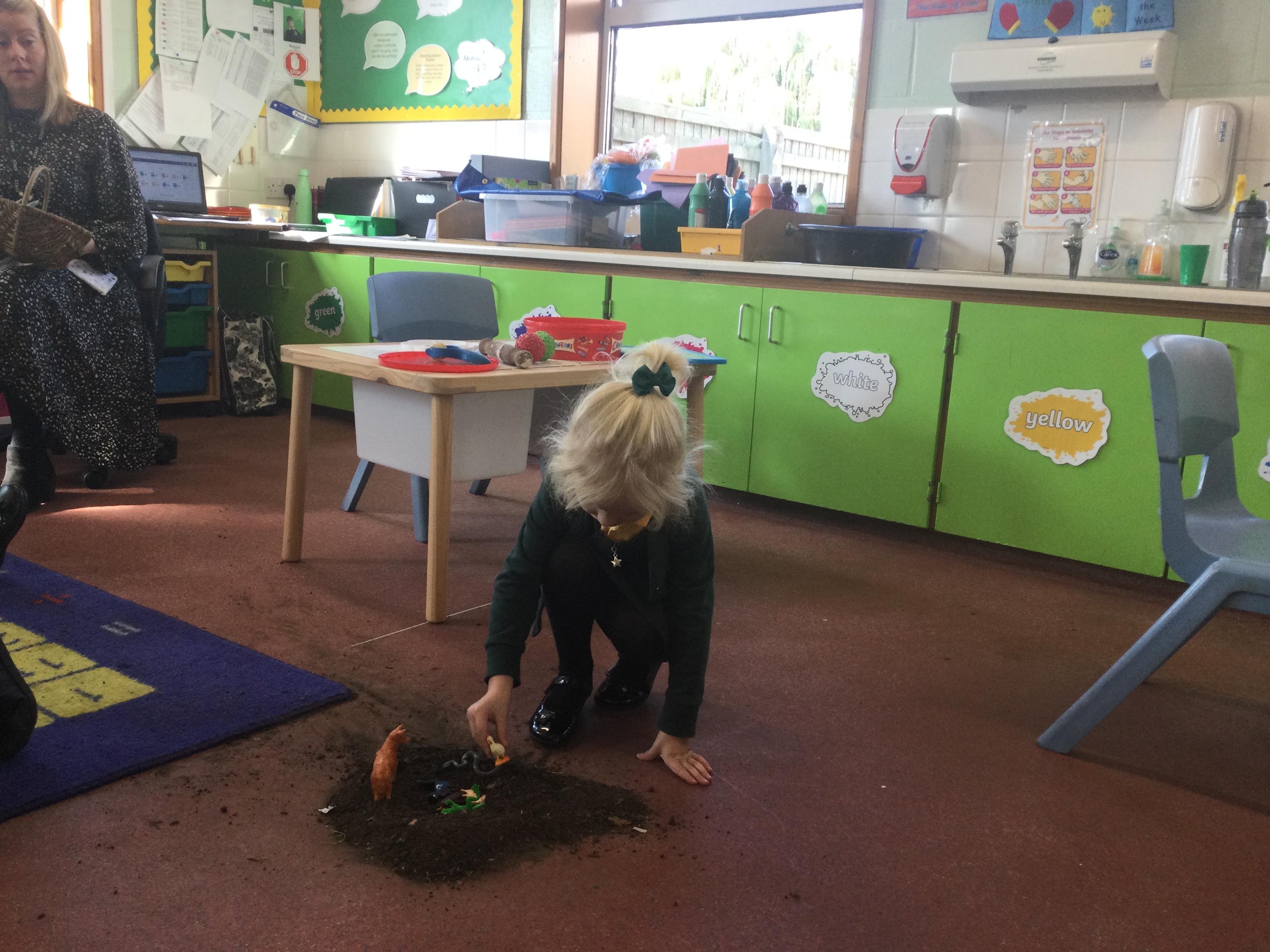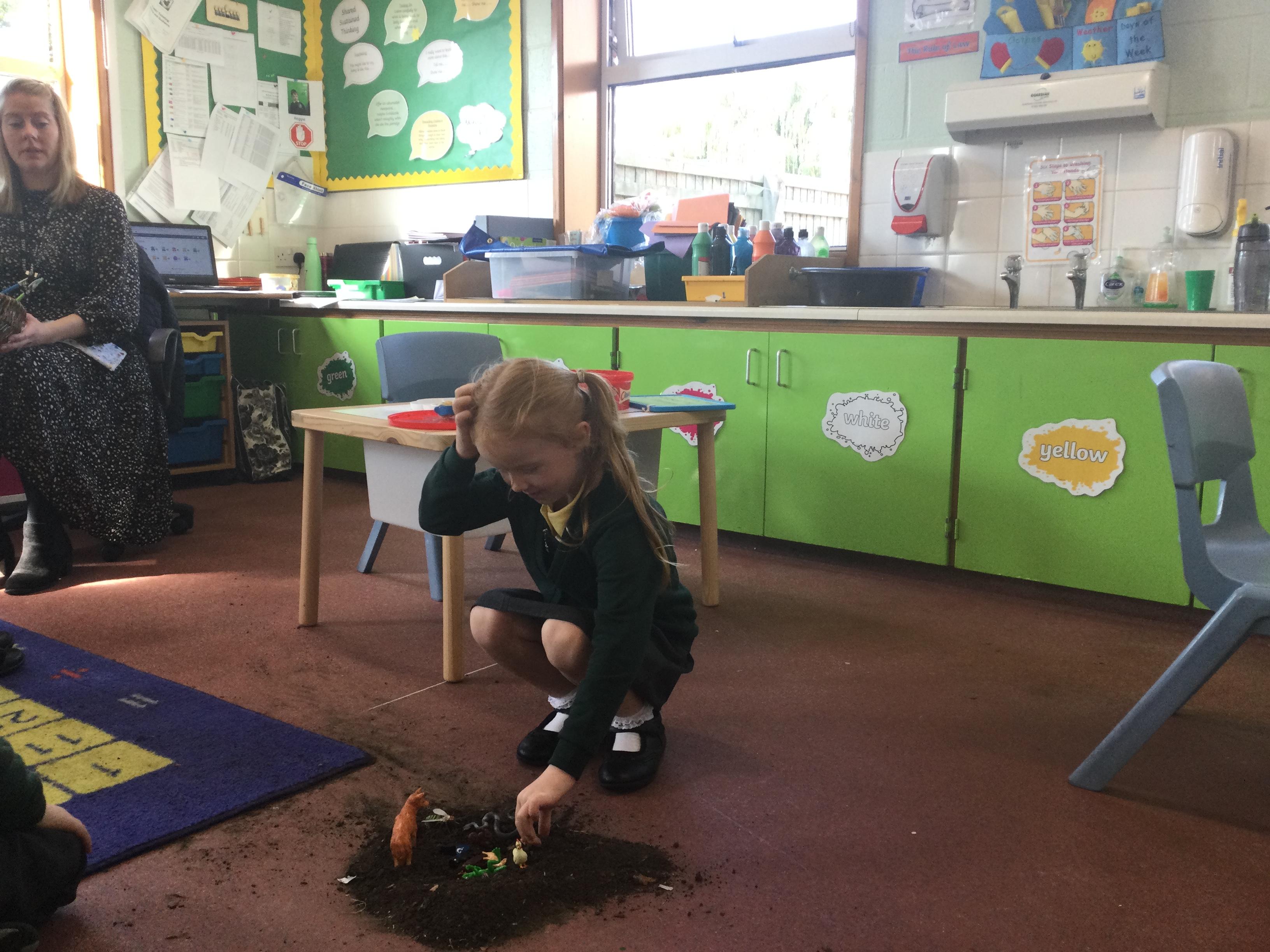 For this lesson the children sat around the hole and thought about what animal could be down their and if it would be safe. The children then picked an animal and put it down the hole.