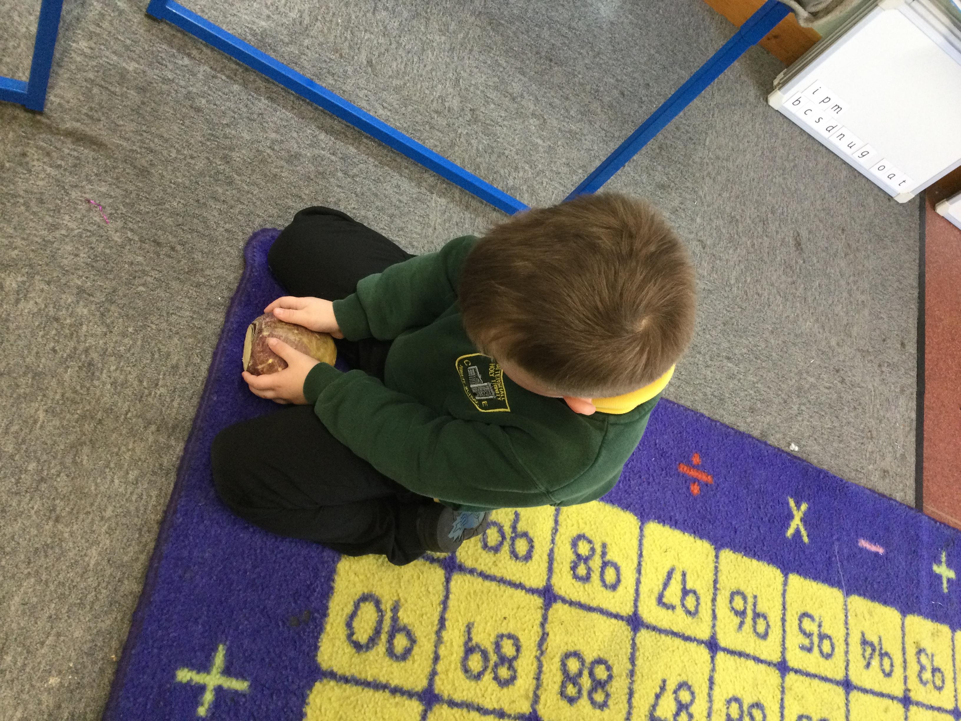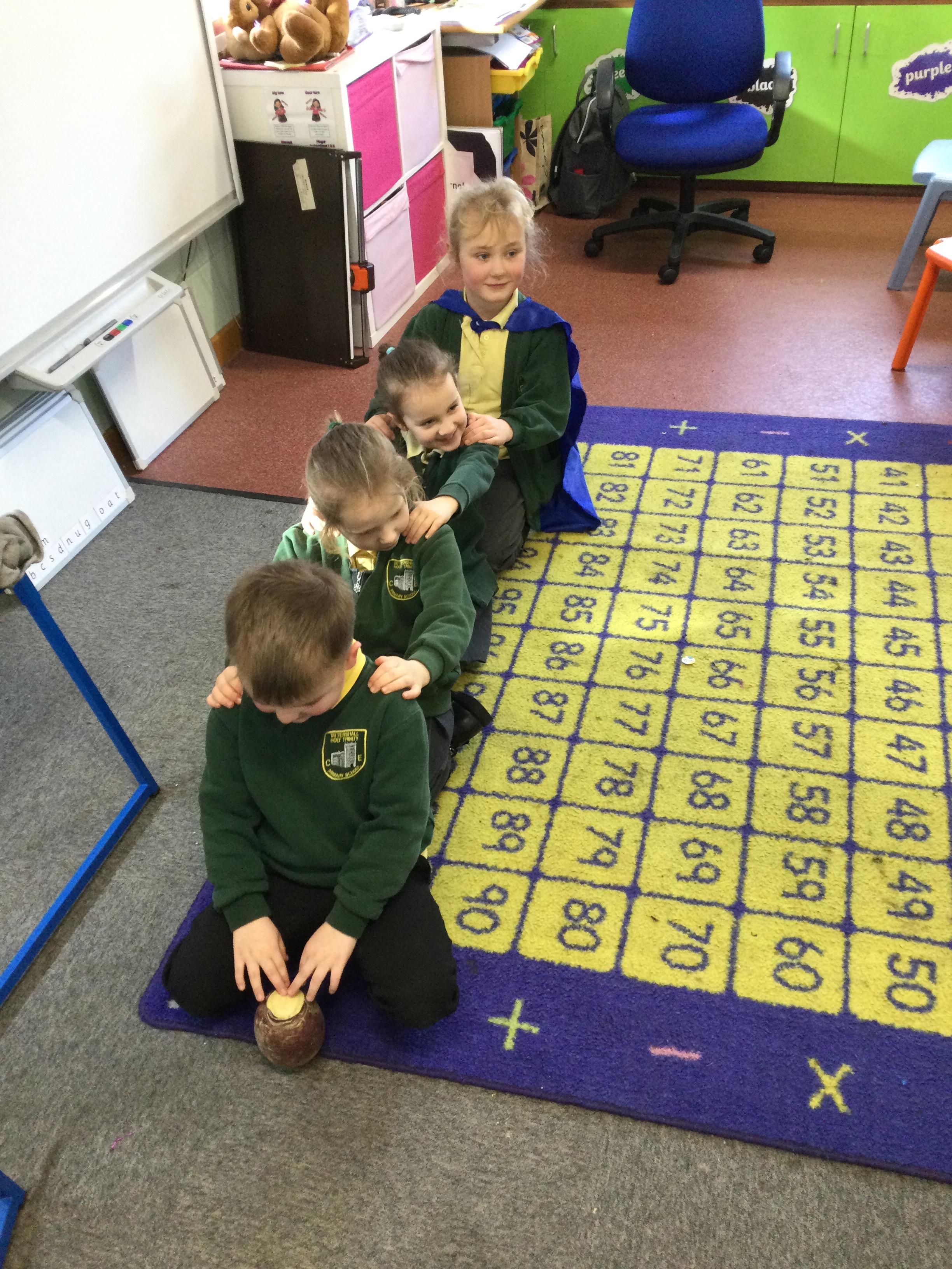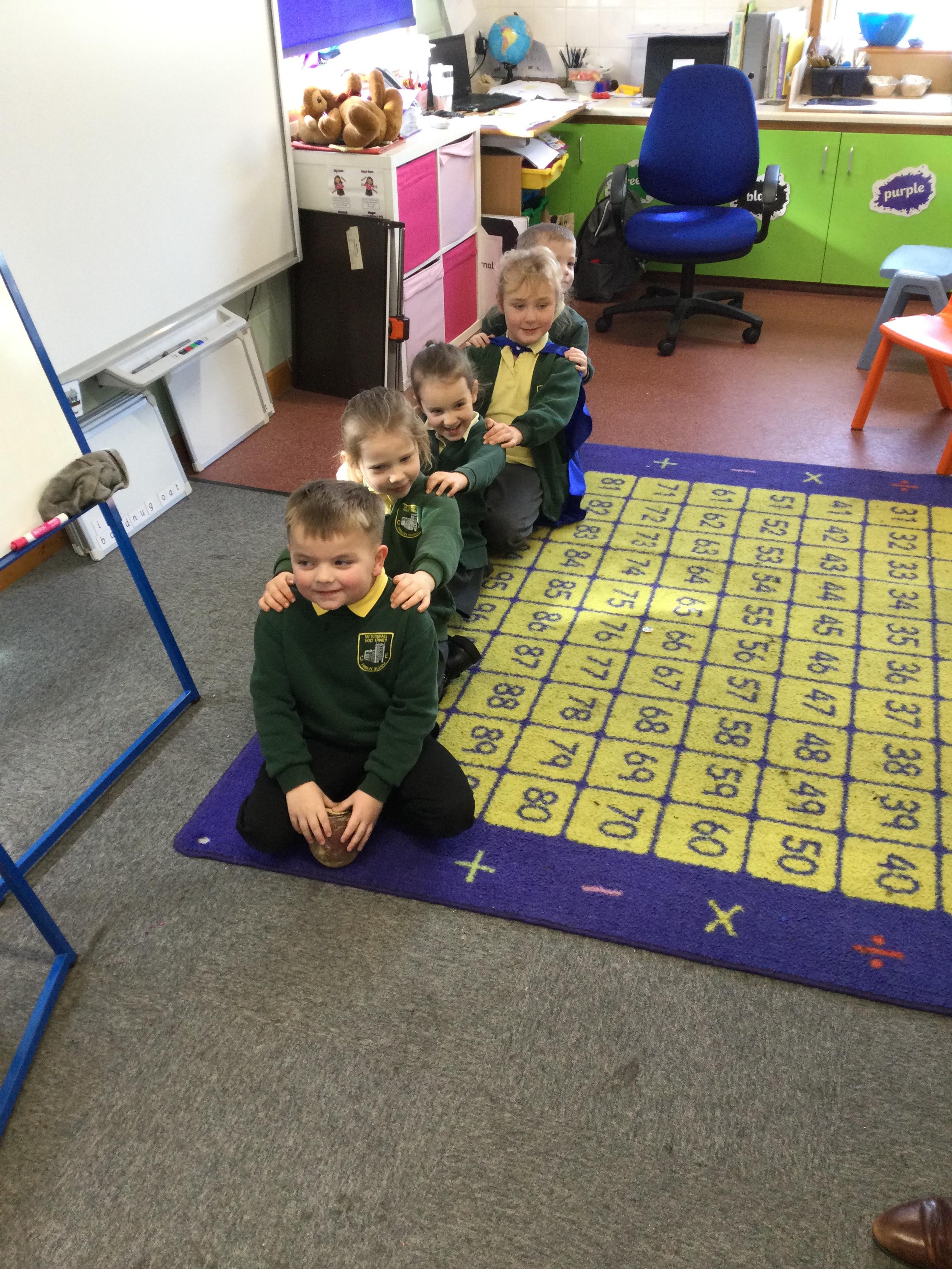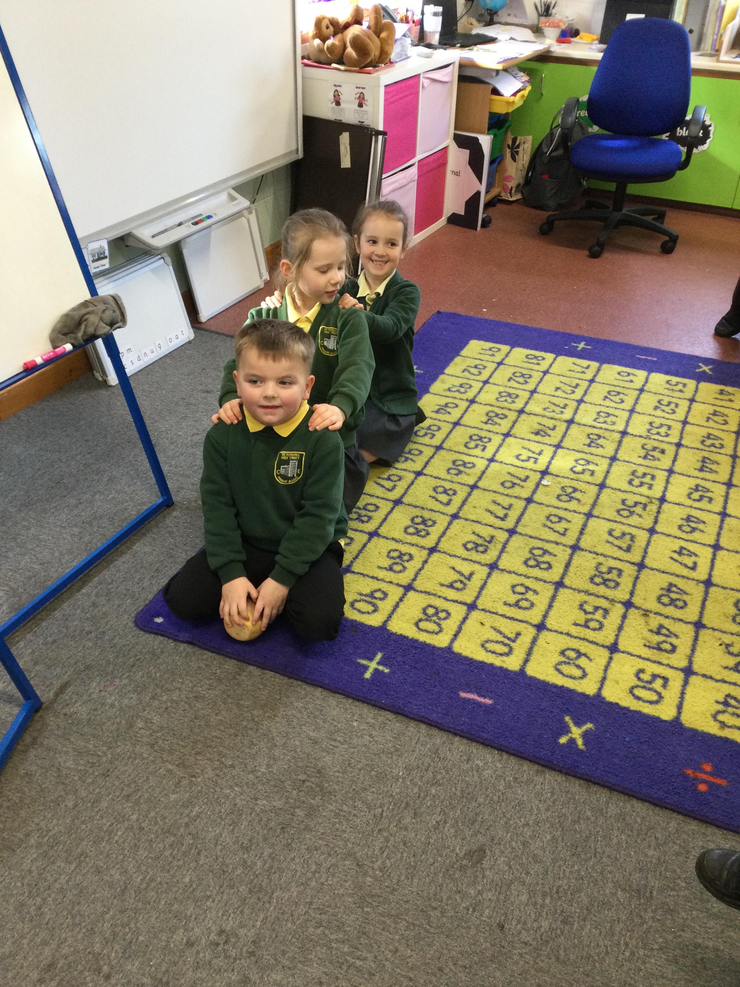 This week in English the children are looking at the story The Enormous Turnip. They listened to the story without pictures and then acted out the story together.