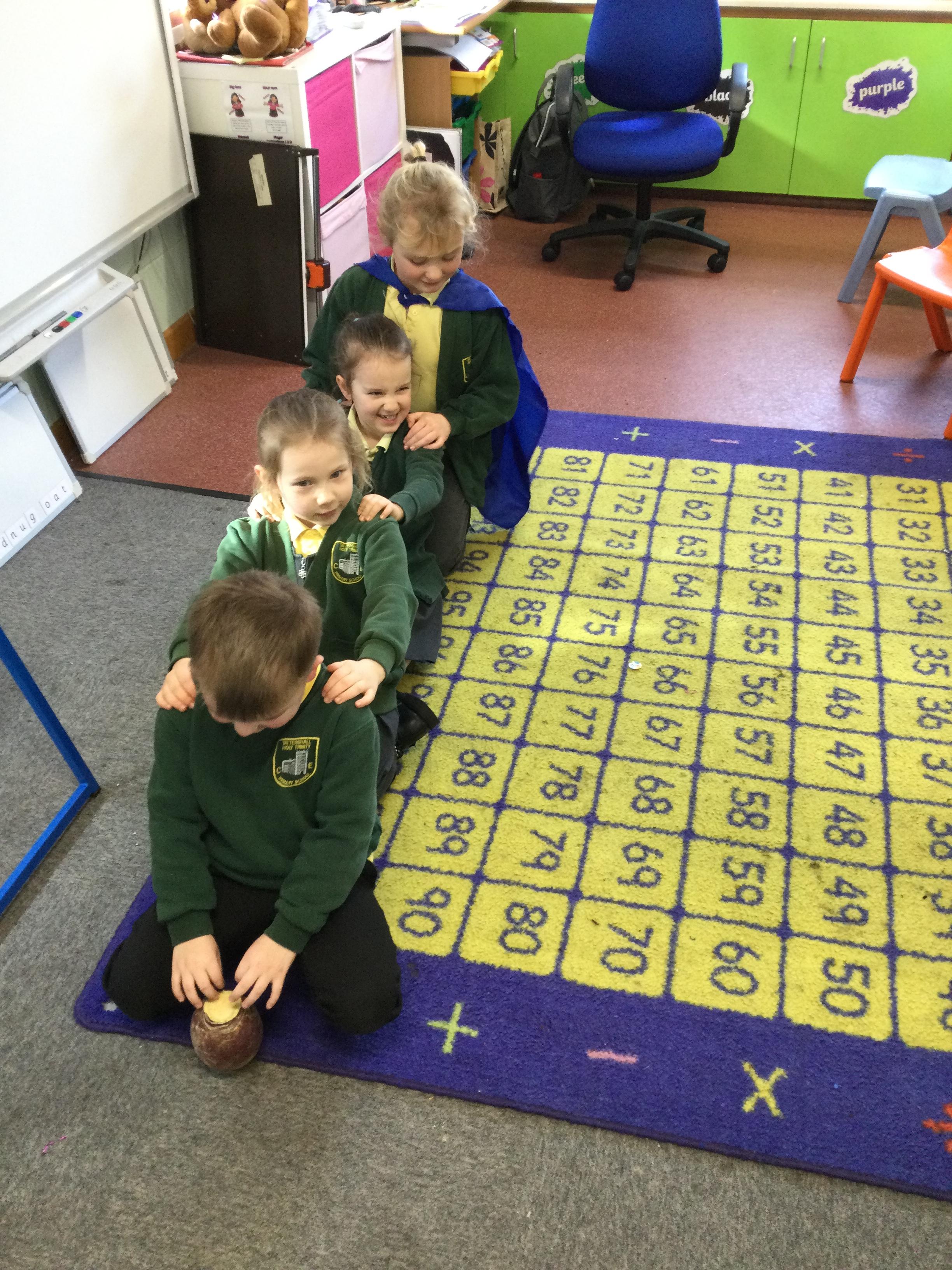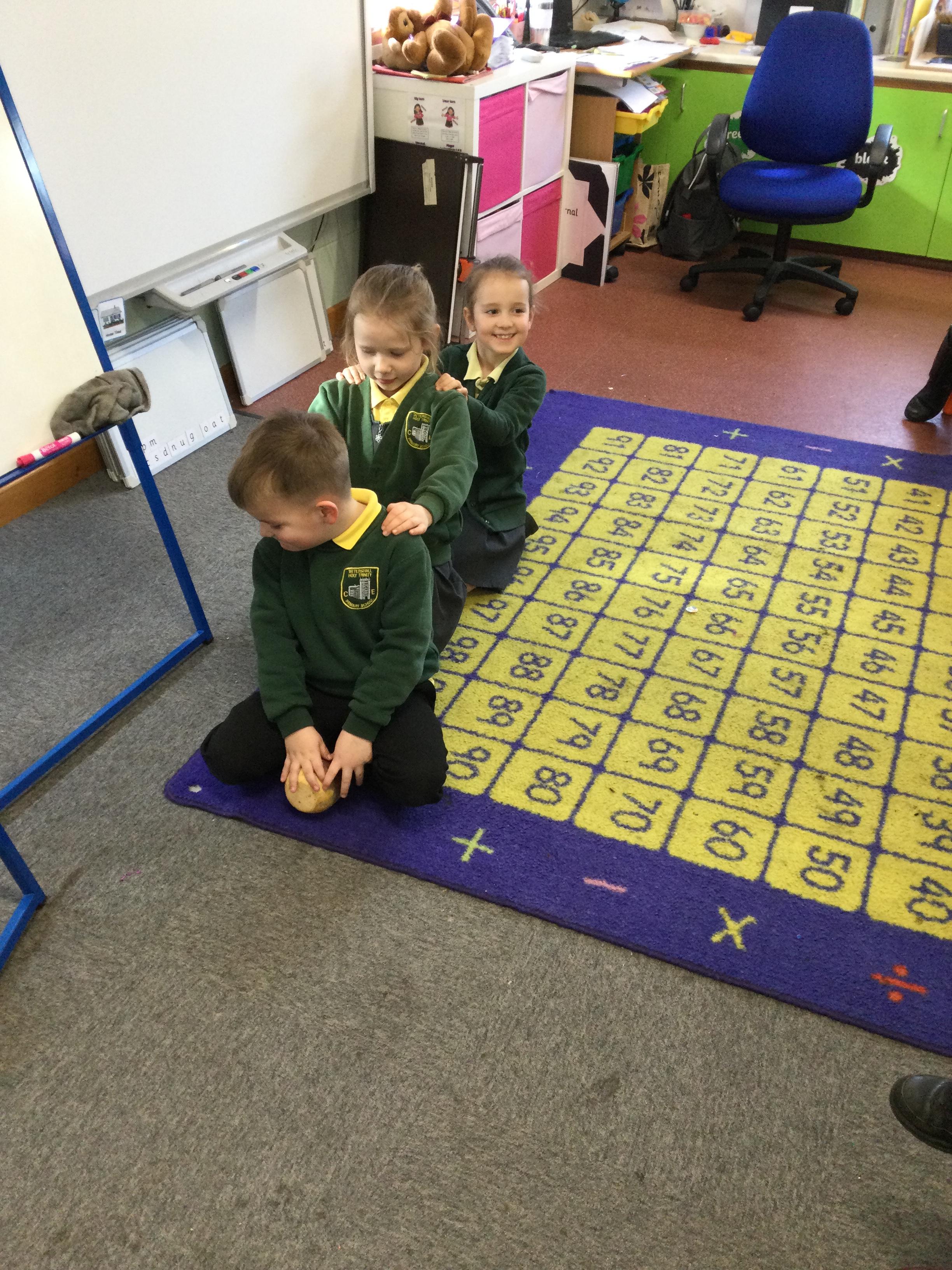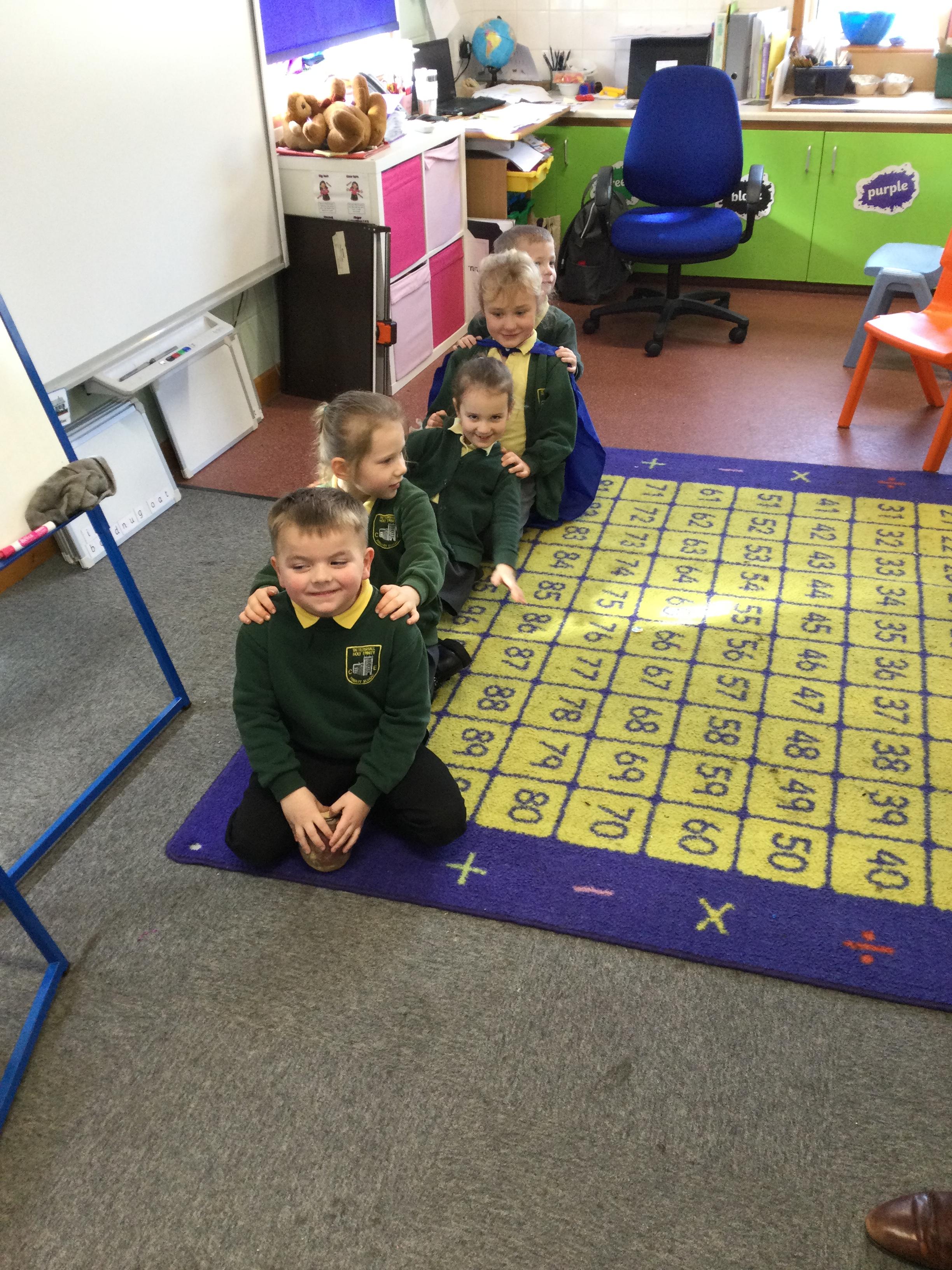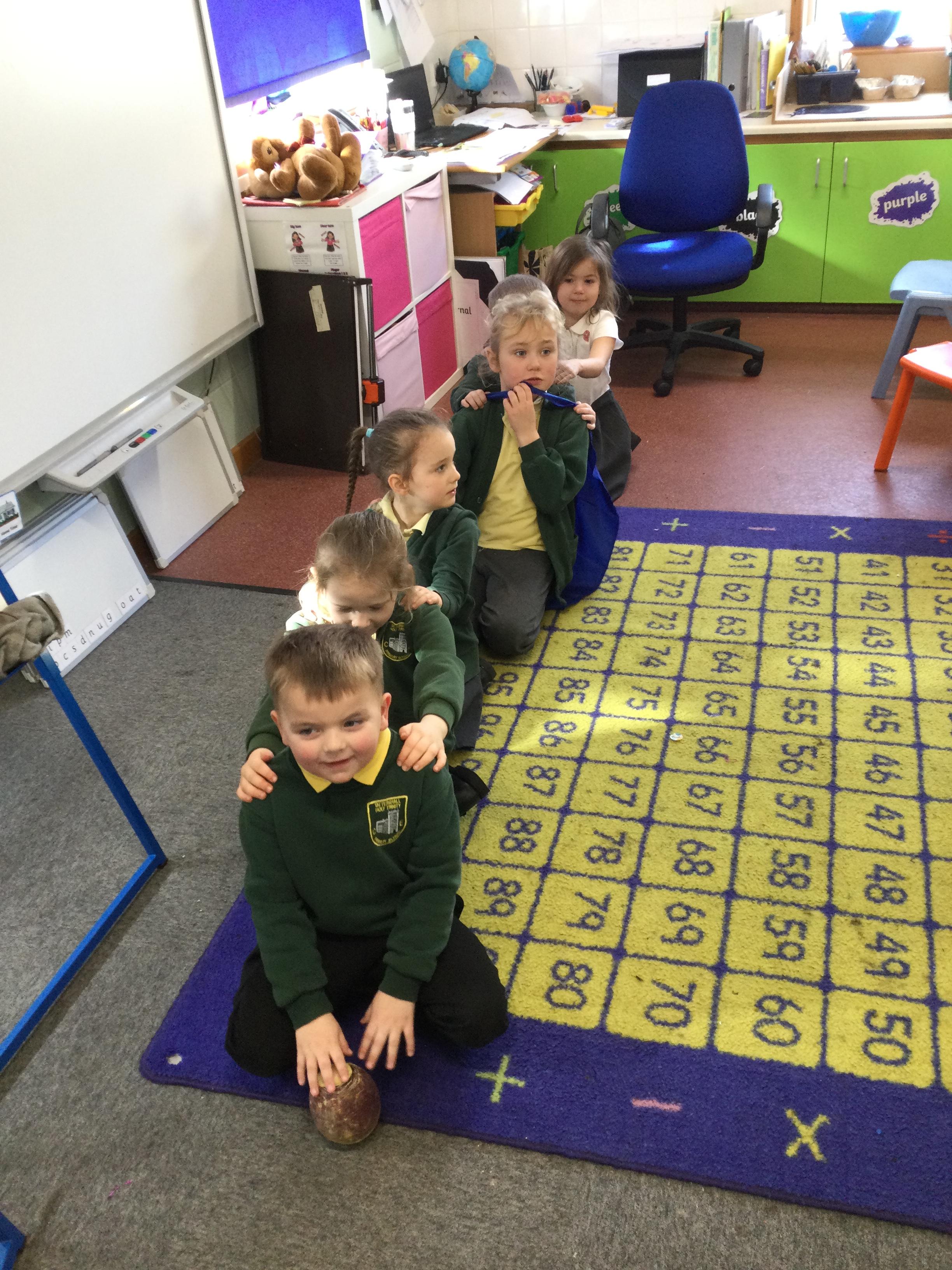 This week in English the children are looking at the story The Enormous Turnip. They listened to the story without pictures and then acted out the story together.