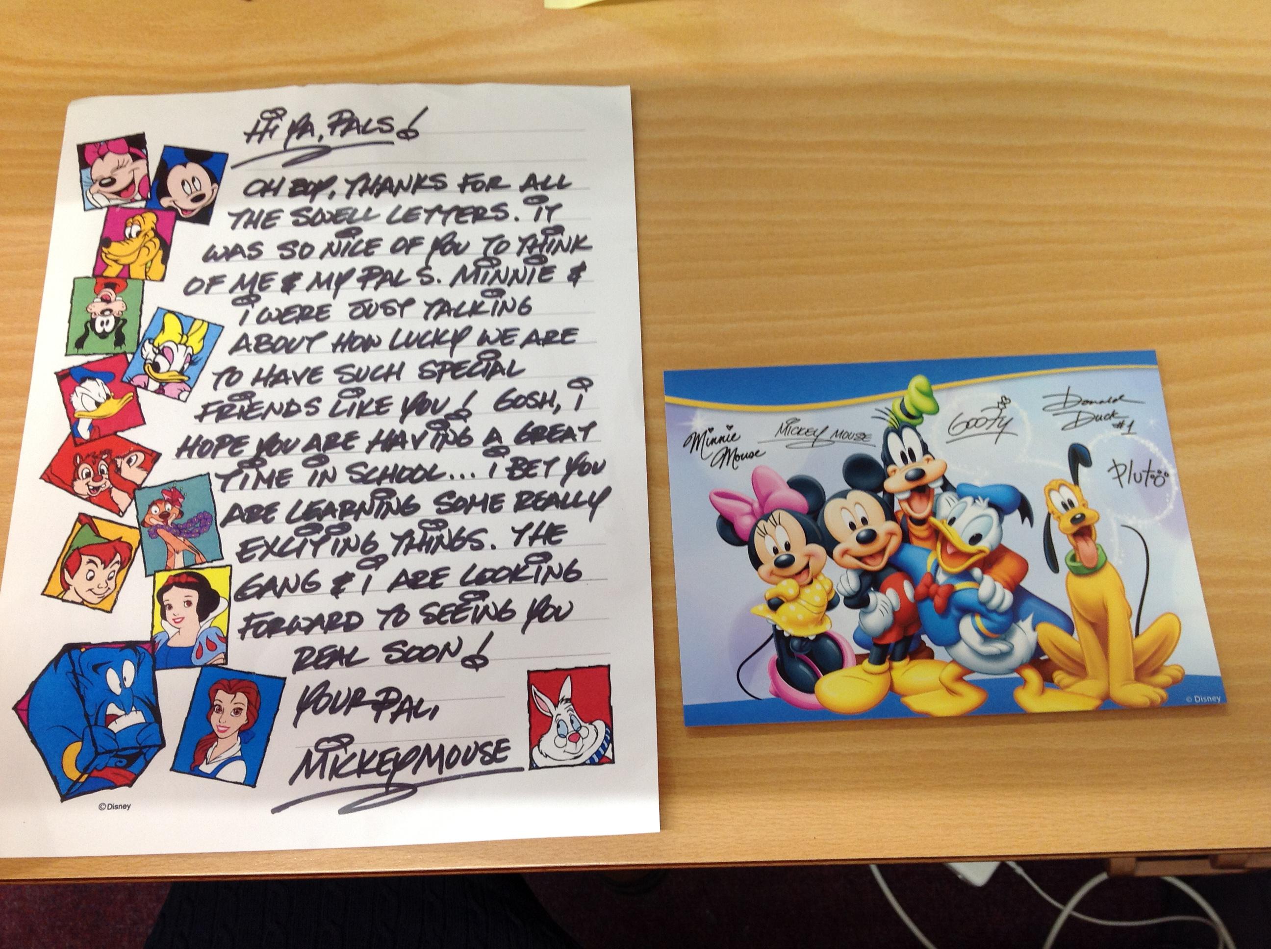 Today we had some very special mail come to Holy Trinity, we had a reply back from Disneyworld! We were very excited to discover our letter from Mickey and his pals! We are so pleased that they managed to read our letters and that our reply and autographs have come all the way from America!