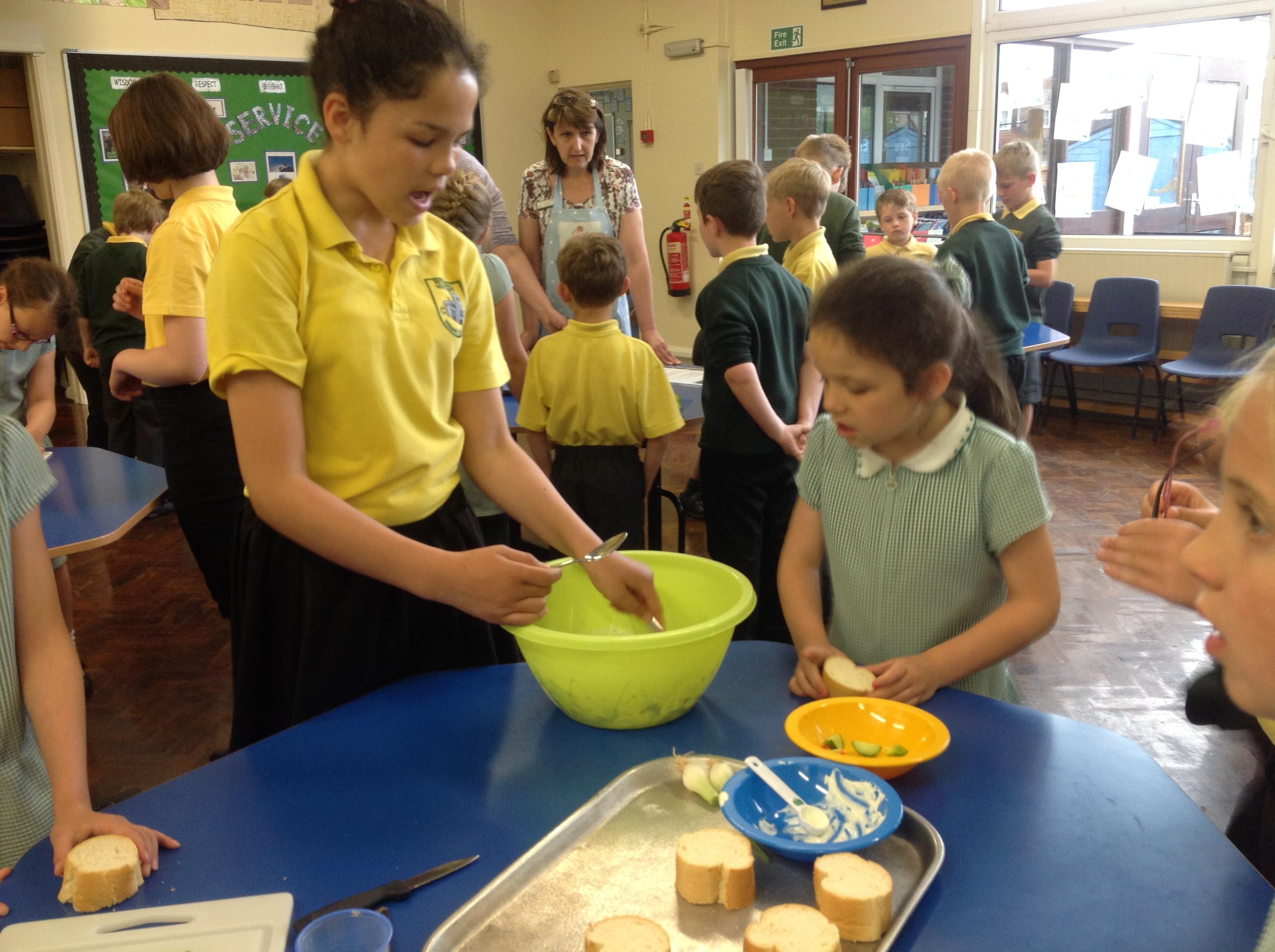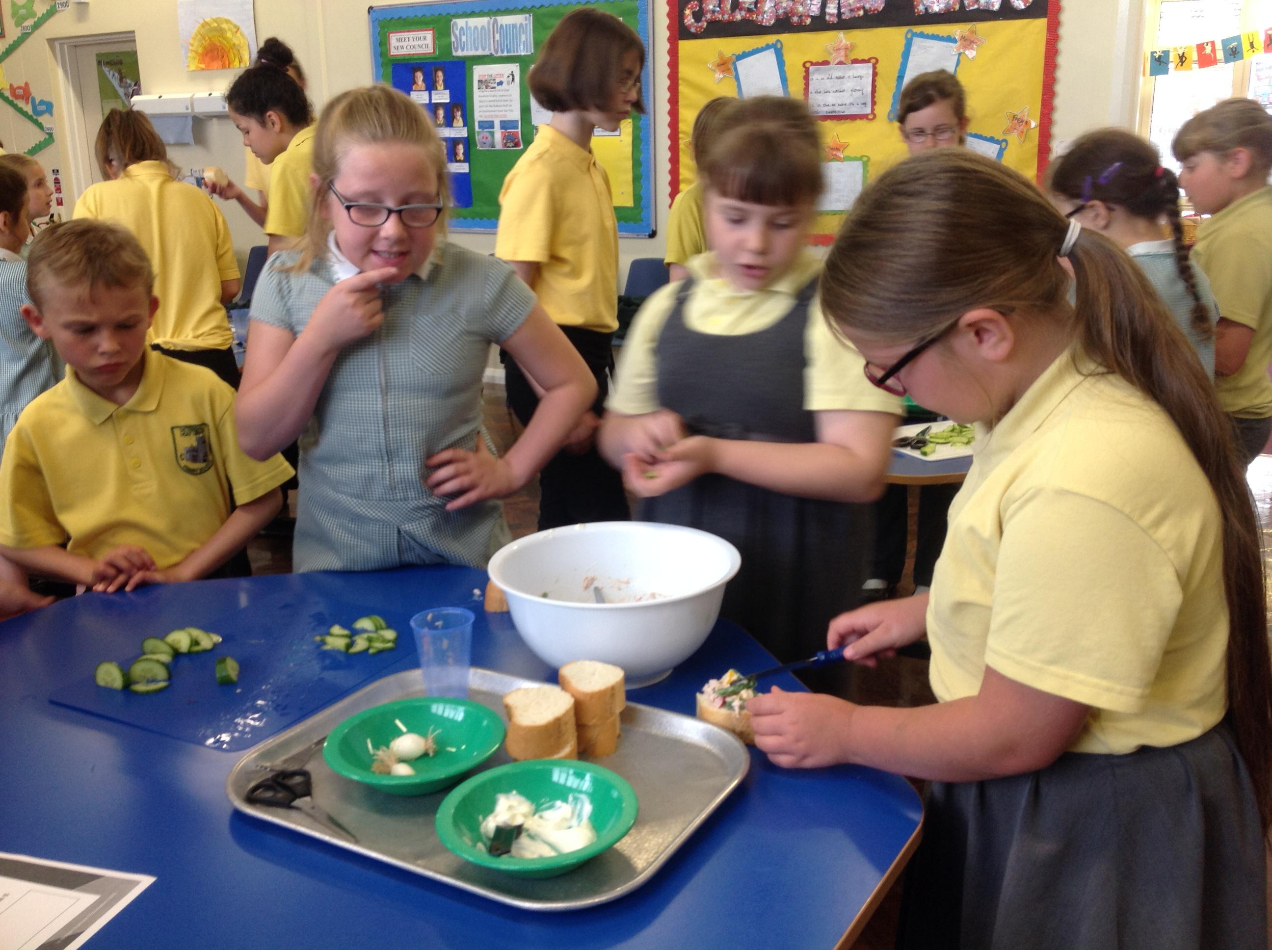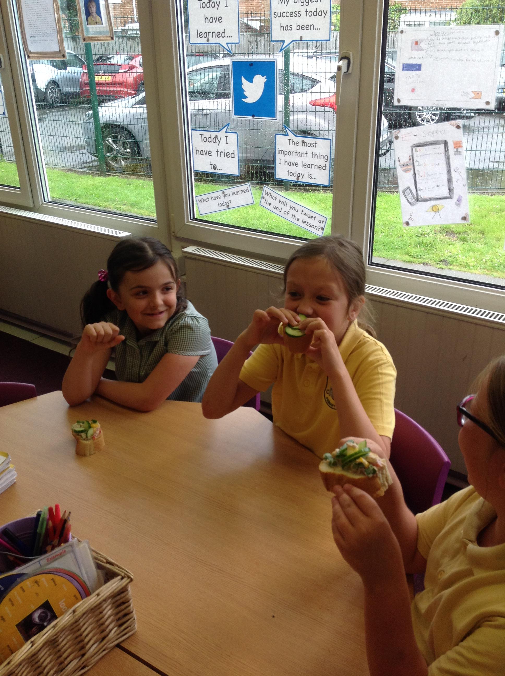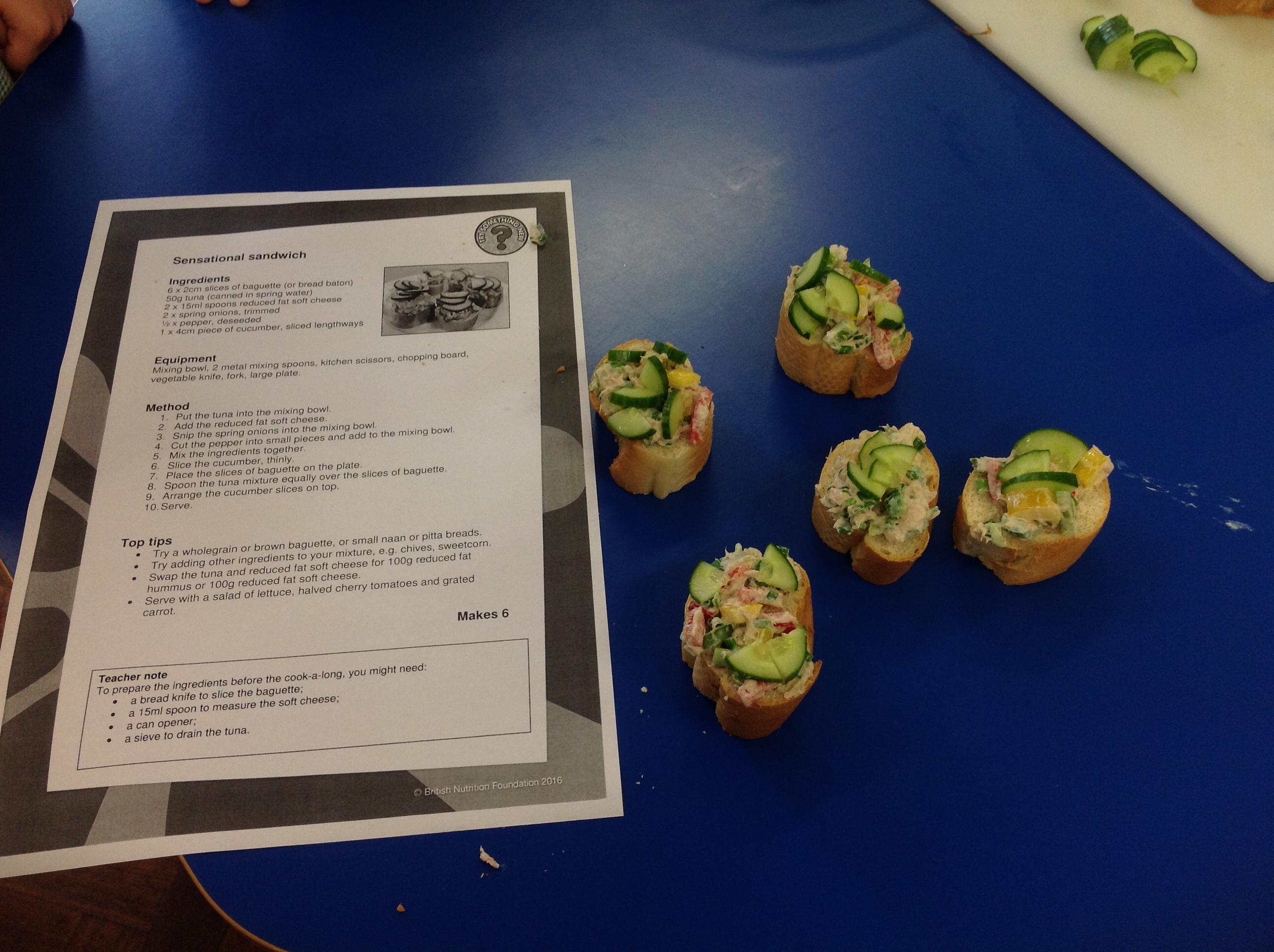 Today we took part in a live cook-a-long as a part of Healthy Schools Week. We made a Sensational Sandwich! We had to watch online and follow the steps of the chef on the board. Our sandwiches contained, pepper, soft cheese, spring onions and tuna. They tasted fantastic! Some of us even tried new foods that we hadn't tasted before...very brave!