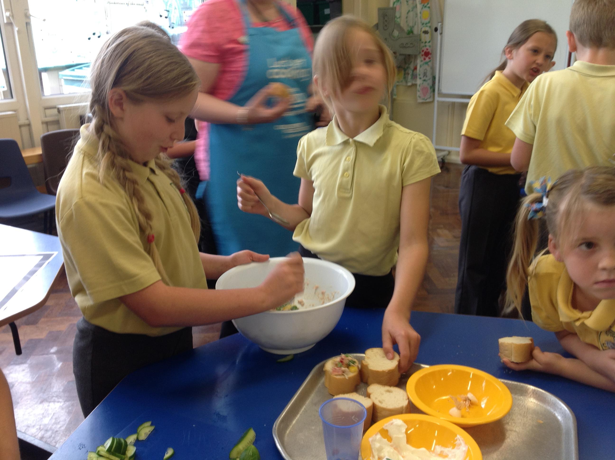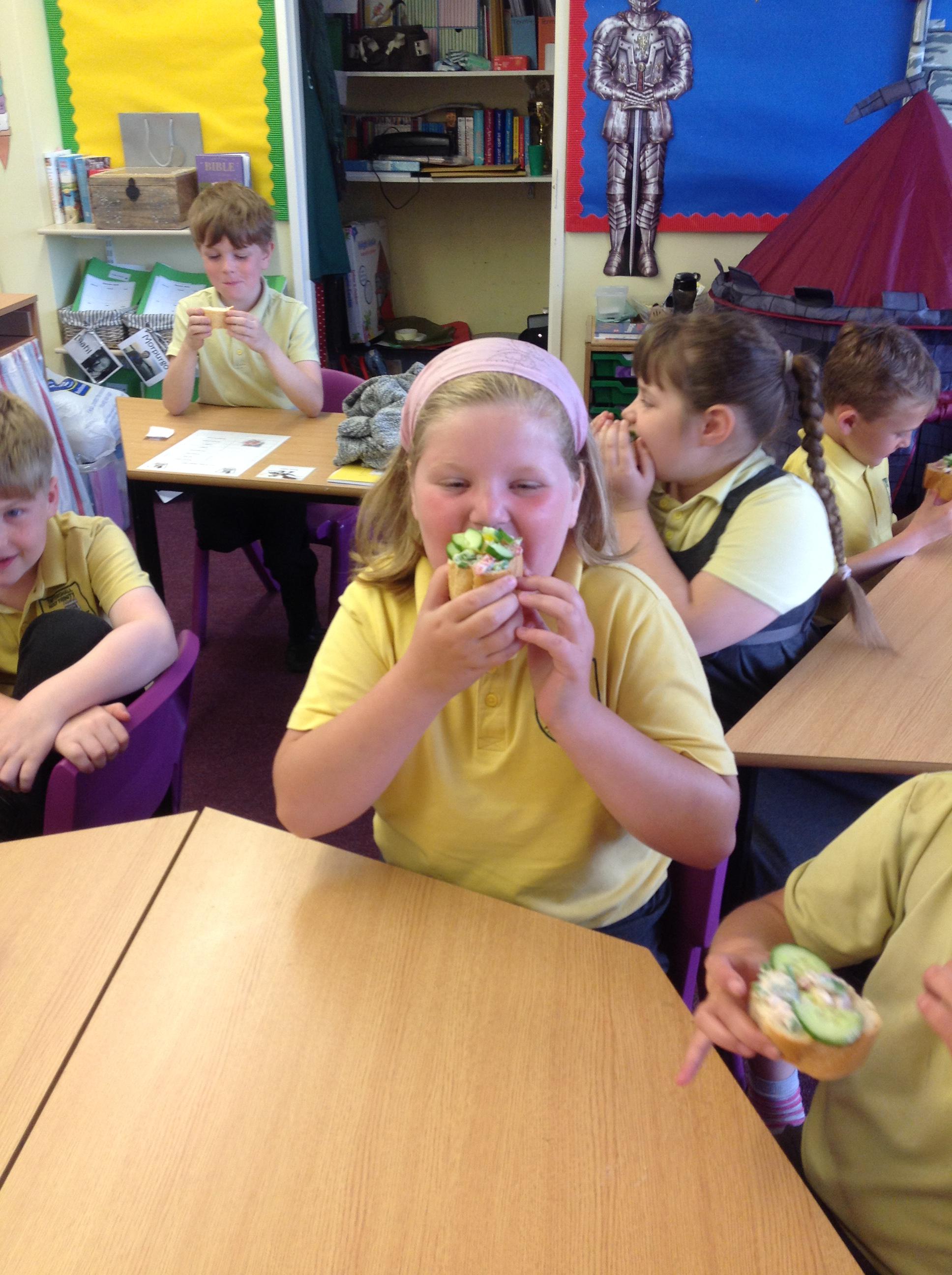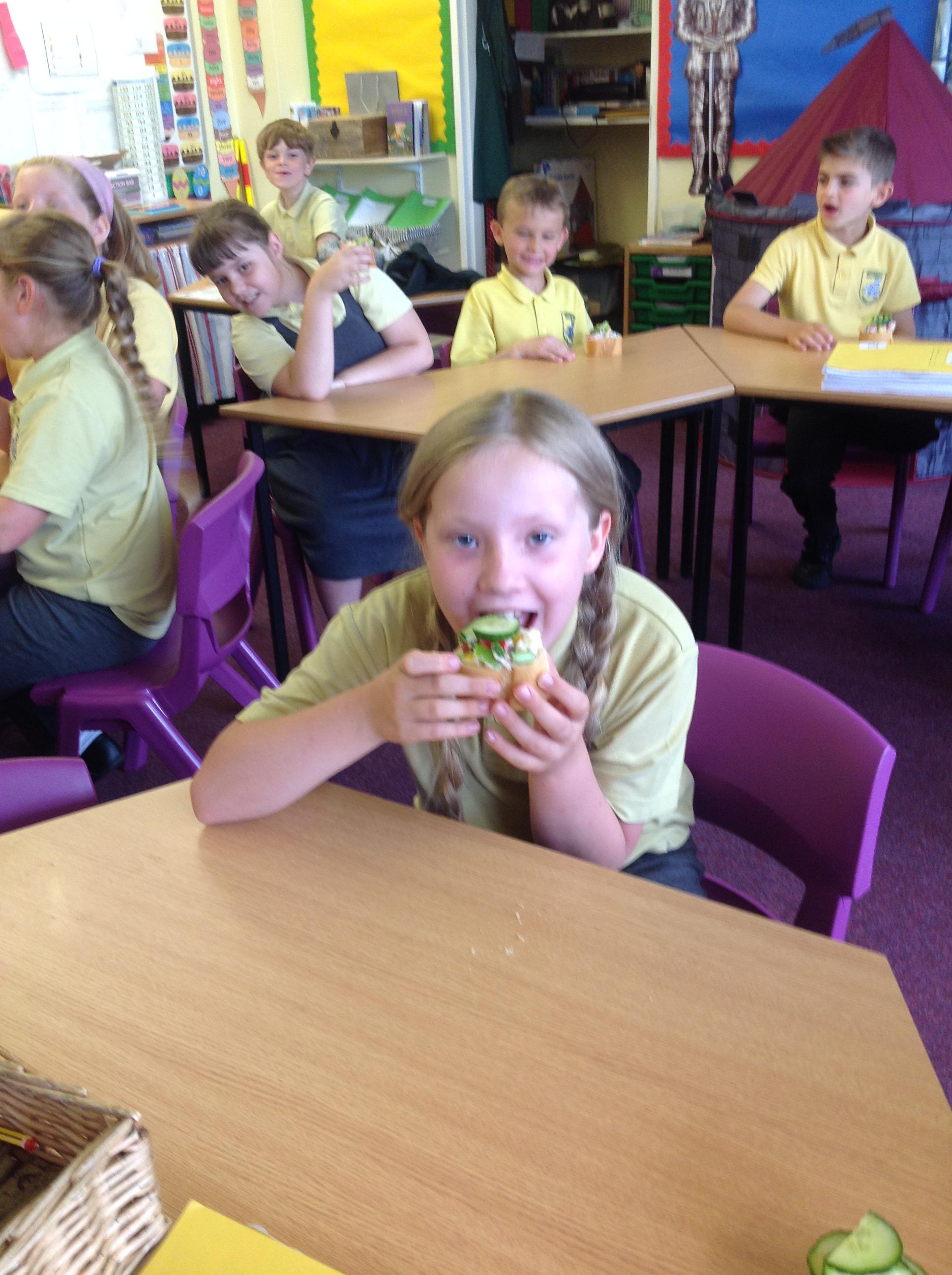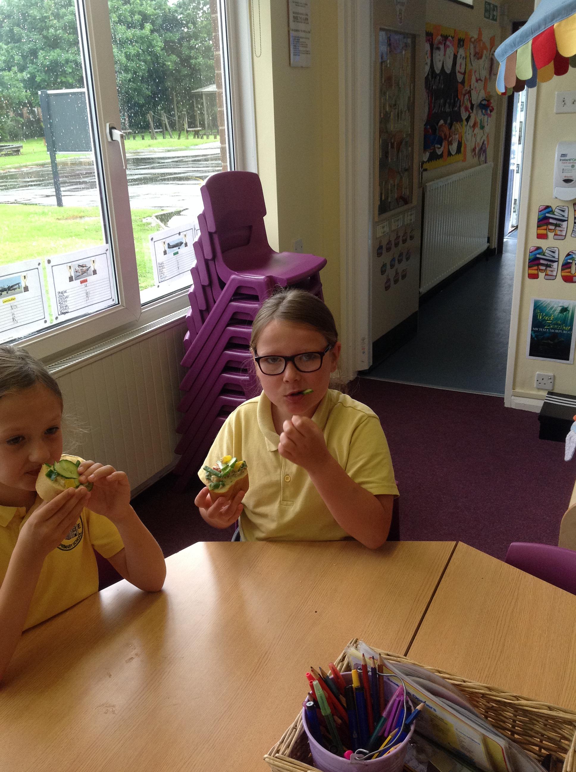Today we took part in a live cook-a-long as a part of Healthy Schools Week. We made a Sensational Sandwich! We had to watch online and follow the steps of the chef on the board. Our sandwiches contained, pepper, soft cheese, spring onions and tuna. They tasted fantastic! Some of us even tried new foods that we hadn't tasted before...very brave!