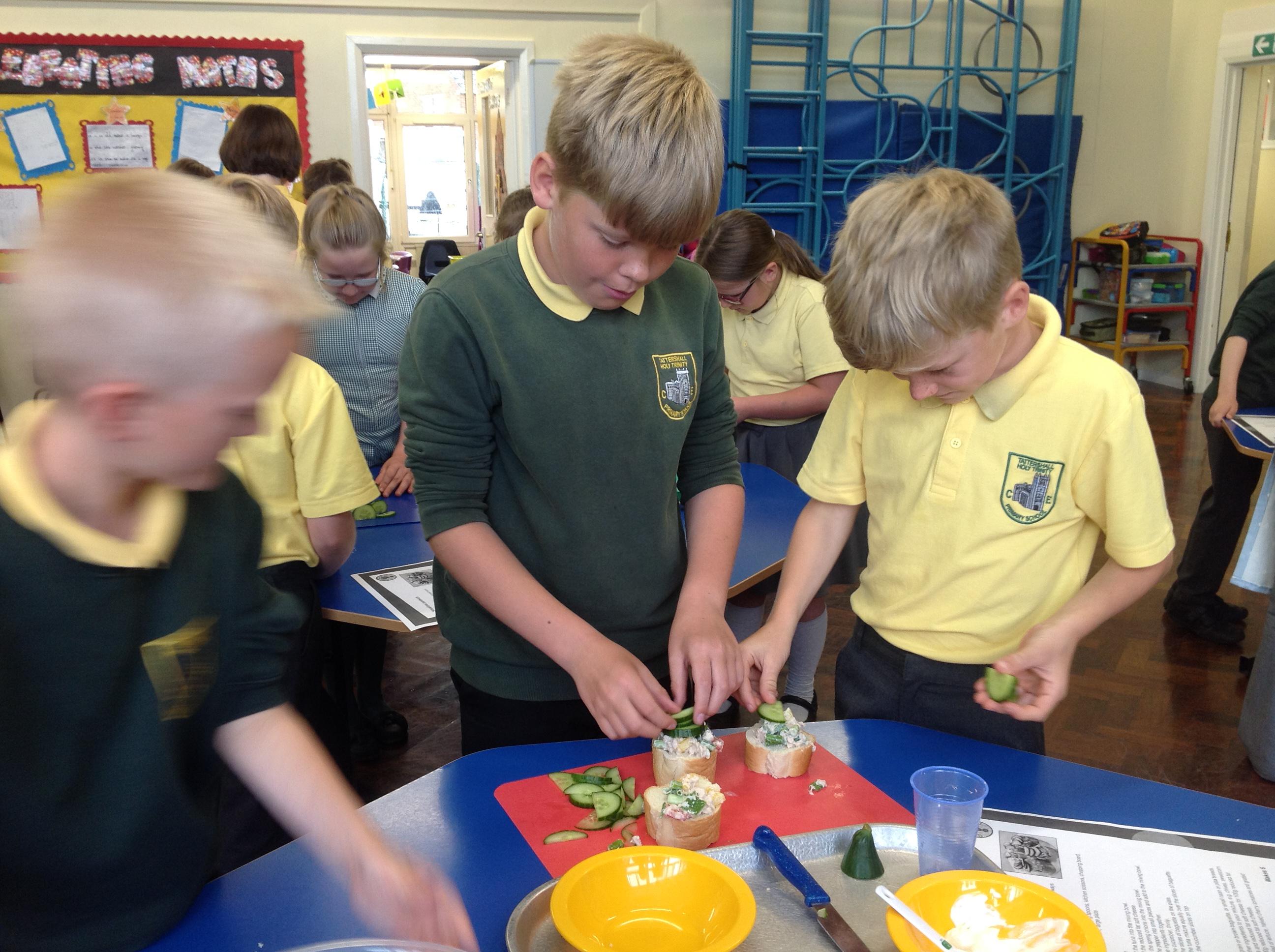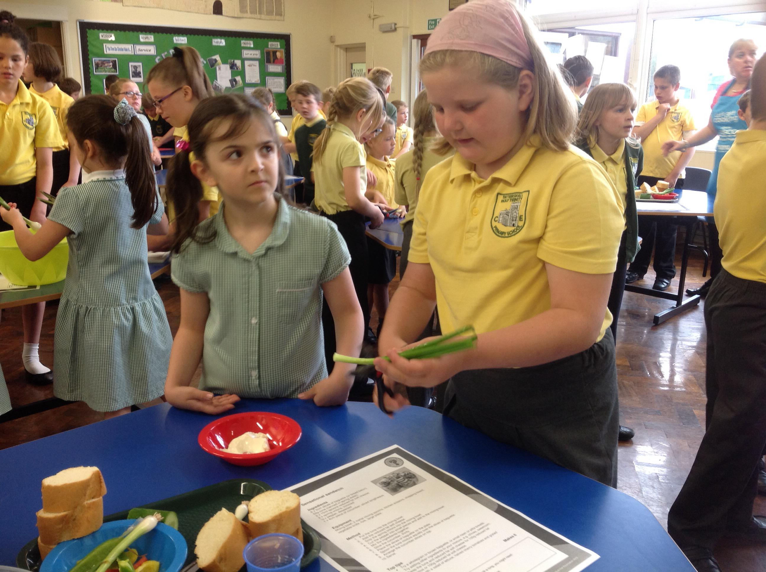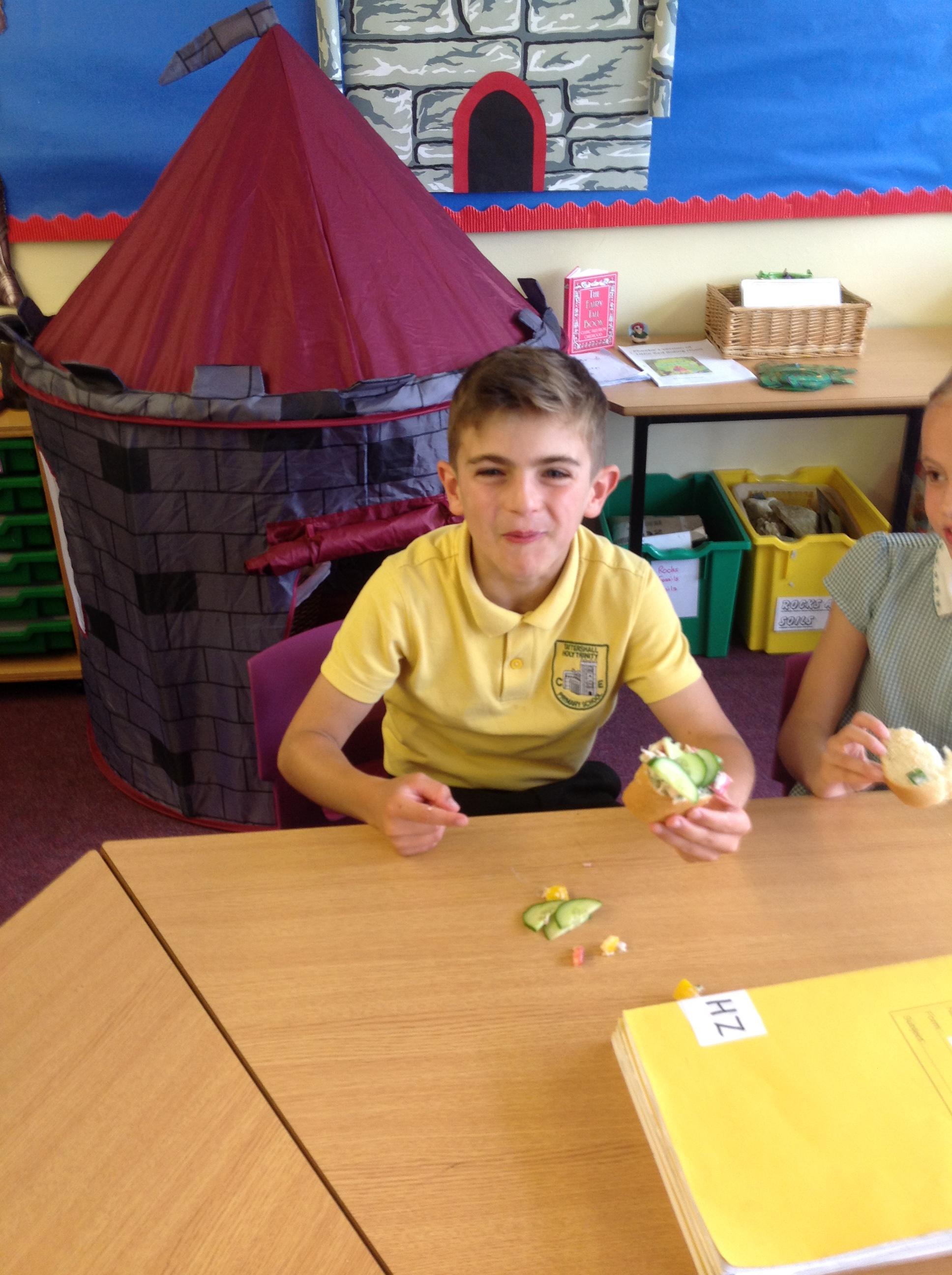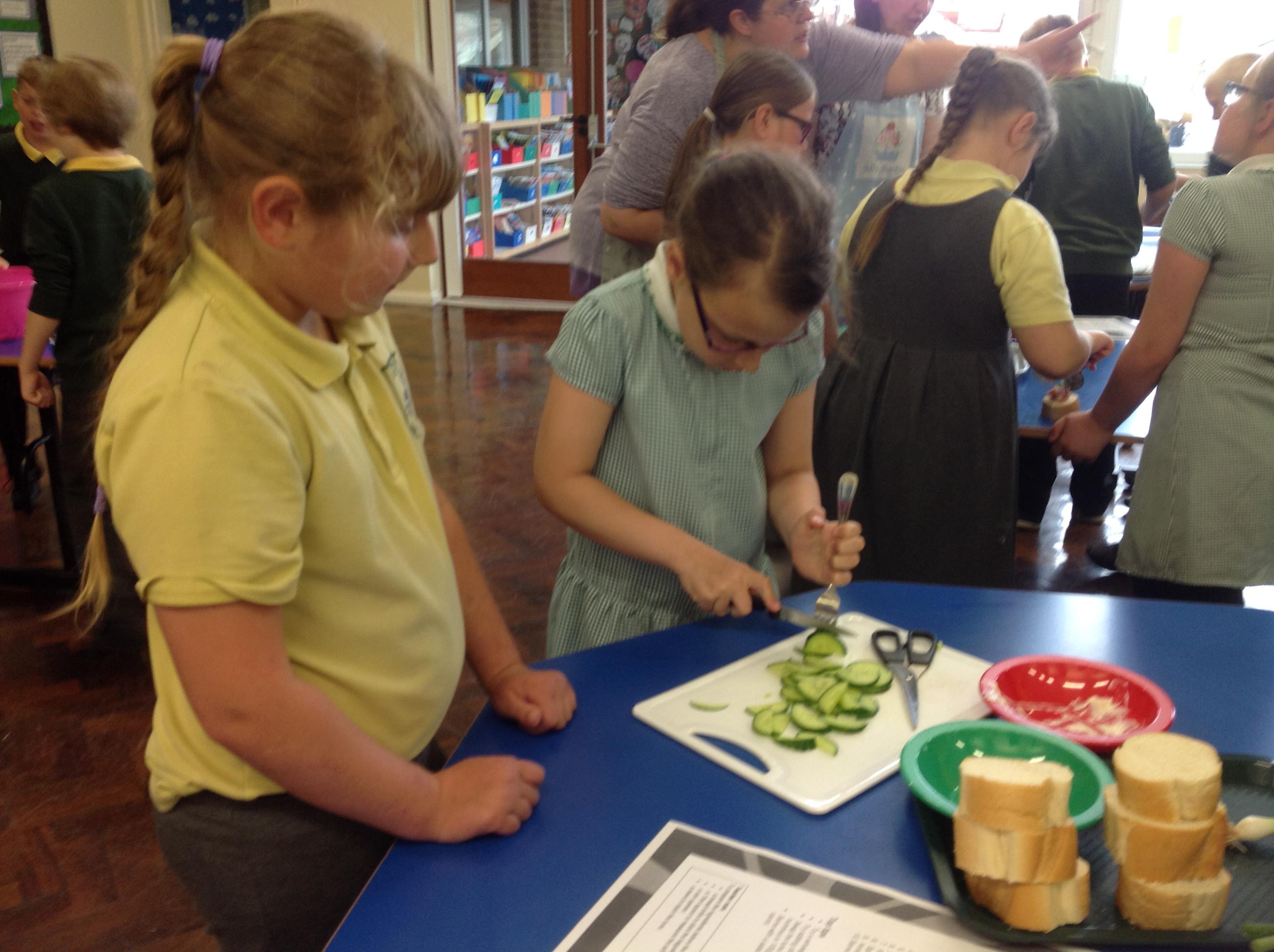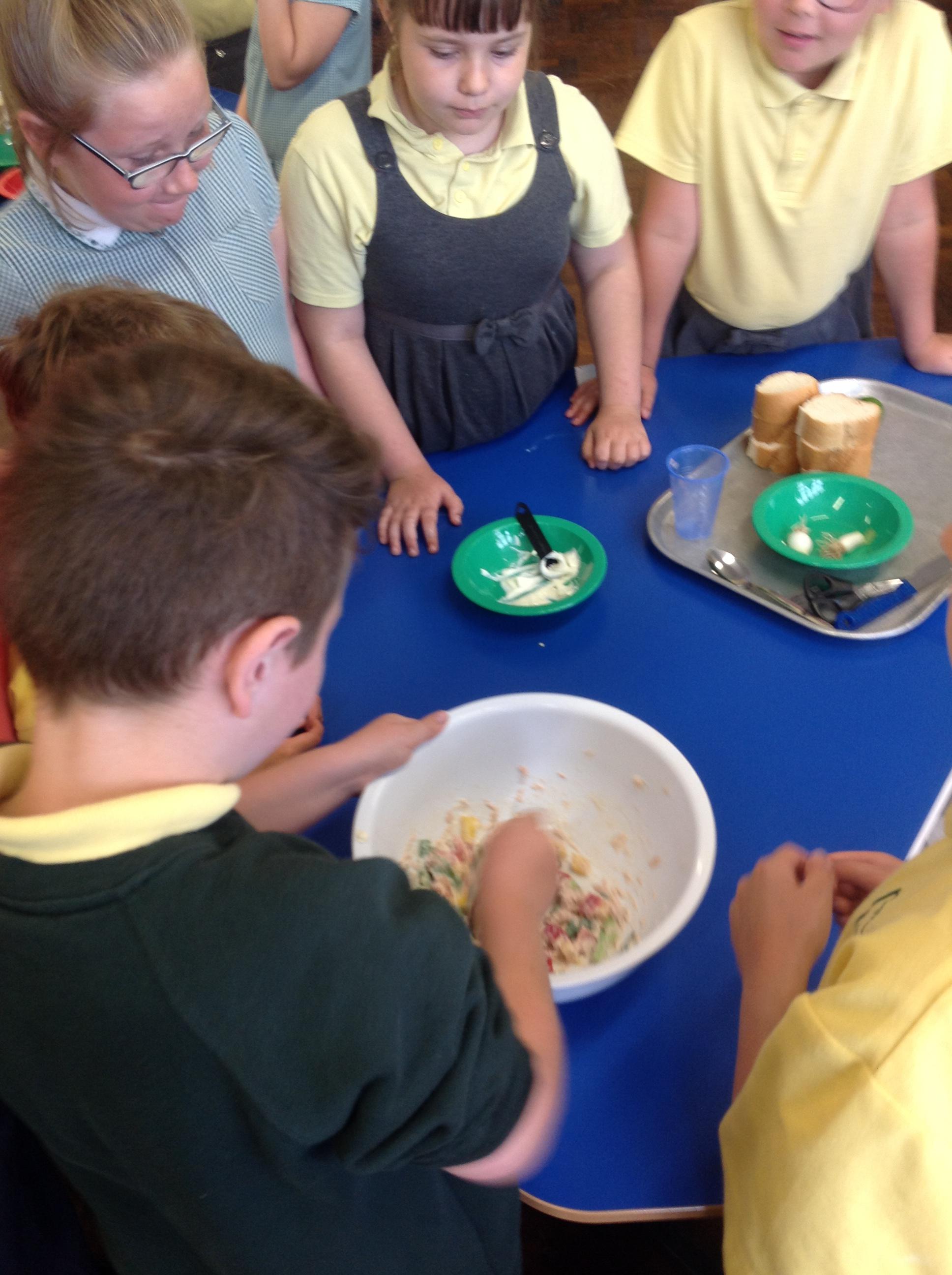 Today we took part in a live cook-a-long as a part of Healthy Schools Week. We made a Sensational Sandwich! We had to watch online and follow the steps of the chef on the board. Our sandwiches contained, pepper, soft cheese, spring onions and tuna. They tasted fantastic! Some of us even tried new foods that we hadn't tasted before...very brave!