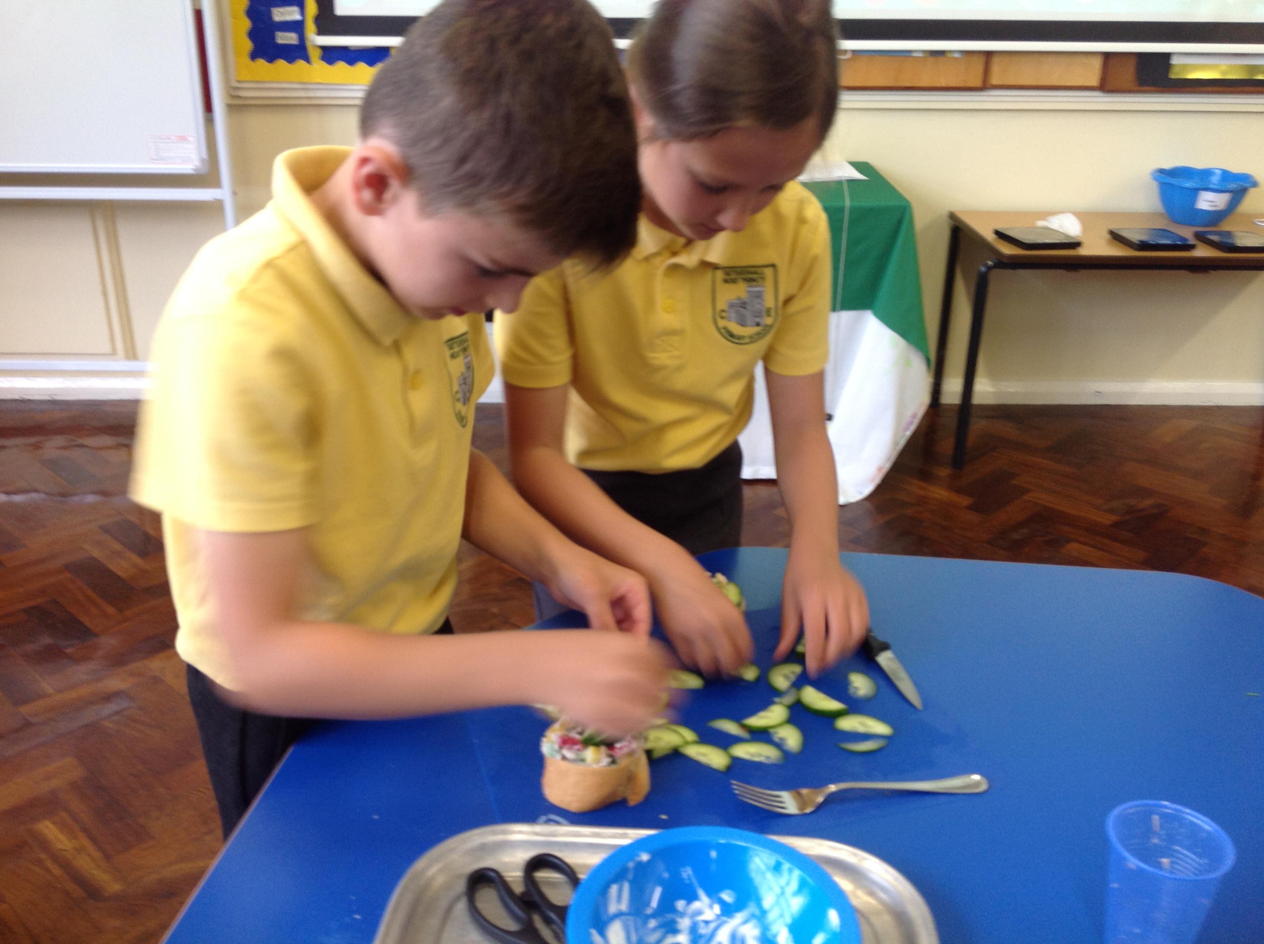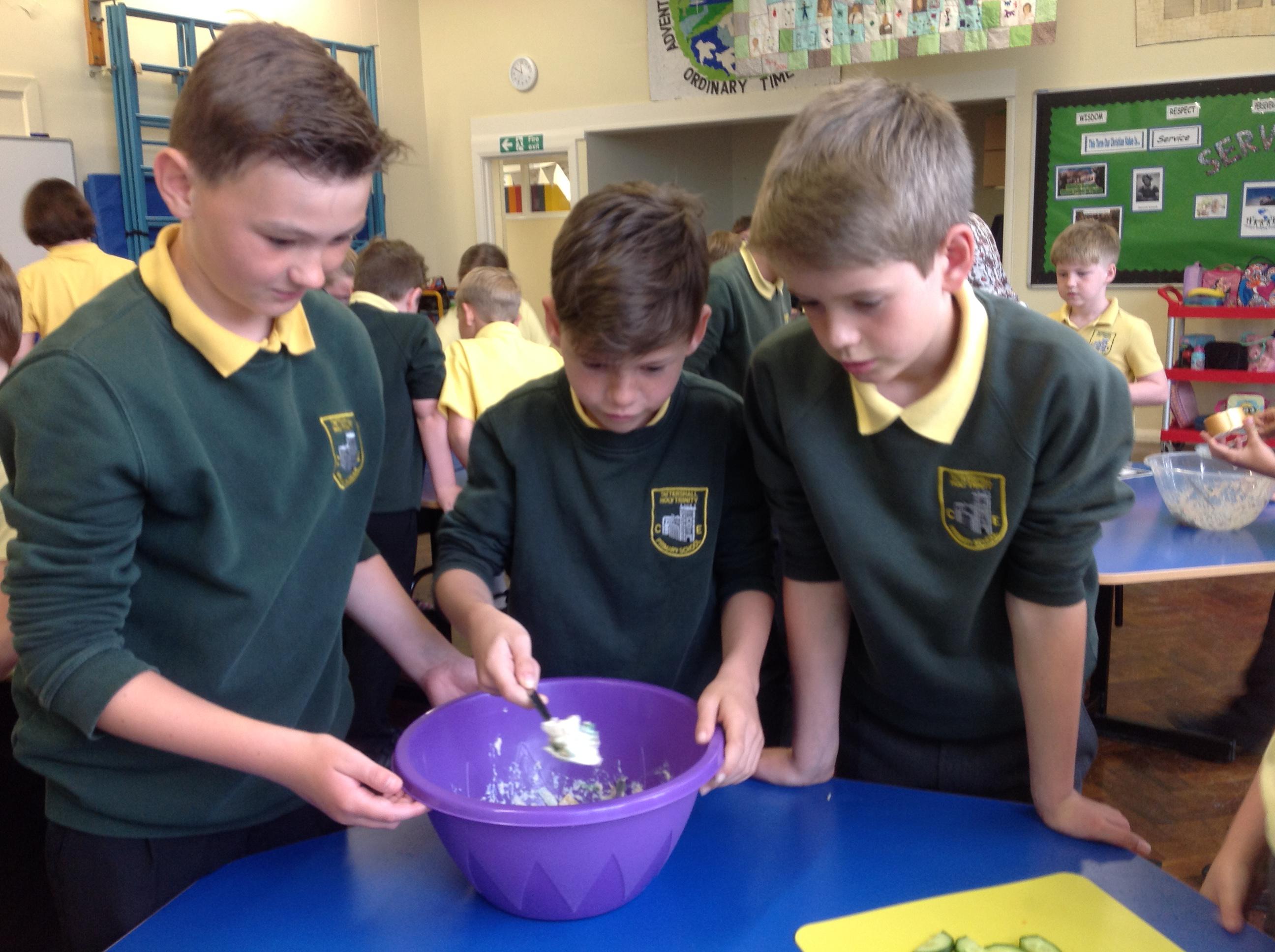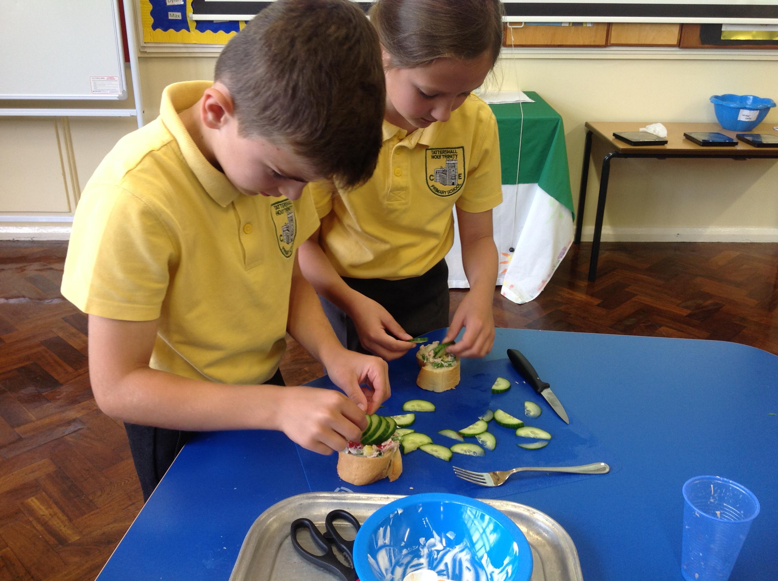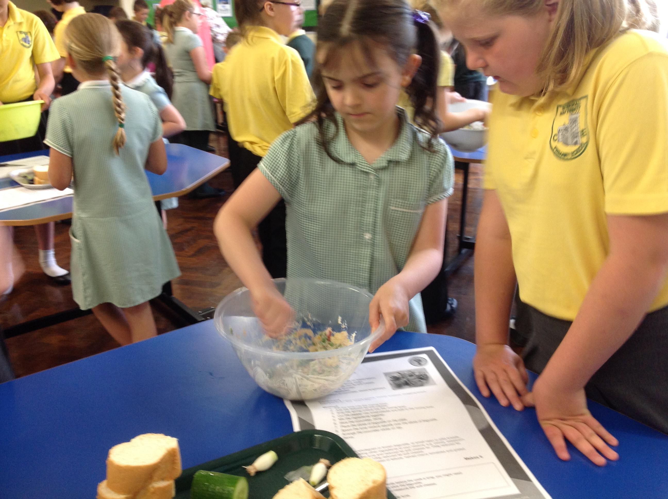 Today we took part in a live cook-a-long as a part of Healthy Schools Week. We made a Sensational Sandwich! We had to watch online and follow the steps of the chef on the board. Our sandwiches contained, pepper, soft cheese, spring onions and tuna. They tasted fantastic! Some of us even tried new foods that we hadn't tasted before...very brave!