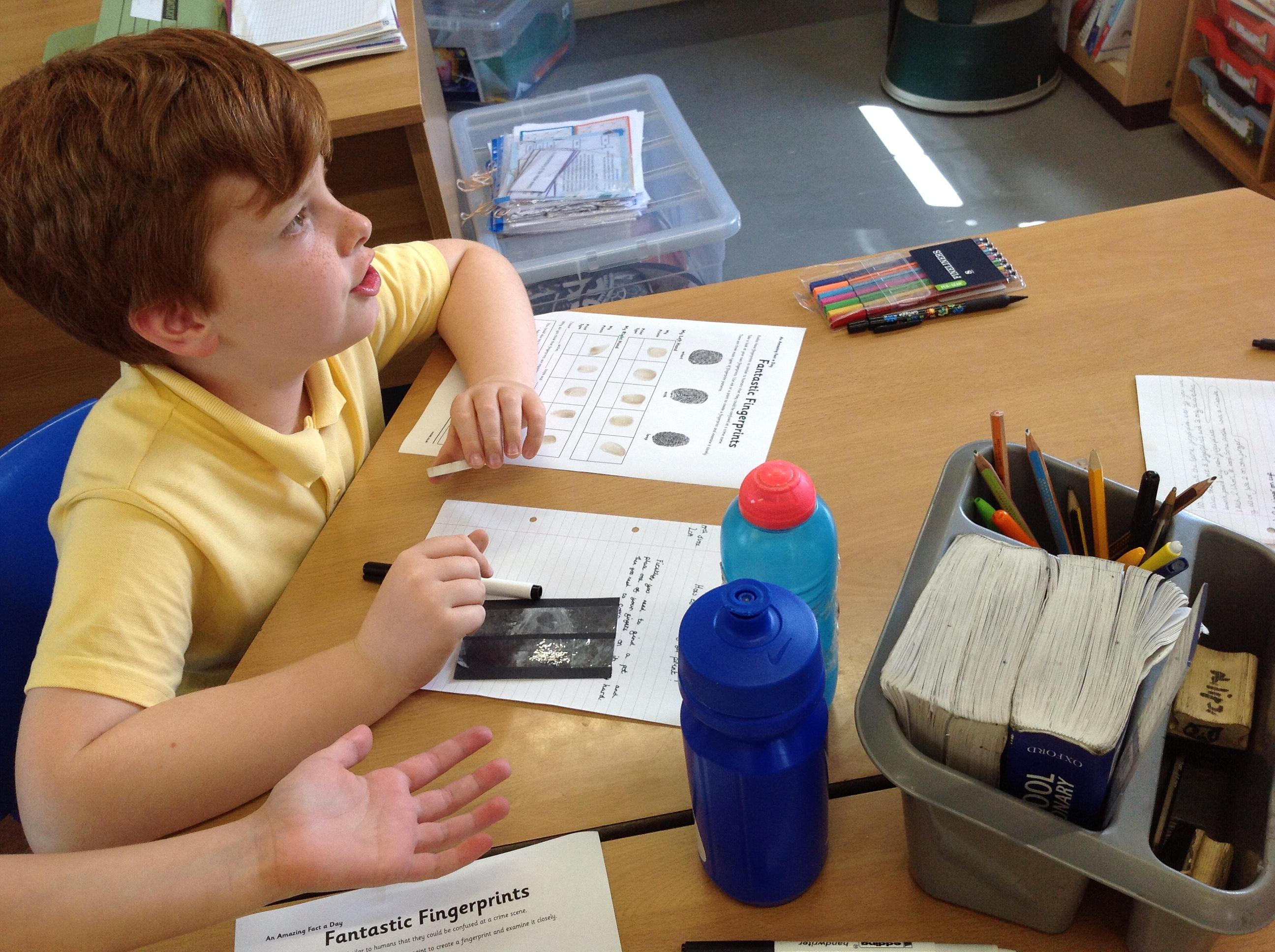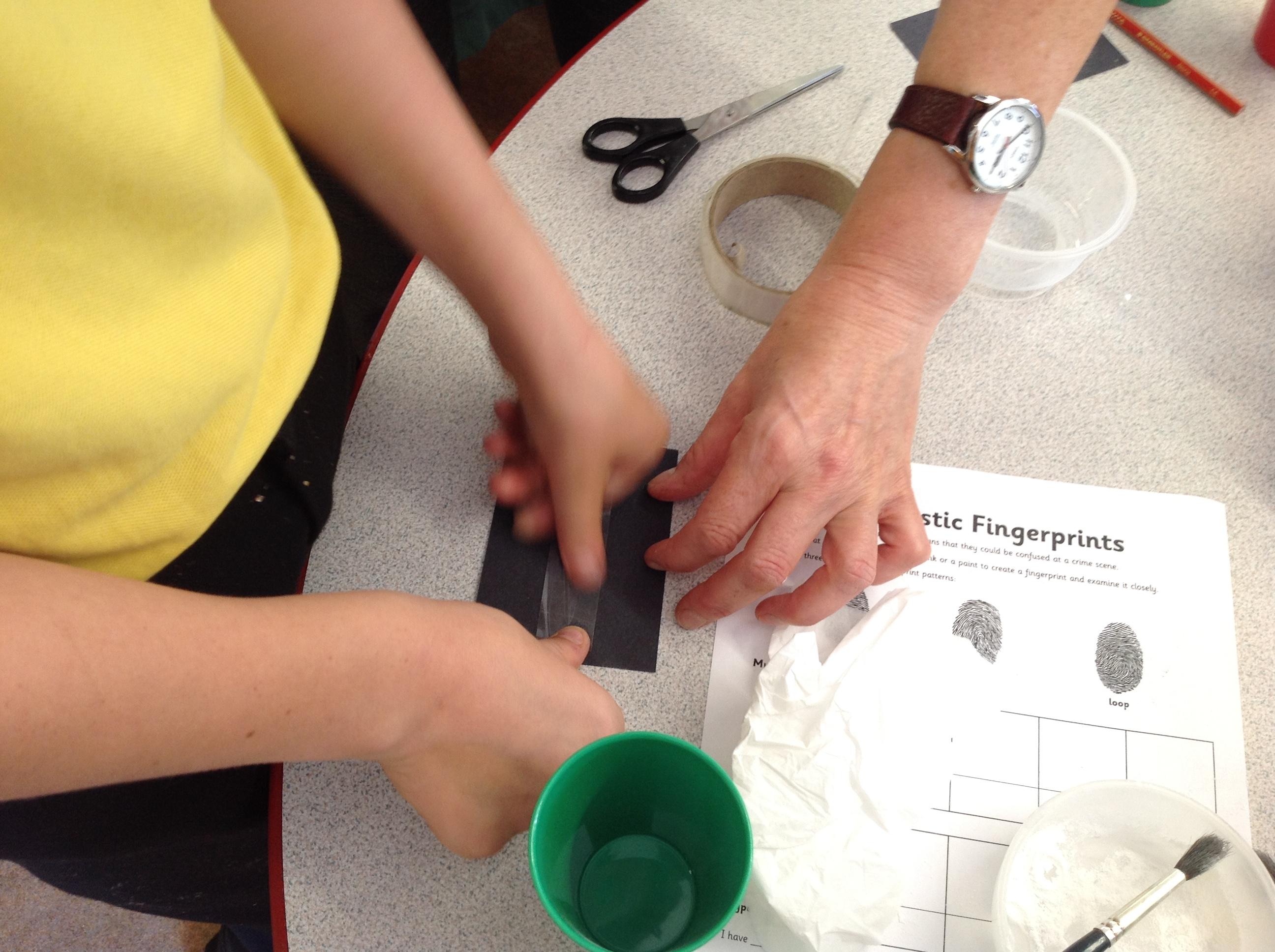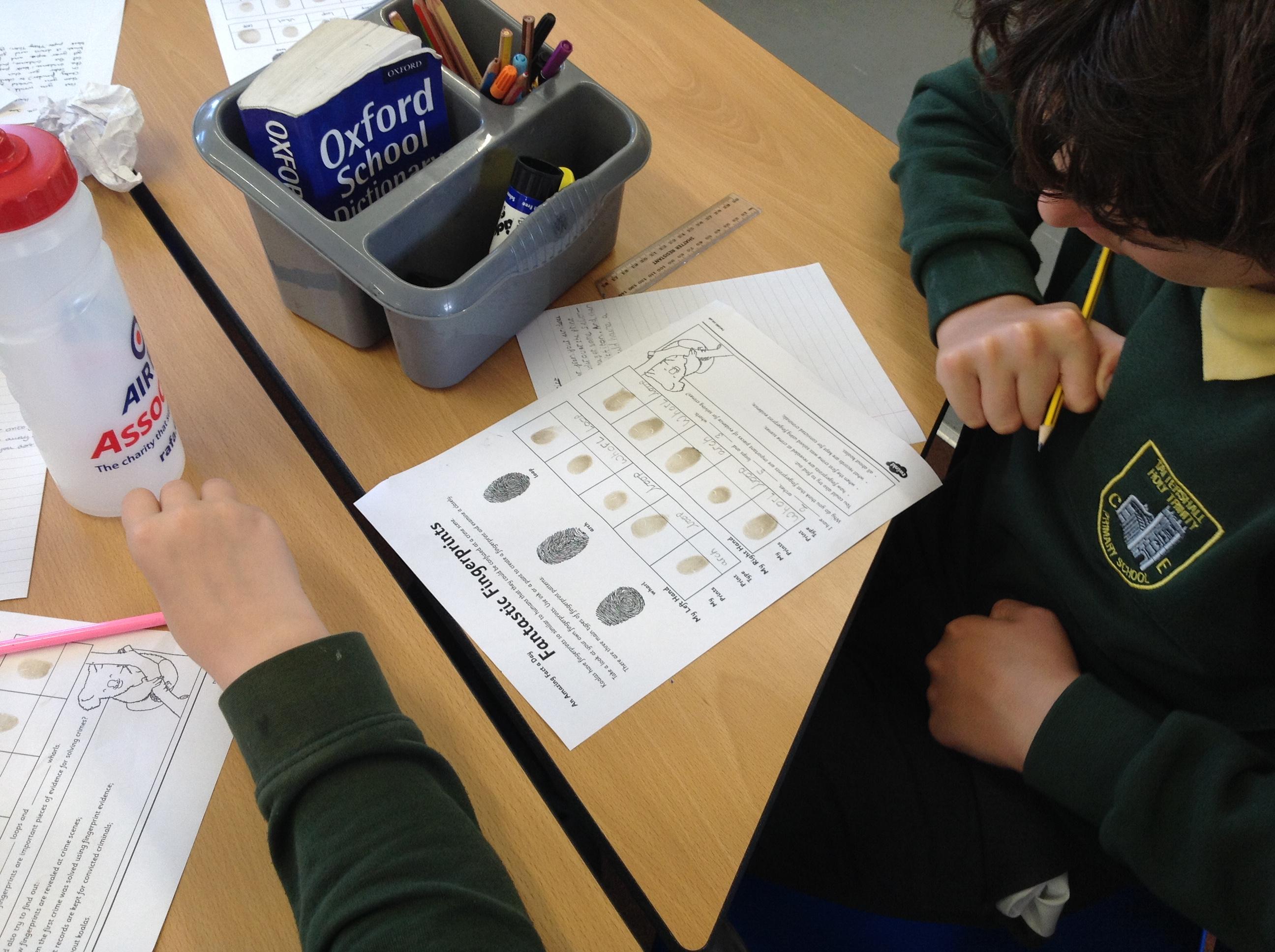 Today we read about fingerprints in Guided Reading, then learned how the police take fingerprints using ink and lift prints from crime scenes.