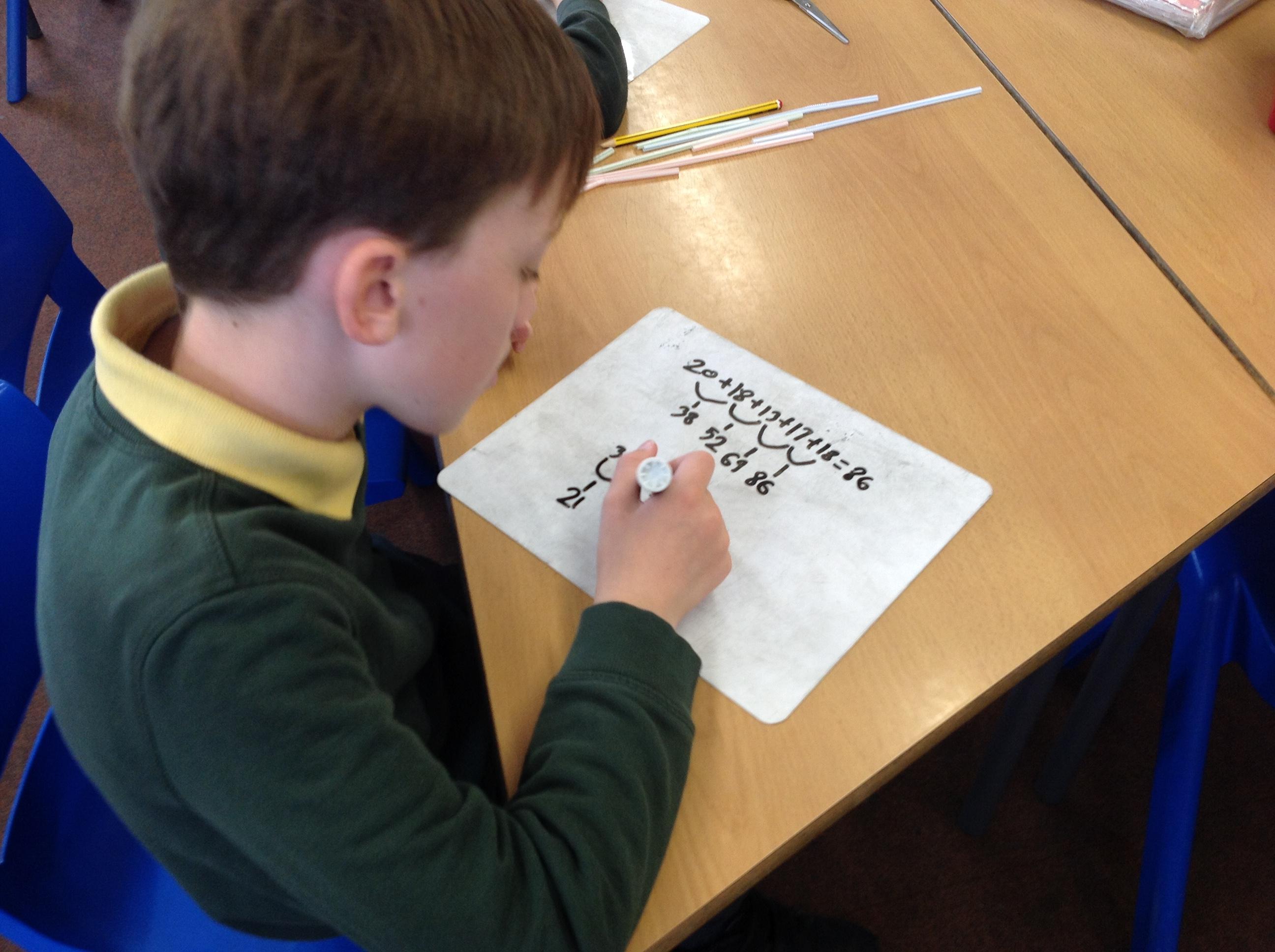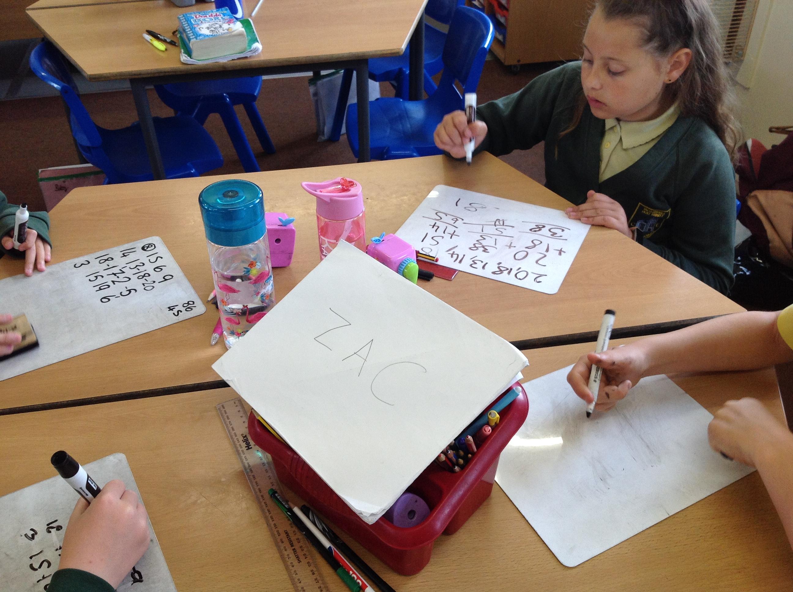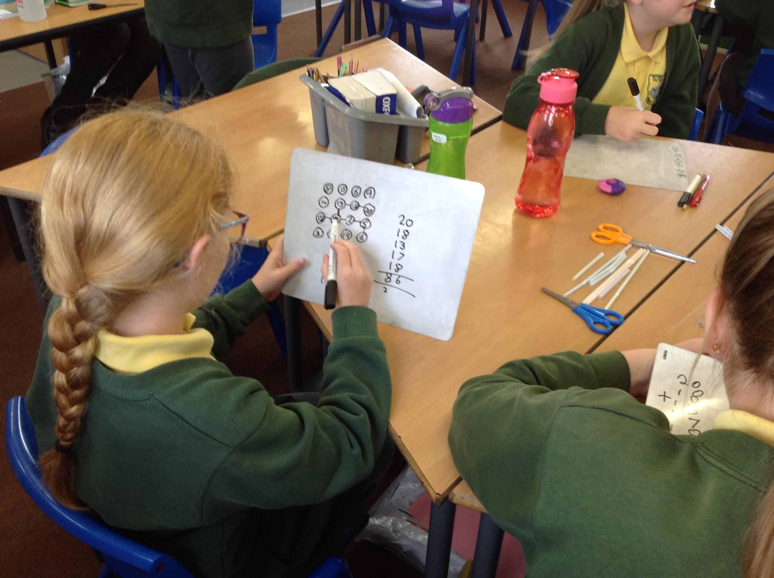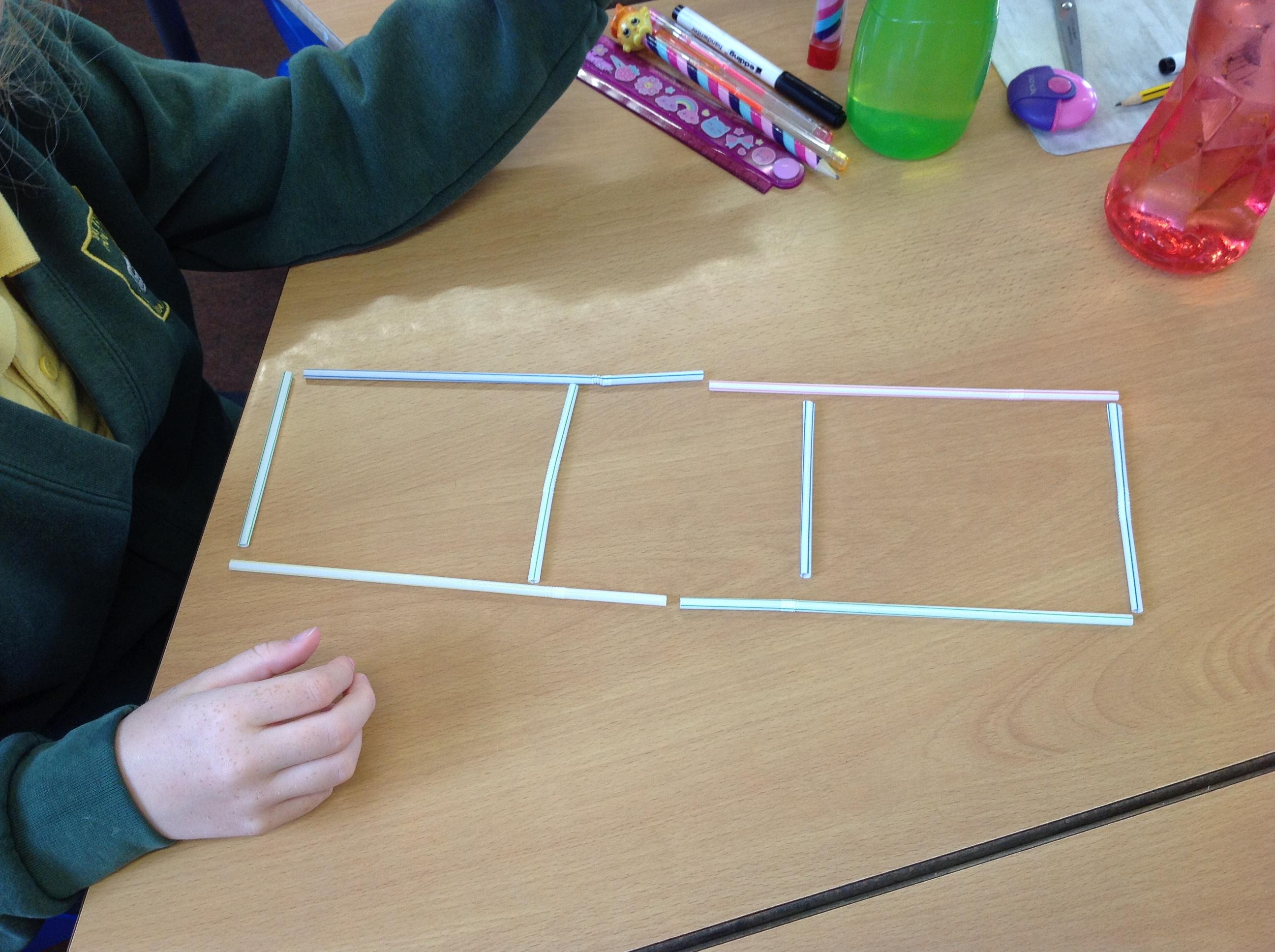 Today we were using our calculations skills and knowledge of shape and number to solve some tricky problems. Here are some photographs of us testing out our our theories.