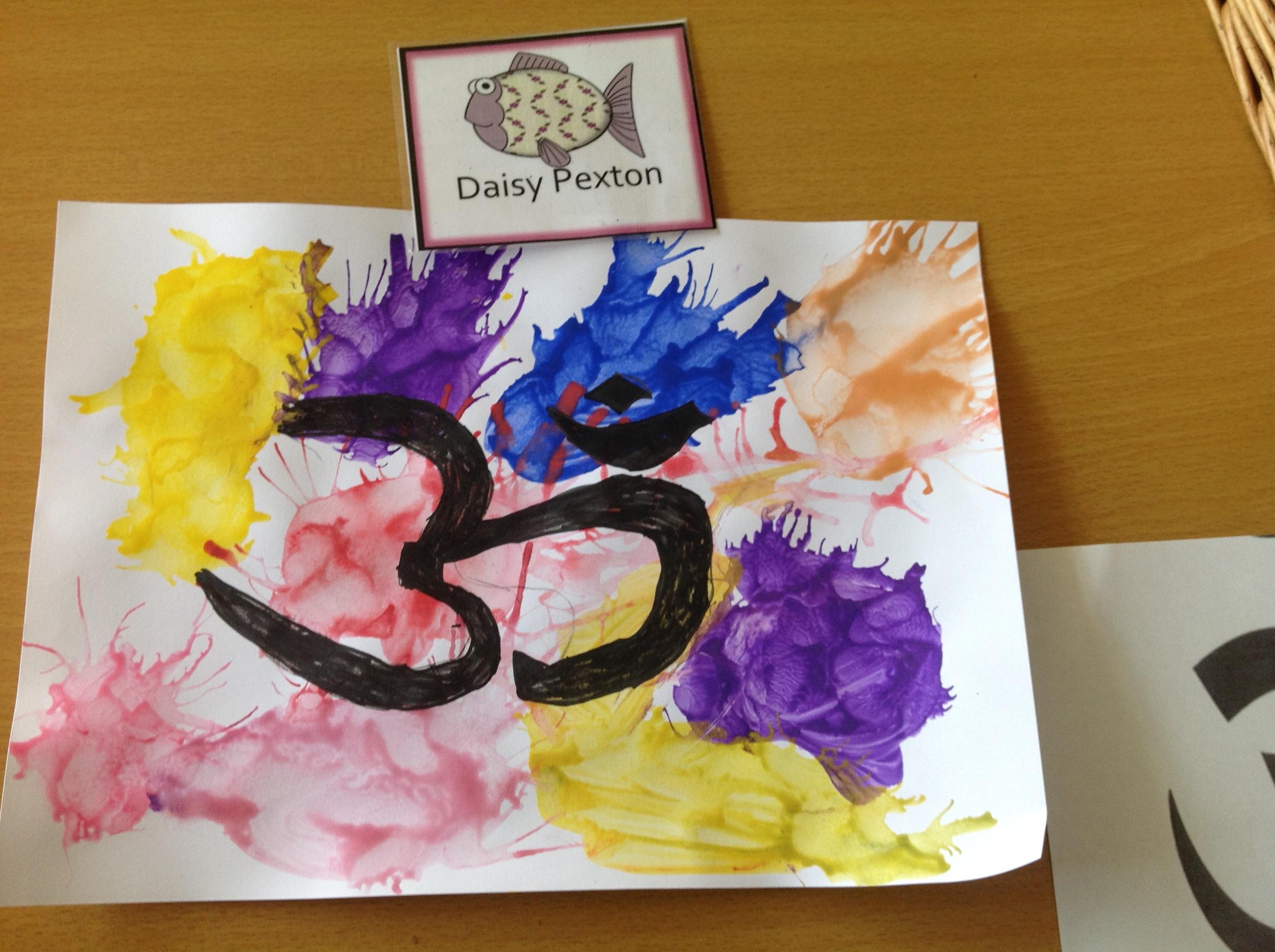 We learnt about Holi, the Hindu Festival of Colour. We used watered down paint and used straws to blow the paint in different directions. We showed how the Festival is celebrated when people throw paint at each other and remind each other how good triumphed over evil.